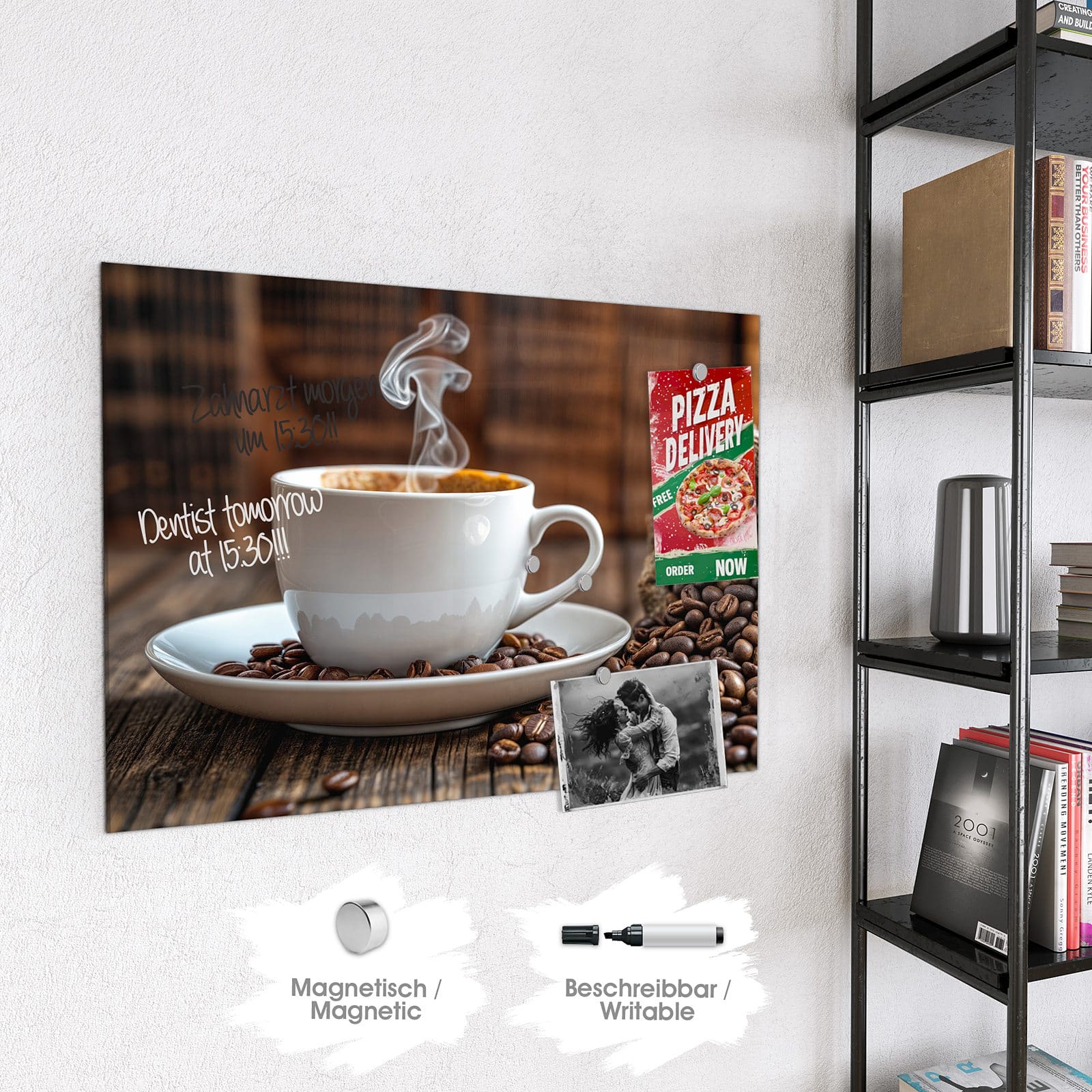 Stilvolle Glas-Magnettafel für Ihr Zuhause - Motiv Kaffeegenuss
