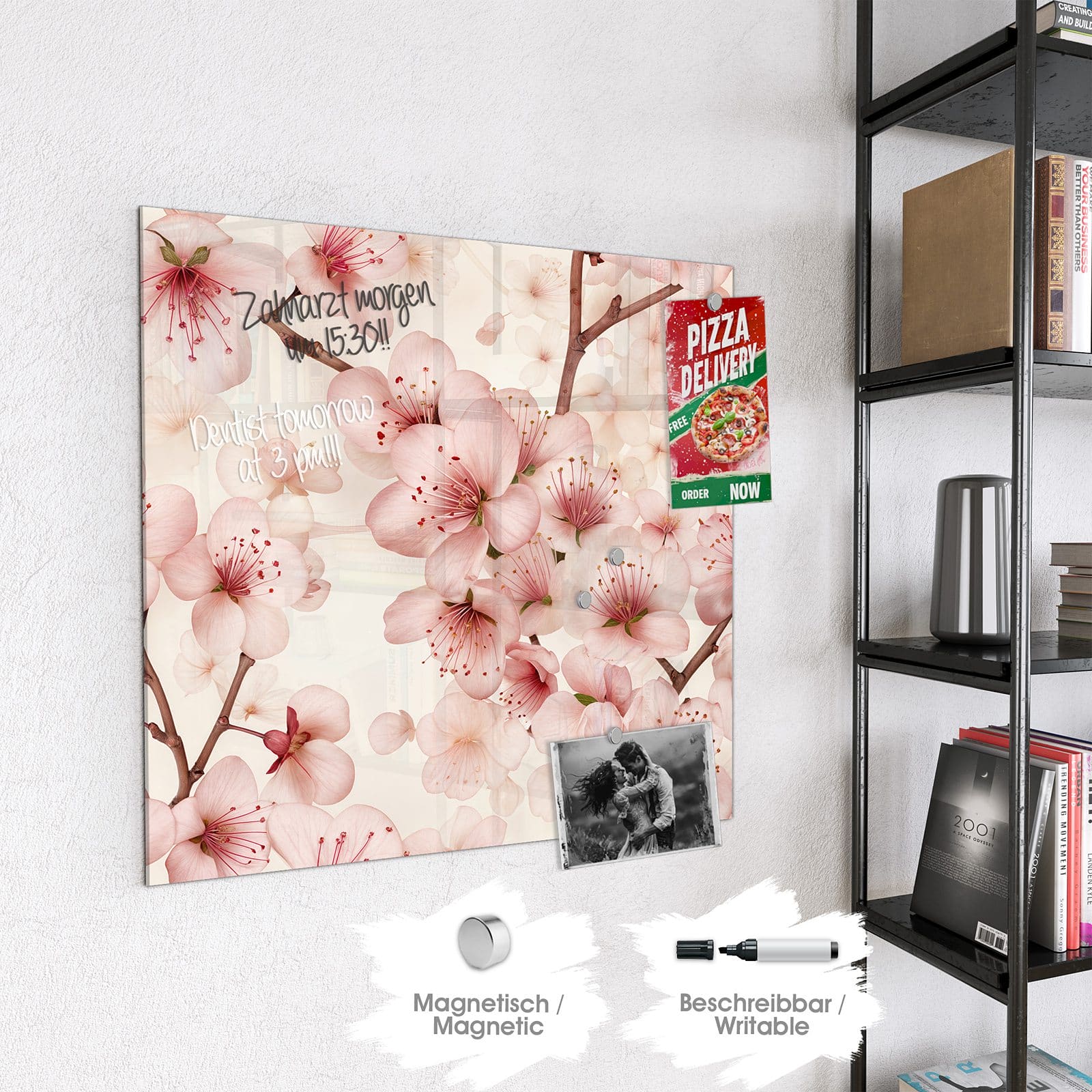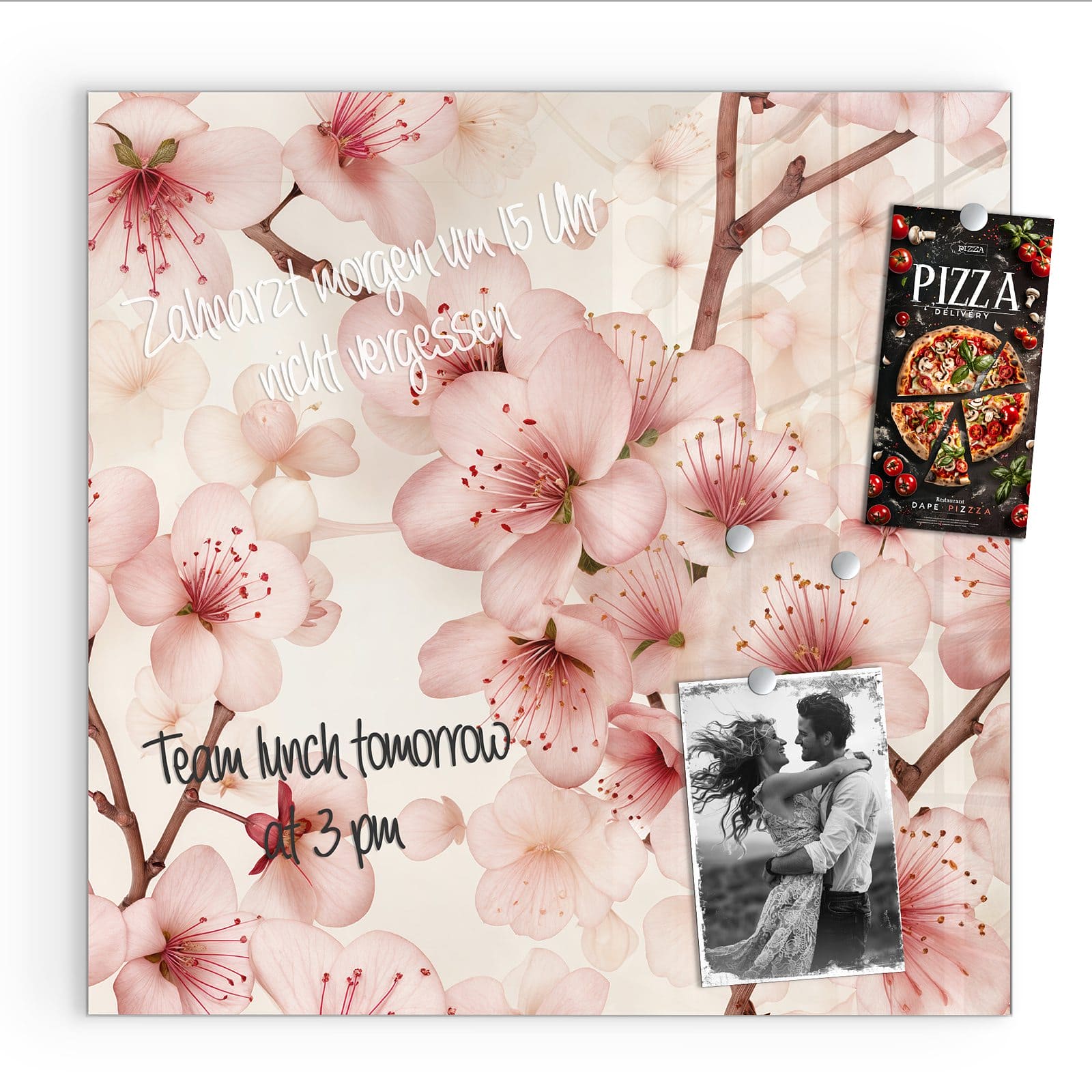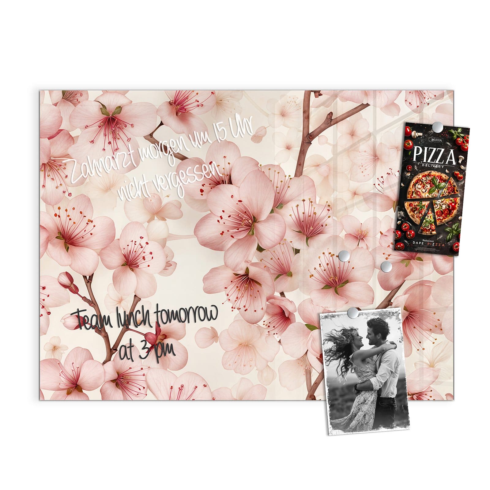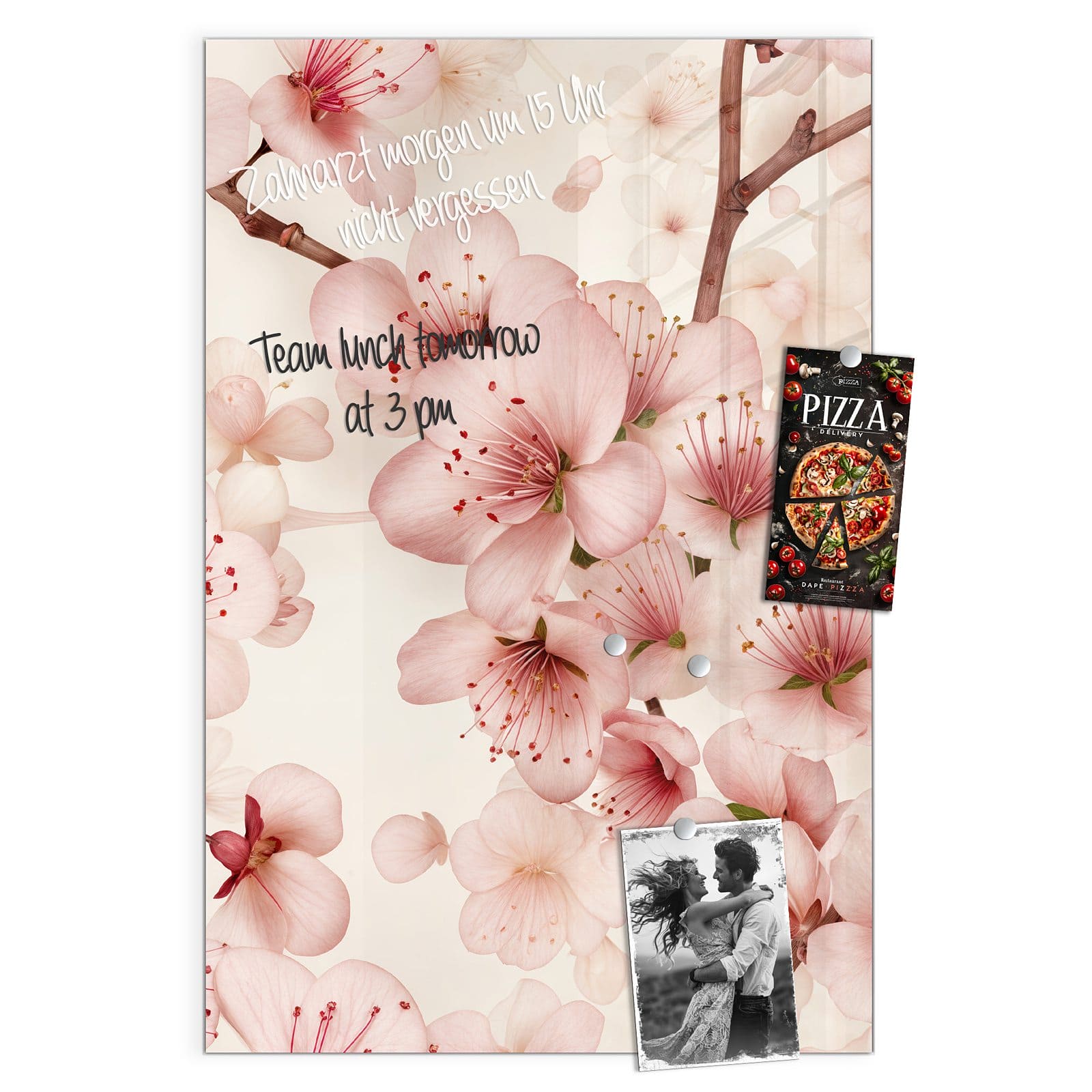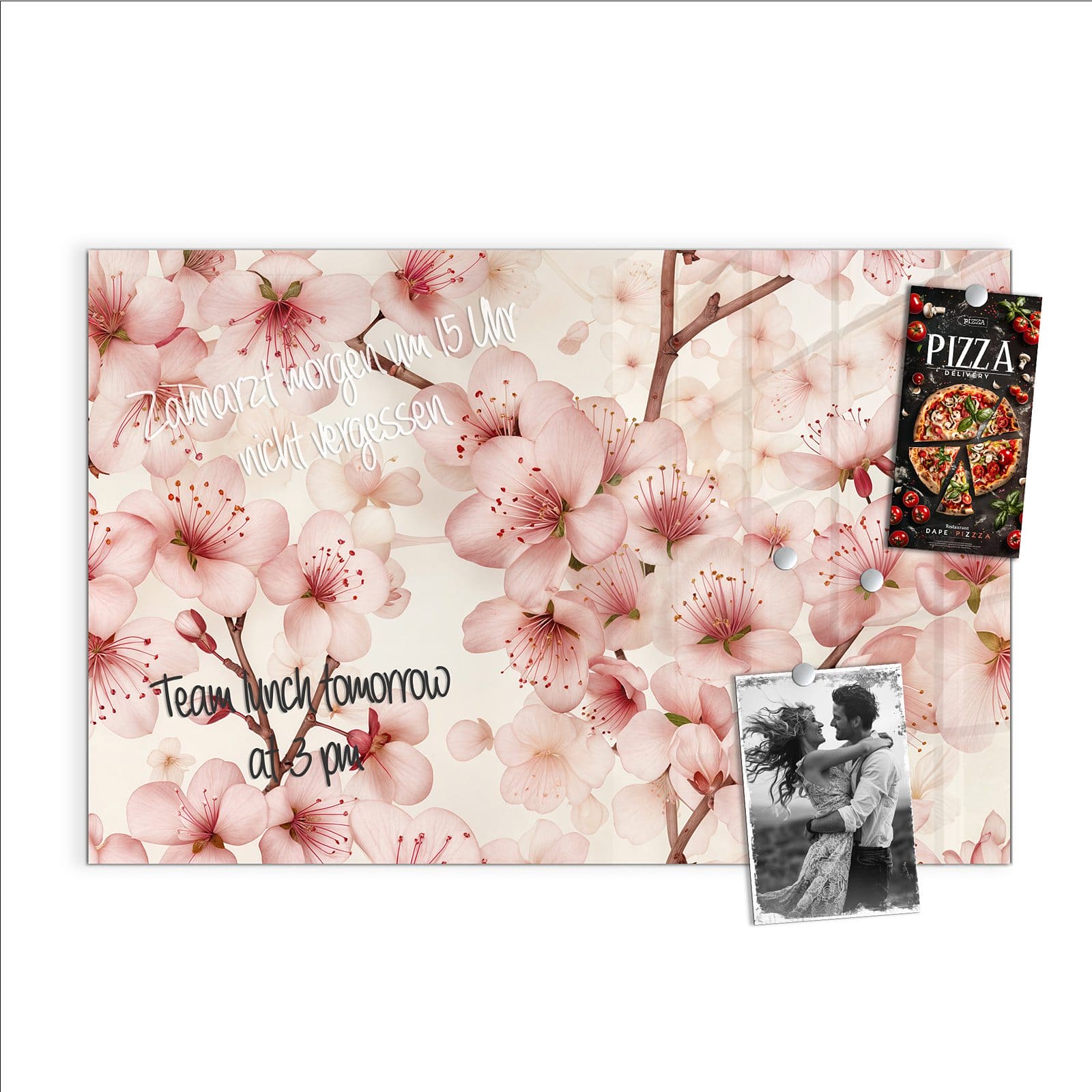 Stilvolle Glas-Magnettafel für Ihr Zuhause - Motiv Kirschblüten