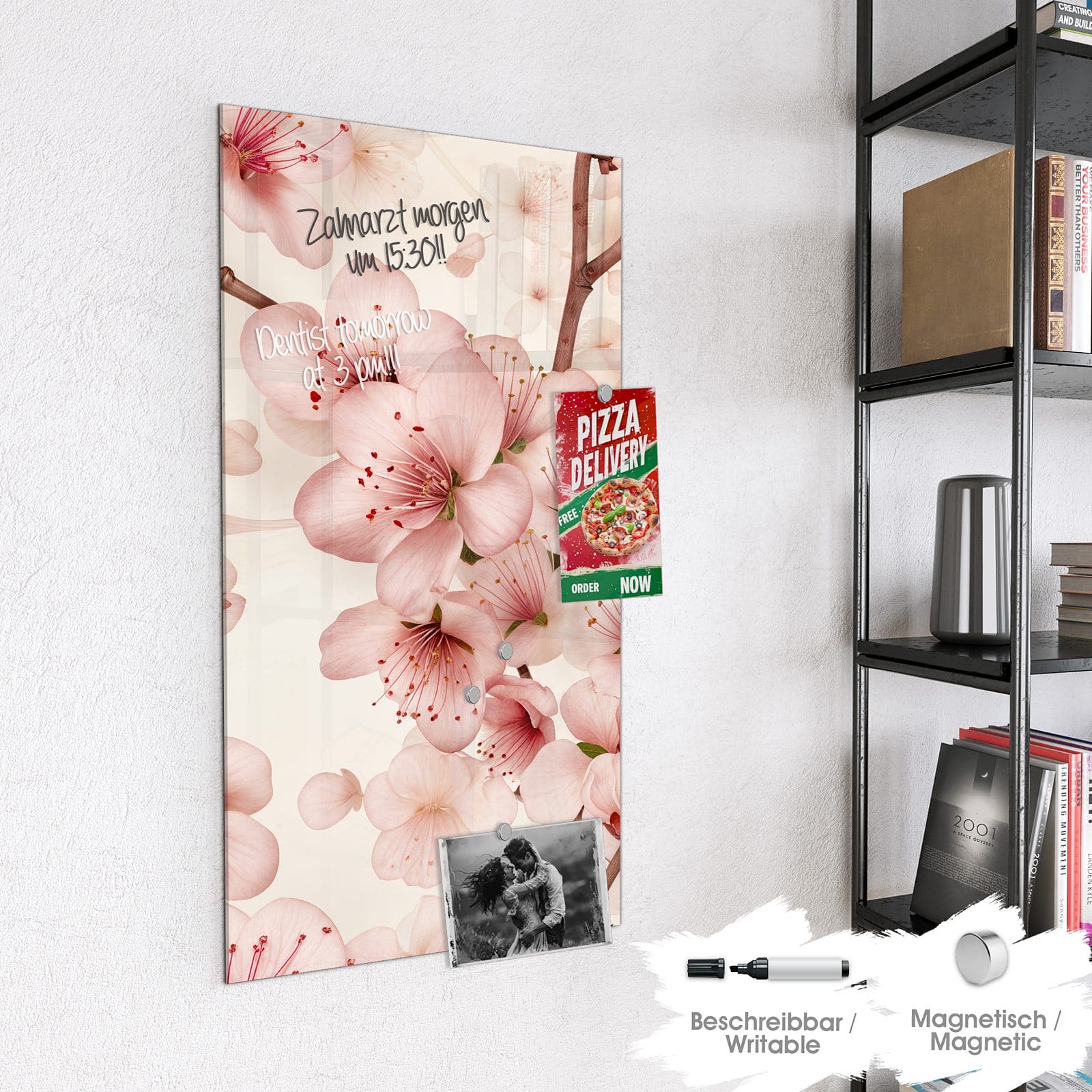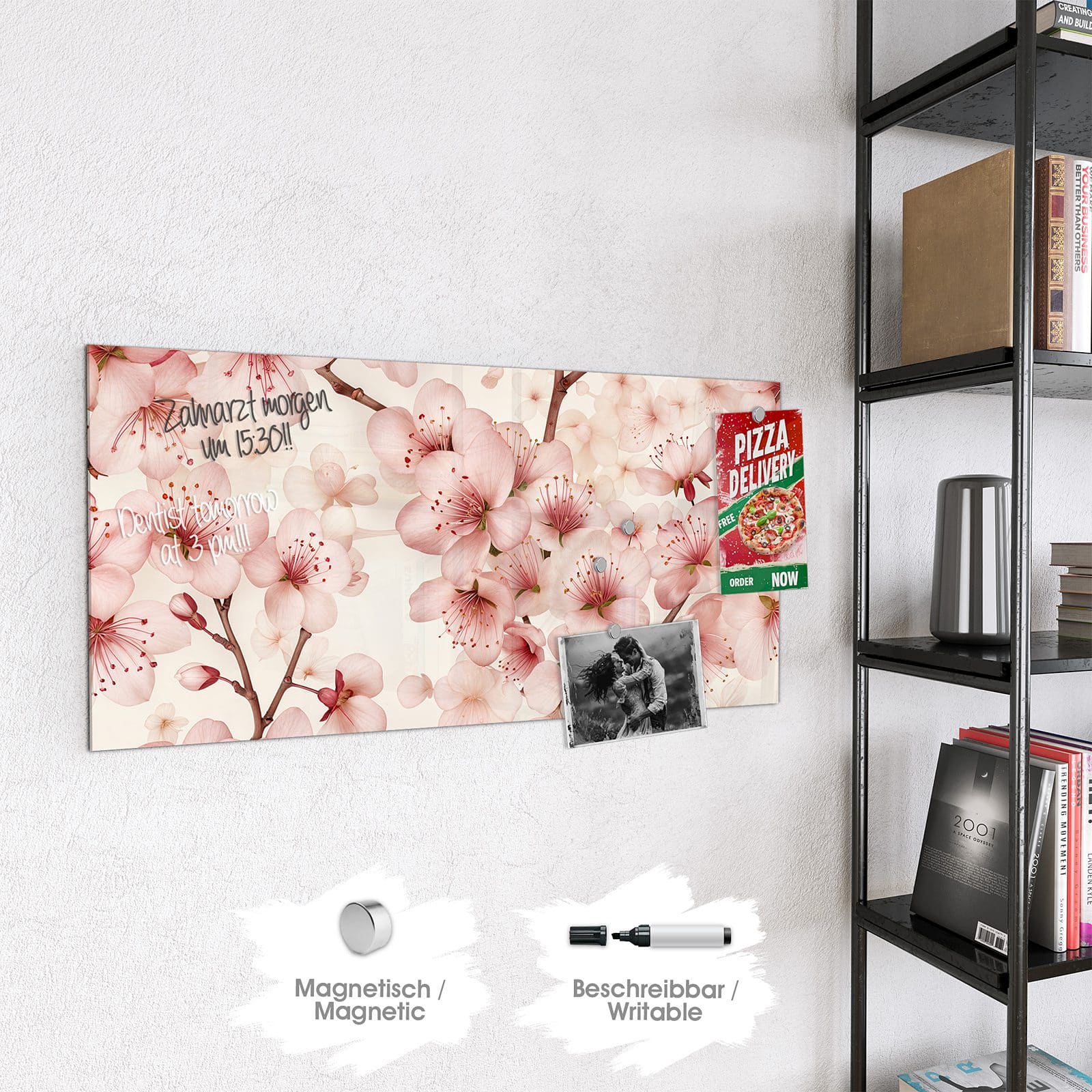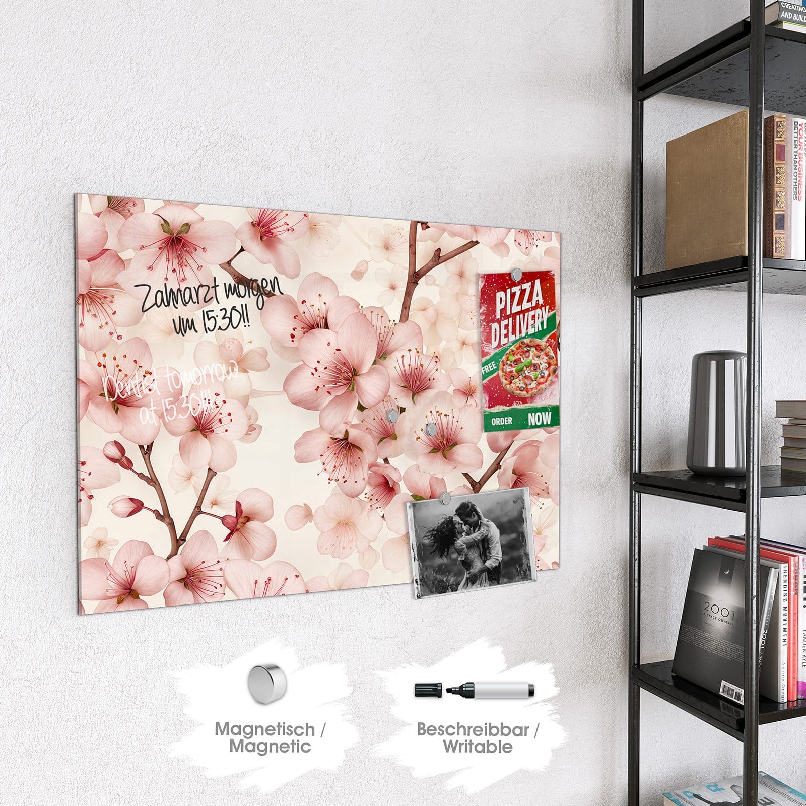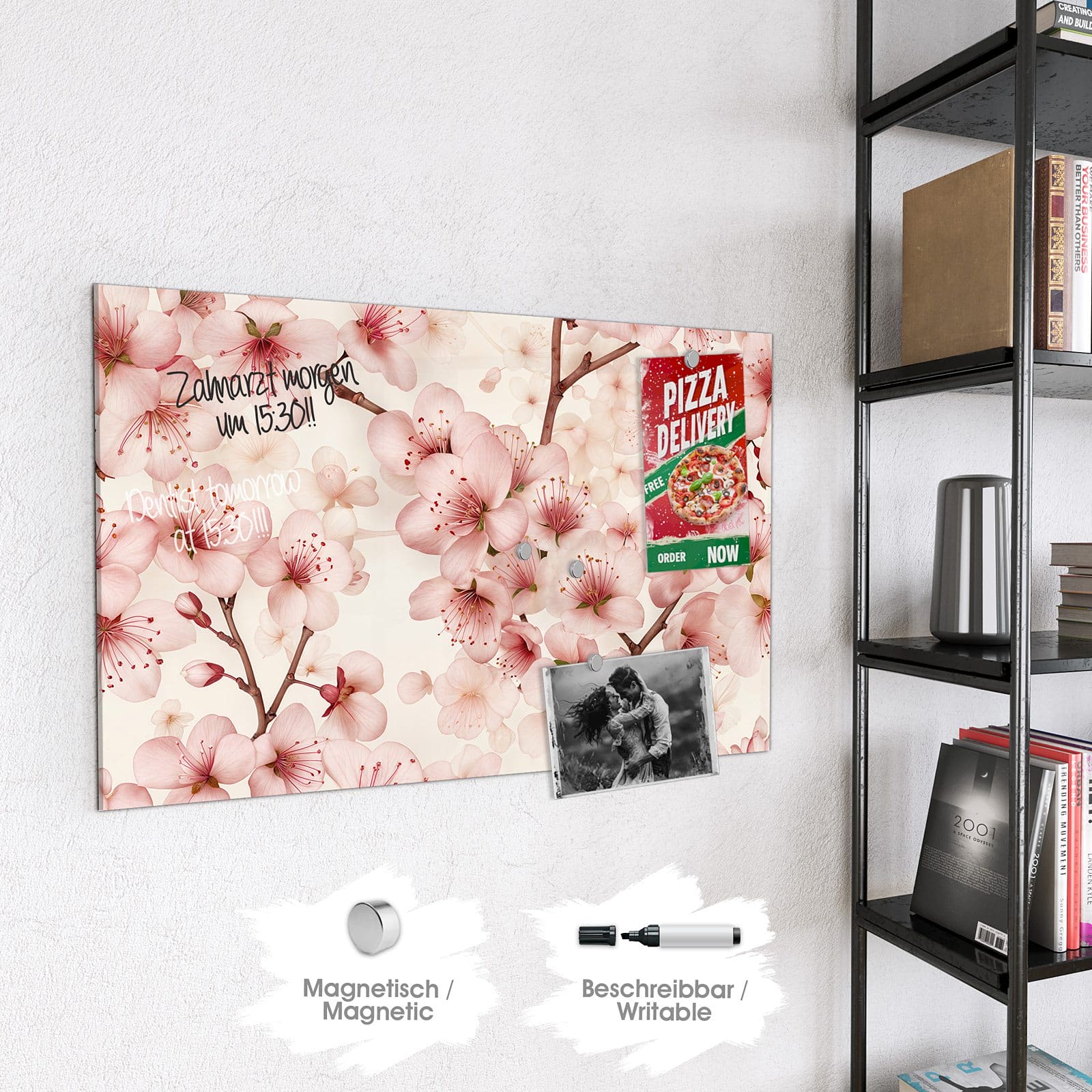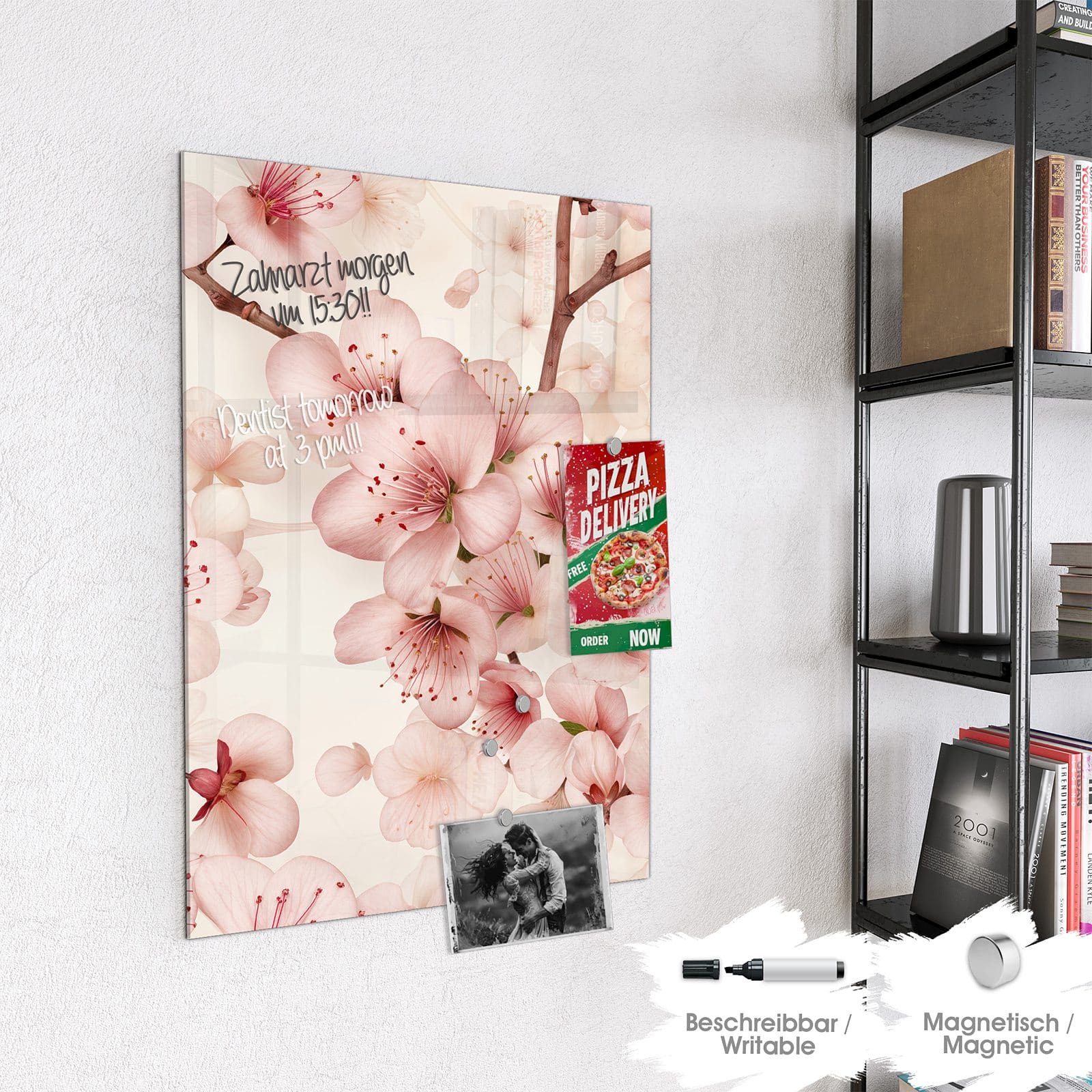 Stilvolle Glas-Magnettafel für Ihr Zuhause - Motiv Kirschblüten