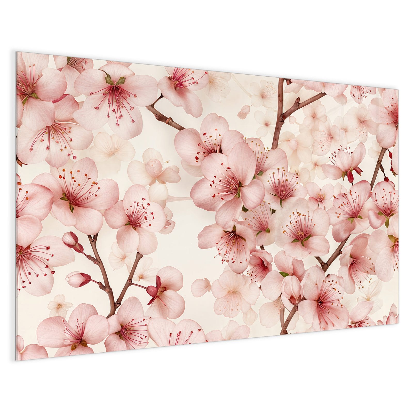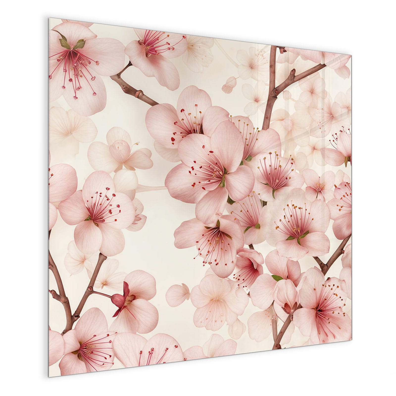 Mit einer Dicke von 4 mm besteht die Tafel aus gehärtetem Einscheibensicherheitsglas (ESG), das robust, kratzfest und UV-beständig ist. Das Motiv Kirschblüten wird in hoher Auflösung und mit präzisen Details auf das Glas gedruckt, was eine lebendige und dauerhafte Farbbrillanz garantiert. Die polierten Kanten sorgen für ein hochwertiges Erscheinungsbild und minimieren das Verletzungsrisiko.