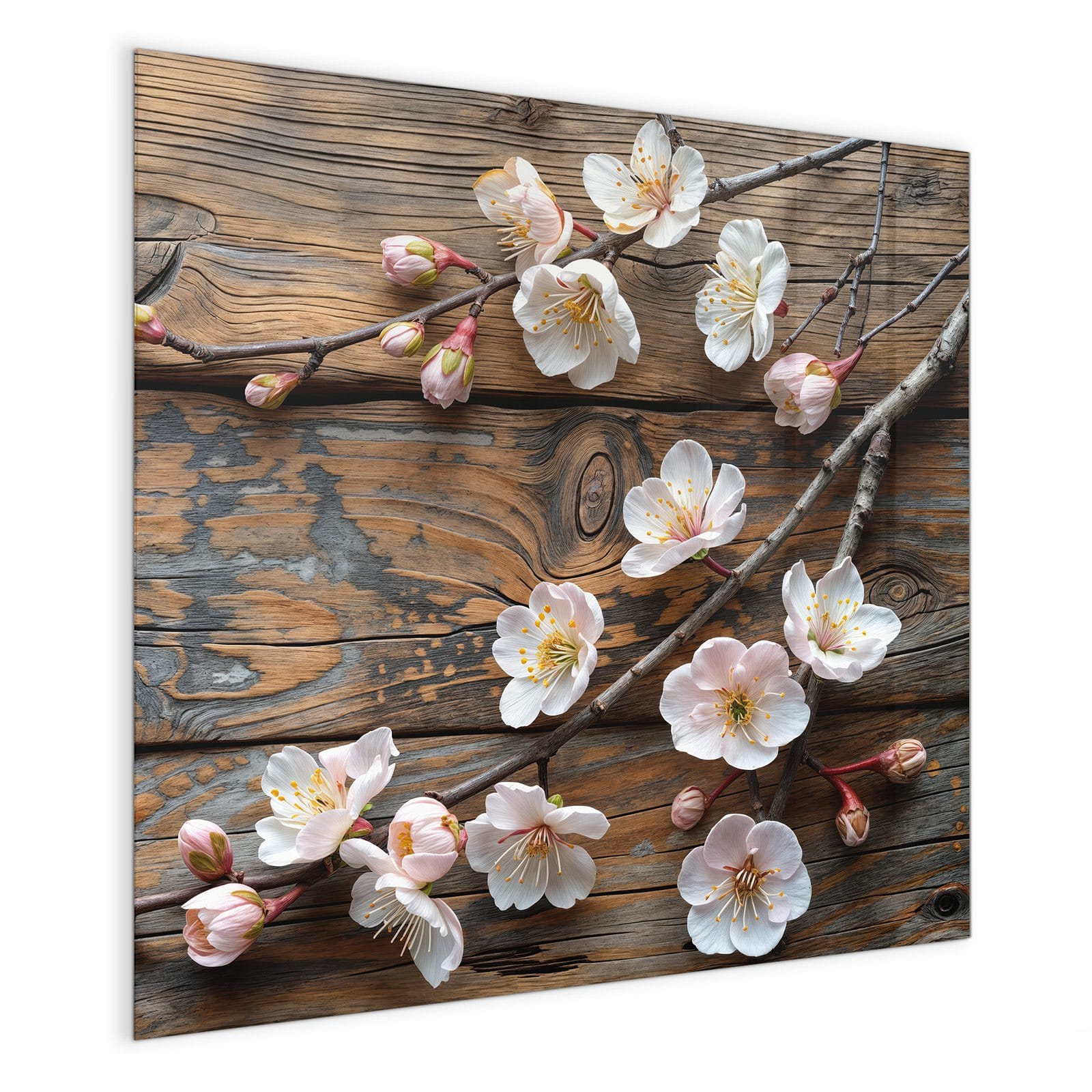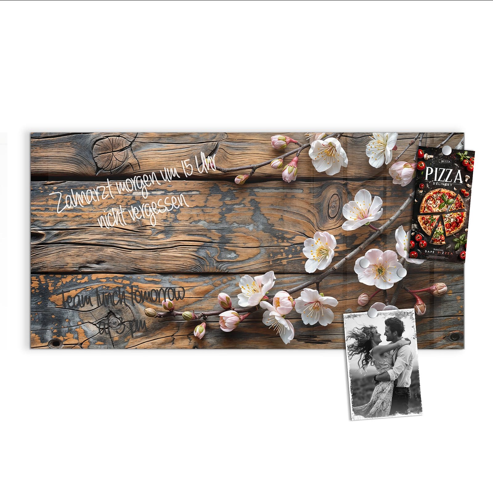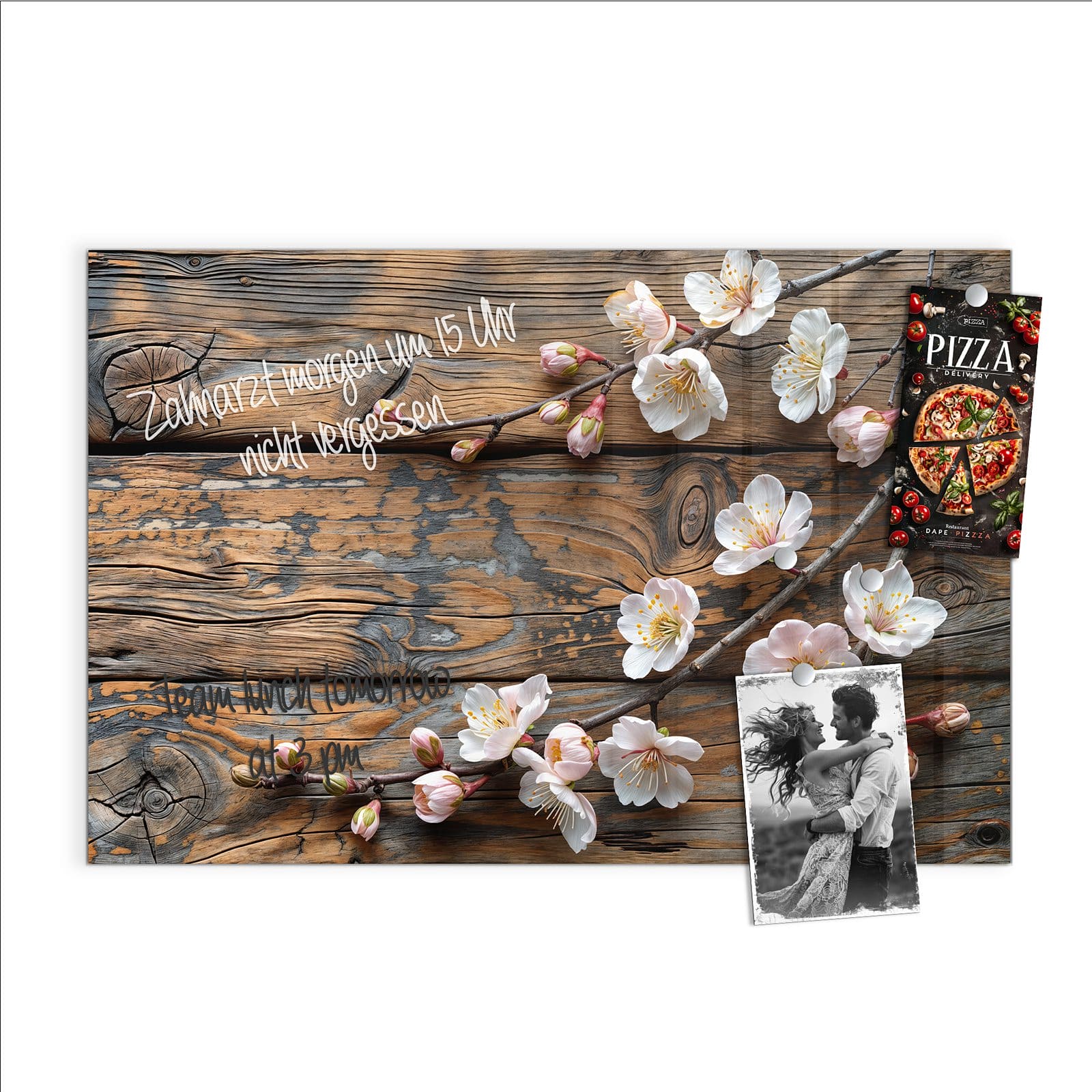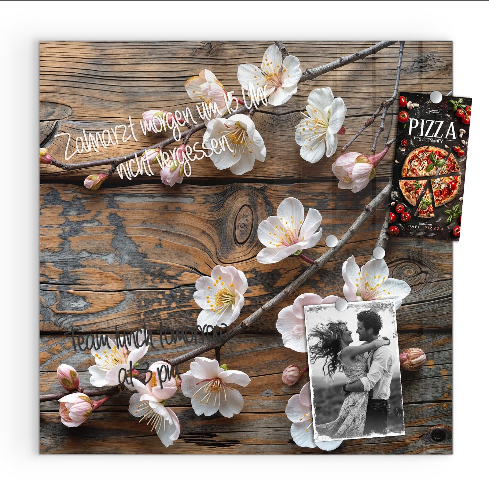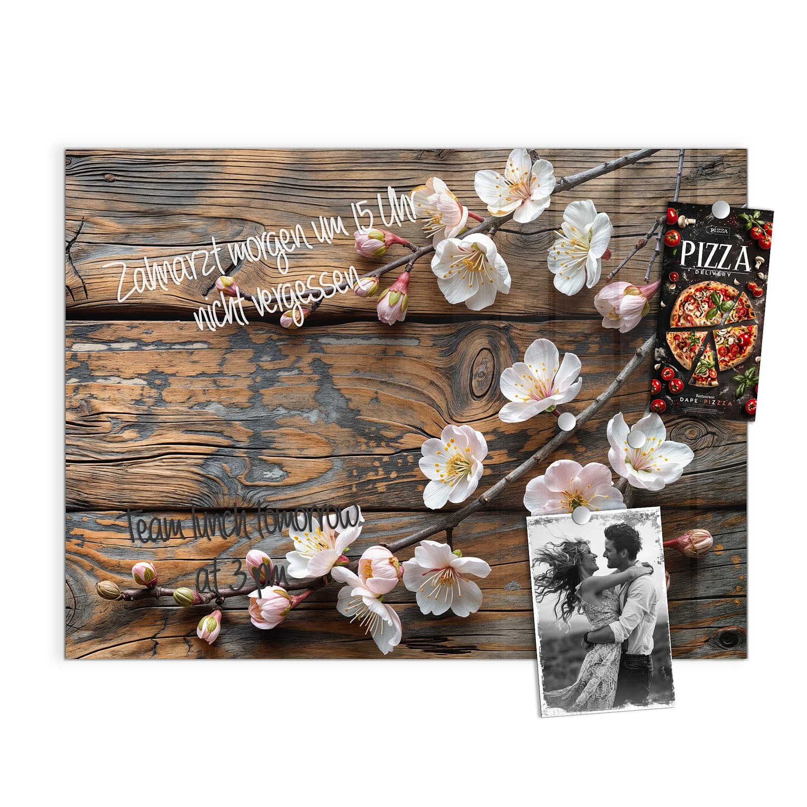 Stilvolle Glas-Magnettafel für Ihr Zuhause - Motiv Kirschblüten Holz
