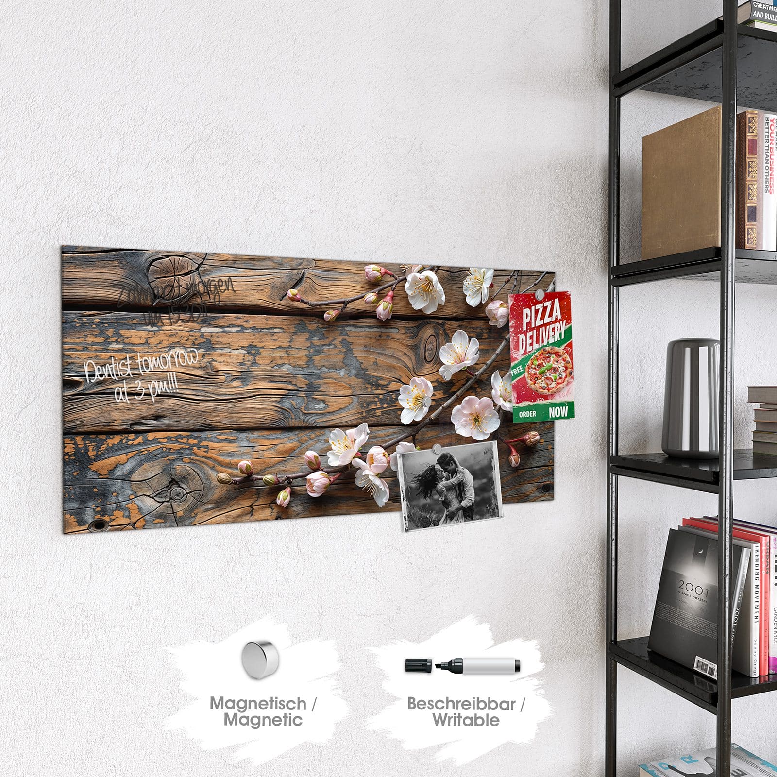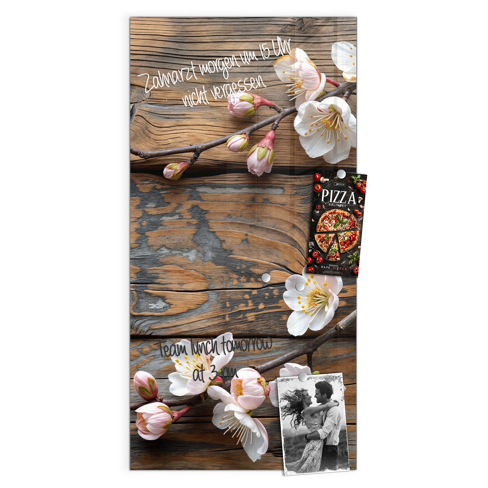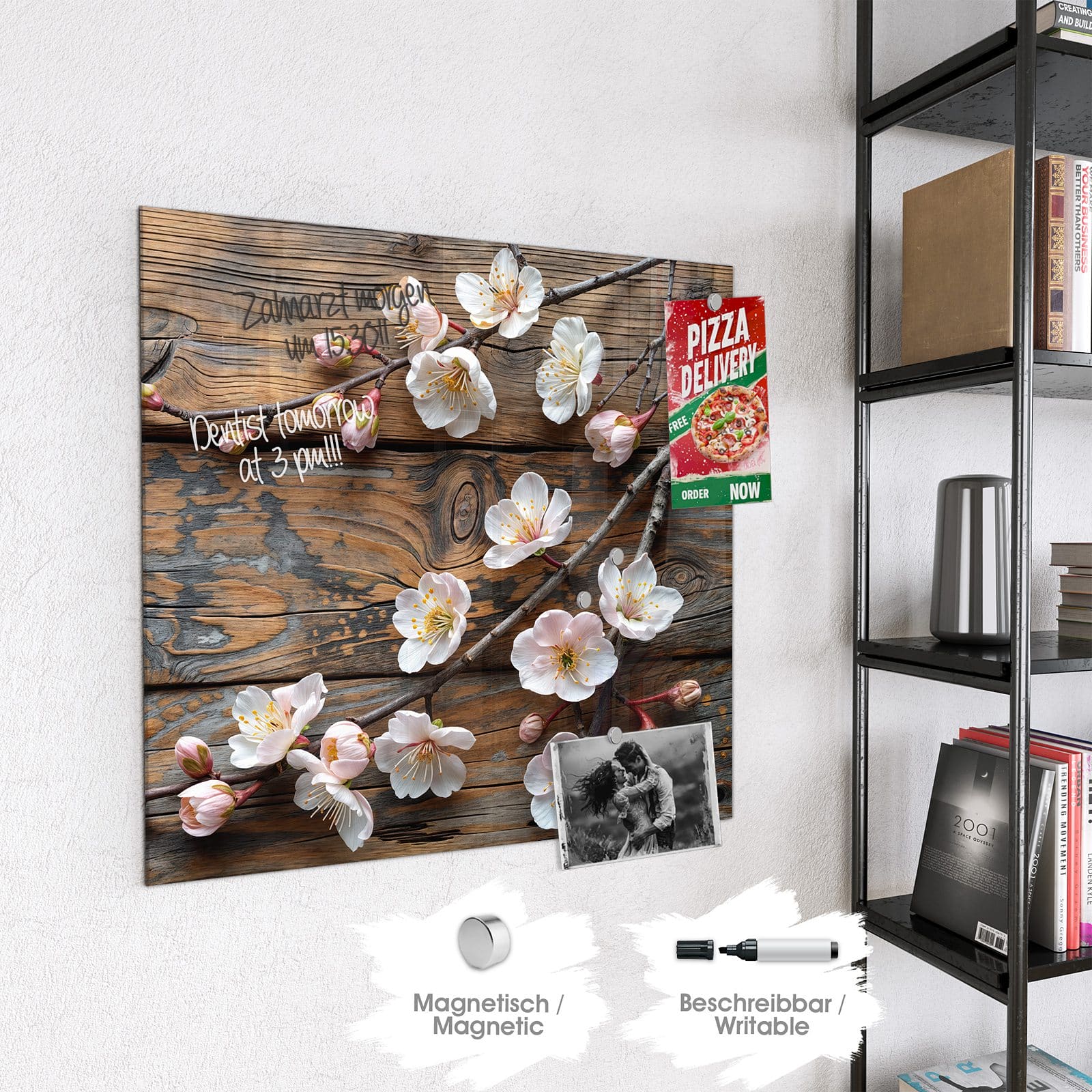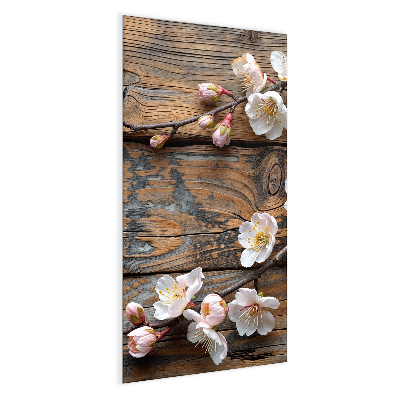 Stilvolle Glas-Magnettafel für Ihr Zuhause - Motiv Kirschblüten Holz