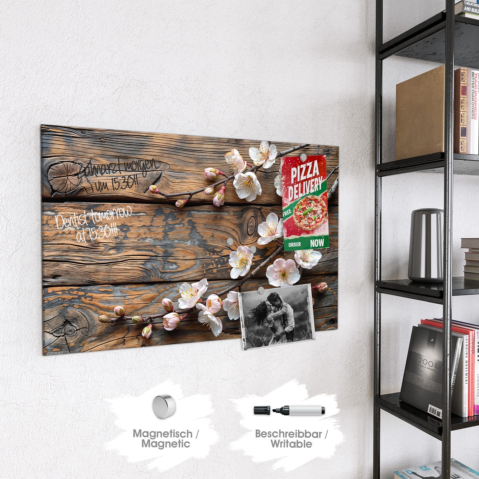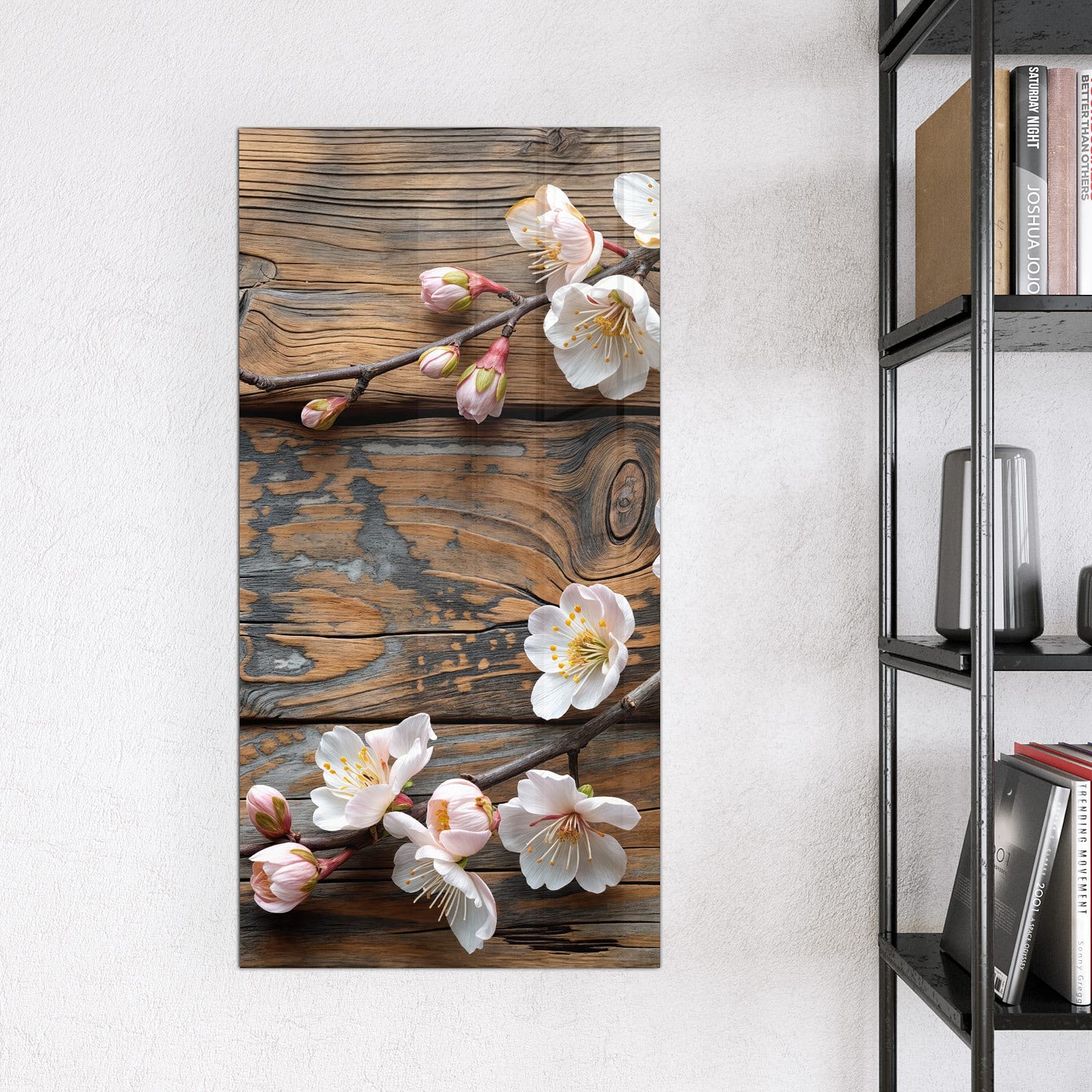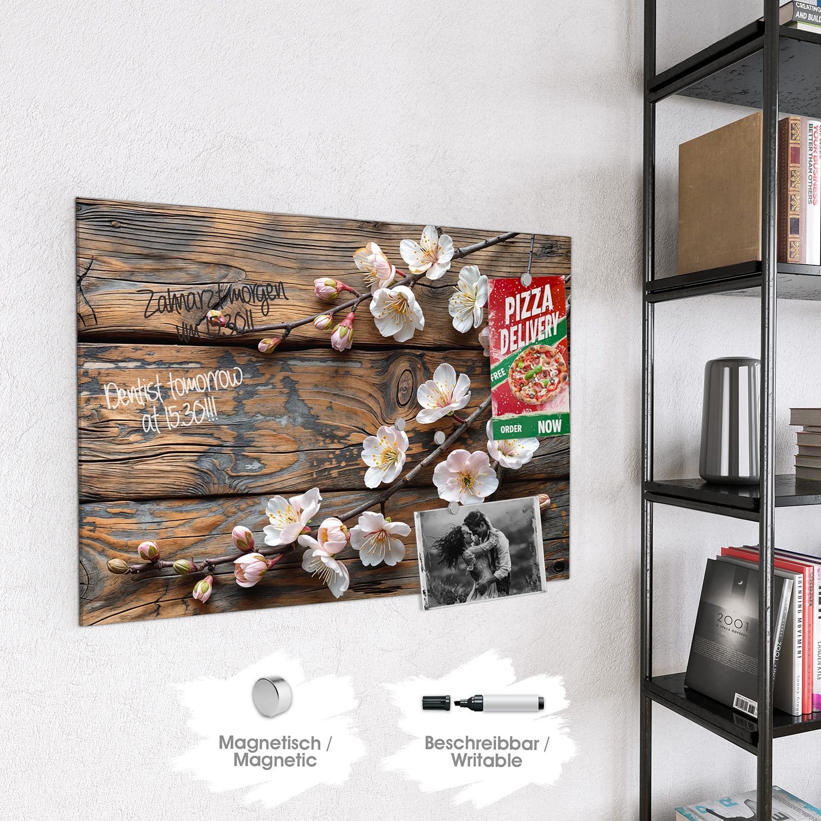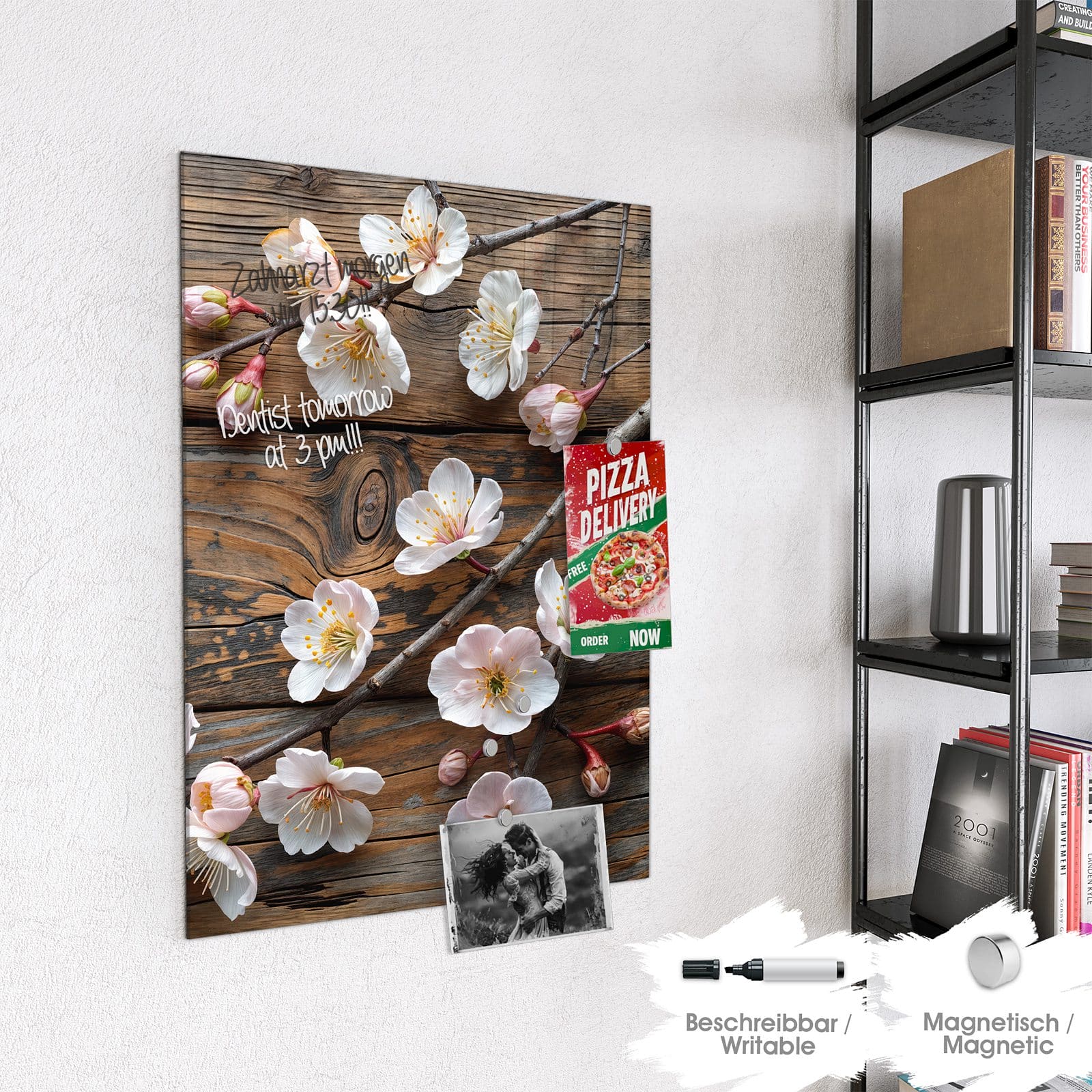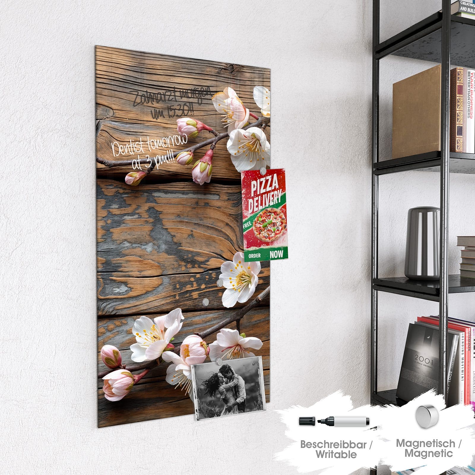 Stilvolle Glas-Magnettafel für Ihr Zuhause - Motiv Kirschblüten Holz