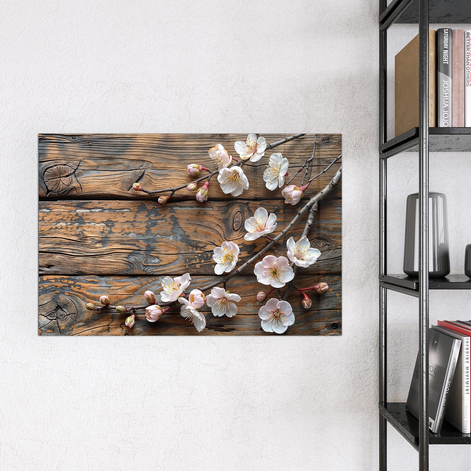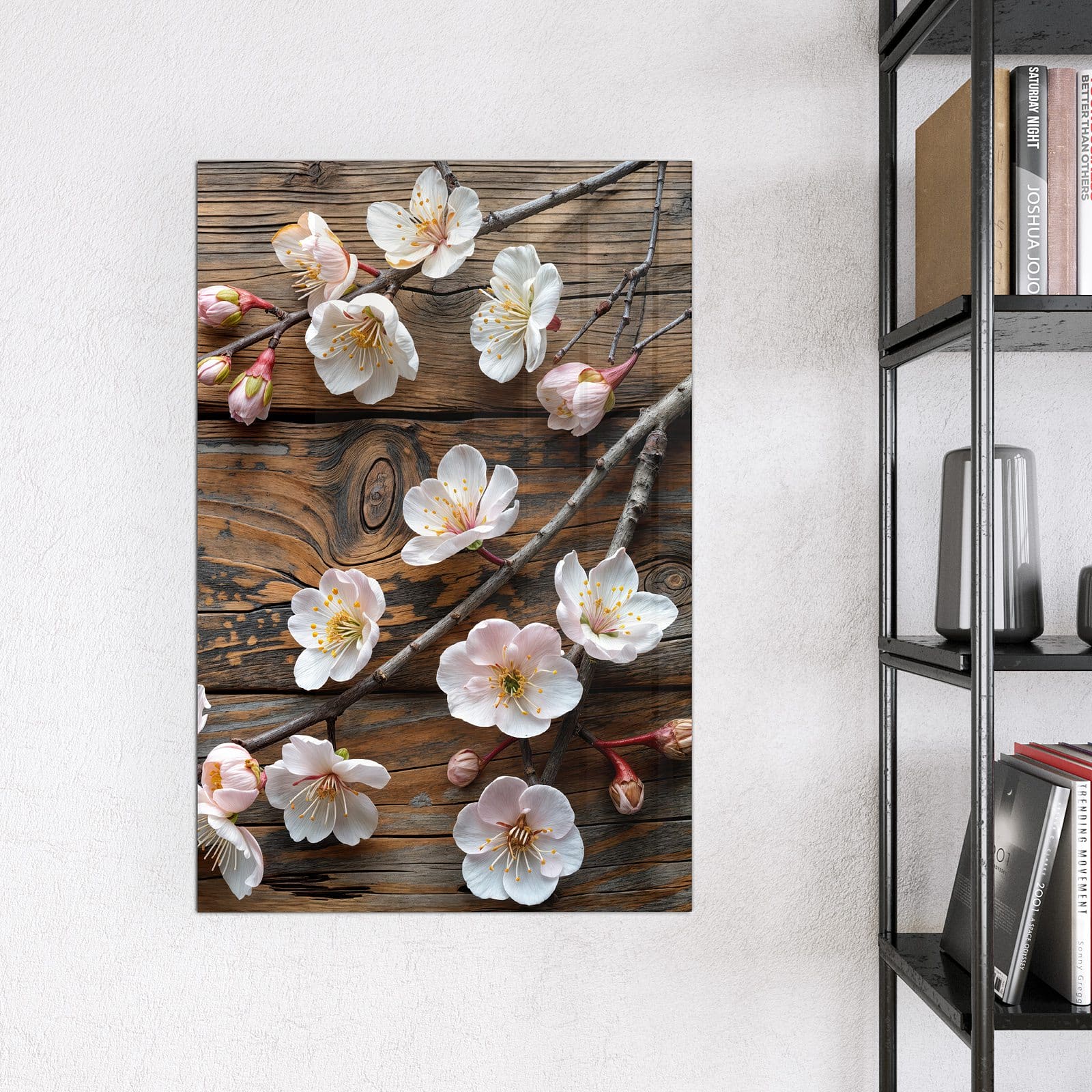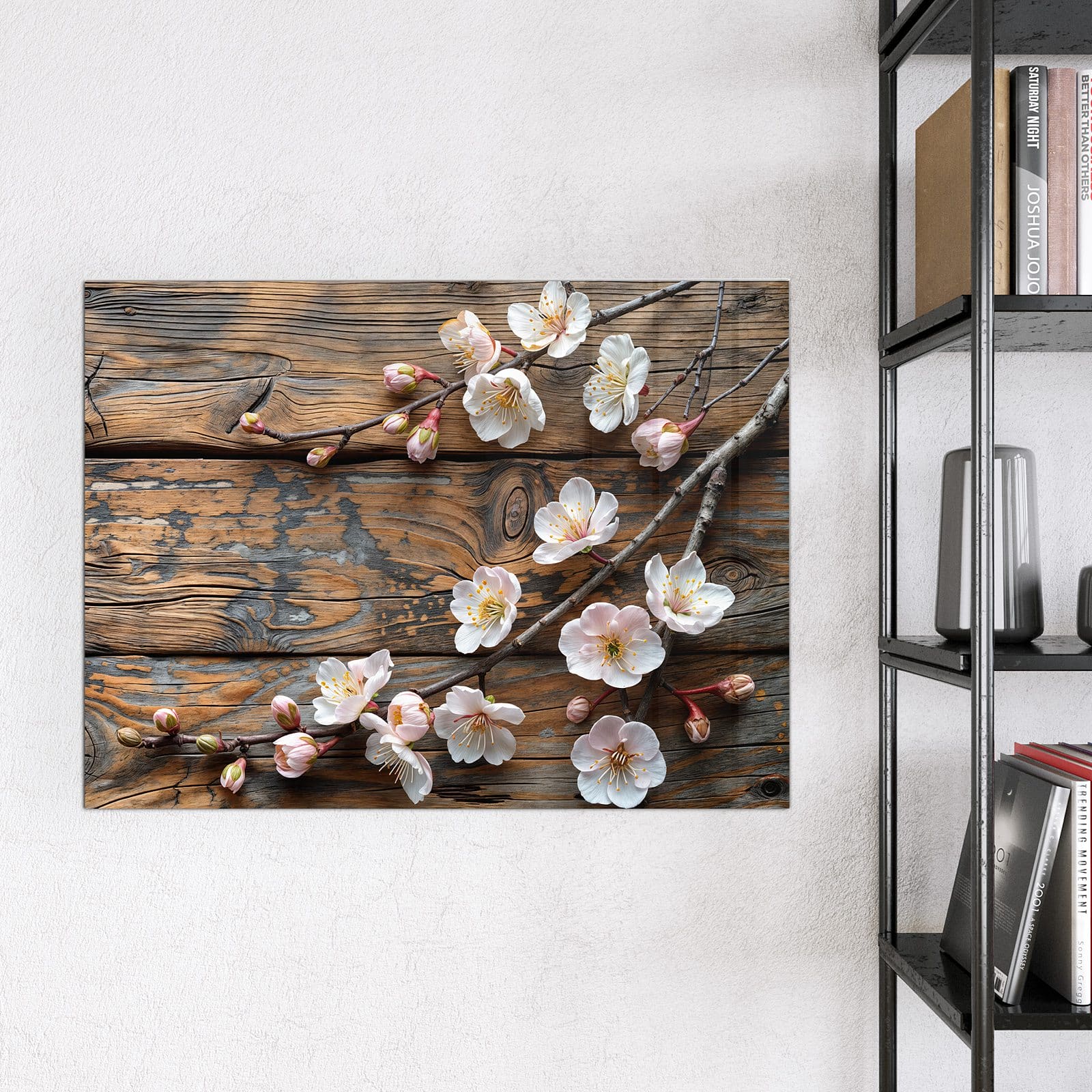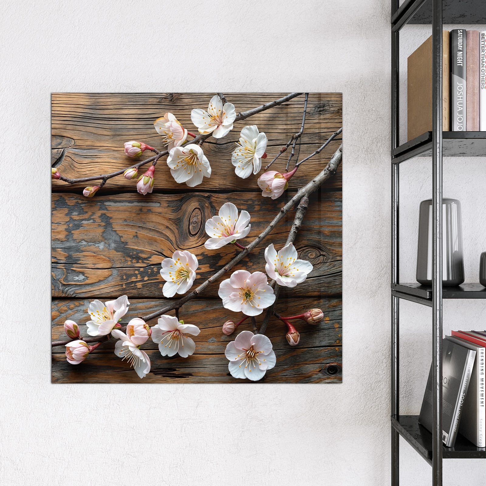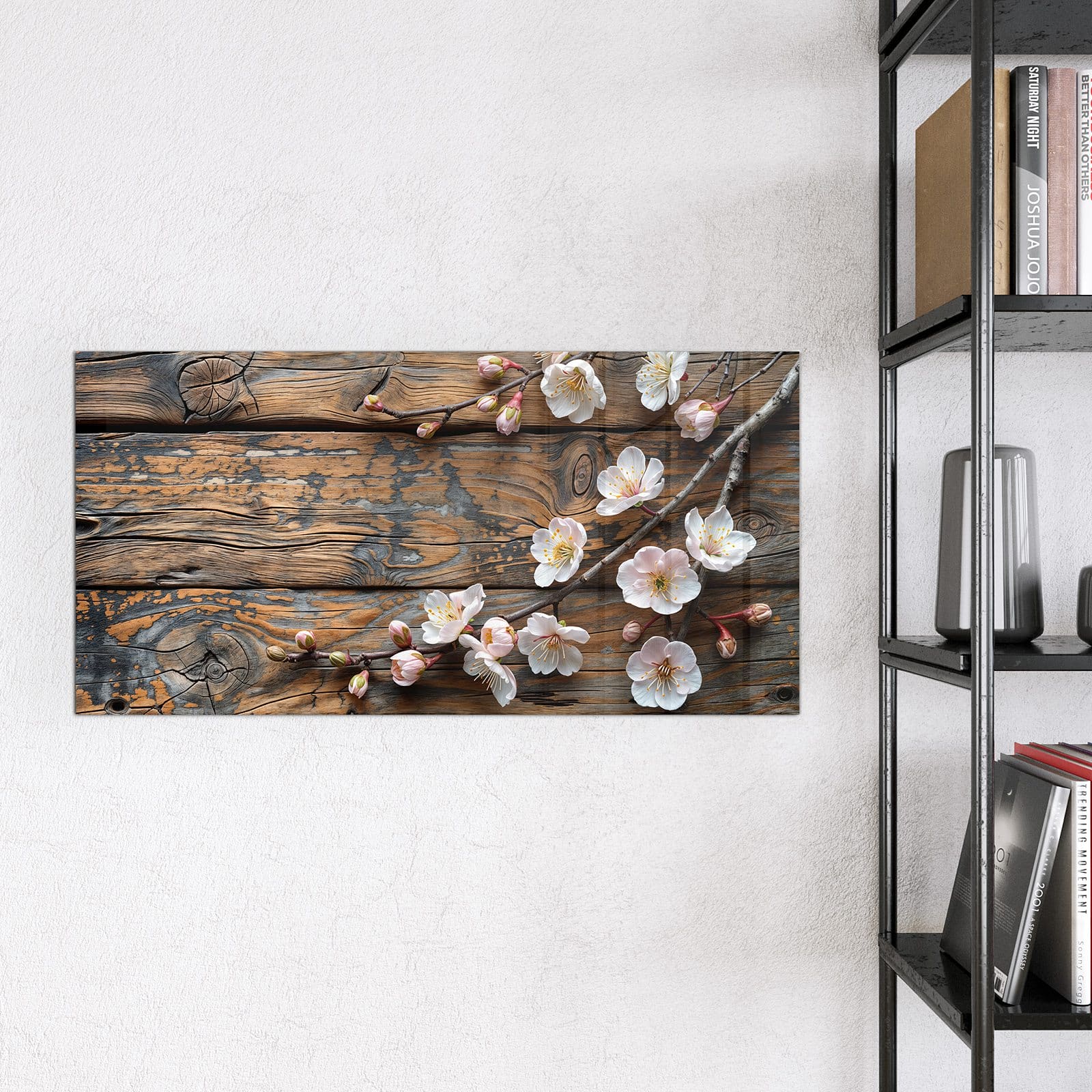 Stilvolle Glas-Magnettafel für Ihr Zuhause - Motiv Kirschblüten Holz