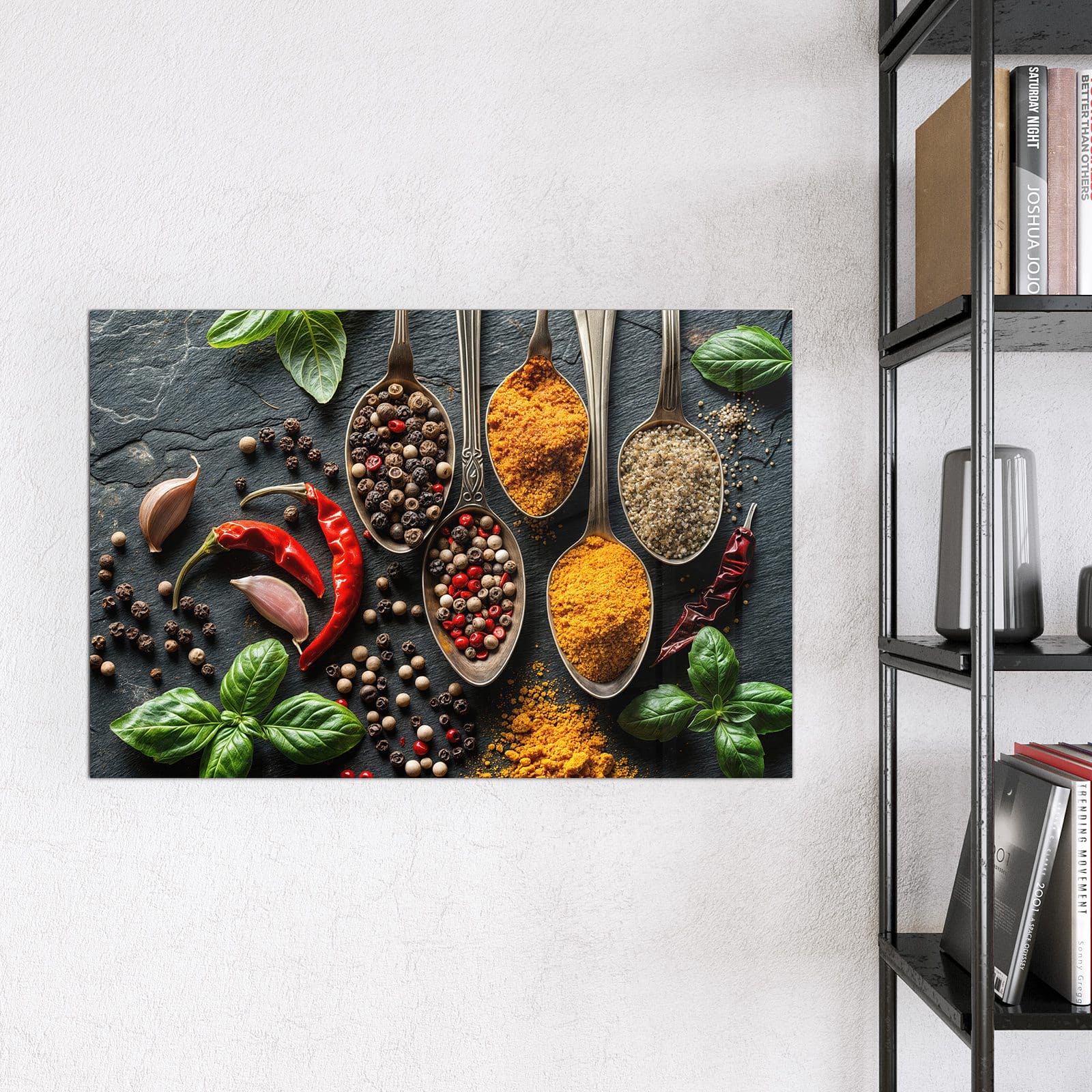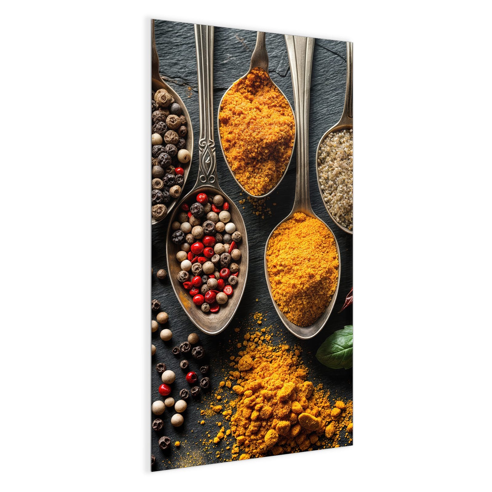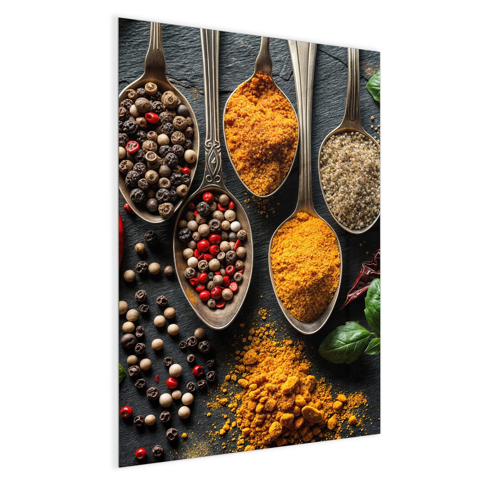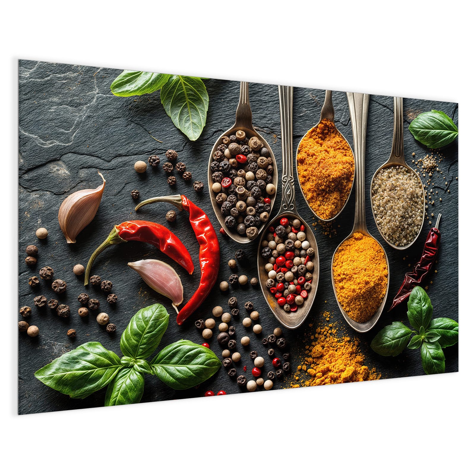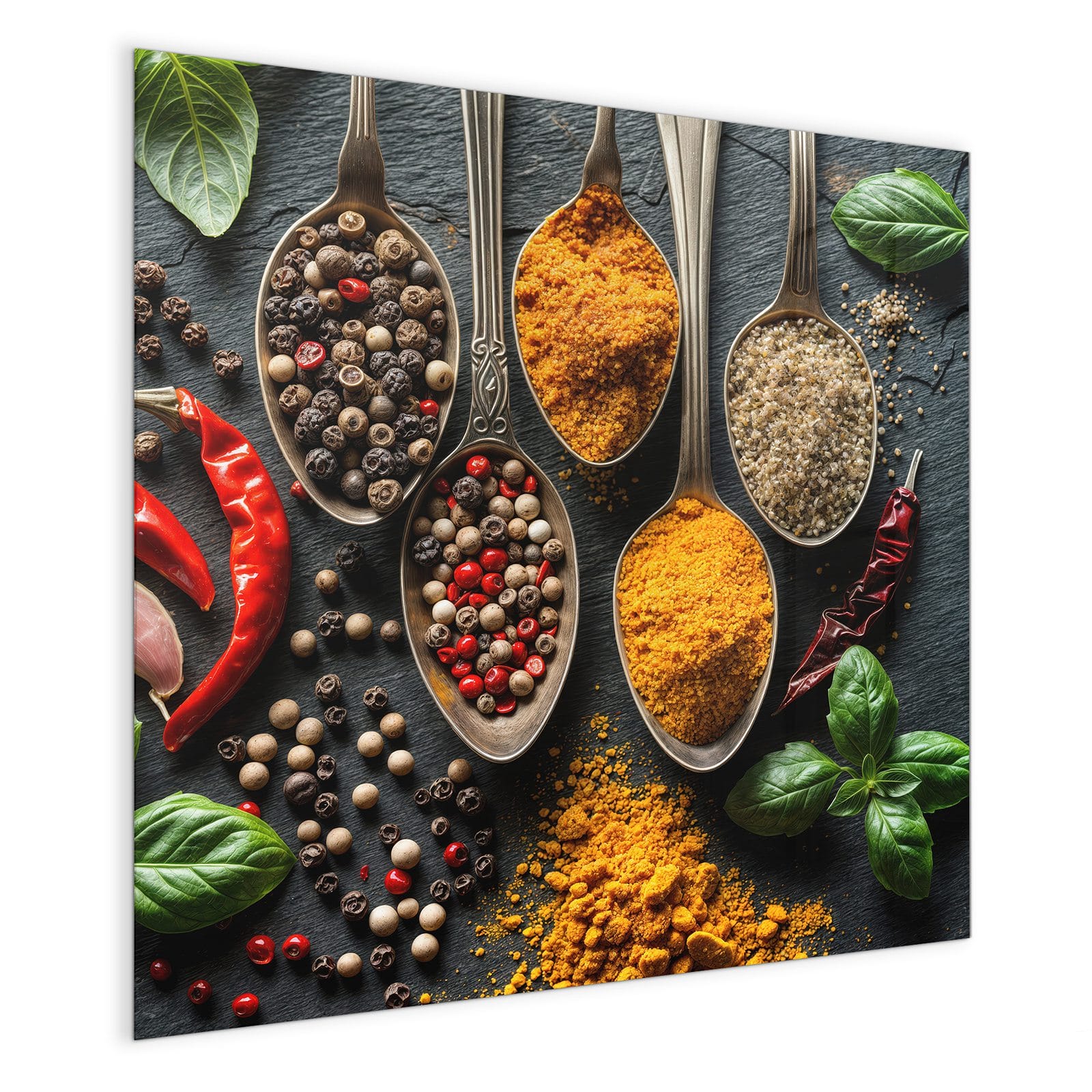 Mit einer Dicke von 4 mm besteht die Tafel aus gehärtetem Einscheibensicherheitsglas (ESG), das robust, kratzfest und UV-beständig ist. Das Motiv Küchengewürze wird in hoher Auflösung und mit präzisen Details auf das Glas gedruckt, was eine lebendige und dauerhafte Farbbrillanz garantiert. Die polierten Kanten sorgen für ein hochwertiges Erscheinungsbild und minimieren das Verletzungsrisiko.