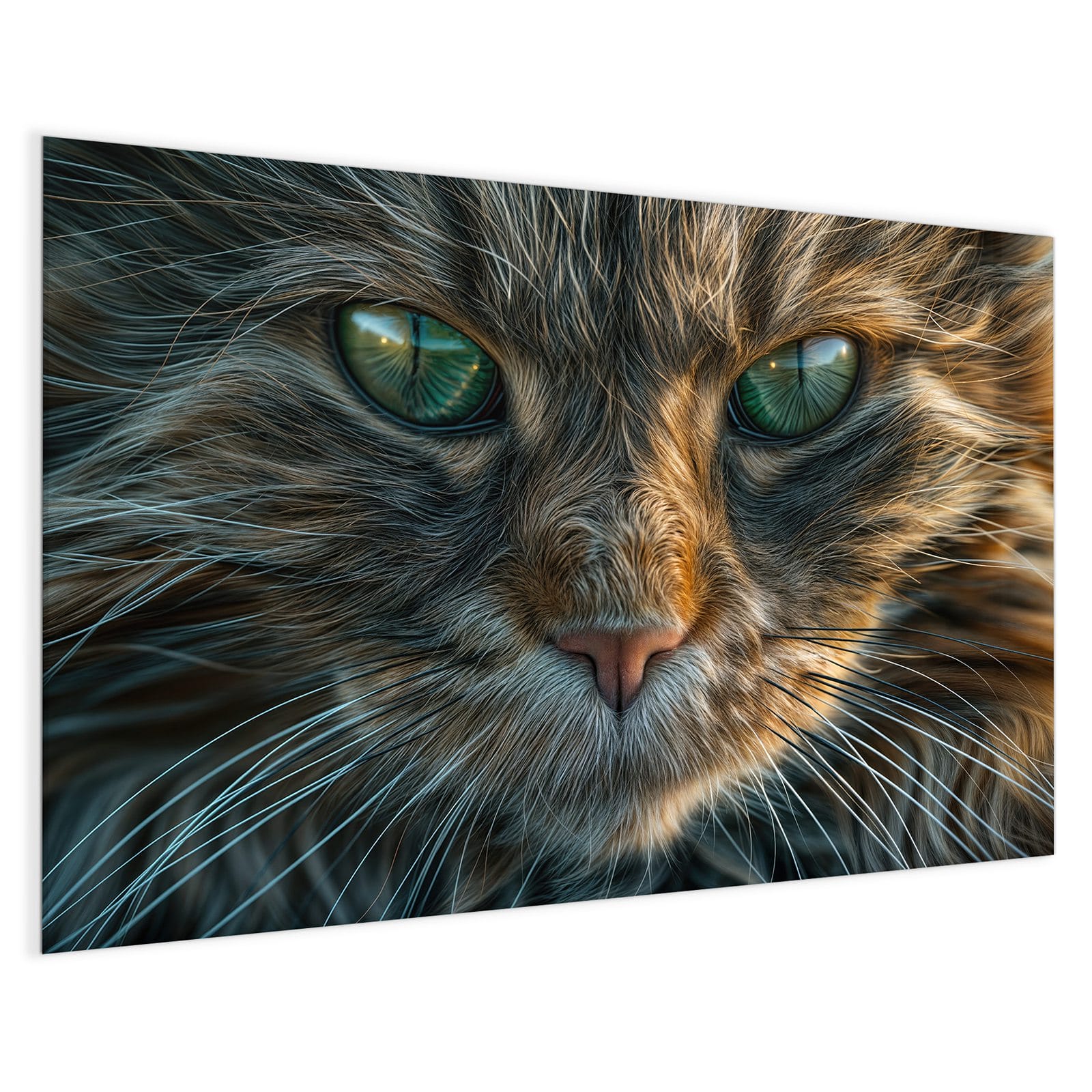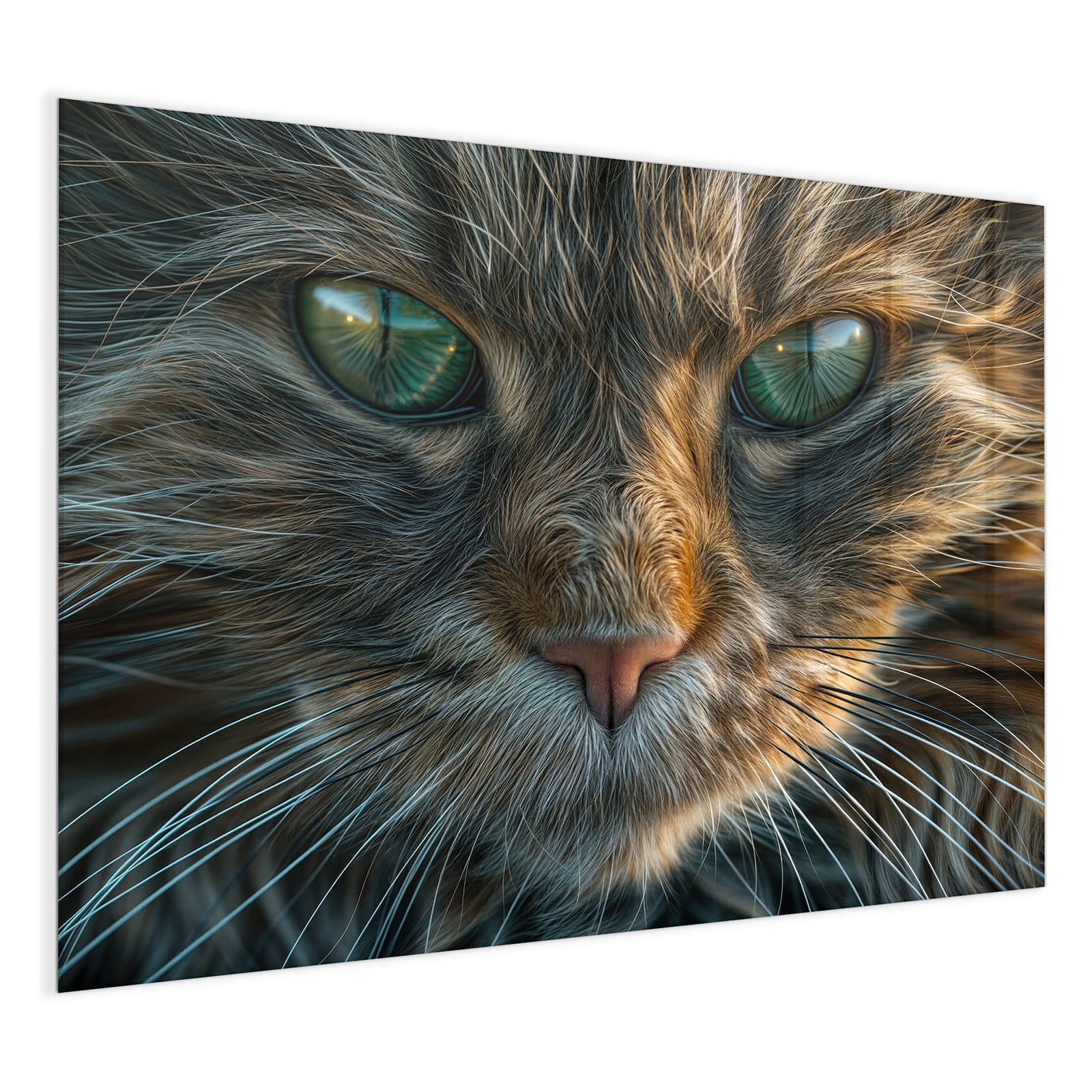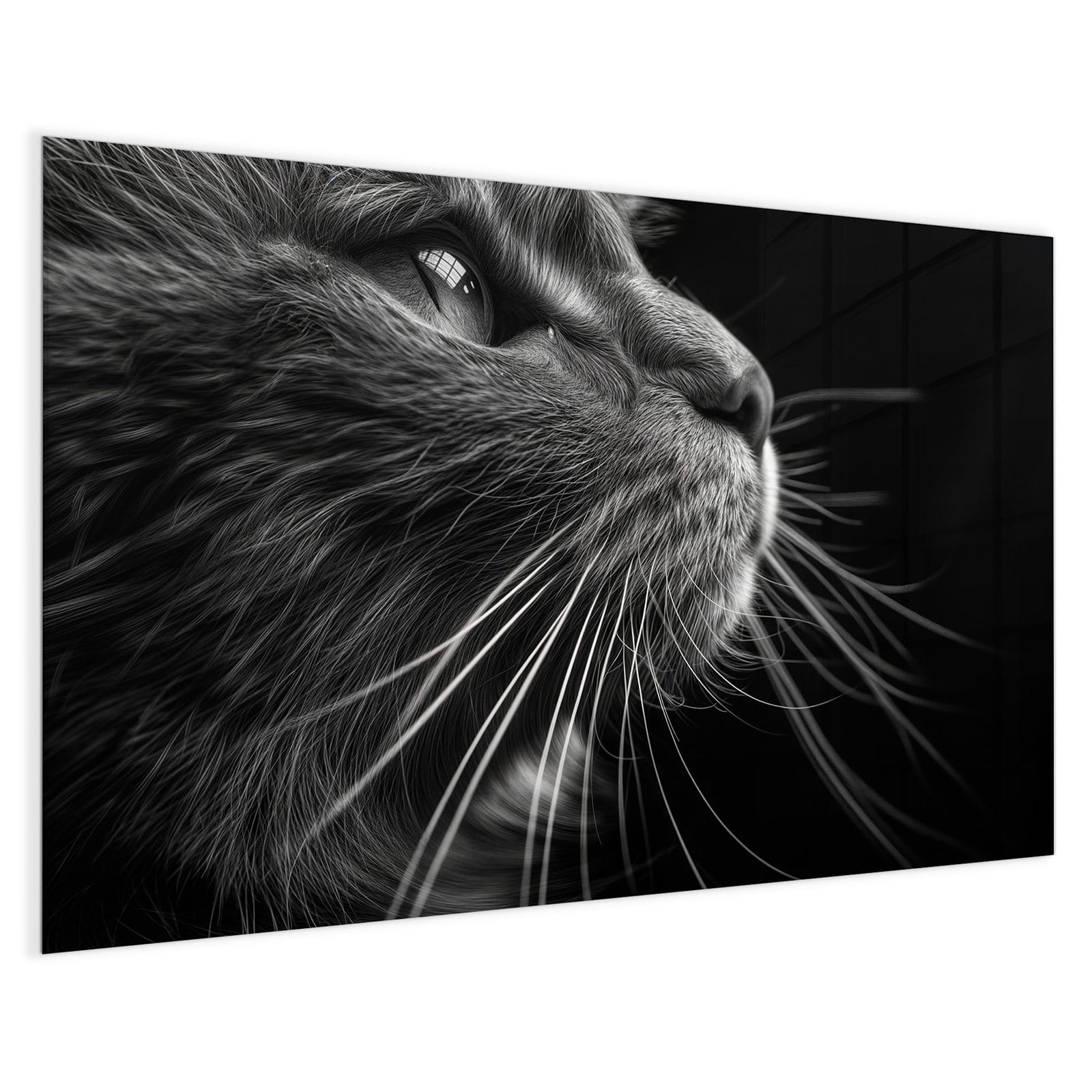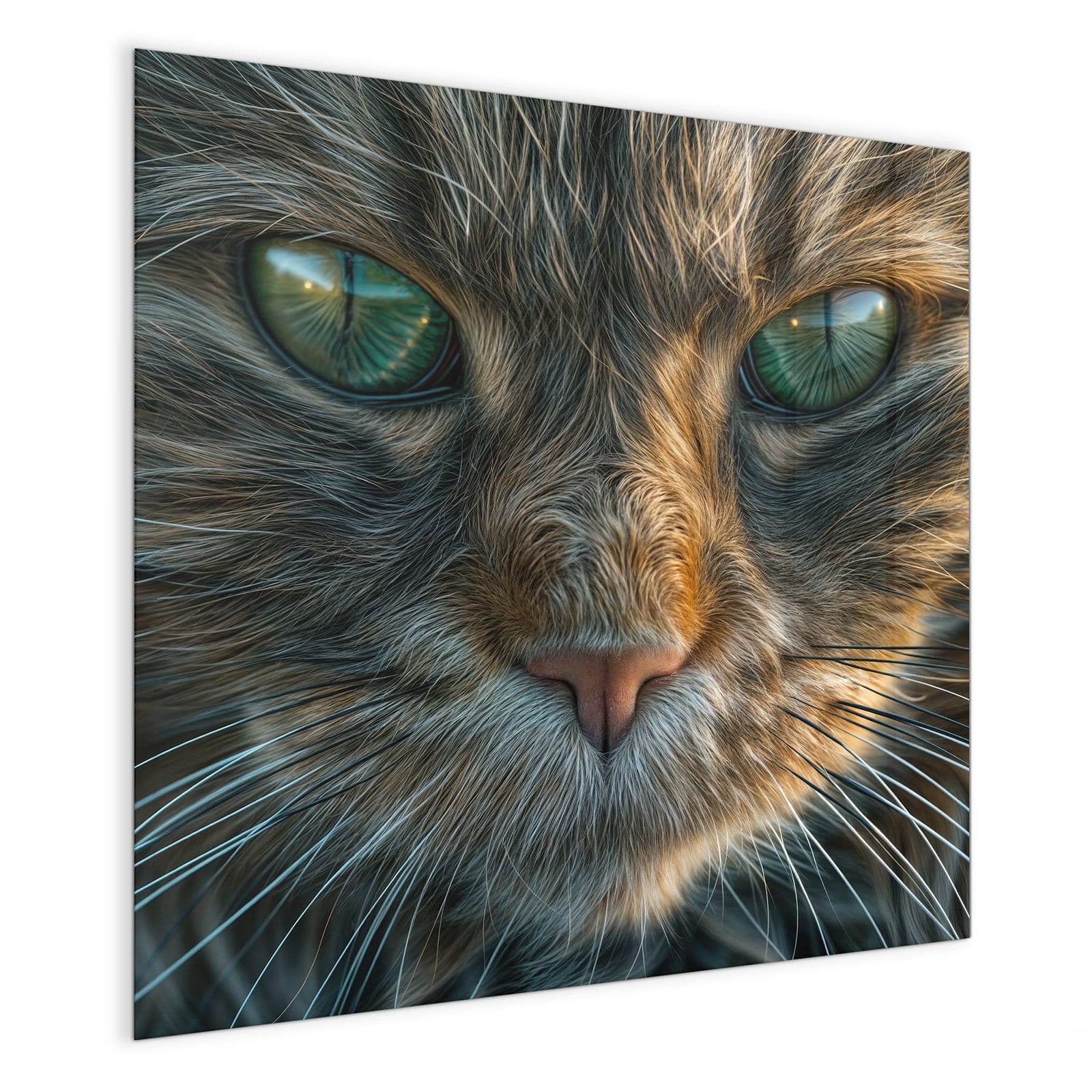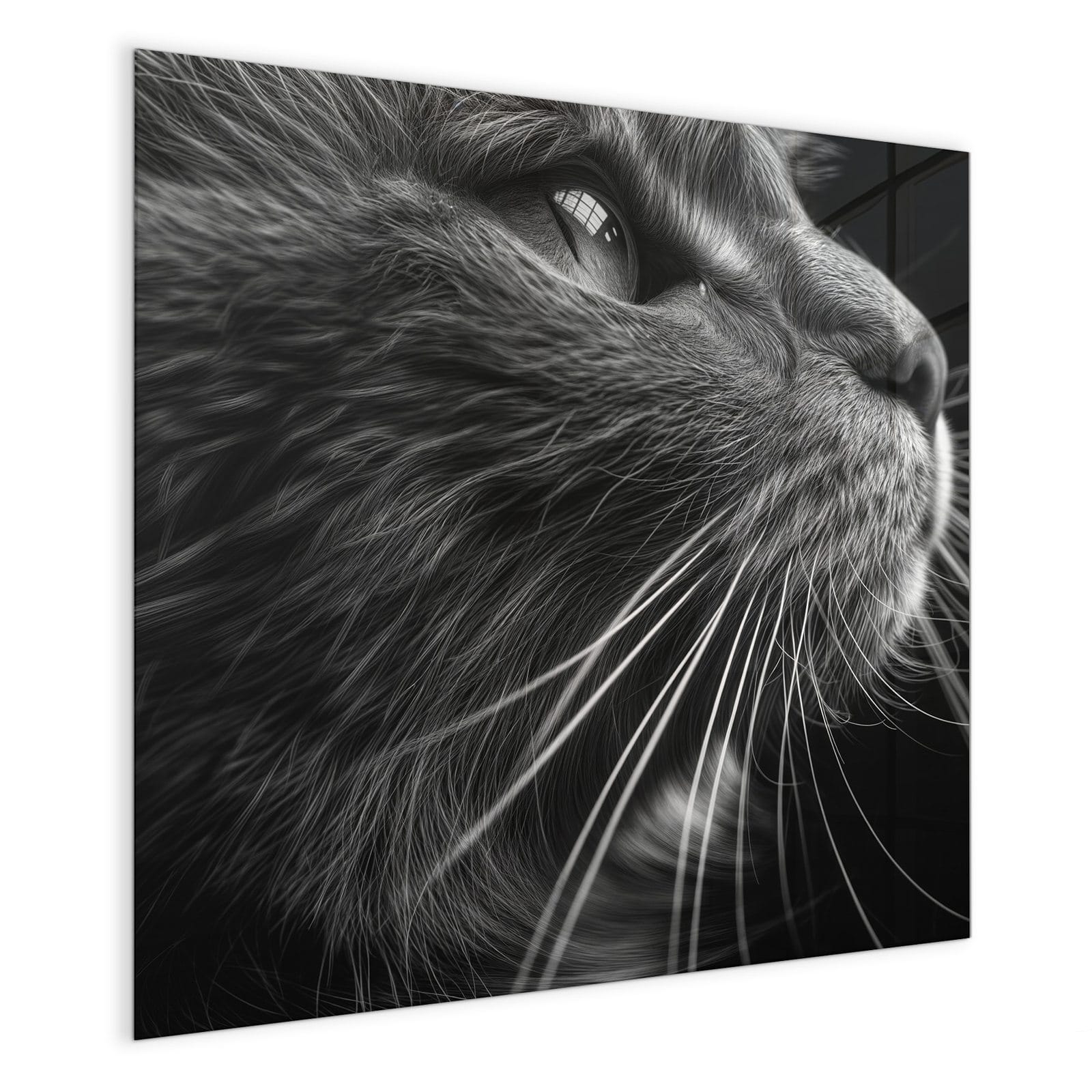 Mit einer Dicke von 4 mm besteht die Tafel aus gehärtetem Einscheibensicherheitsglas (ESG), das robust, kratzfest und UV-beständig ist. Das Motiv Nahaufnahme Katze wird in hoher Auflösung und mit präzisen Details auf das Glas gedruckt, was eine lebendige und dauerhafte Farbbrillanz garantiert. Die polierten Kanten sorgen für ein hochwertiges Erscheinungsbild und minimieren das Verletzungsrisiko.