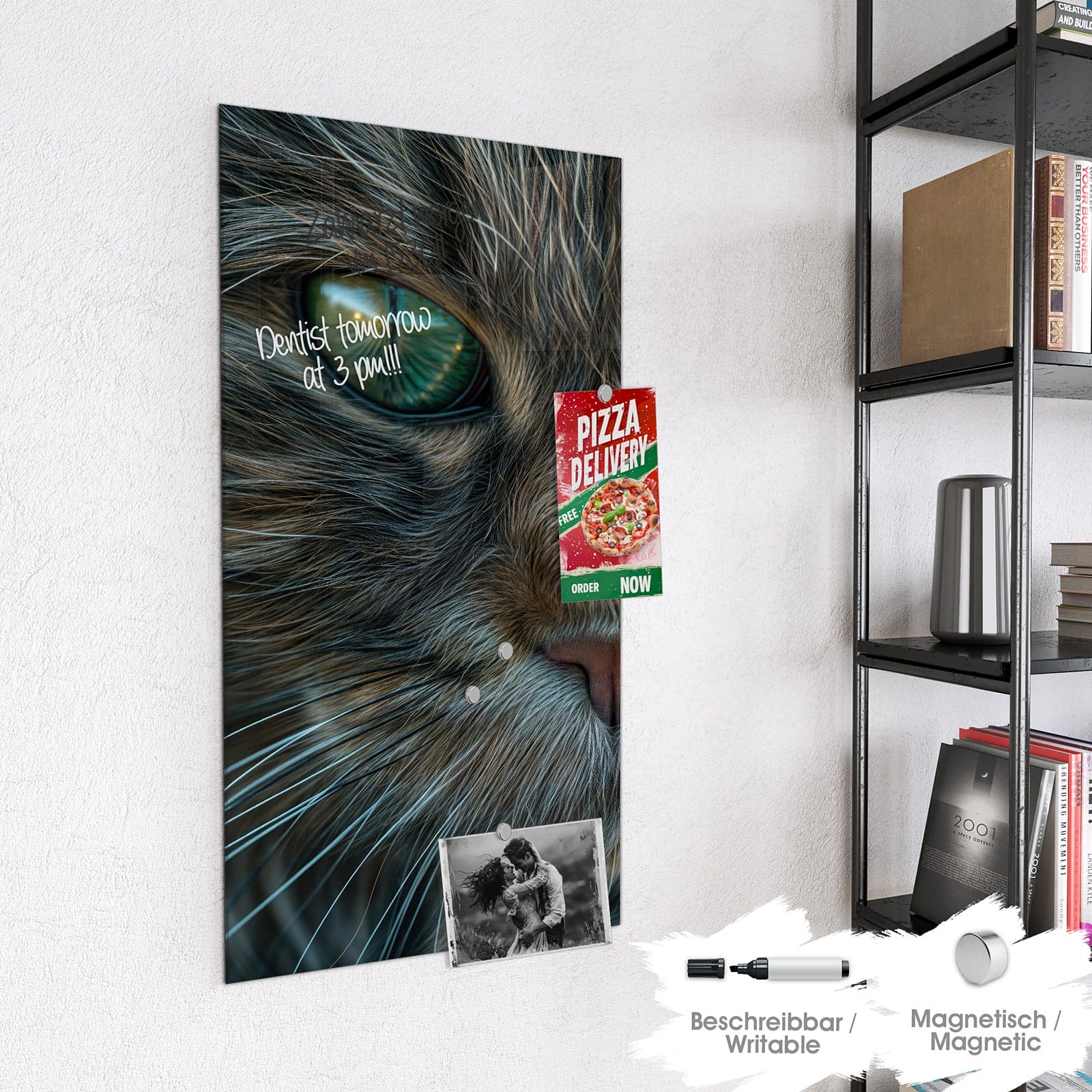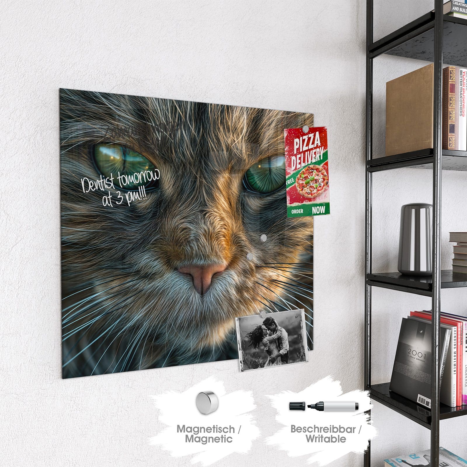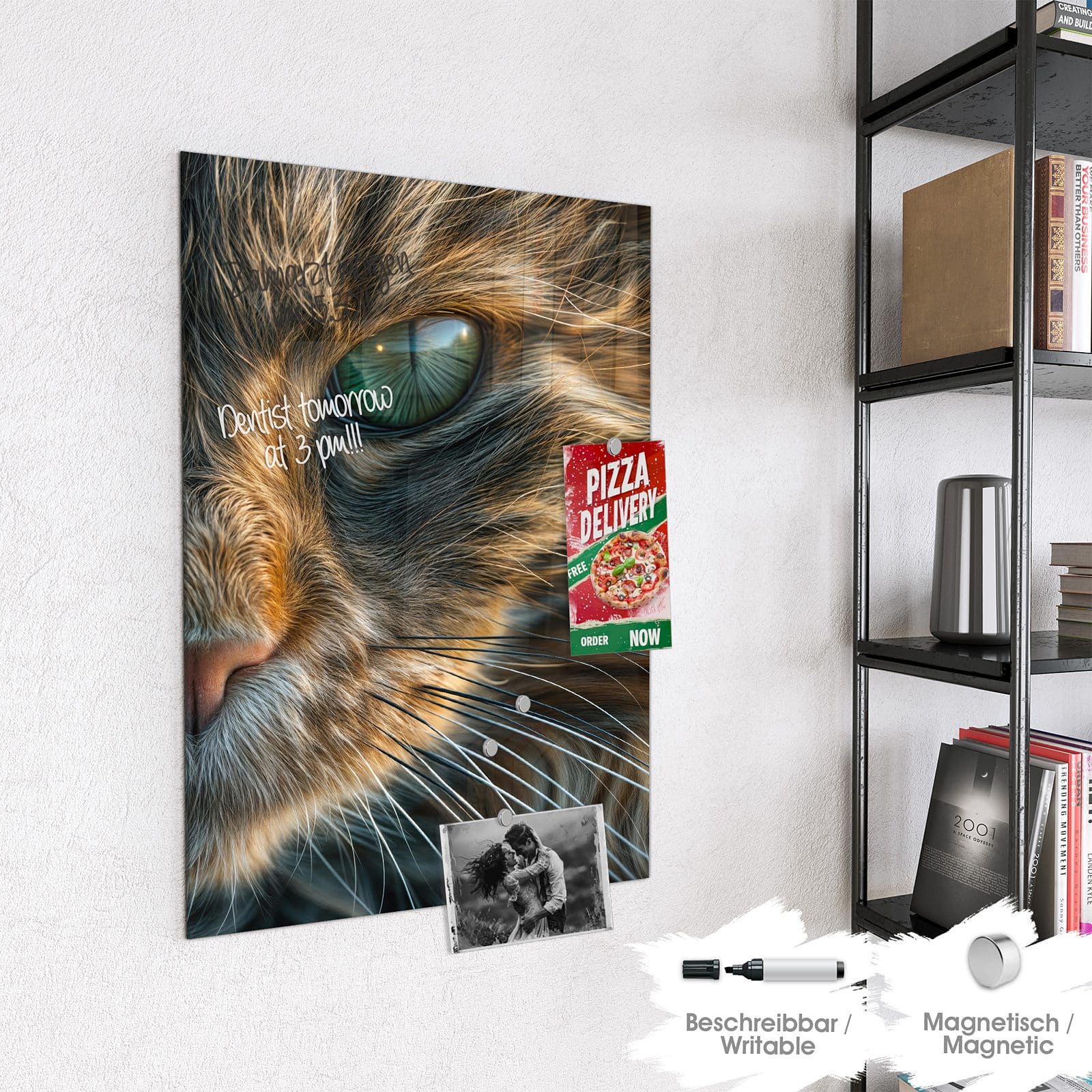 Stilvolle Glas-Magnettafel für Ihr Zuhause - Motiv Nahaufnahme Katze