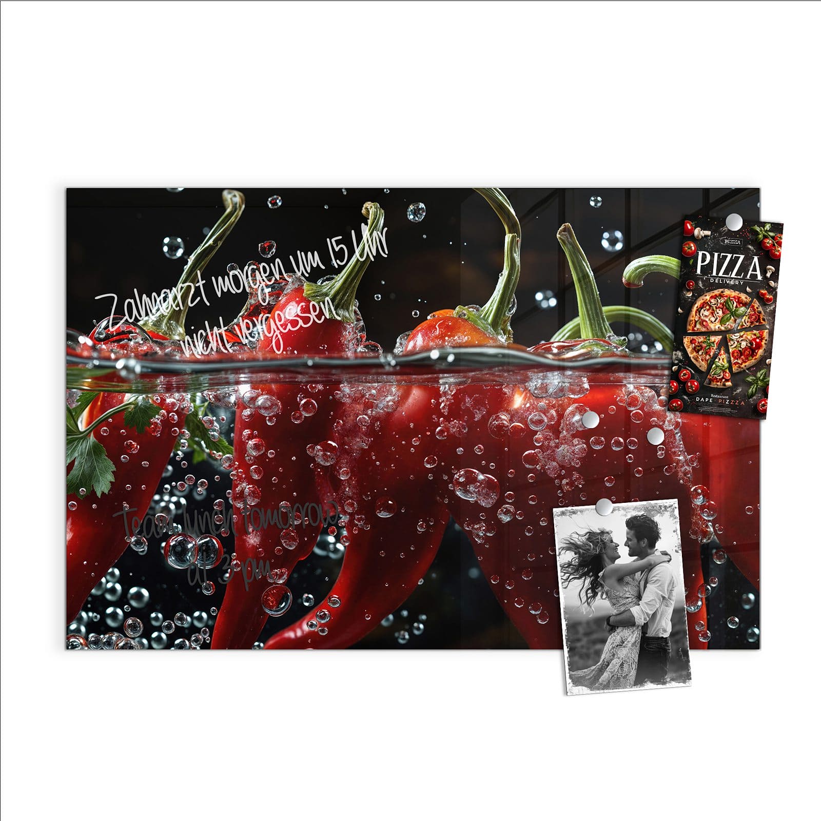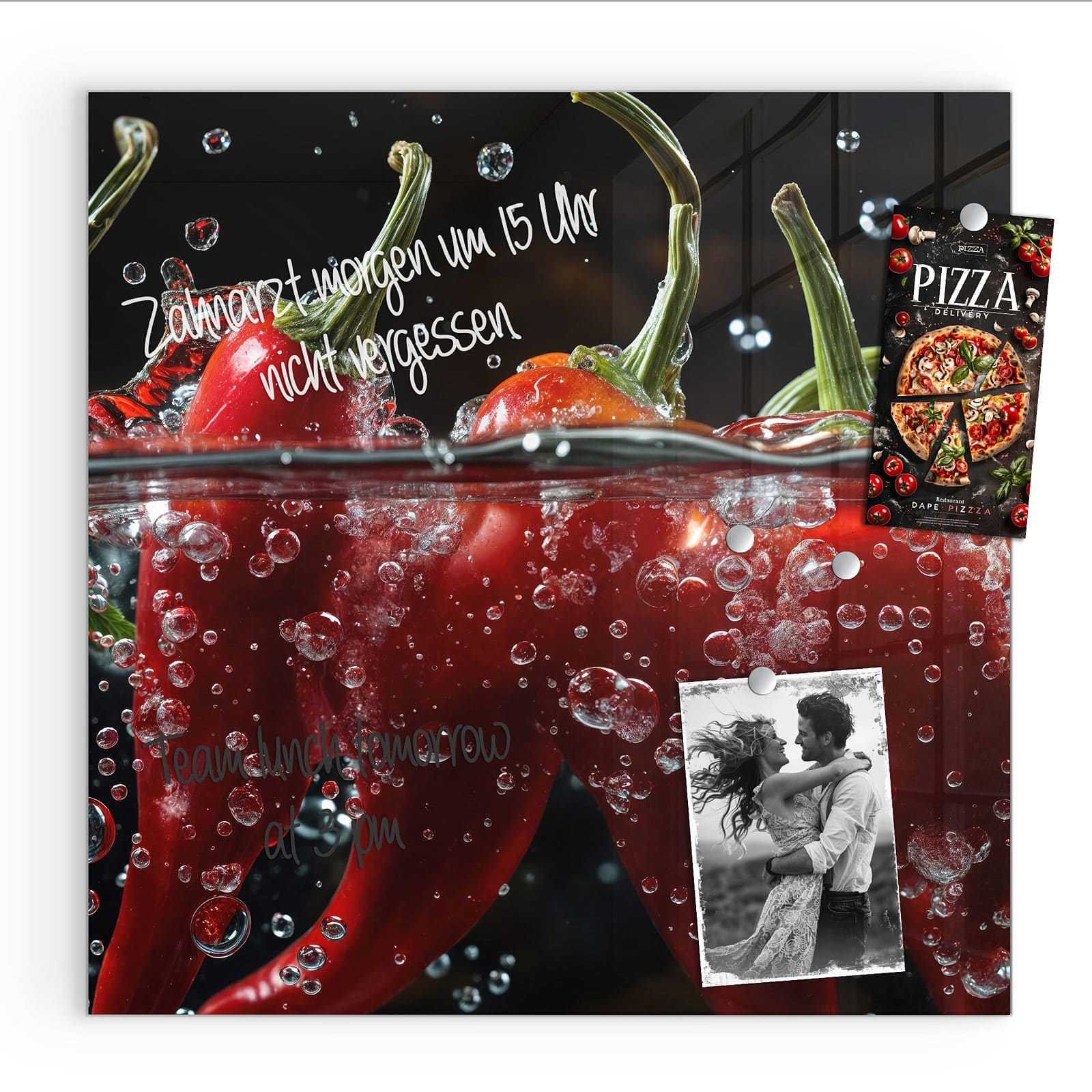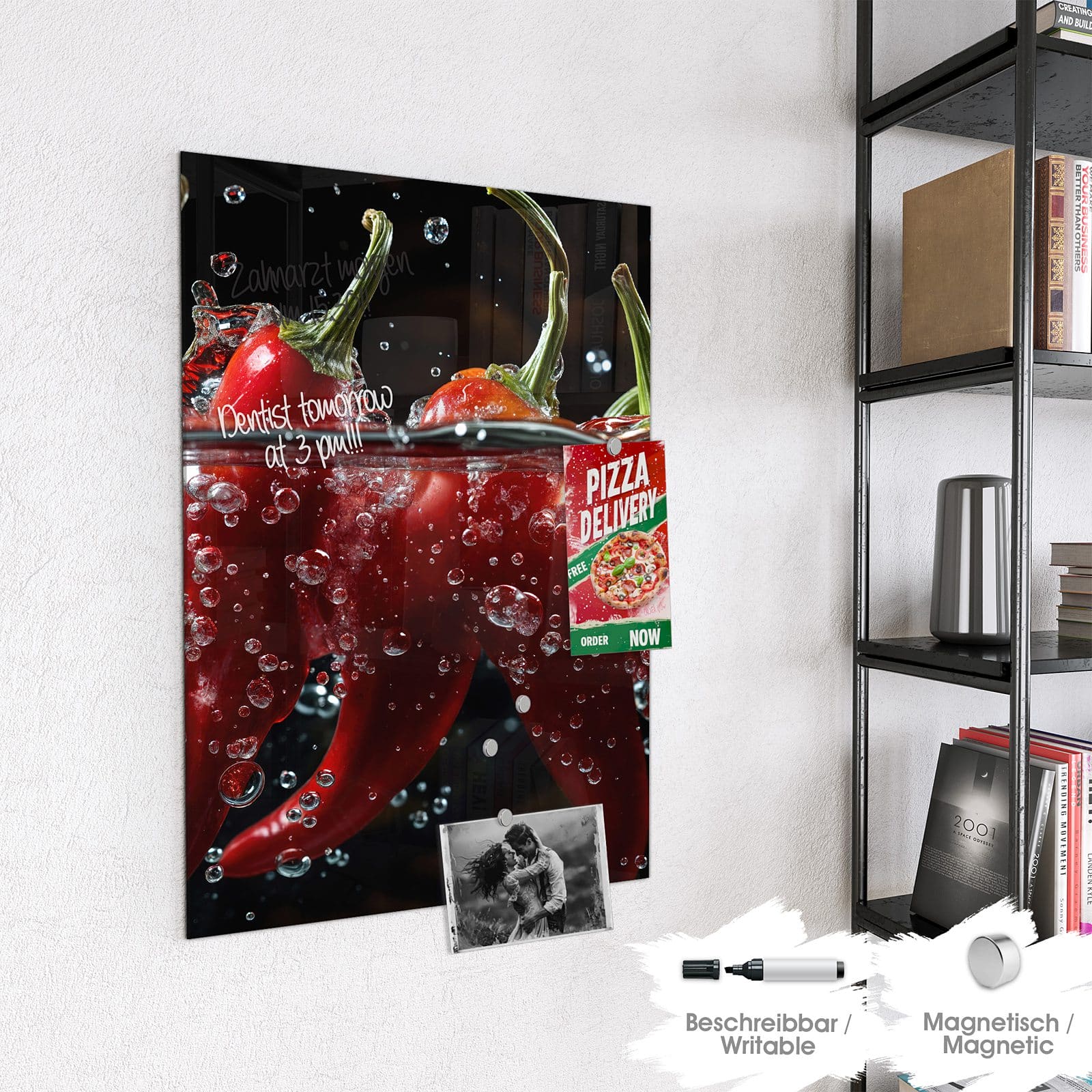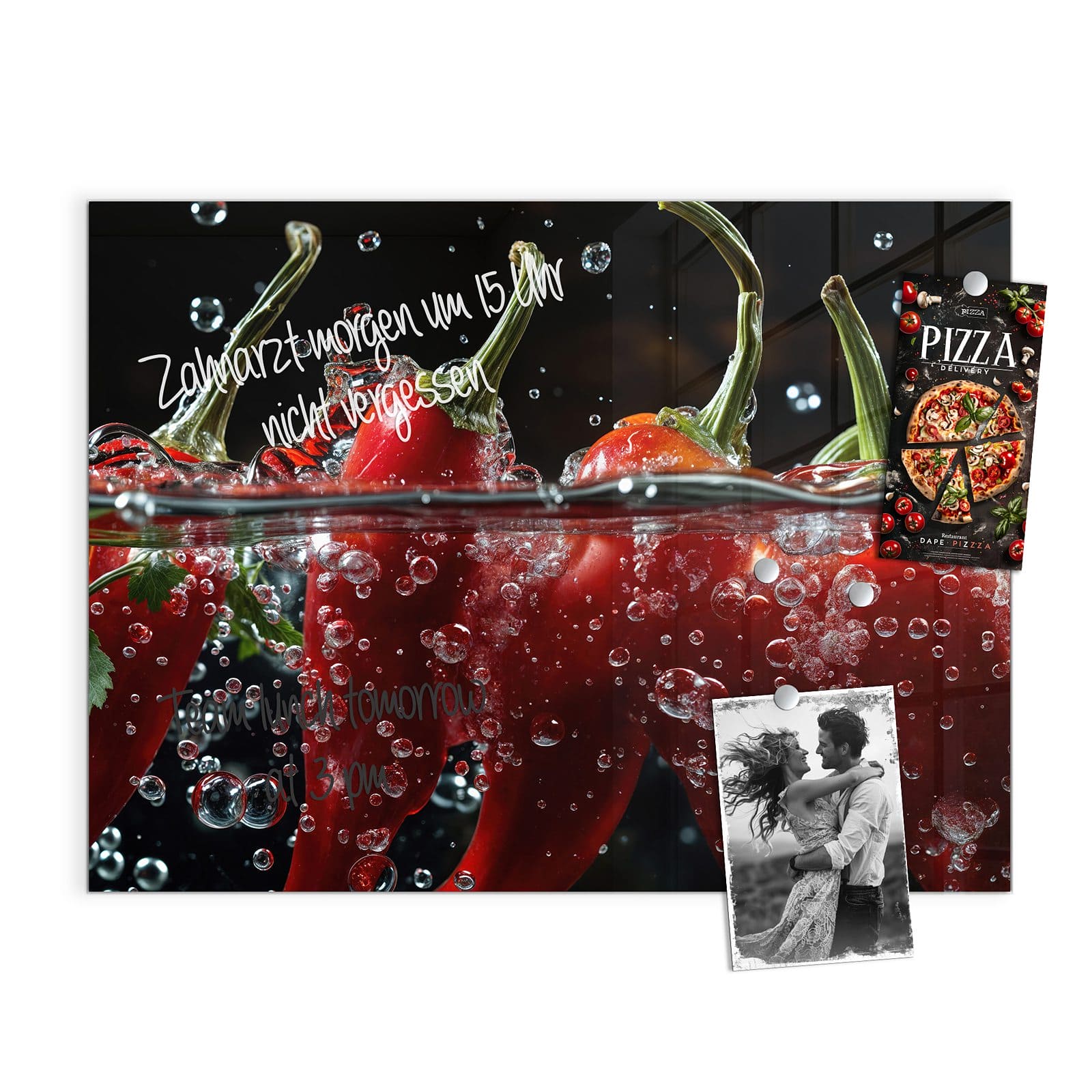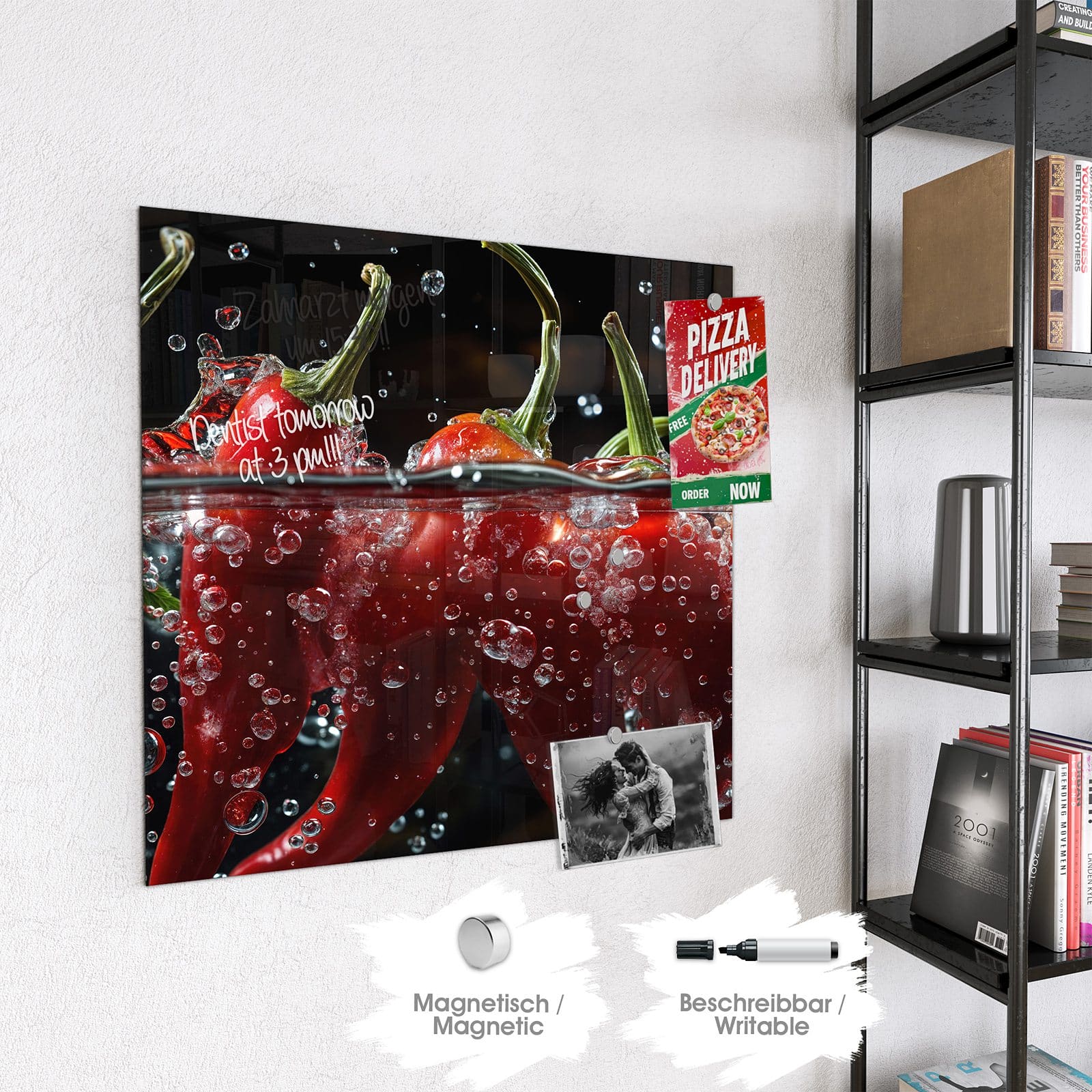Stilvolle Glas-Magnettafel für Ihr Zuhause - Motiv Paprika im Wasser