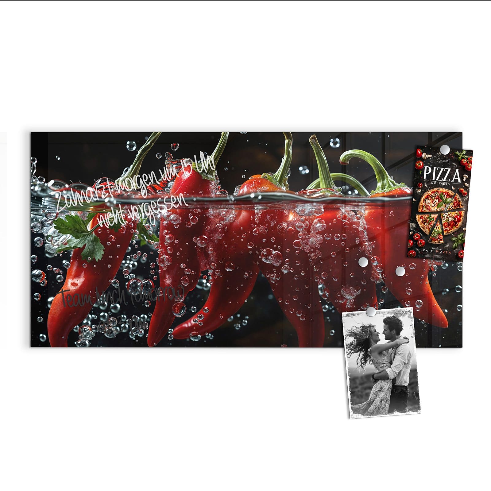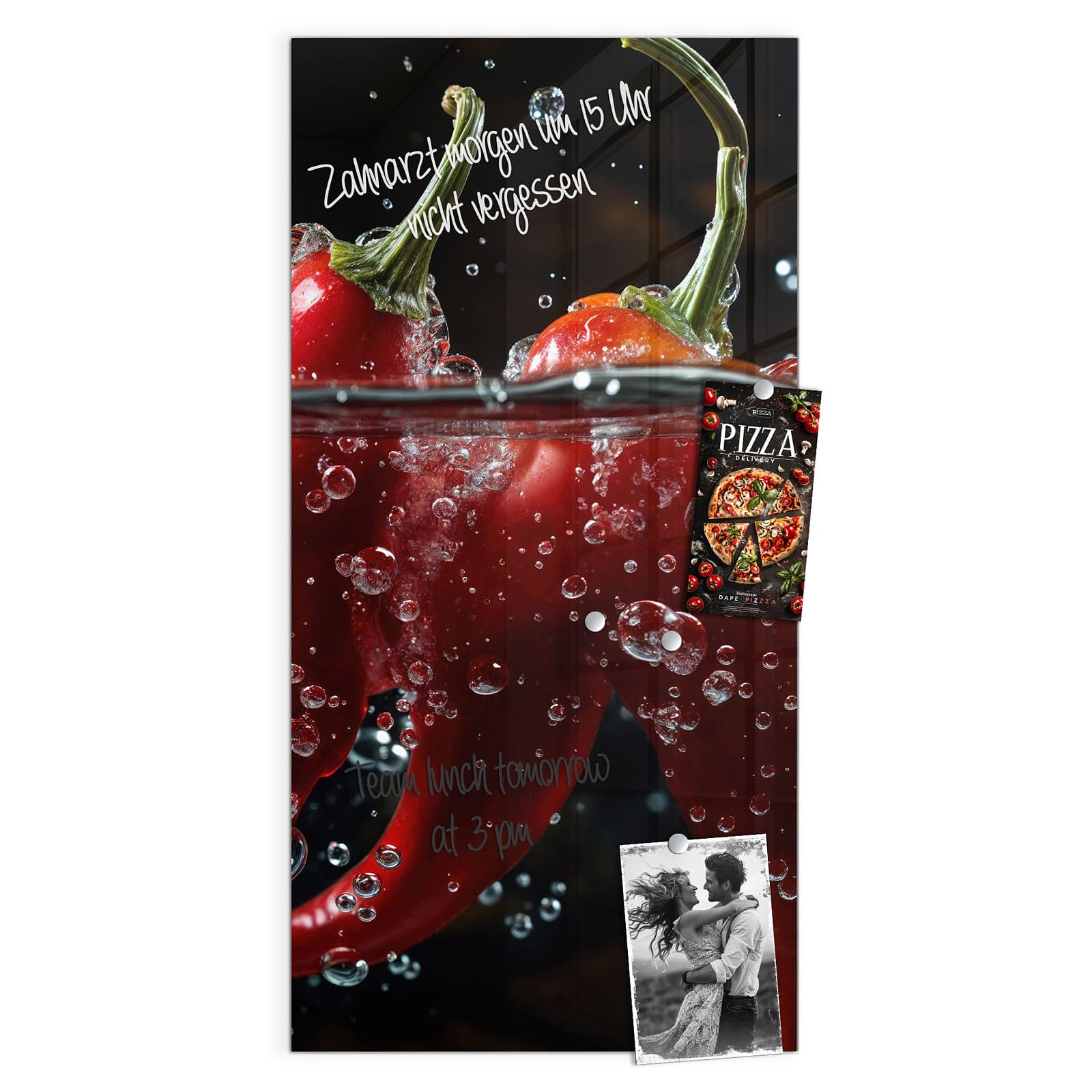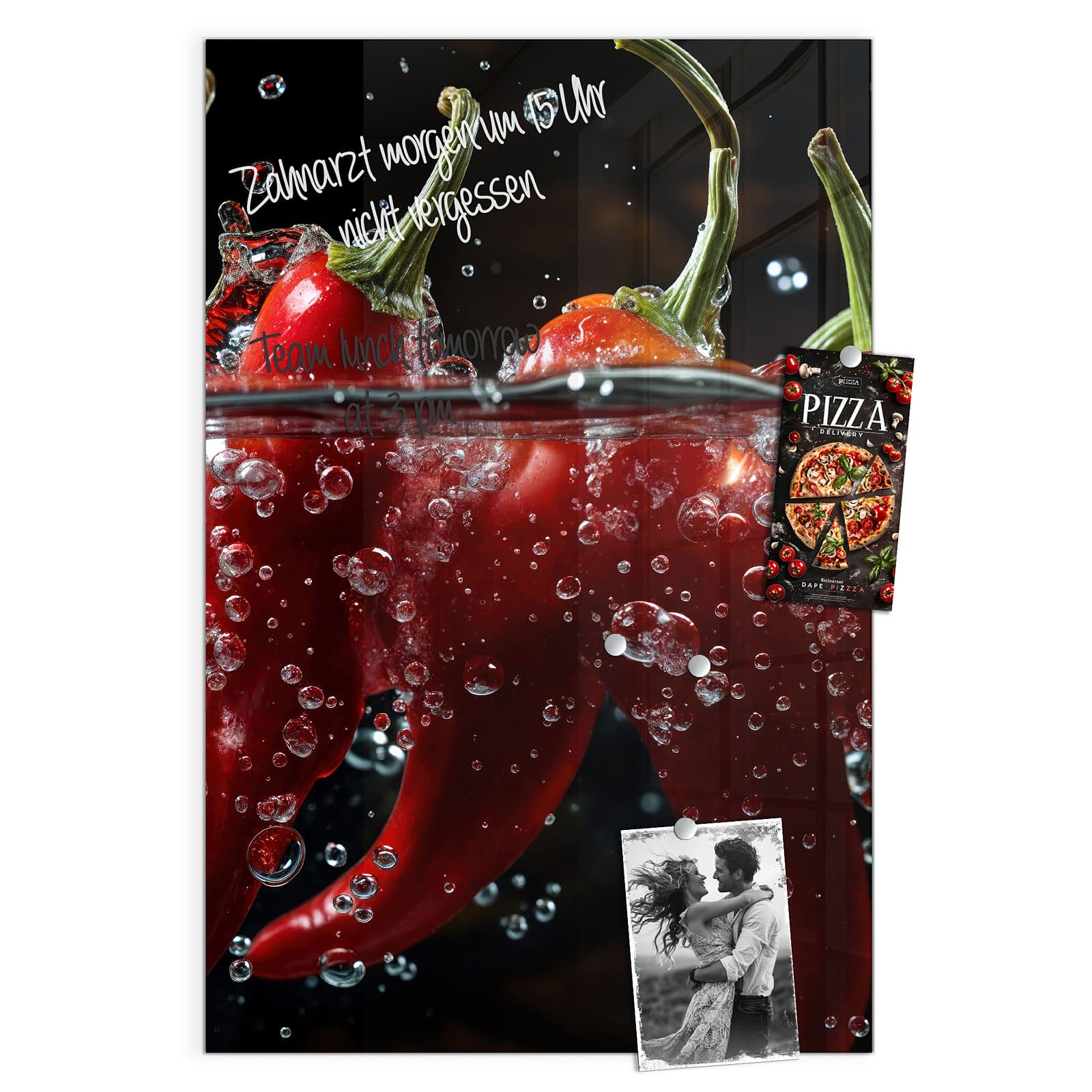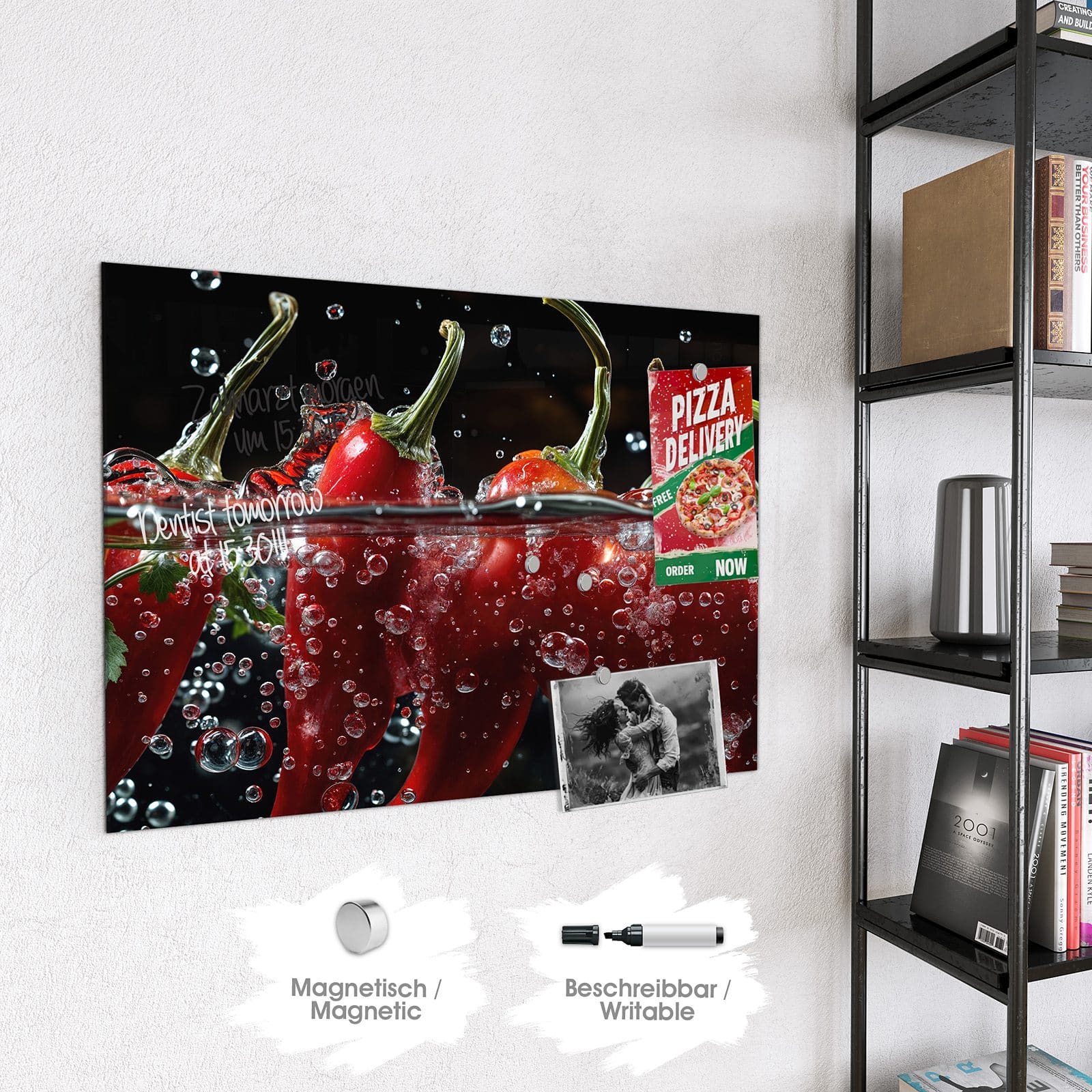 Stilvolle Glas-Magnettafel für Ihr Zuhause - Motiv Paprika im Wasser