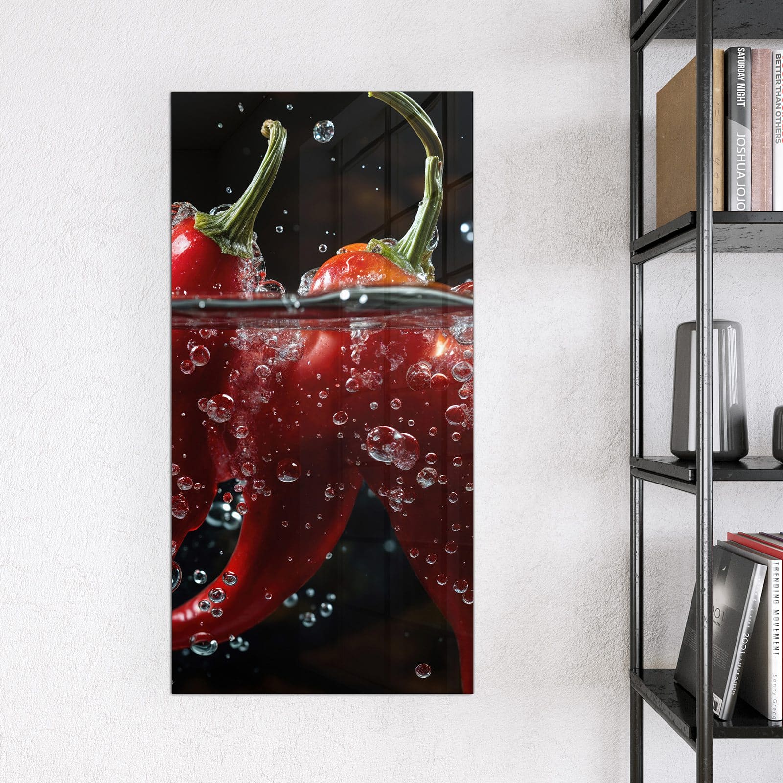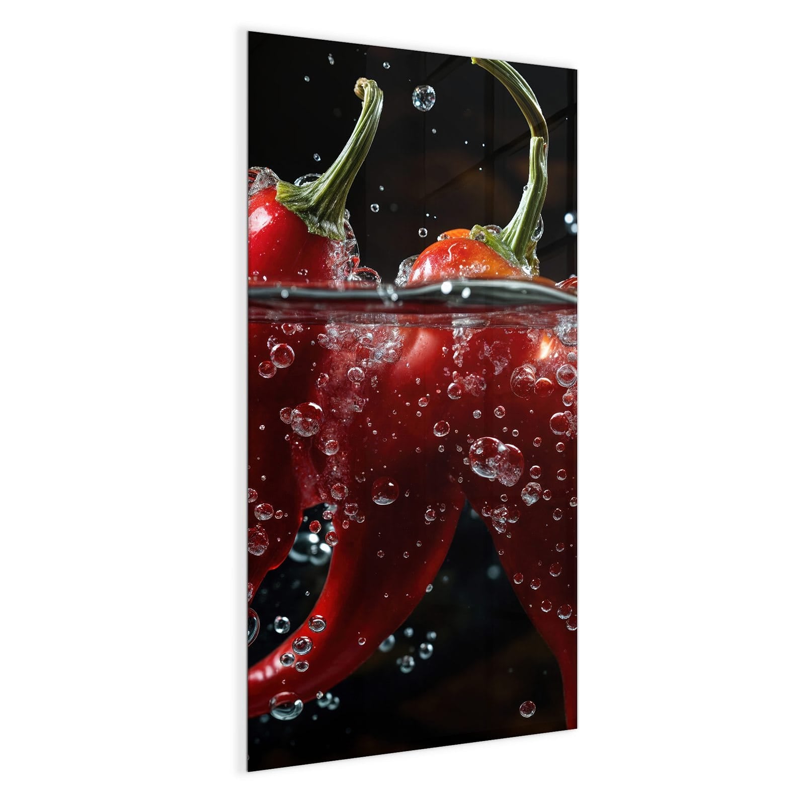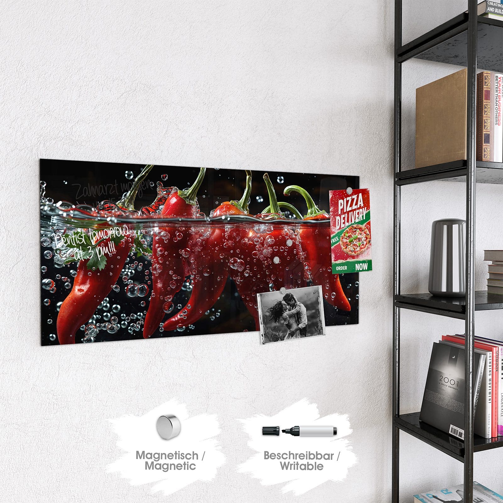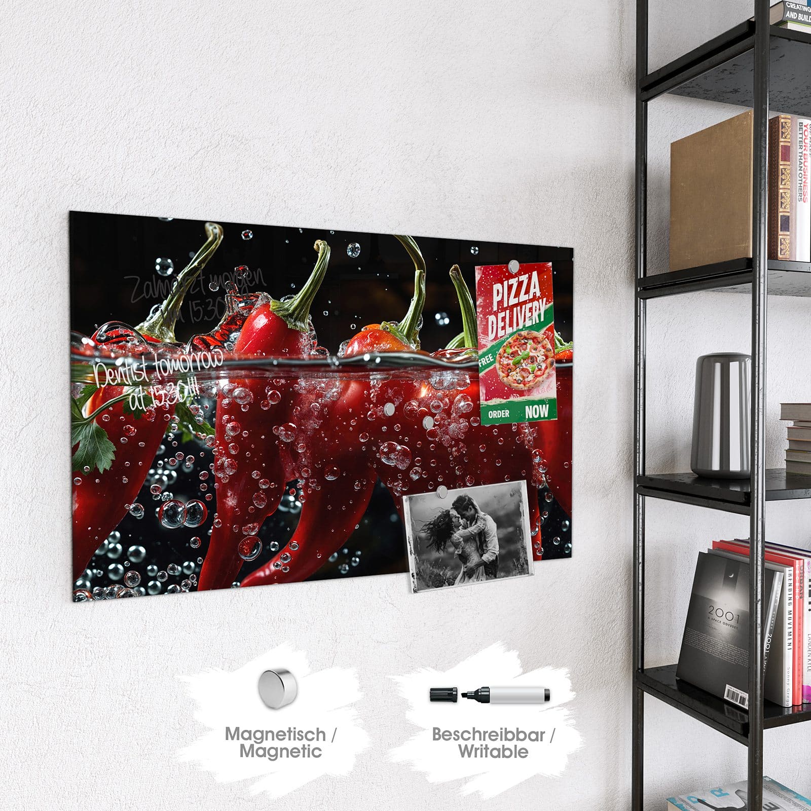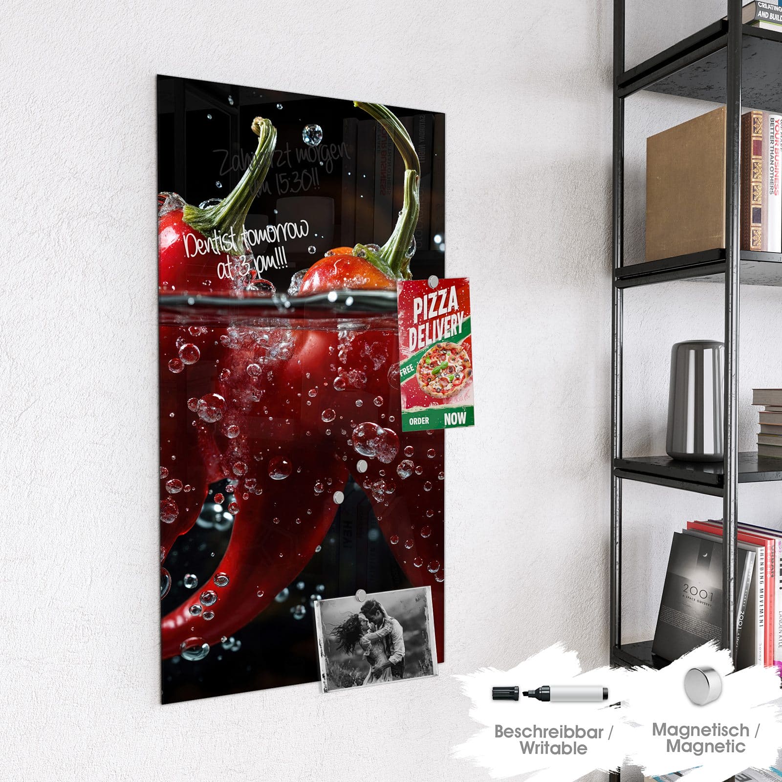 Stilvolle Glas-Magnettafel für Ihr Zuhause - Motiv Paprika im Wasser