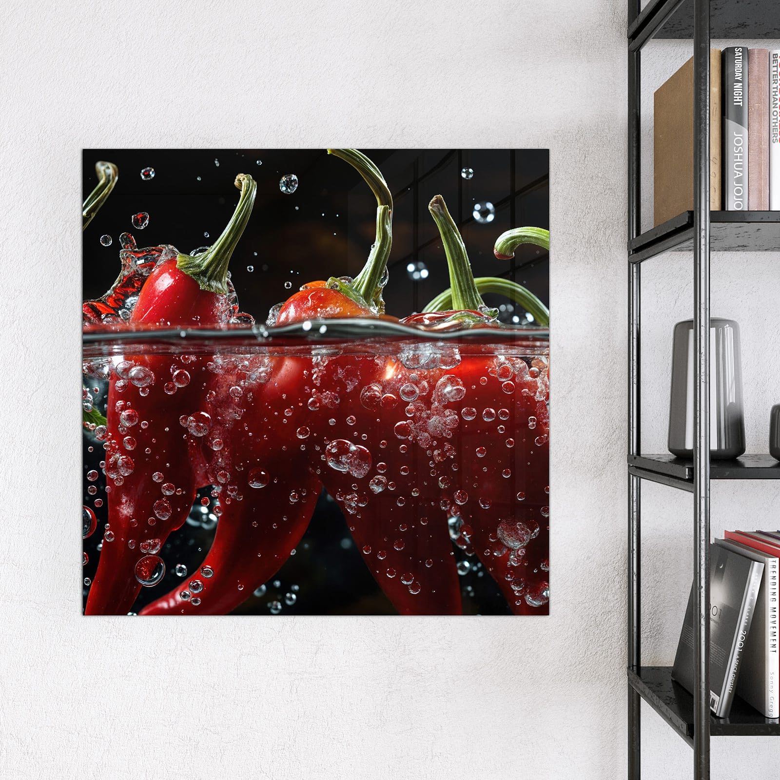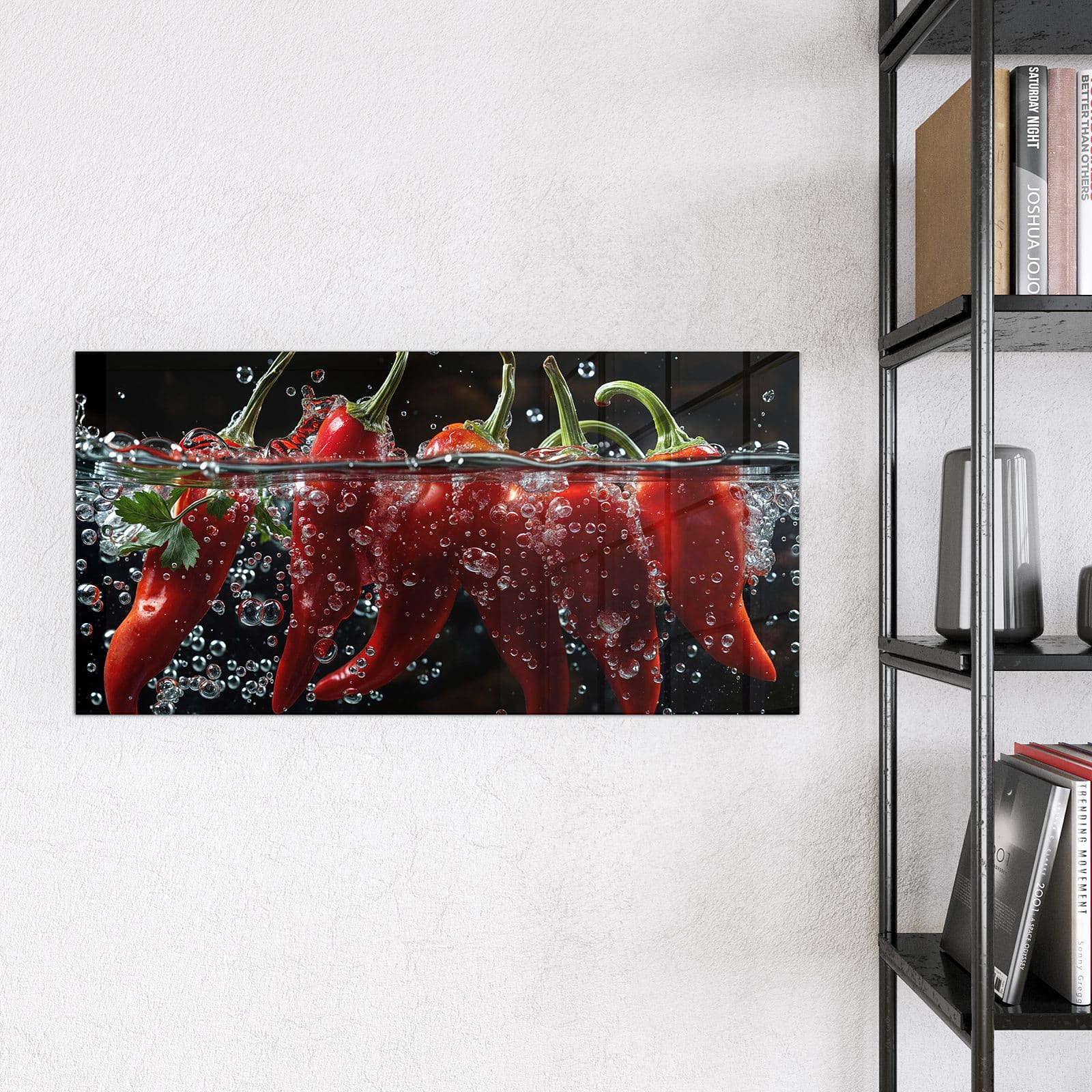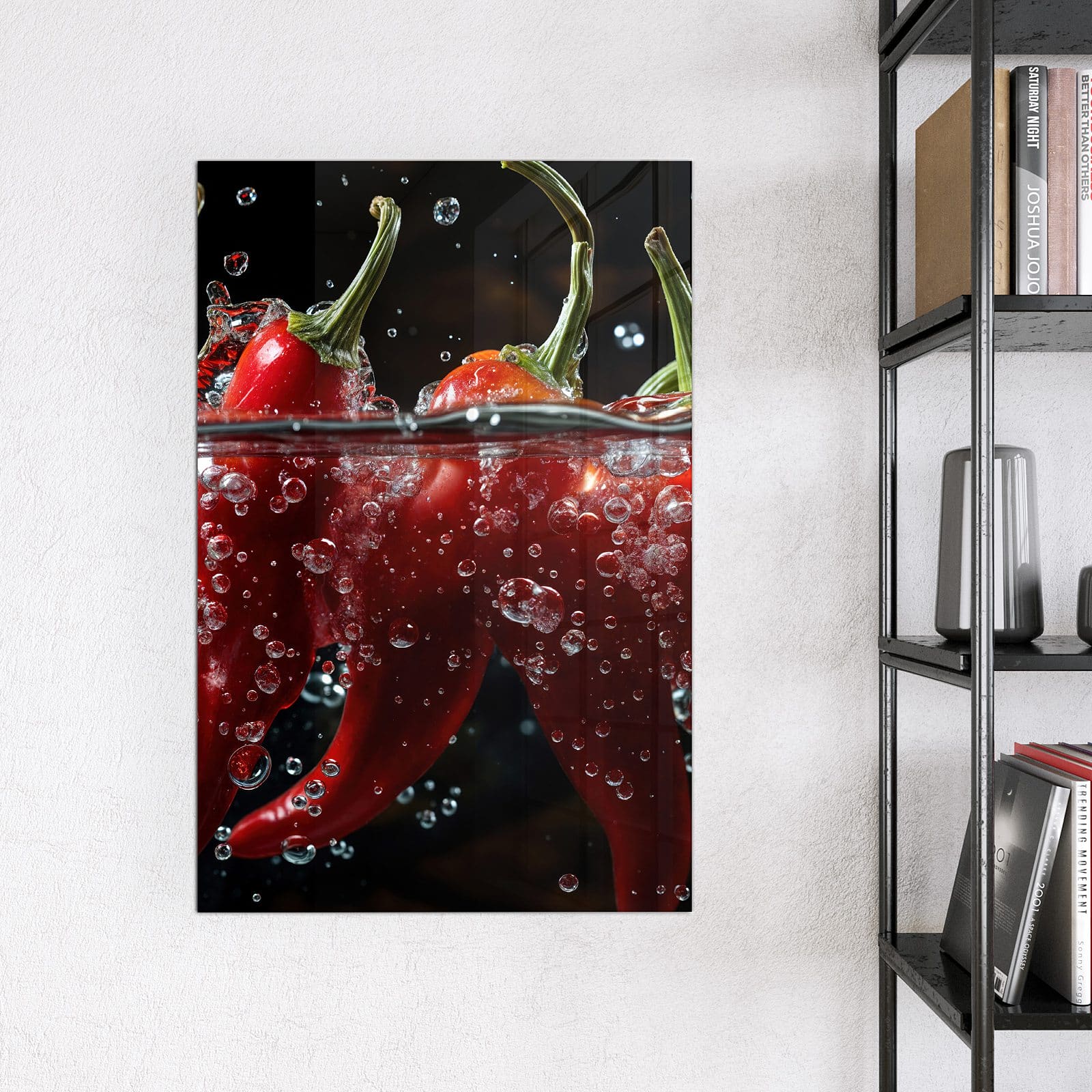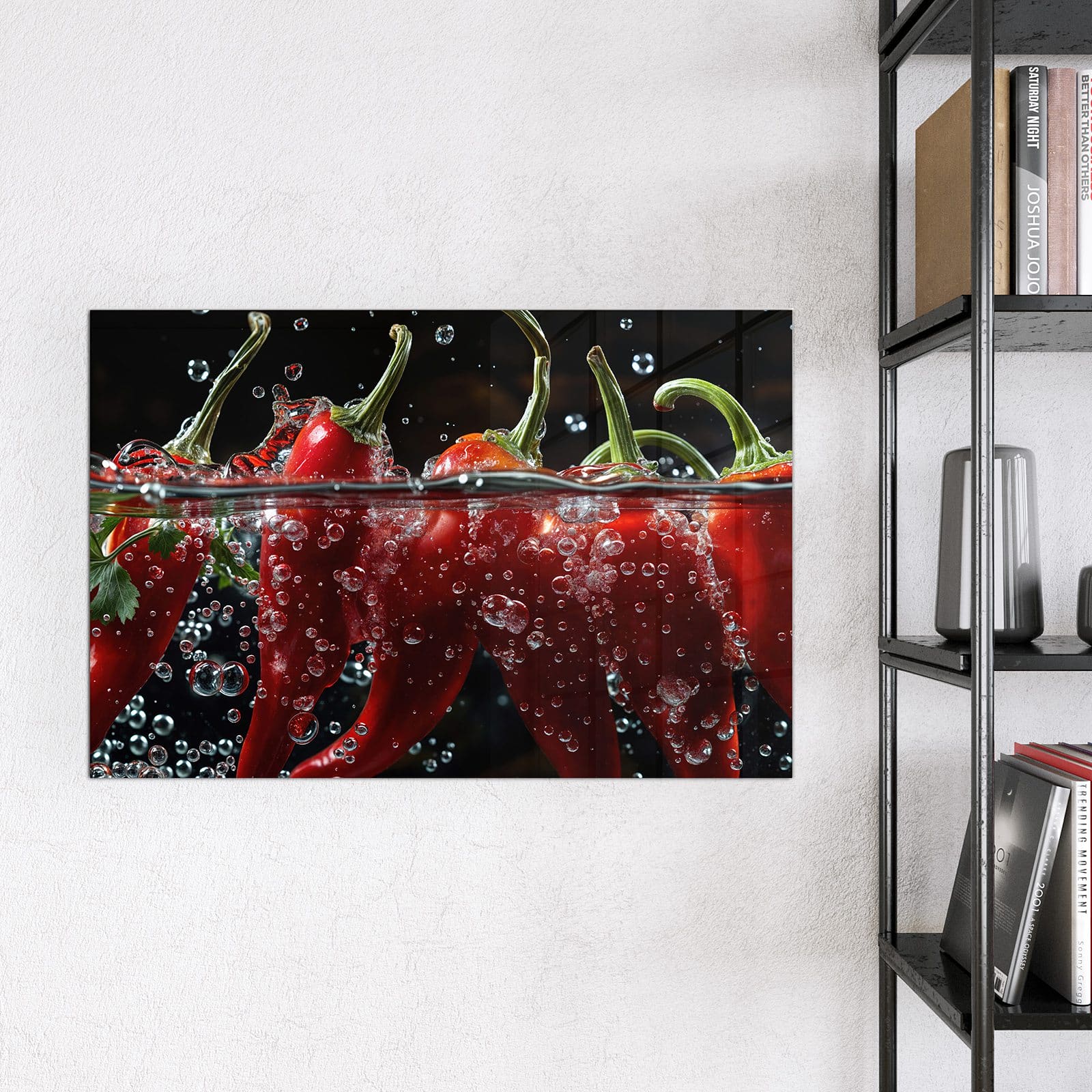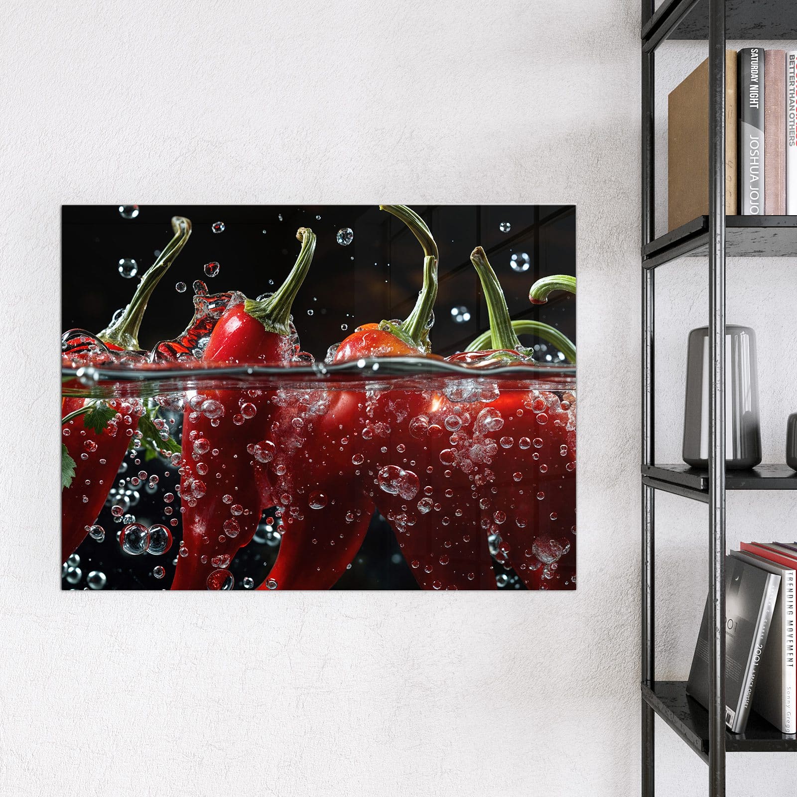 Stilvolle Glas-Magnettafel für Ihr Zuhause - Motiv Paprika im Wasser