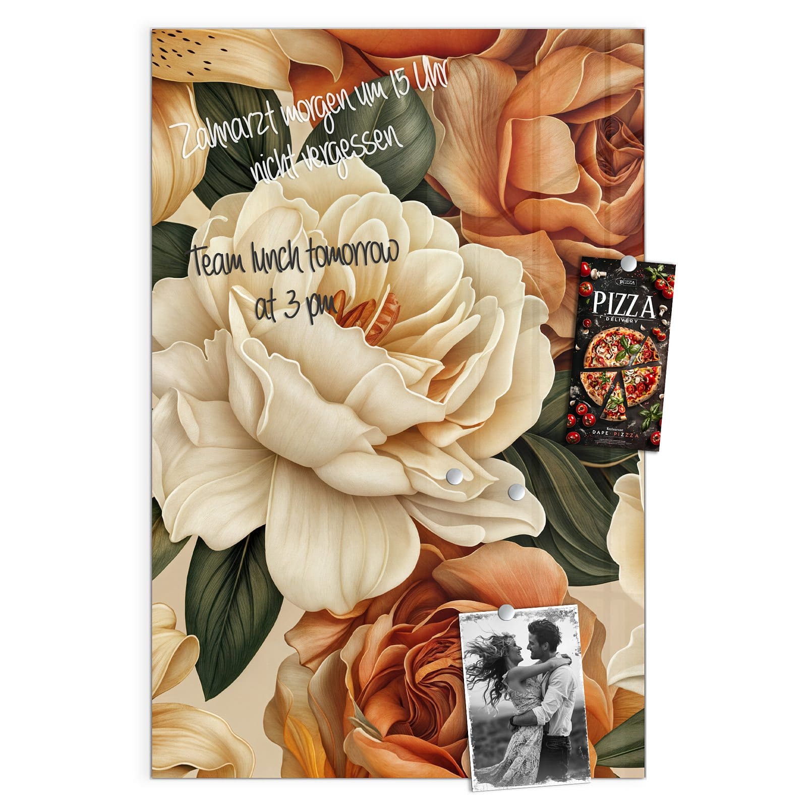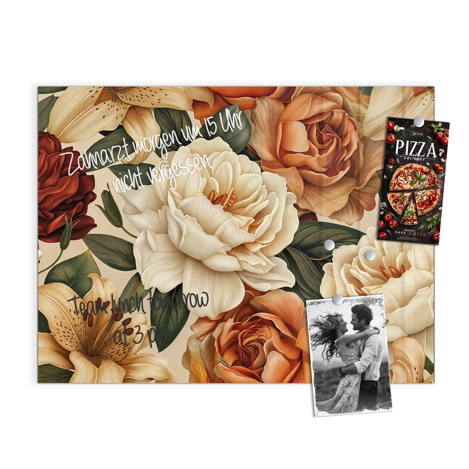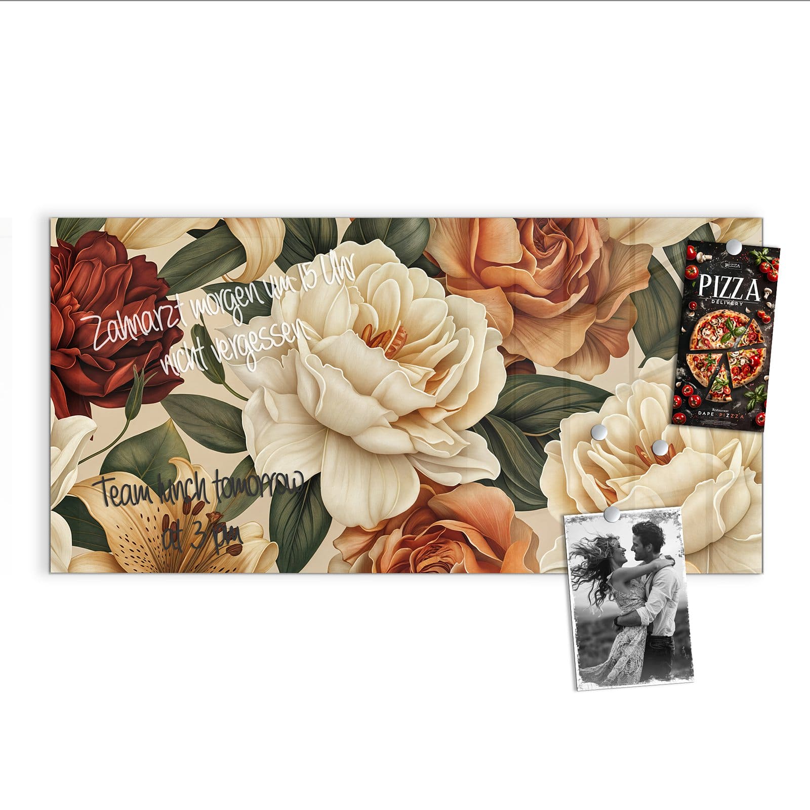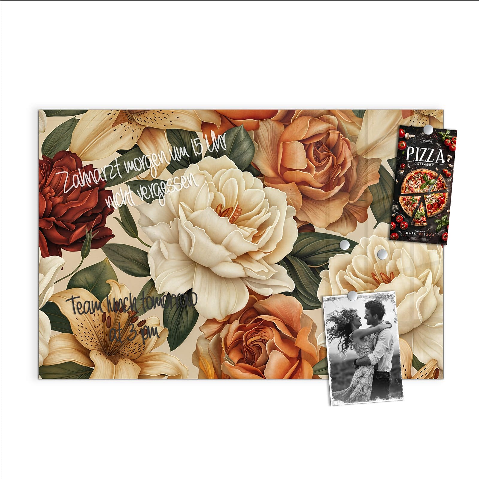 Stilvolle Glas-Magnettafel für Ihr Zuhause - Motiv Sanfte Blumenpracht