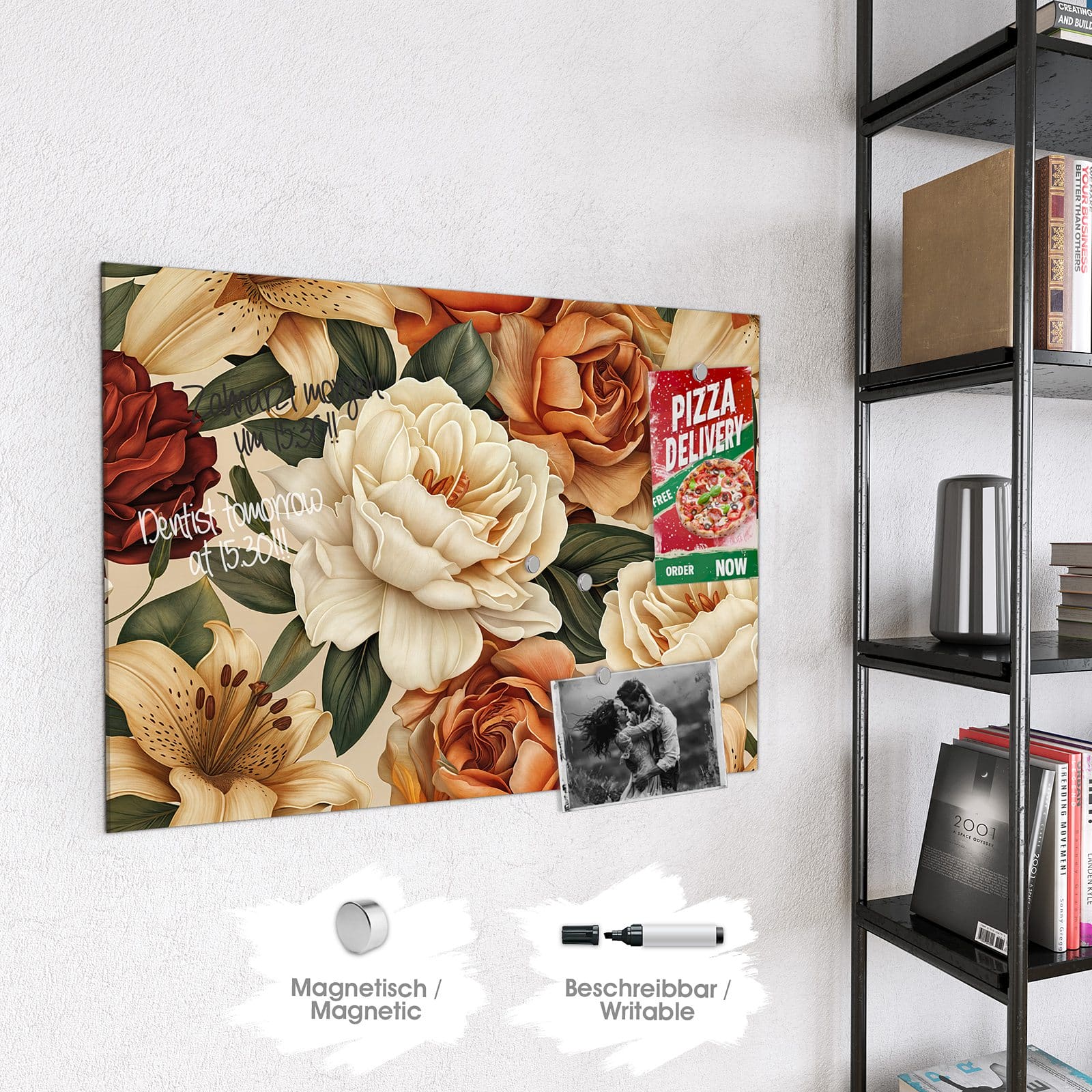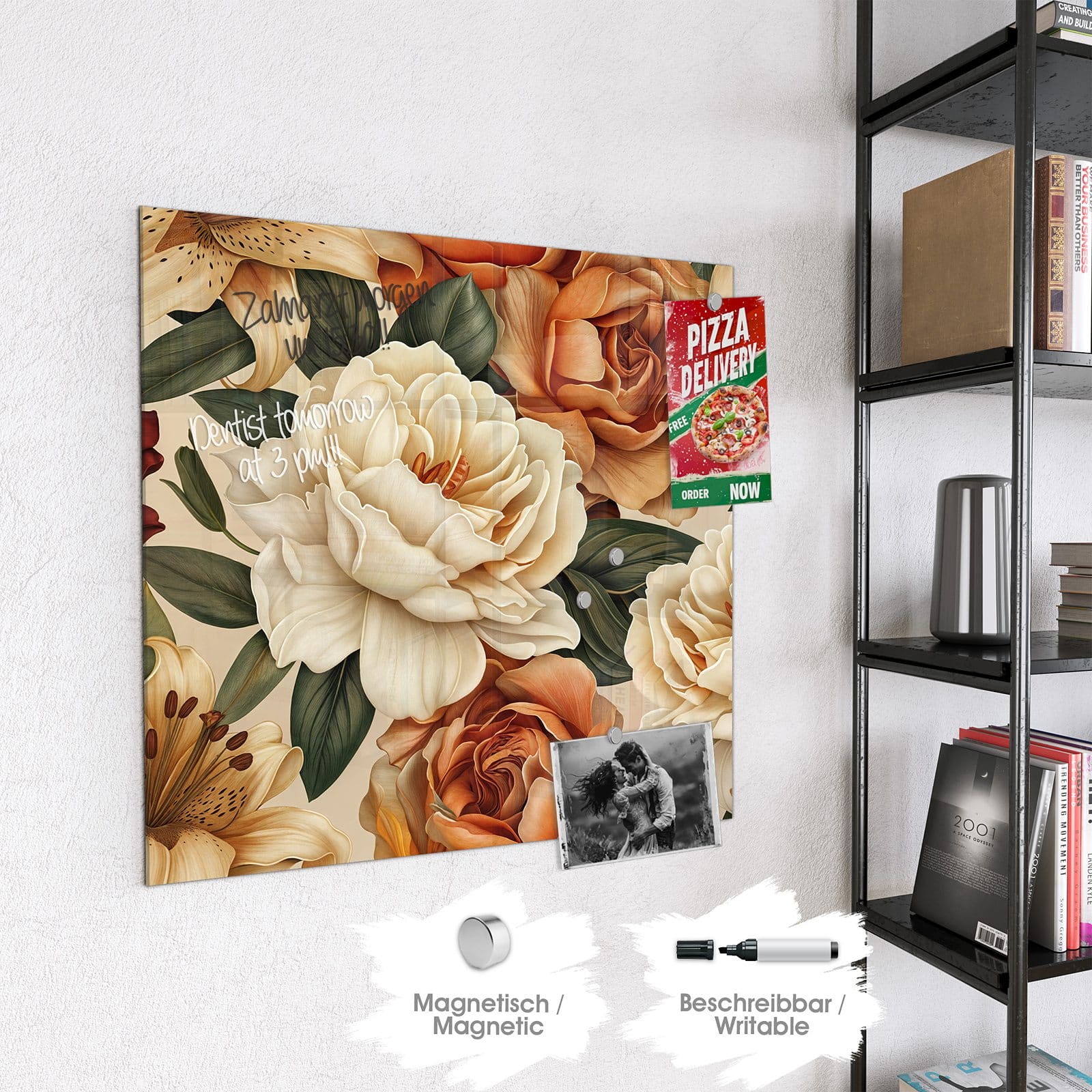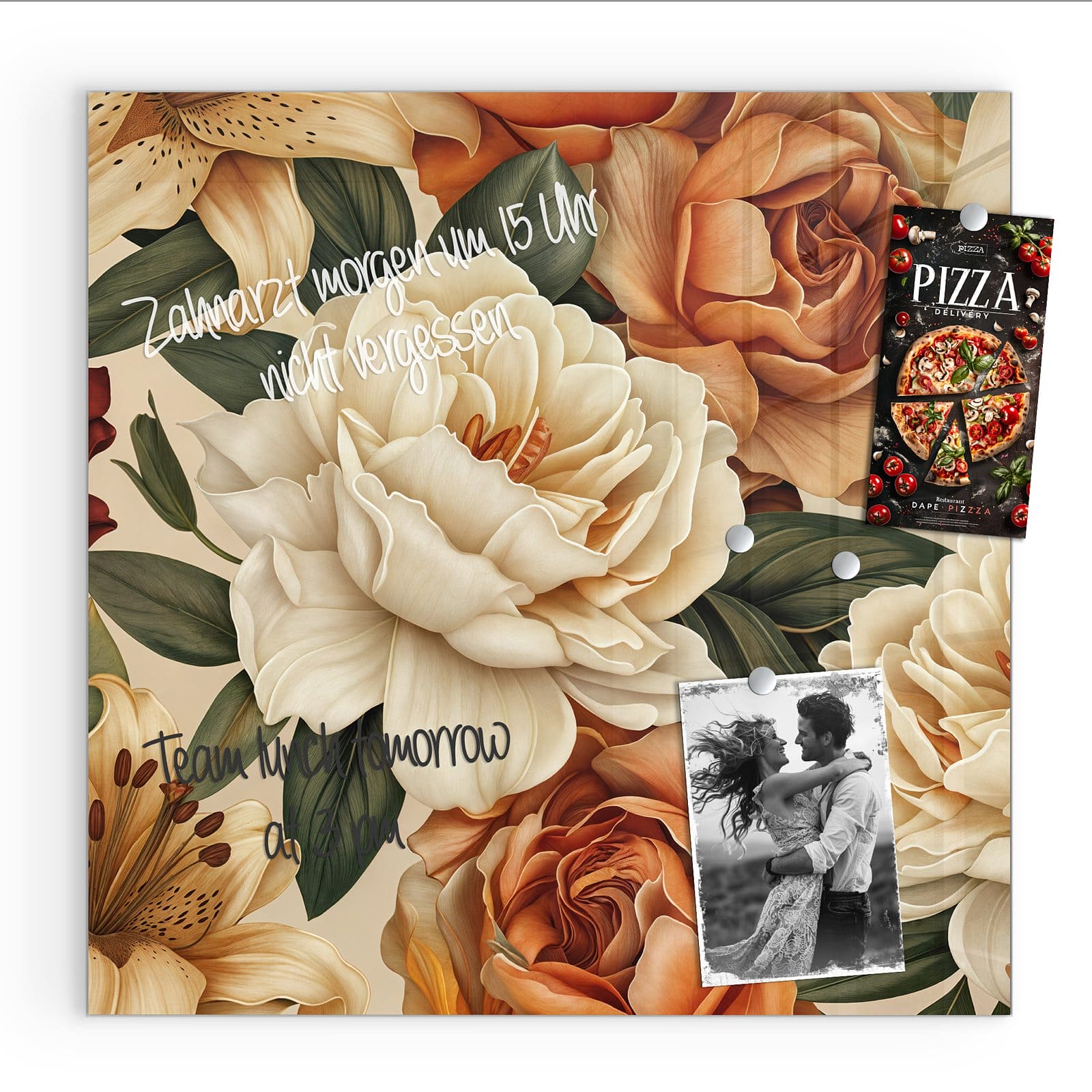 Stilvolle Glas-Magnettafel für Ihr Zuhause - Motiv Sanfte Blumenpracht