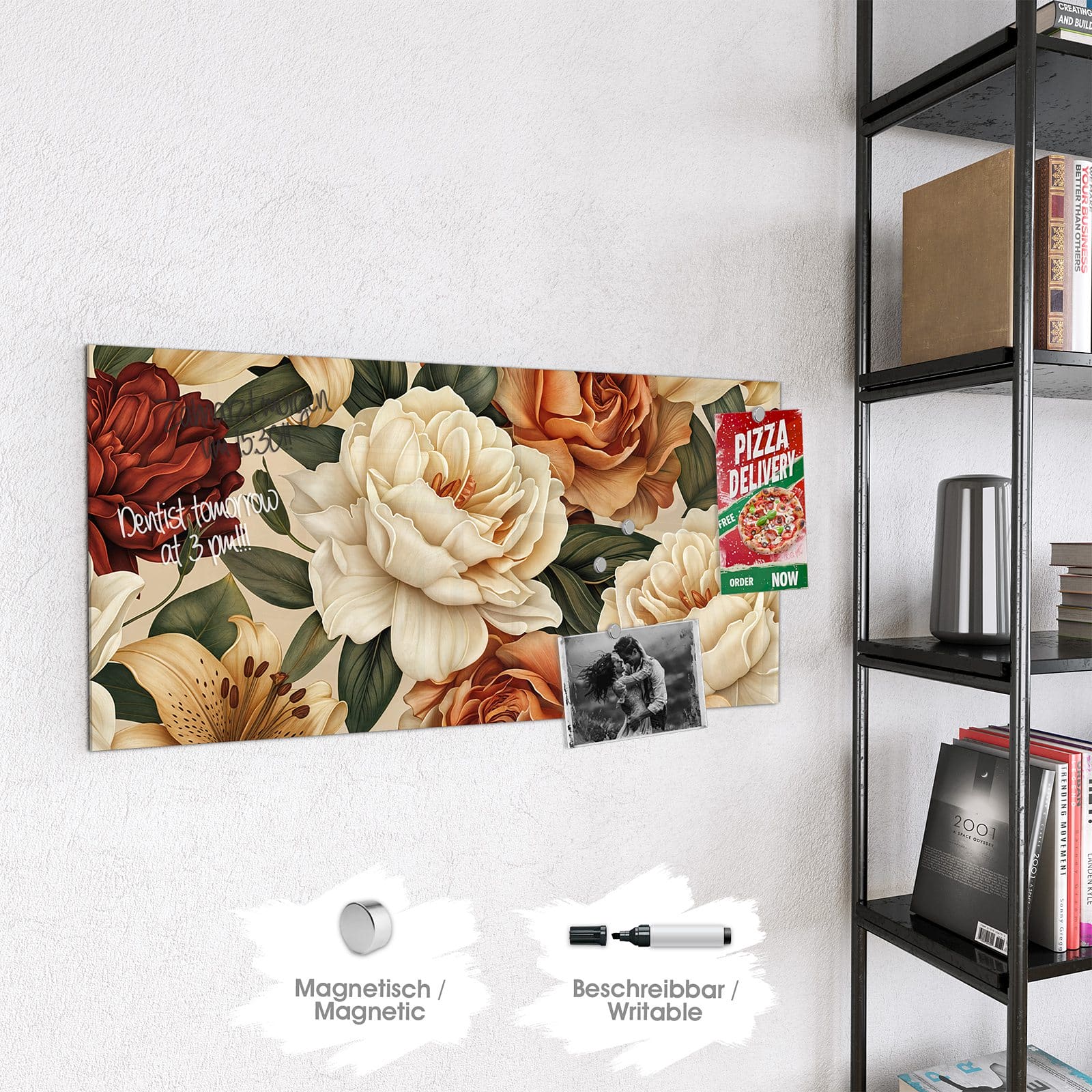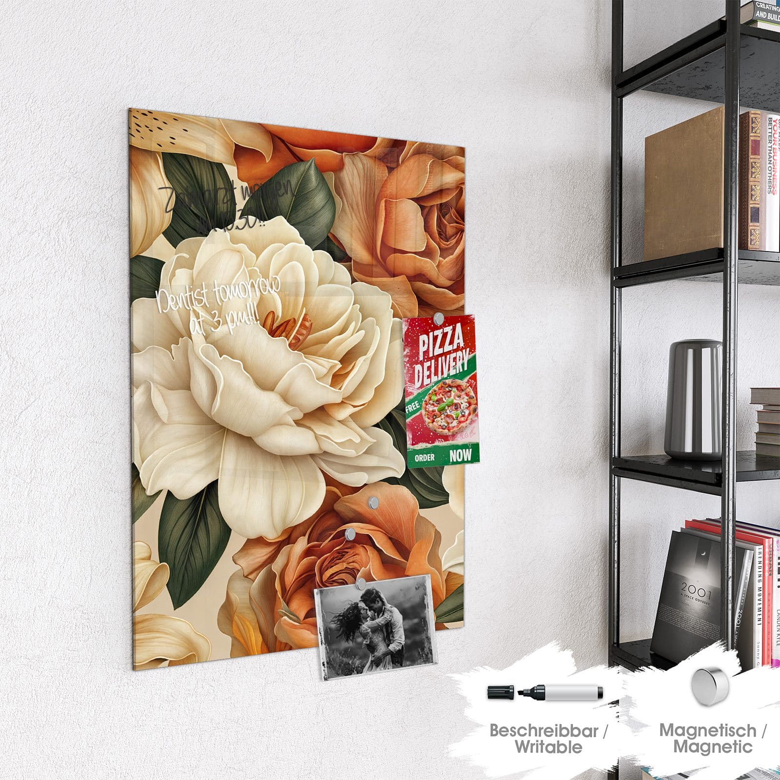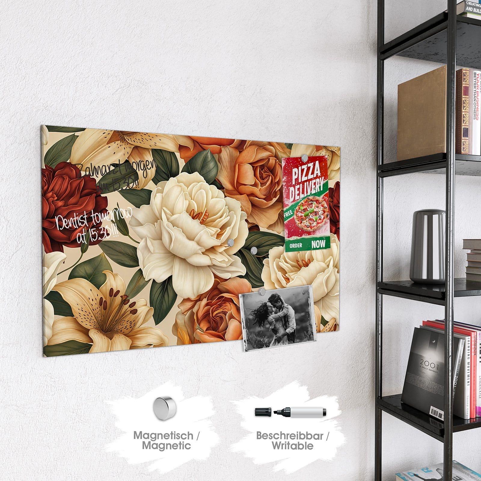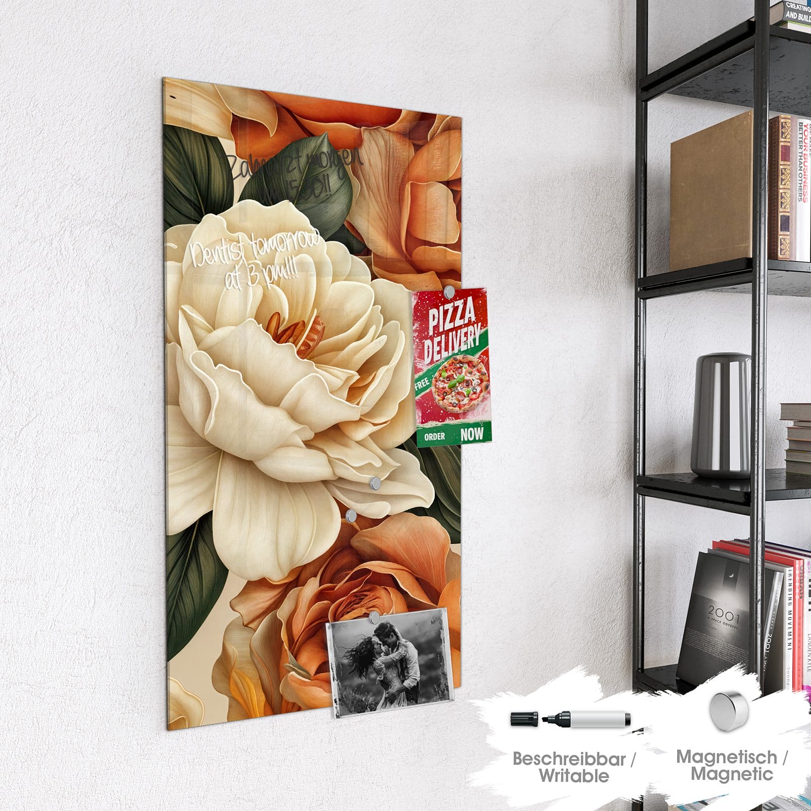 Stilvolle Glas-Magnettafel für Ihr Zuhause - Motiv Sanfte Blumenpracht