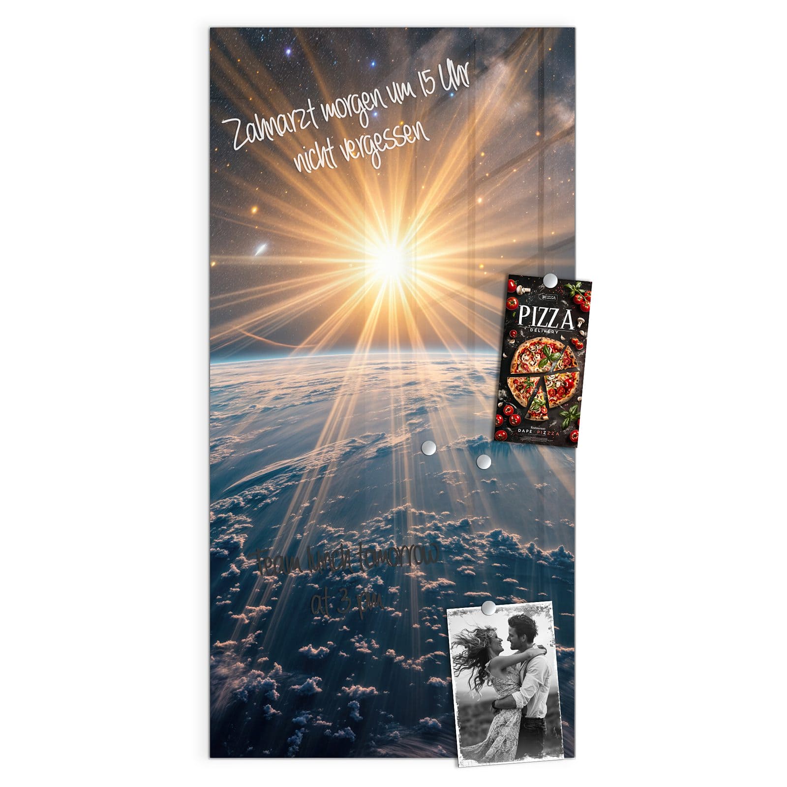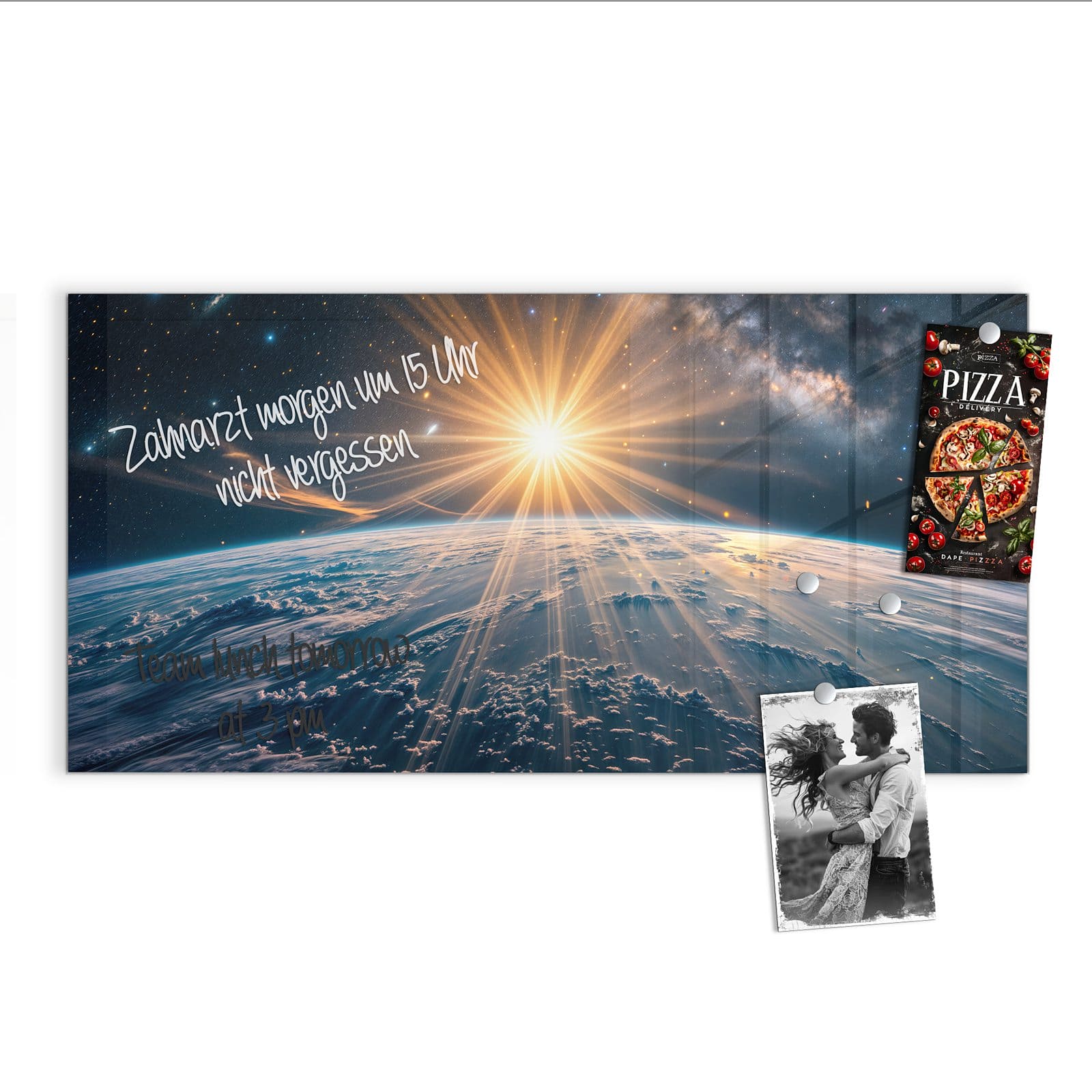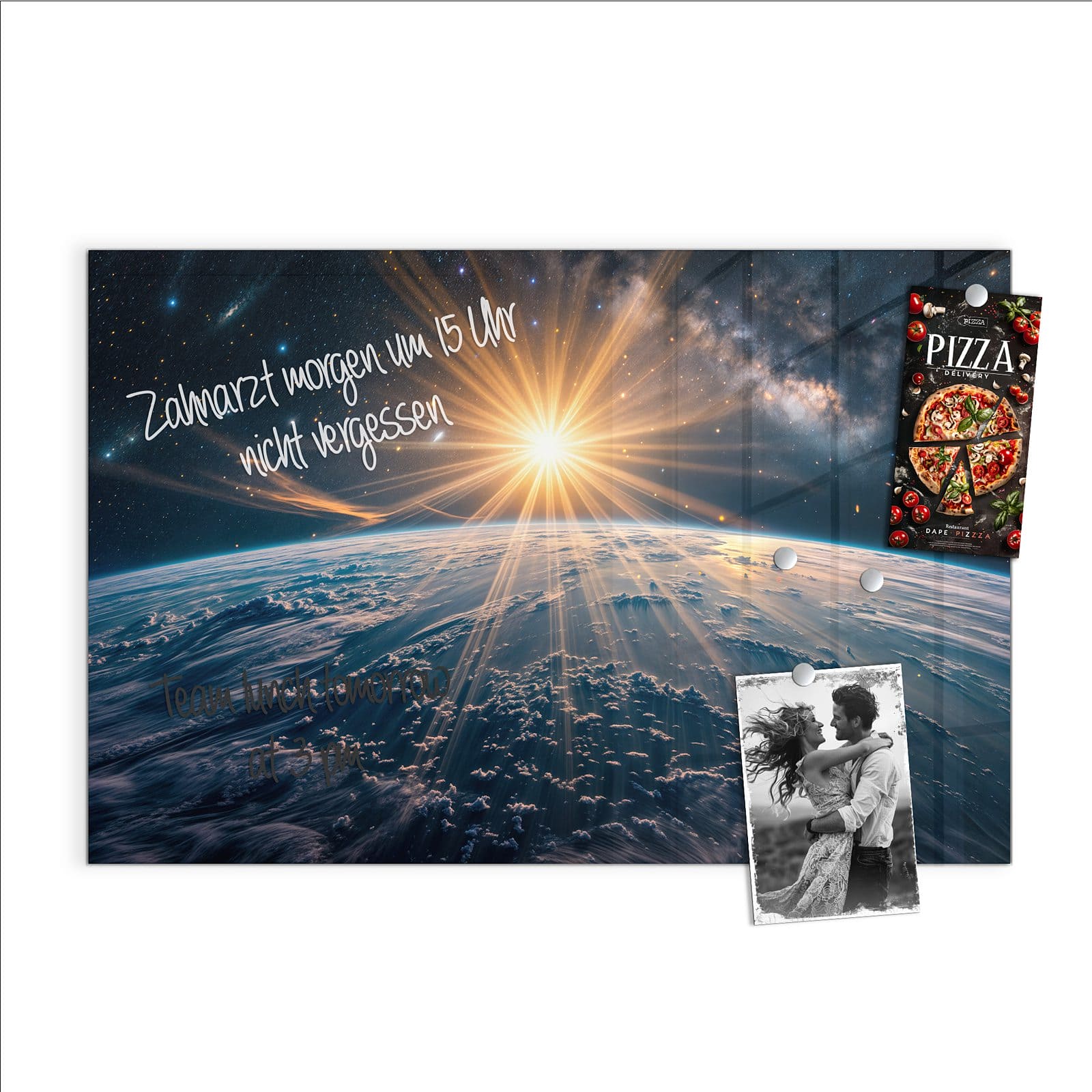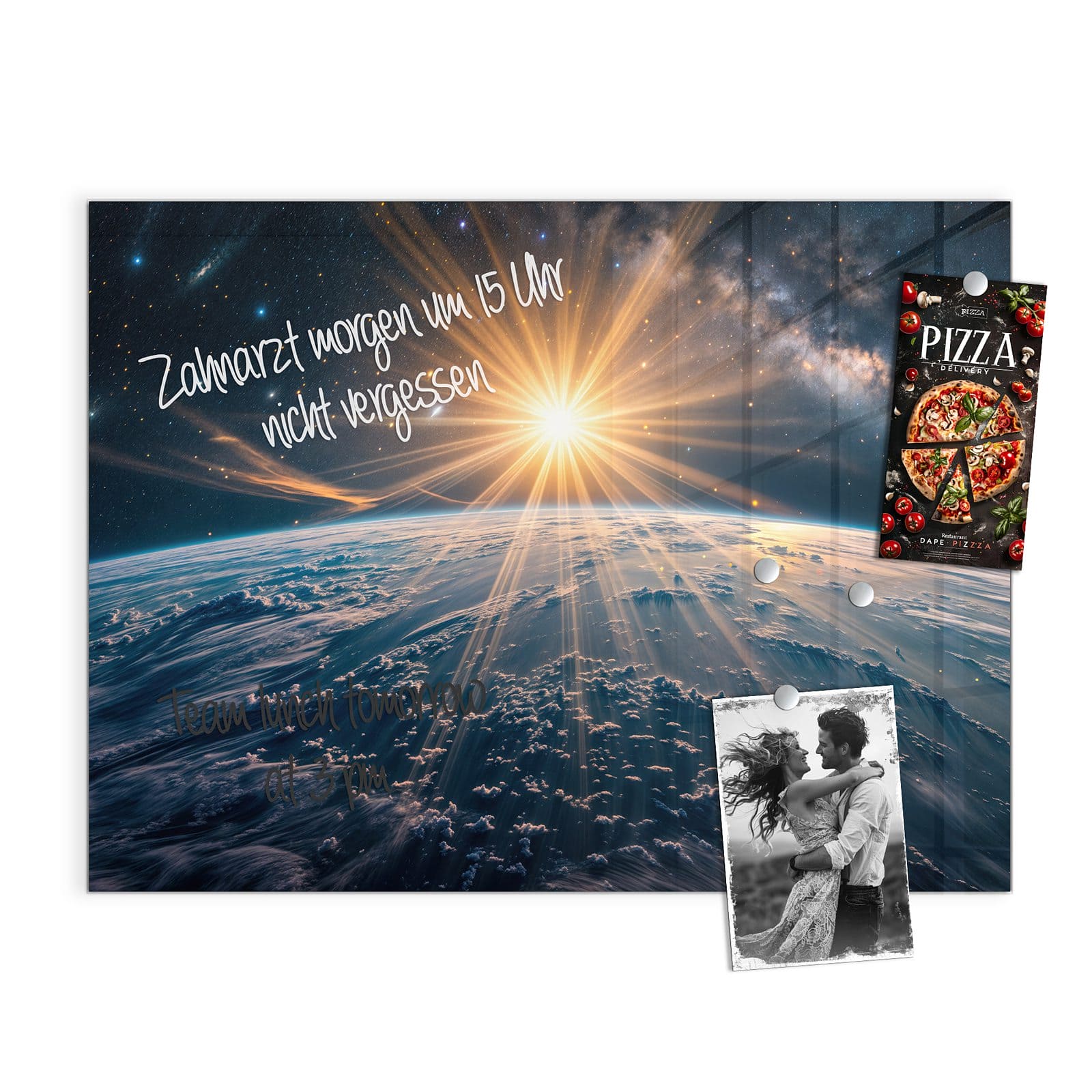 Stilvolle Glas-Magnettafel für Ihr Zuhause - Motiv Sonnenaufgang über Erde