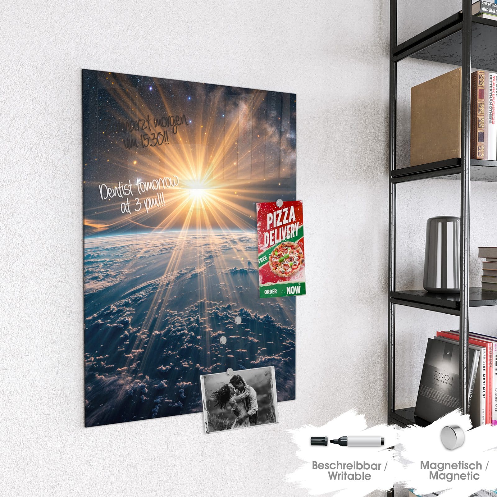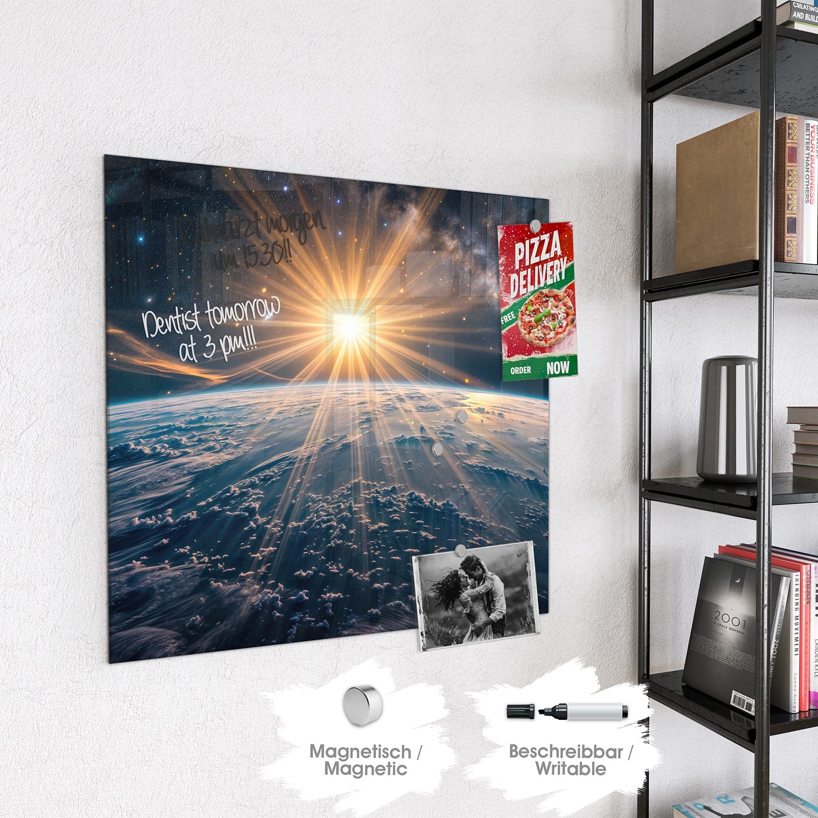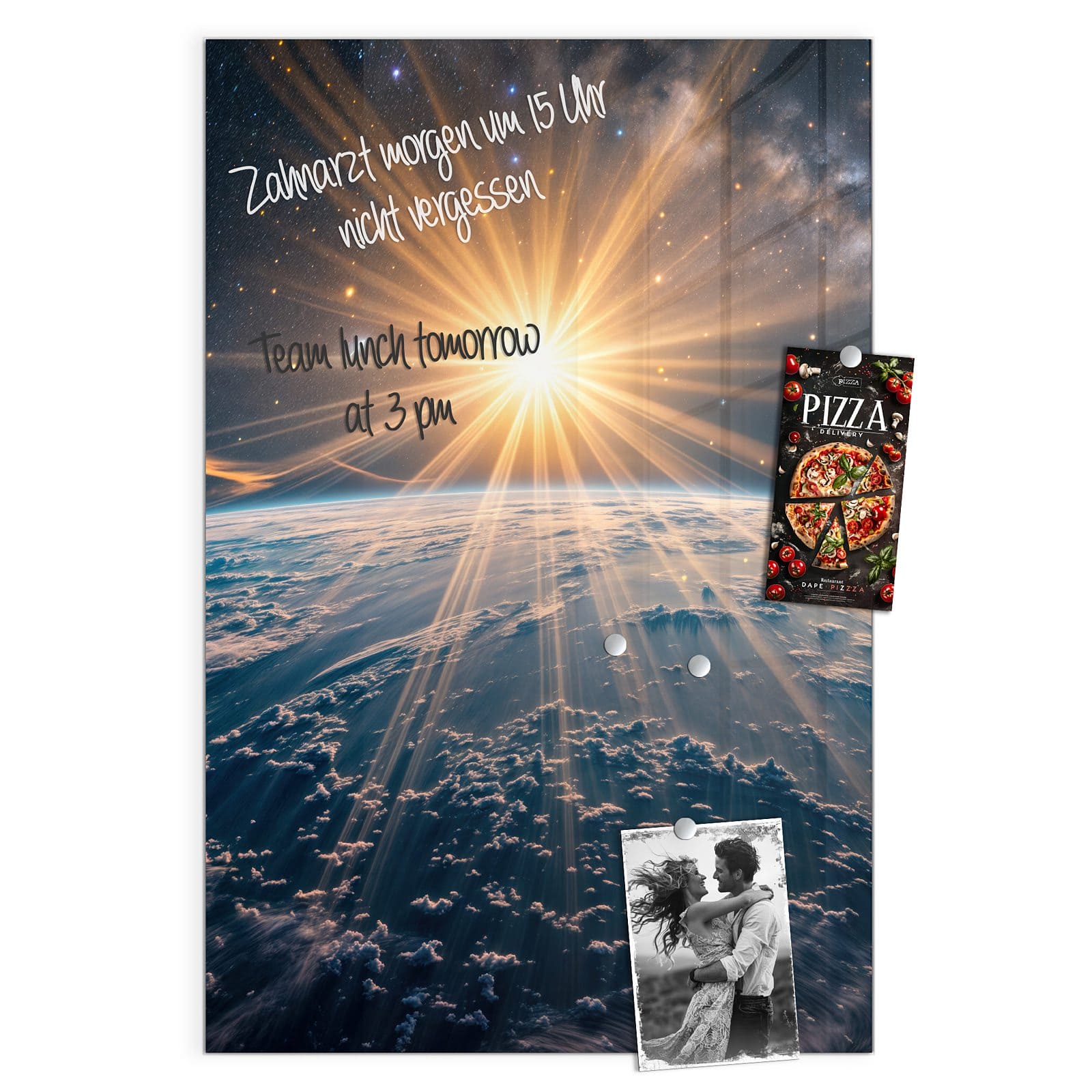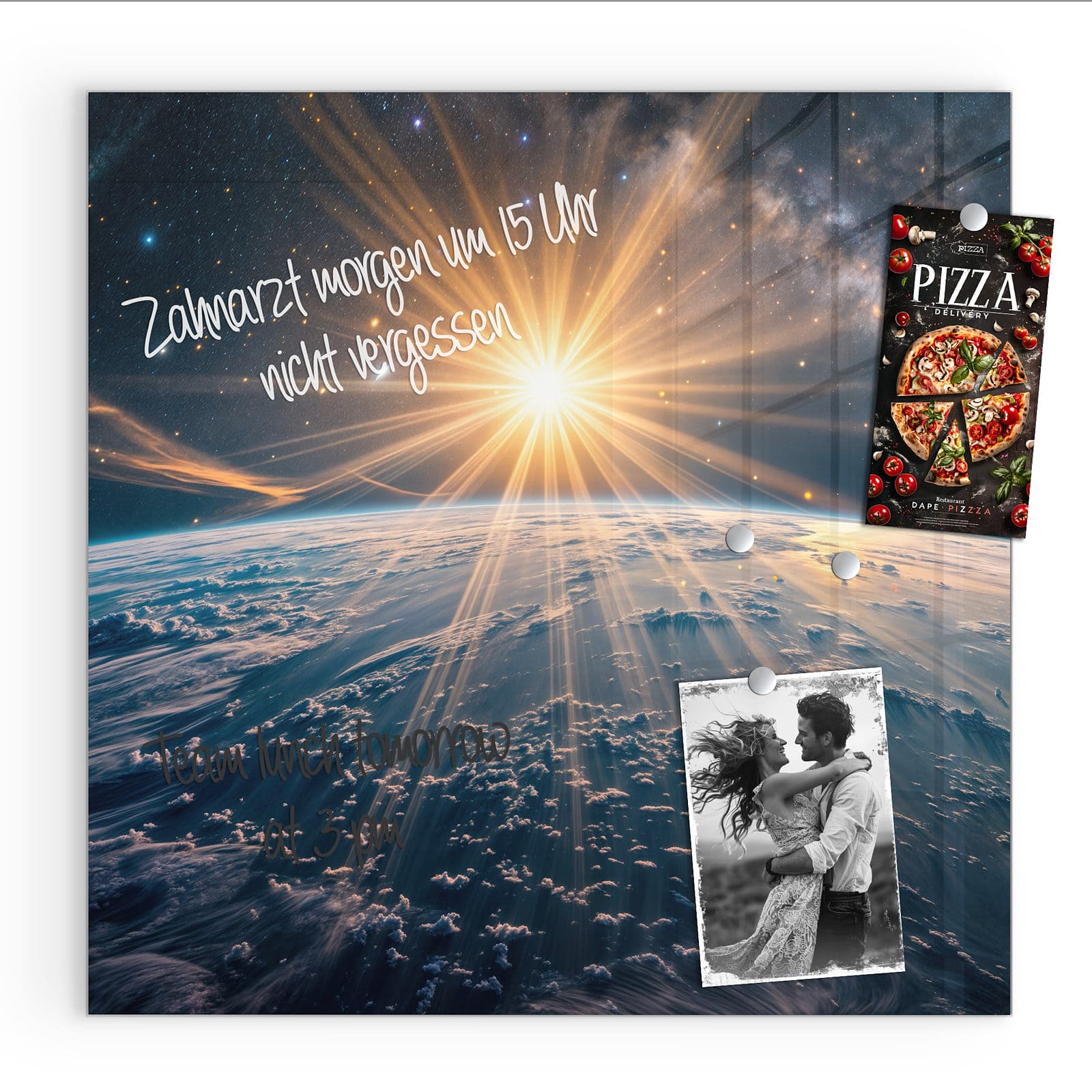 Stilvolle Glas-Magnettafel für Ihr Zuhause - Motiv Sonnenaufgang über Erde