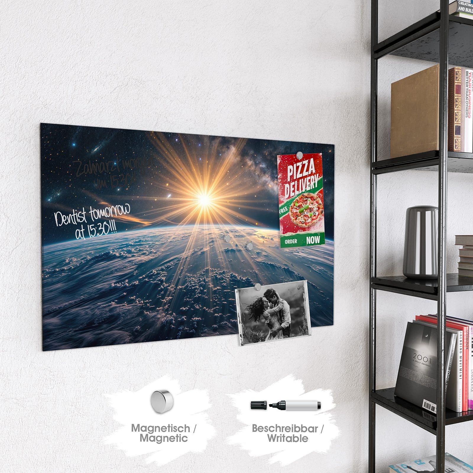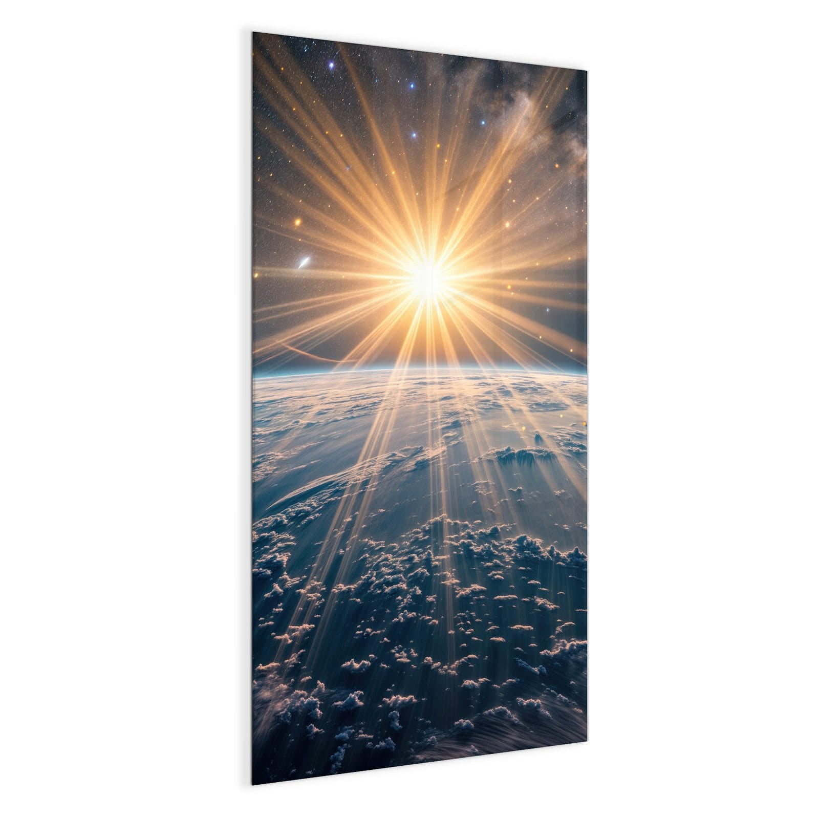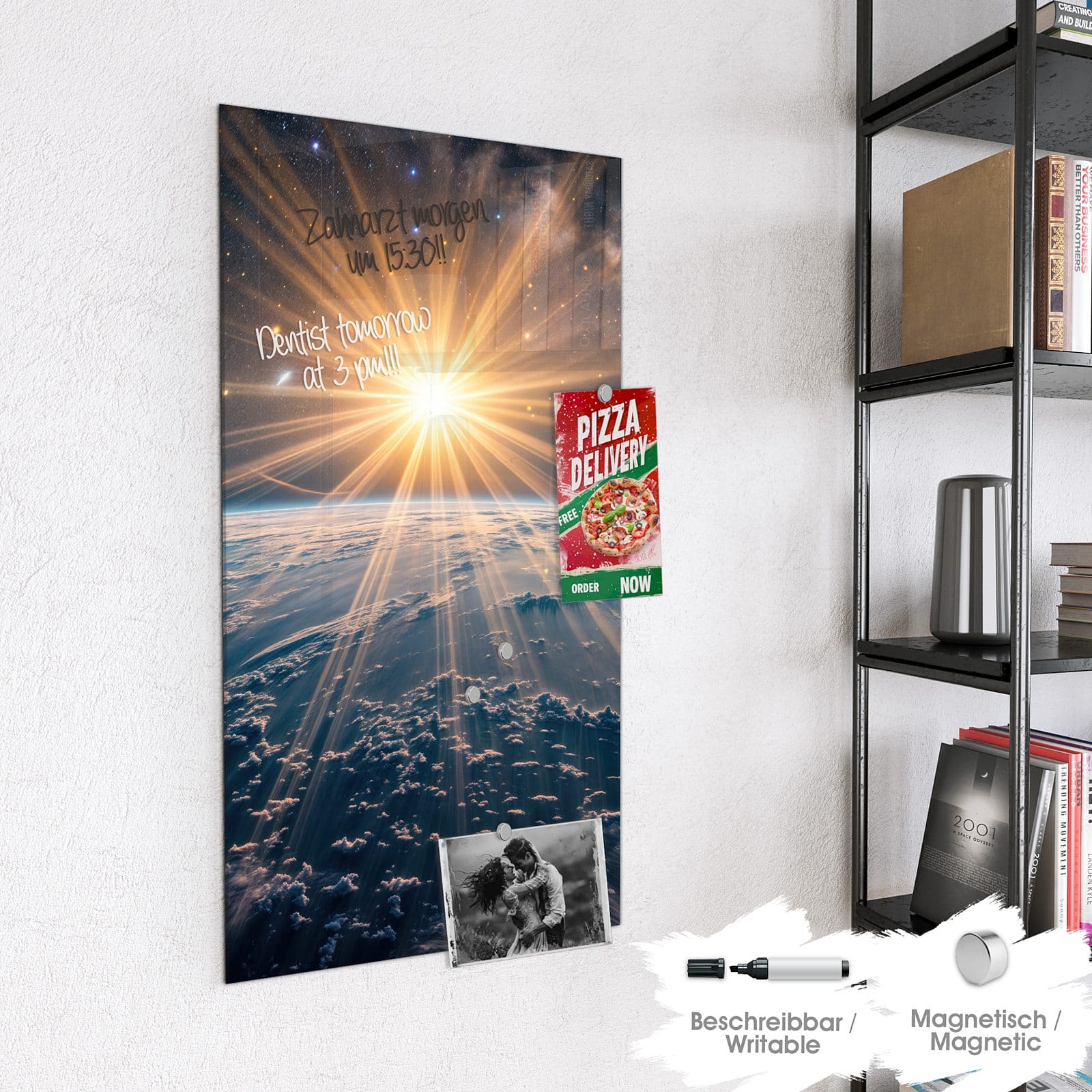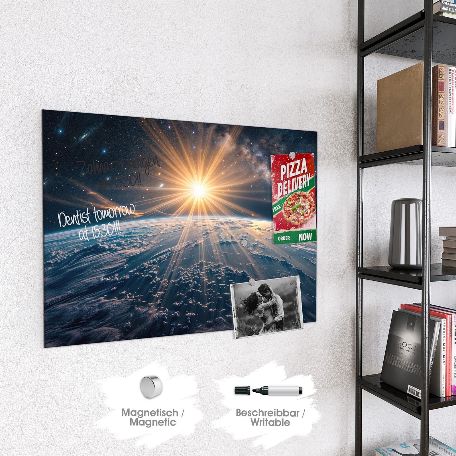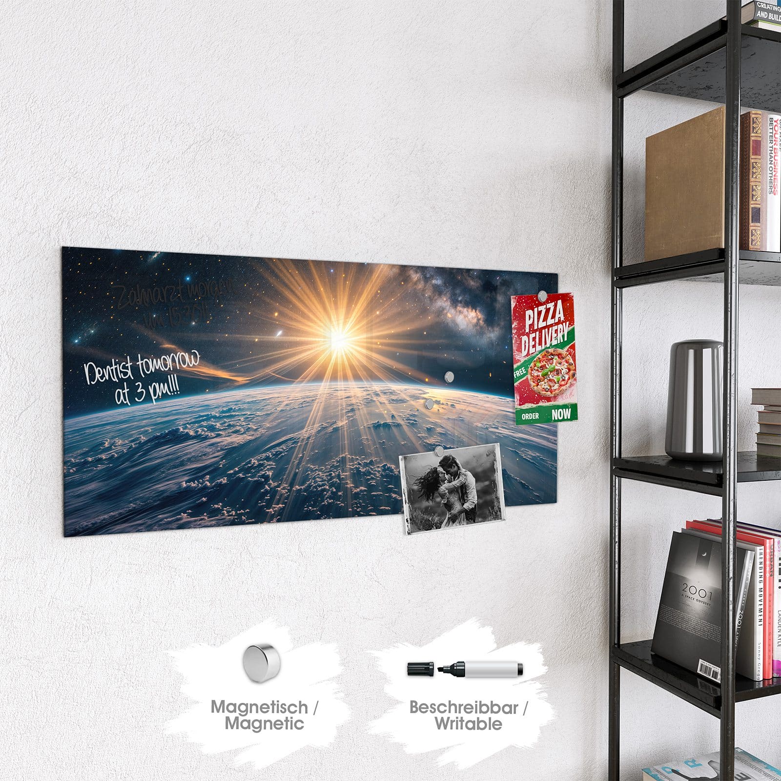 Stilvolle Glas-Magnettafel für Ihr Zuhause - Motiv Sonnenaufgang über Erde