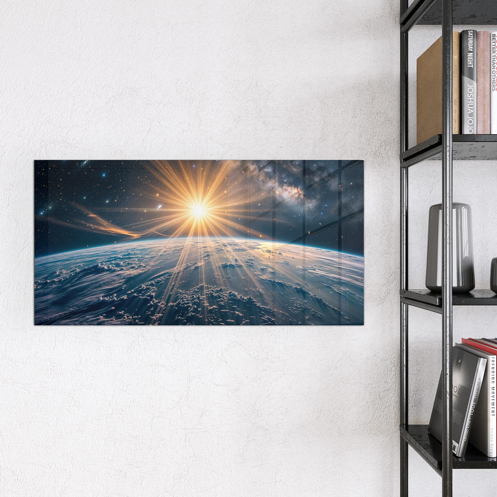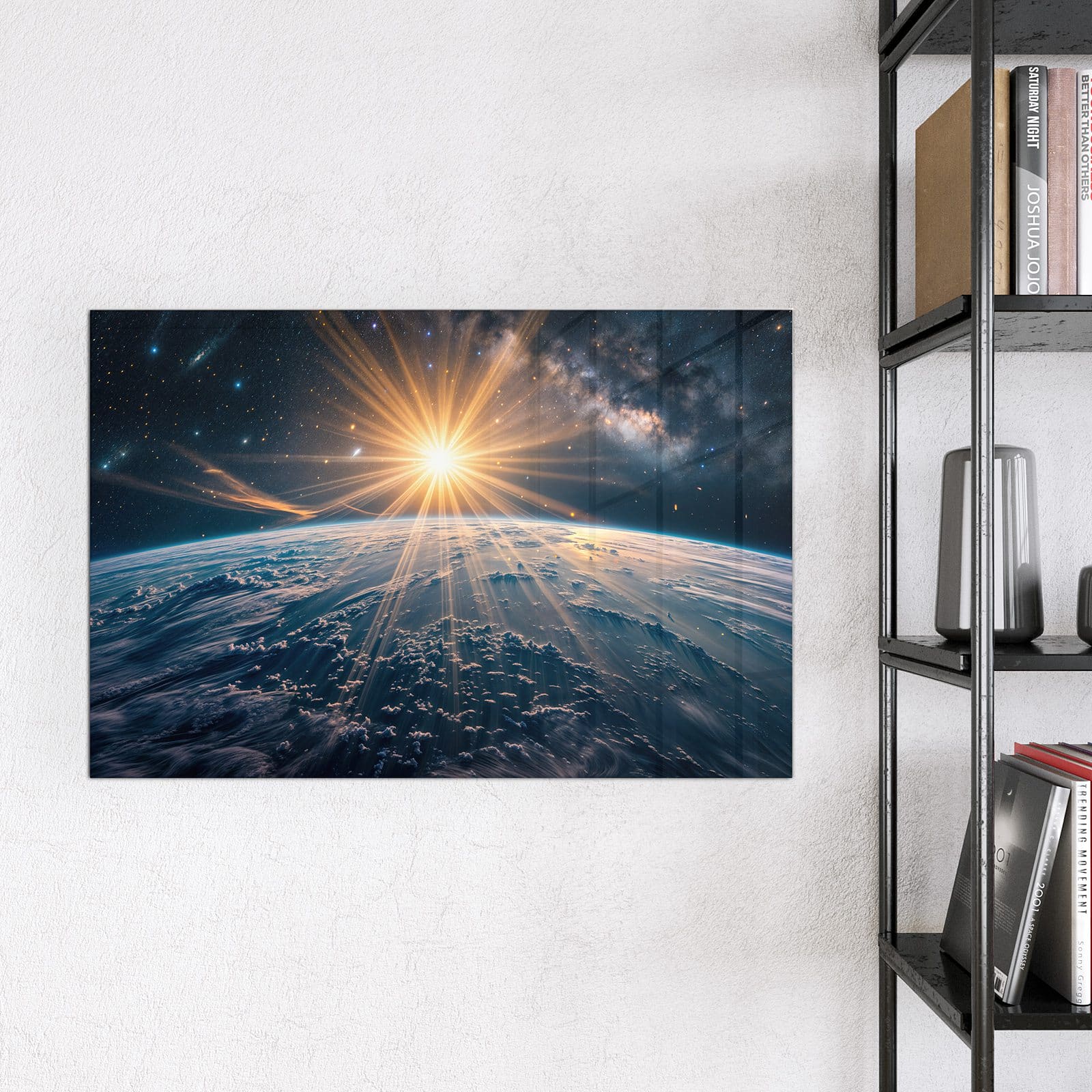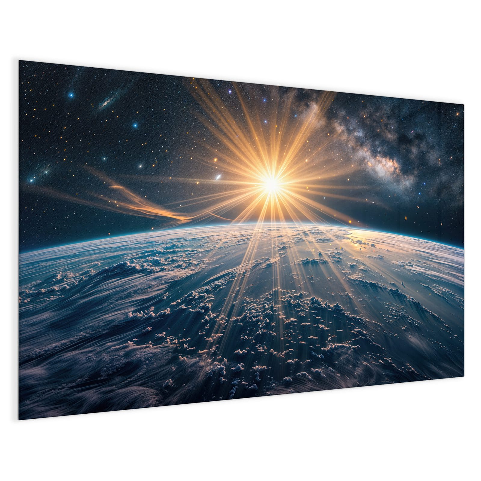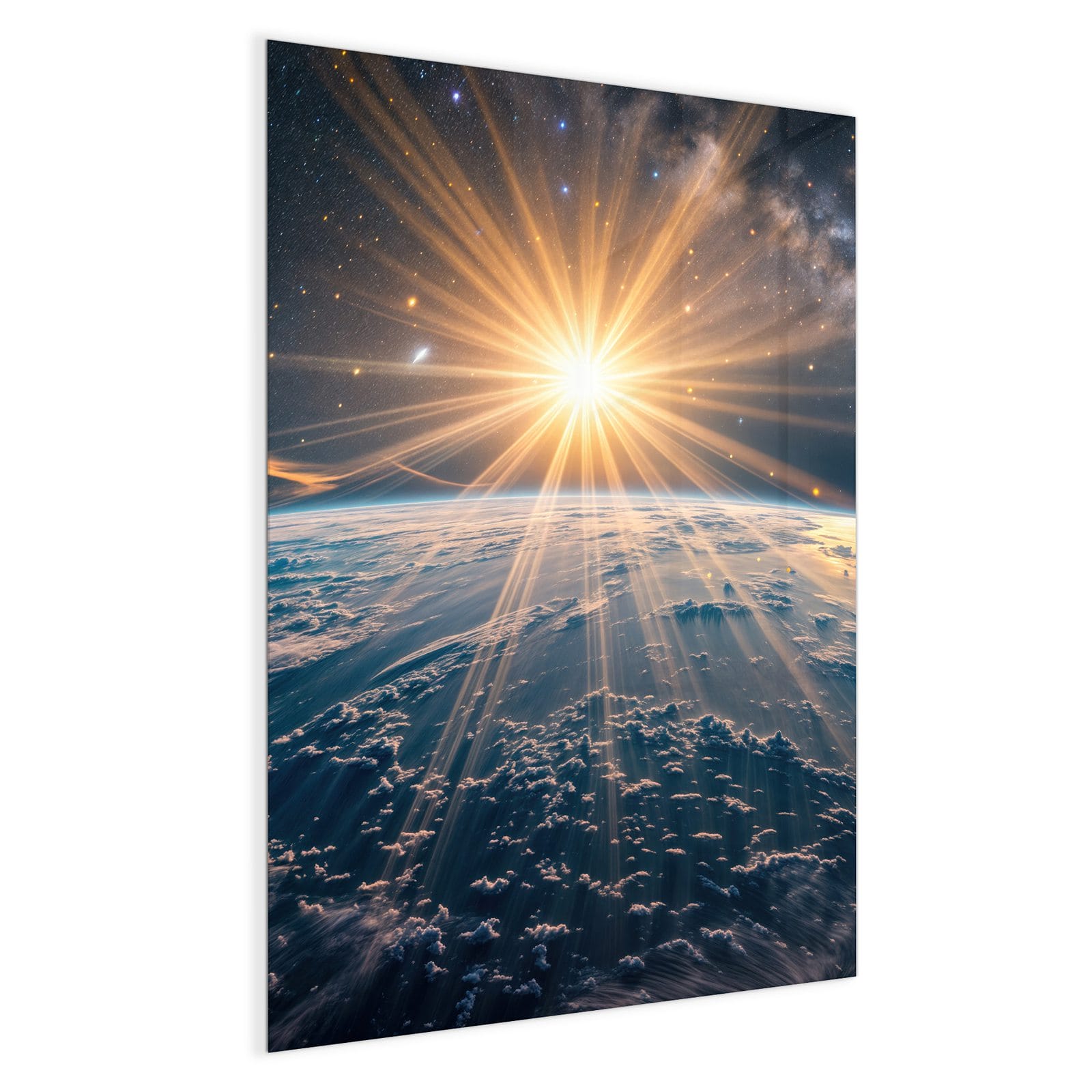 Stilvolle Glas-Magnettafel für Ihr Zuhause - Motiv Sonnenaufgang über Erde
