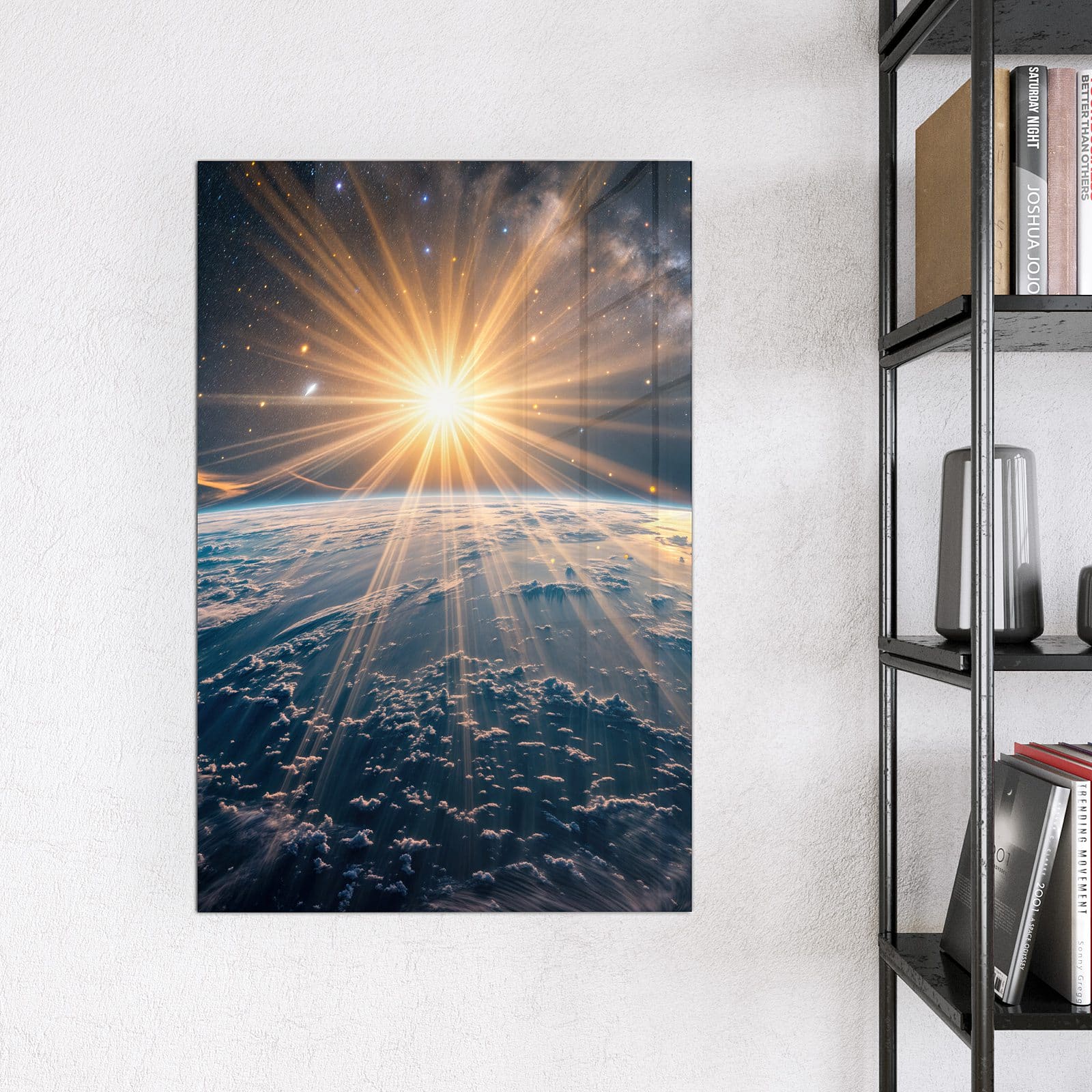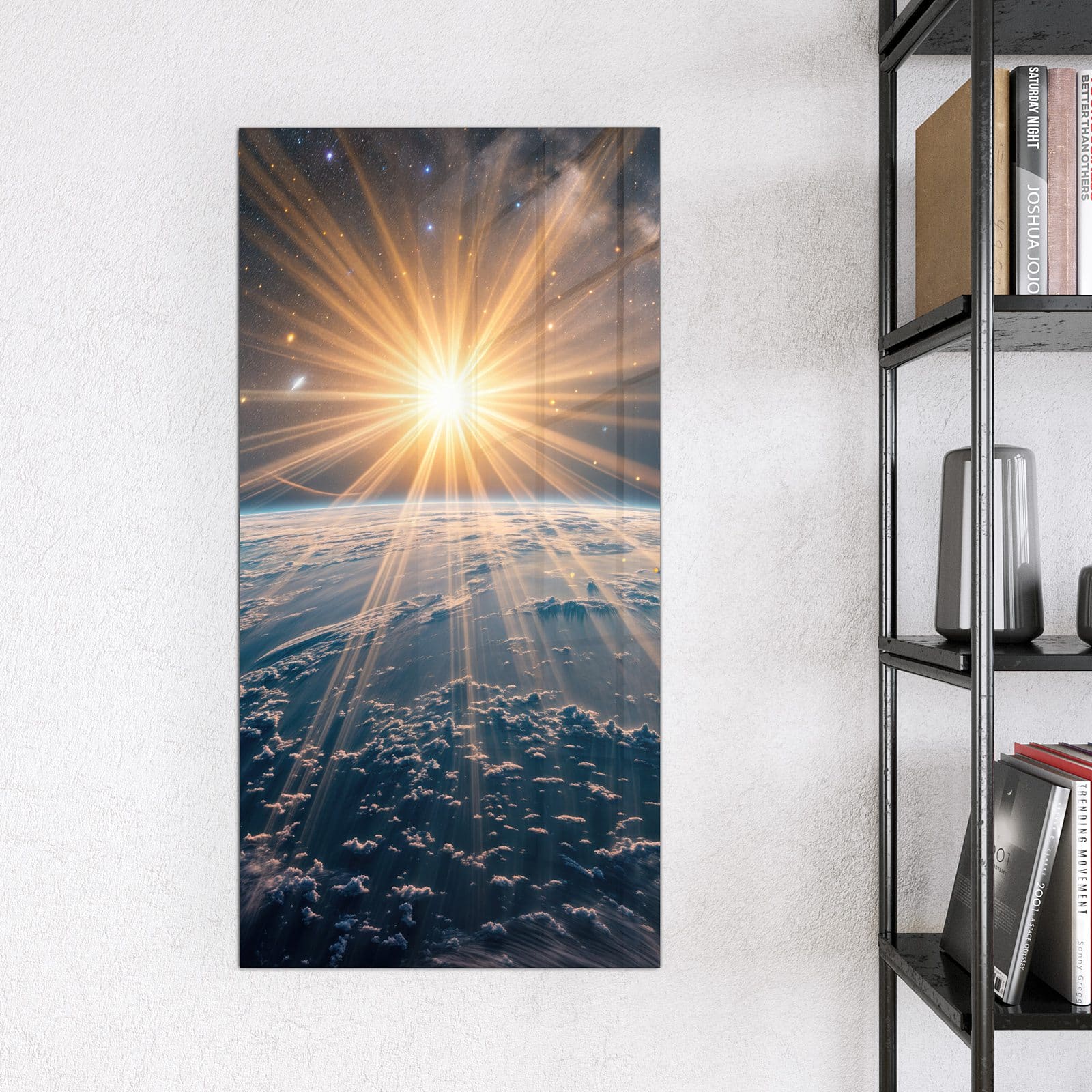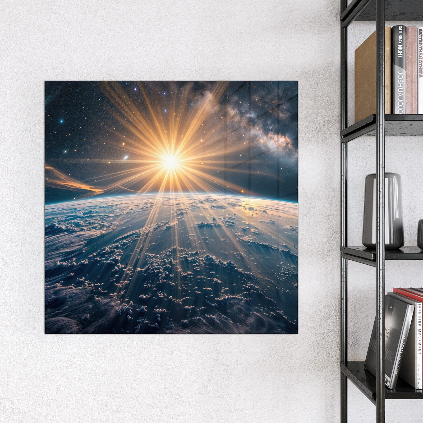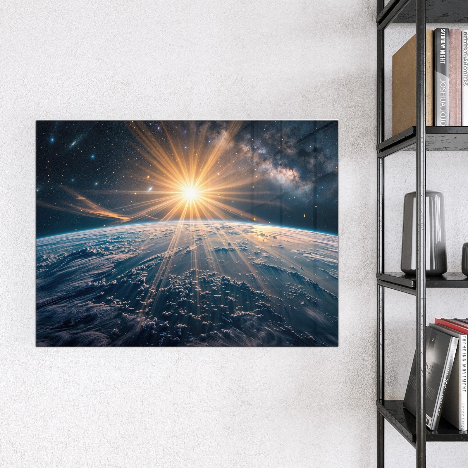 Stilvolle Glas-Magnettafel für Ihr Zuhause - Motiv Sonnenaufgang über Erde