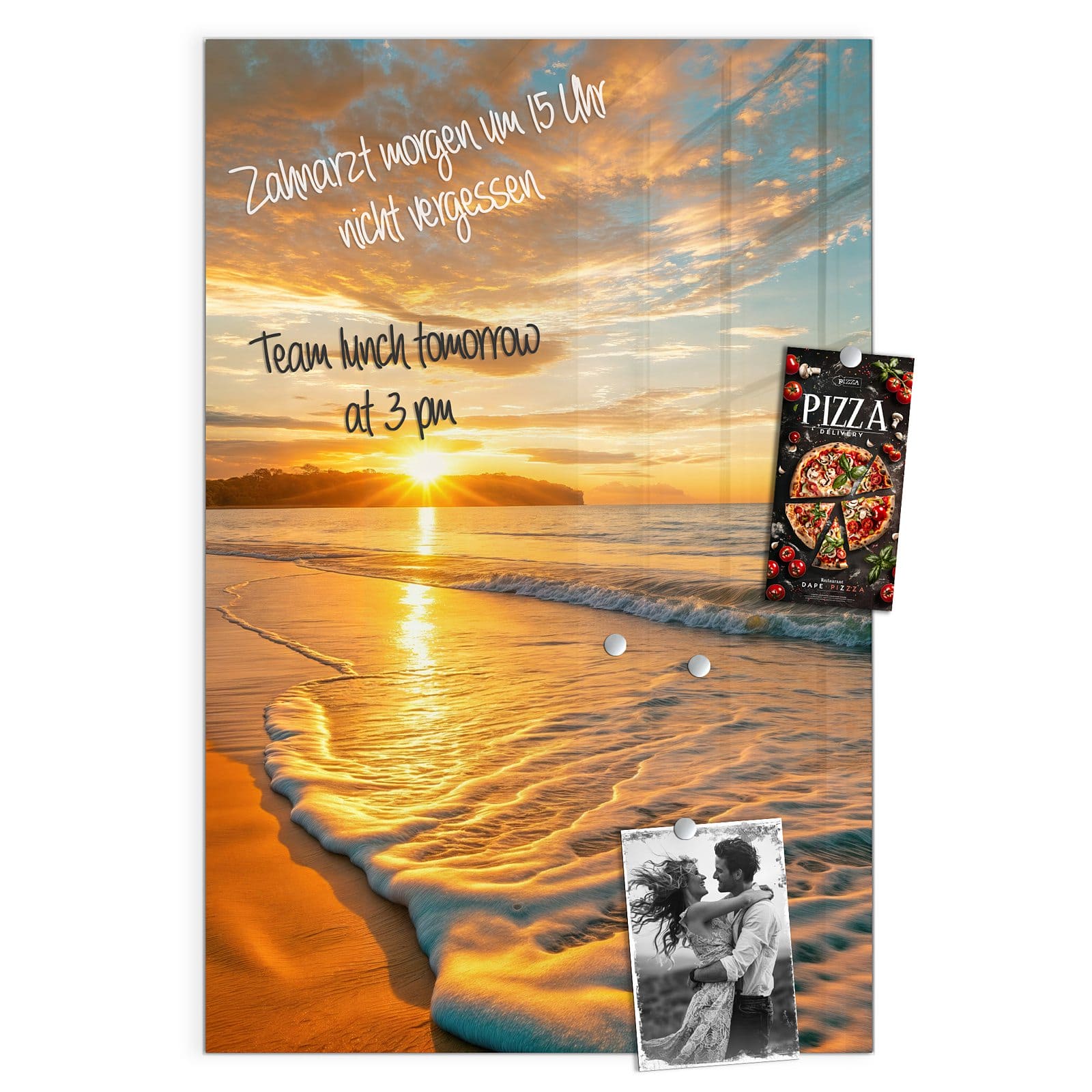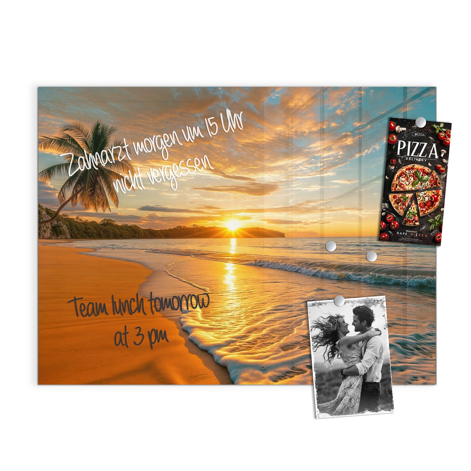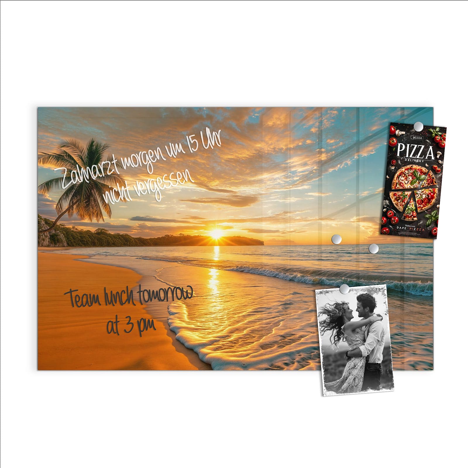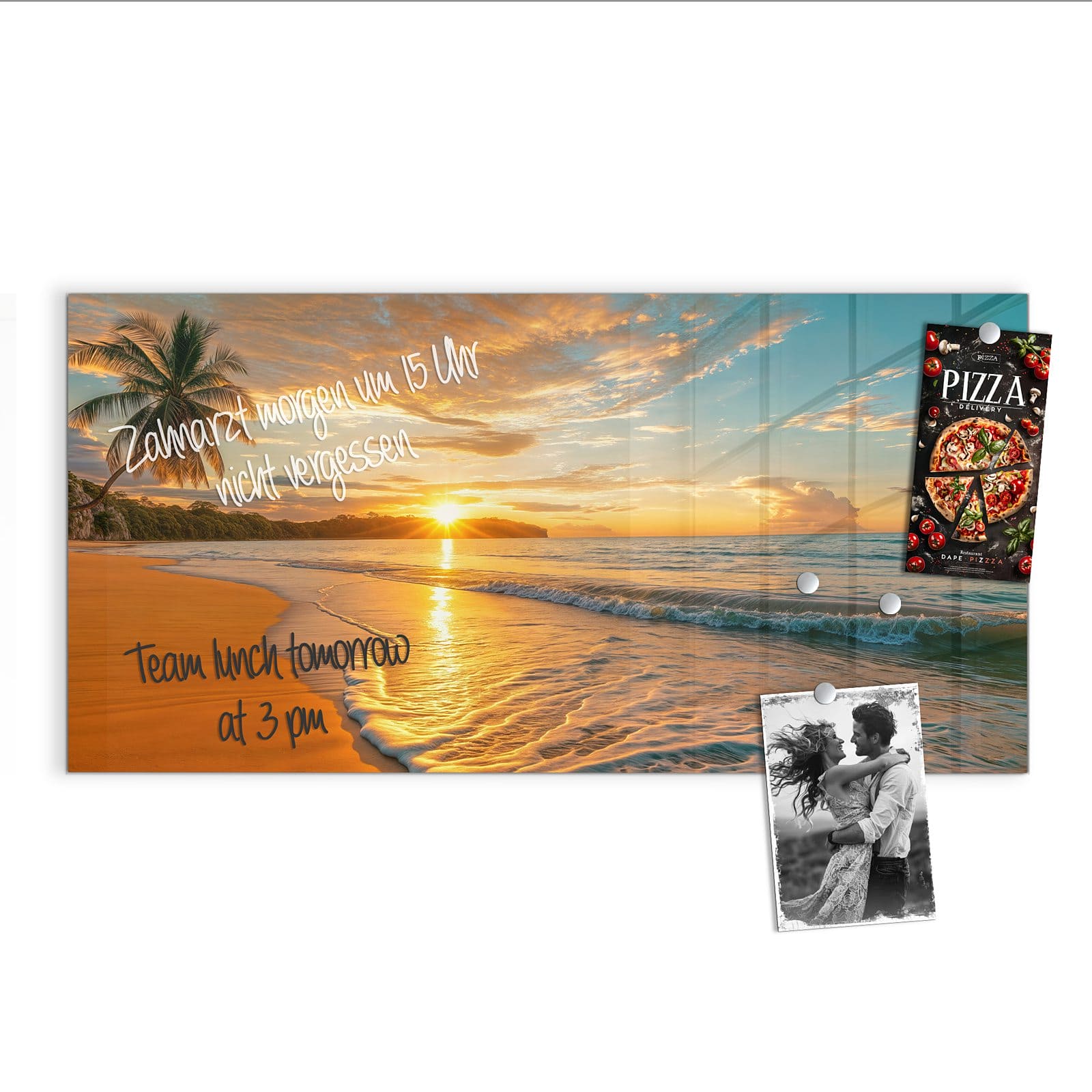 Stilvolle Glas-Magnettafel für Ihr Zuhause - Motiv Sonnenuntergang am Strand
