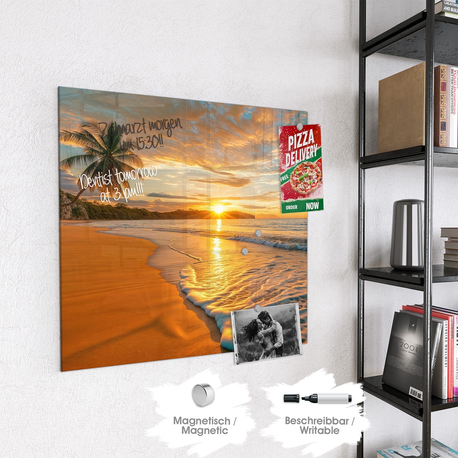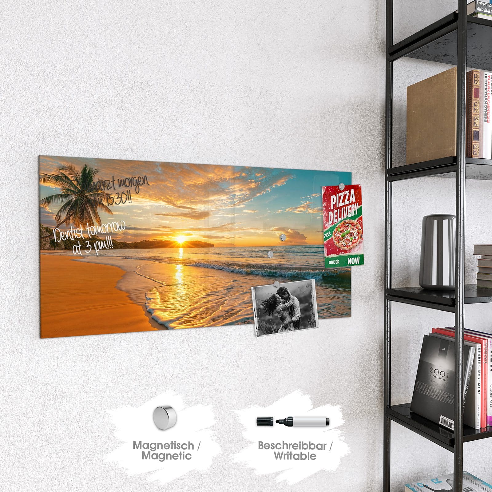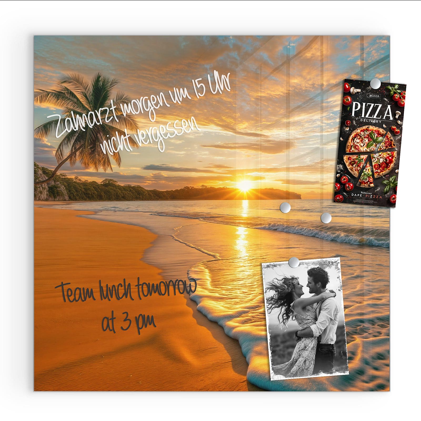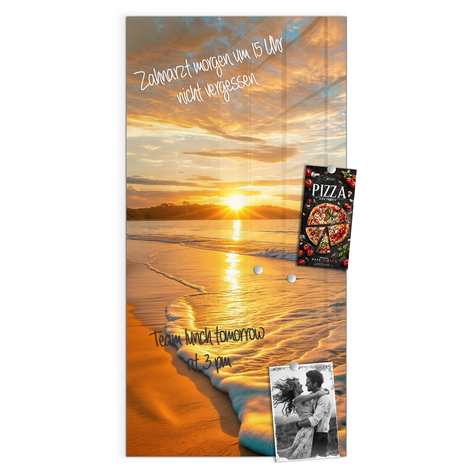 Stilvolle Glas-Magnettafel für Ihr Zuhause - Motiv Sonnenuntergang am Strand