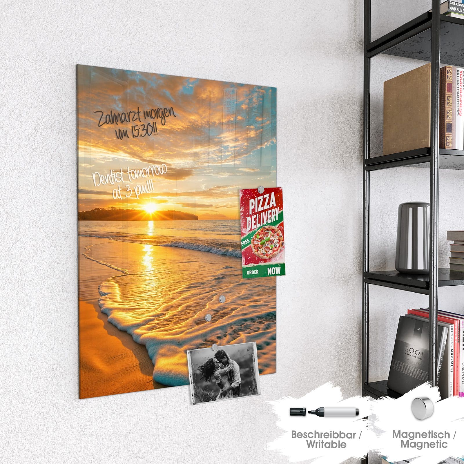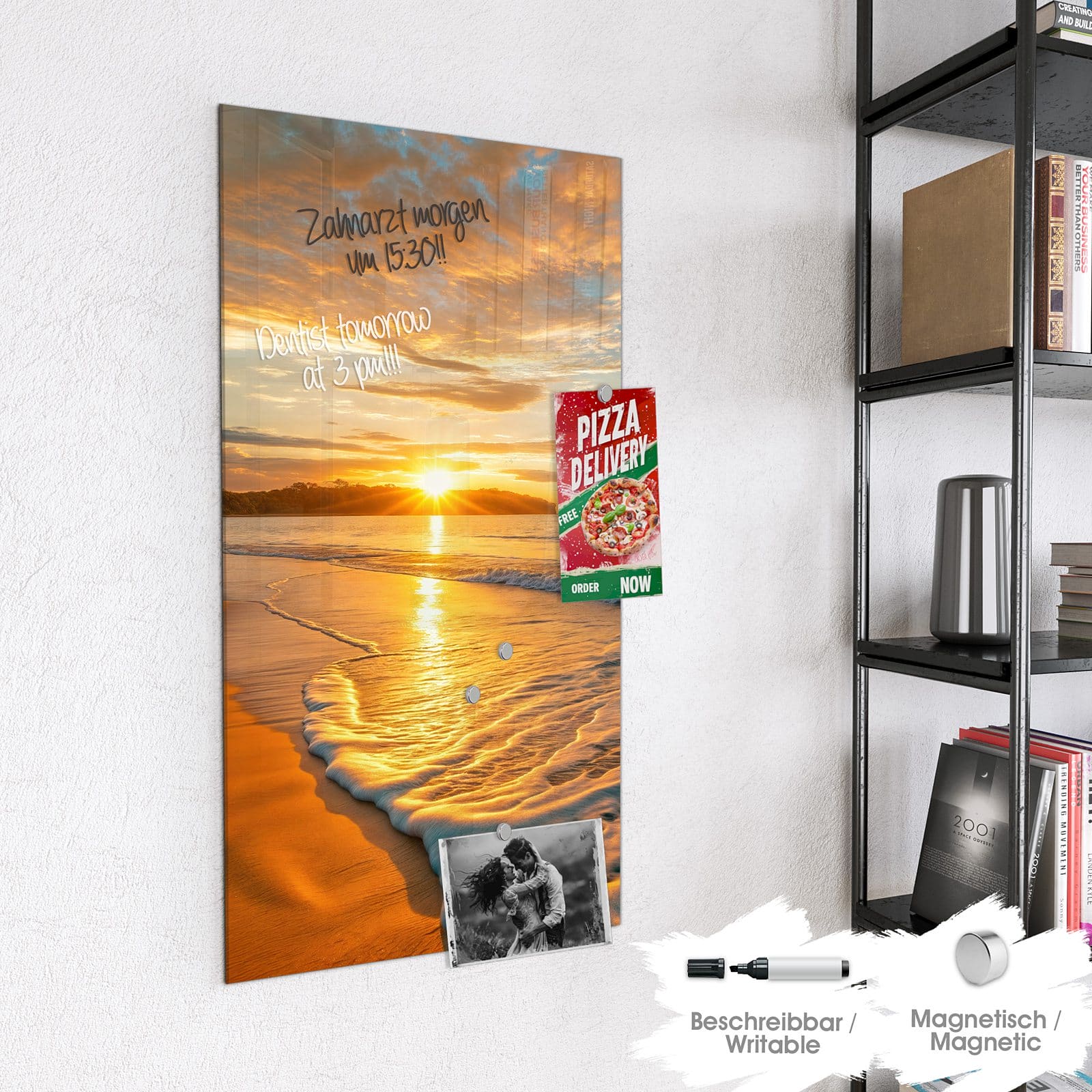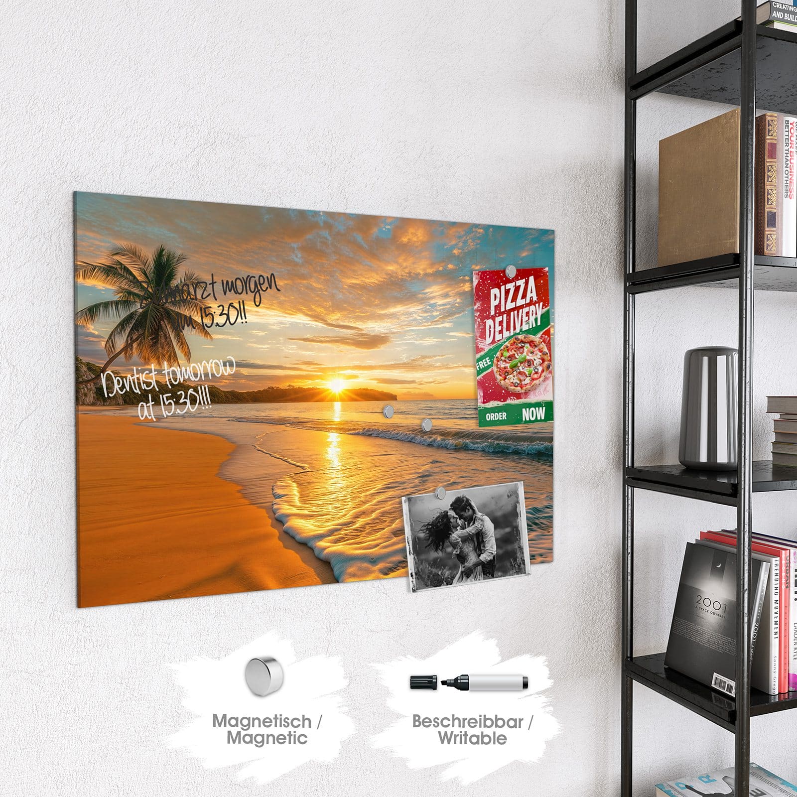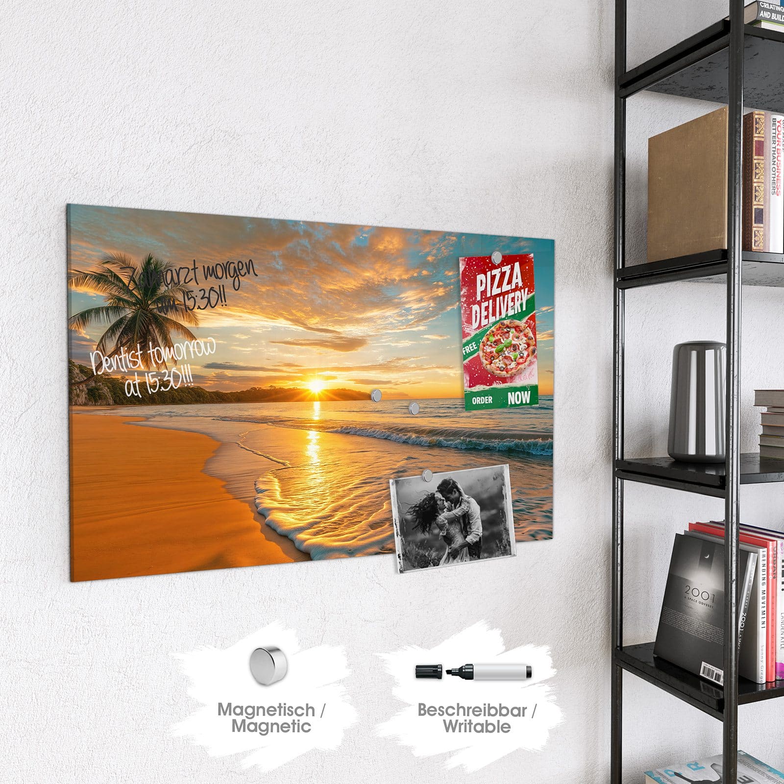 Stilvolle Glas-Magnettafel für Ihr Zuhause - Motiv Sonnenuntergang am Strand