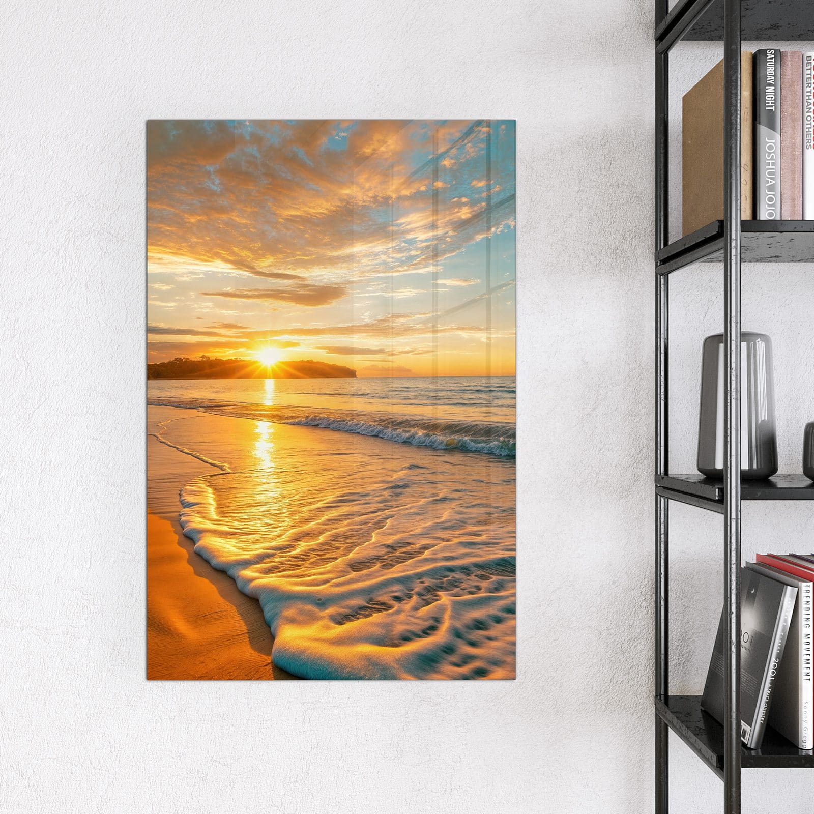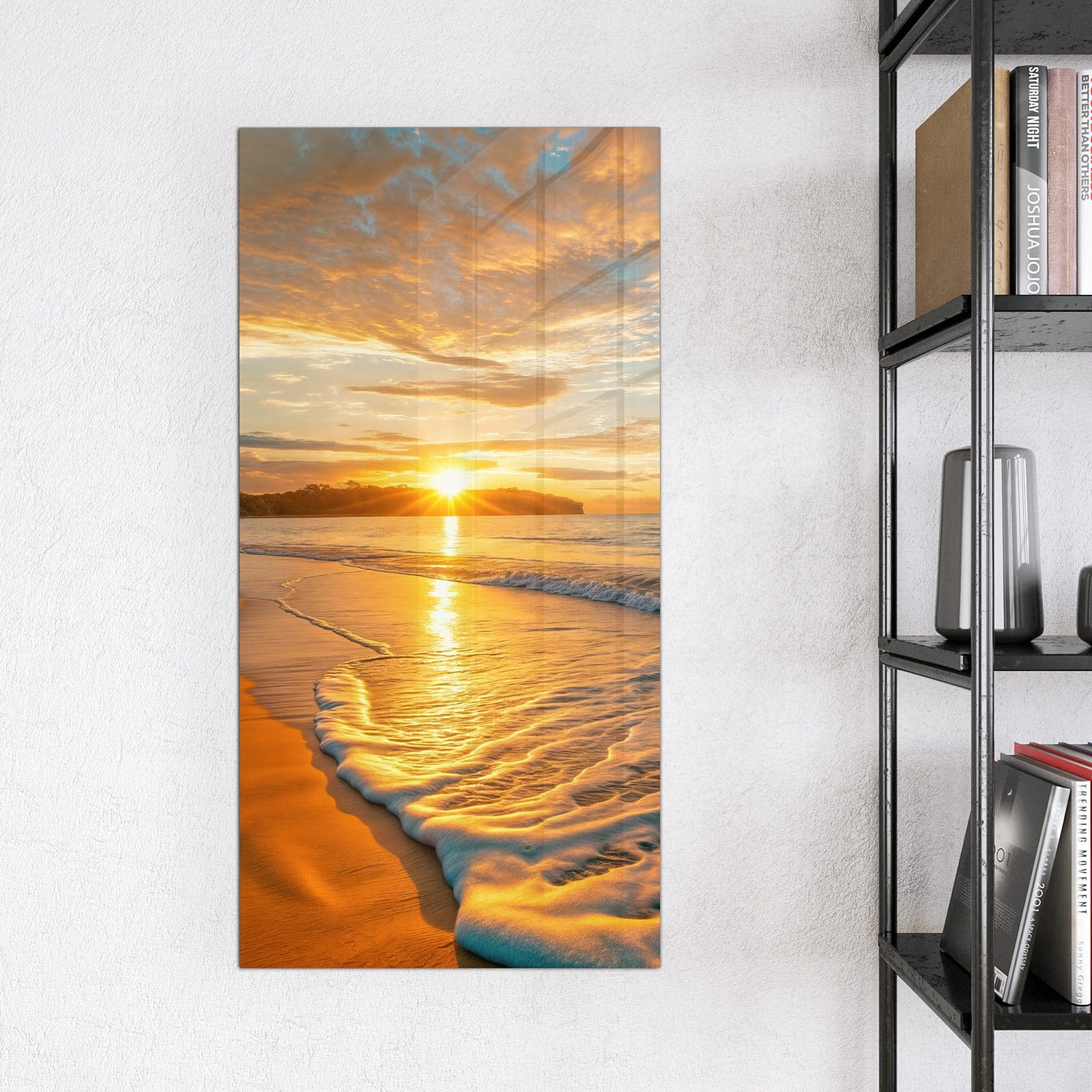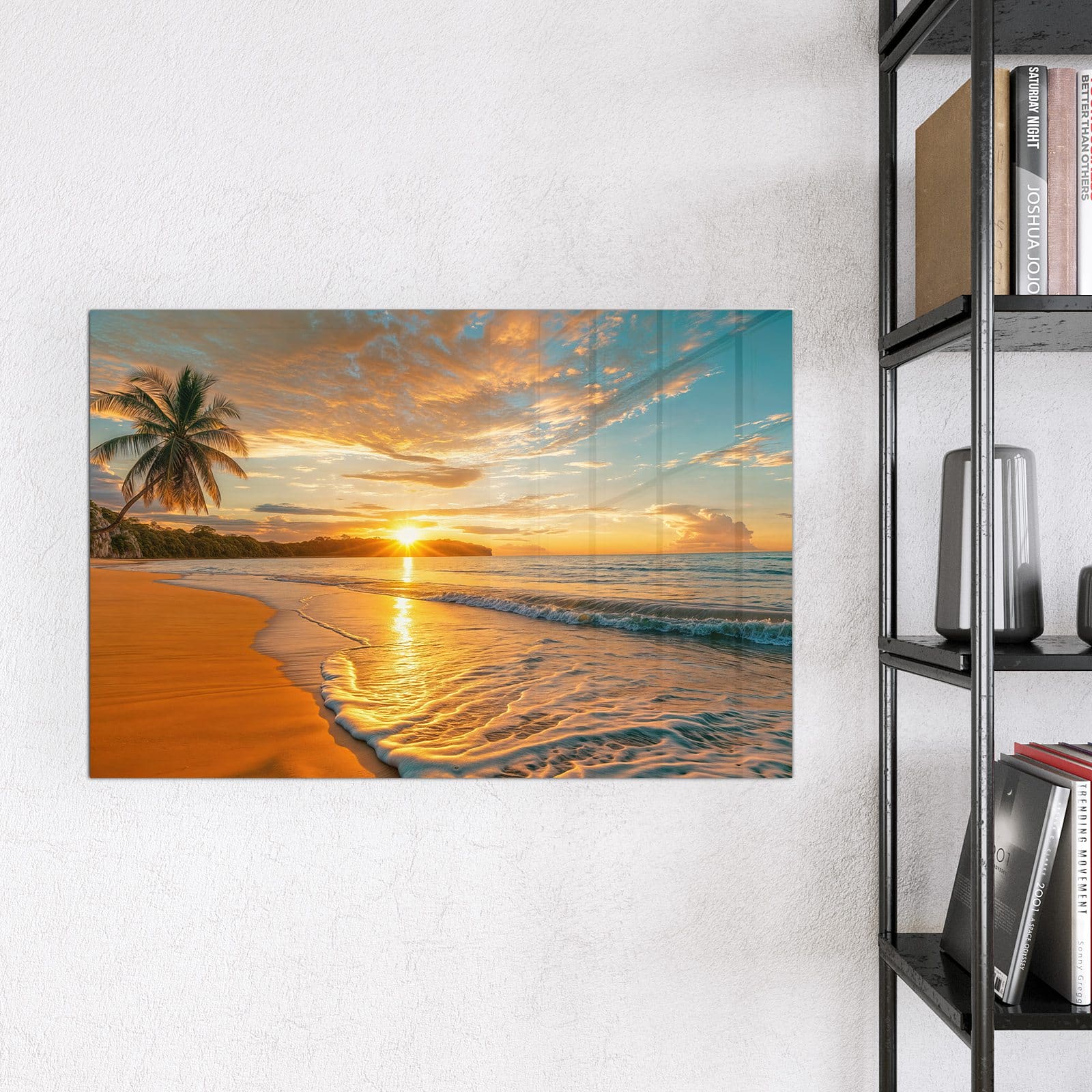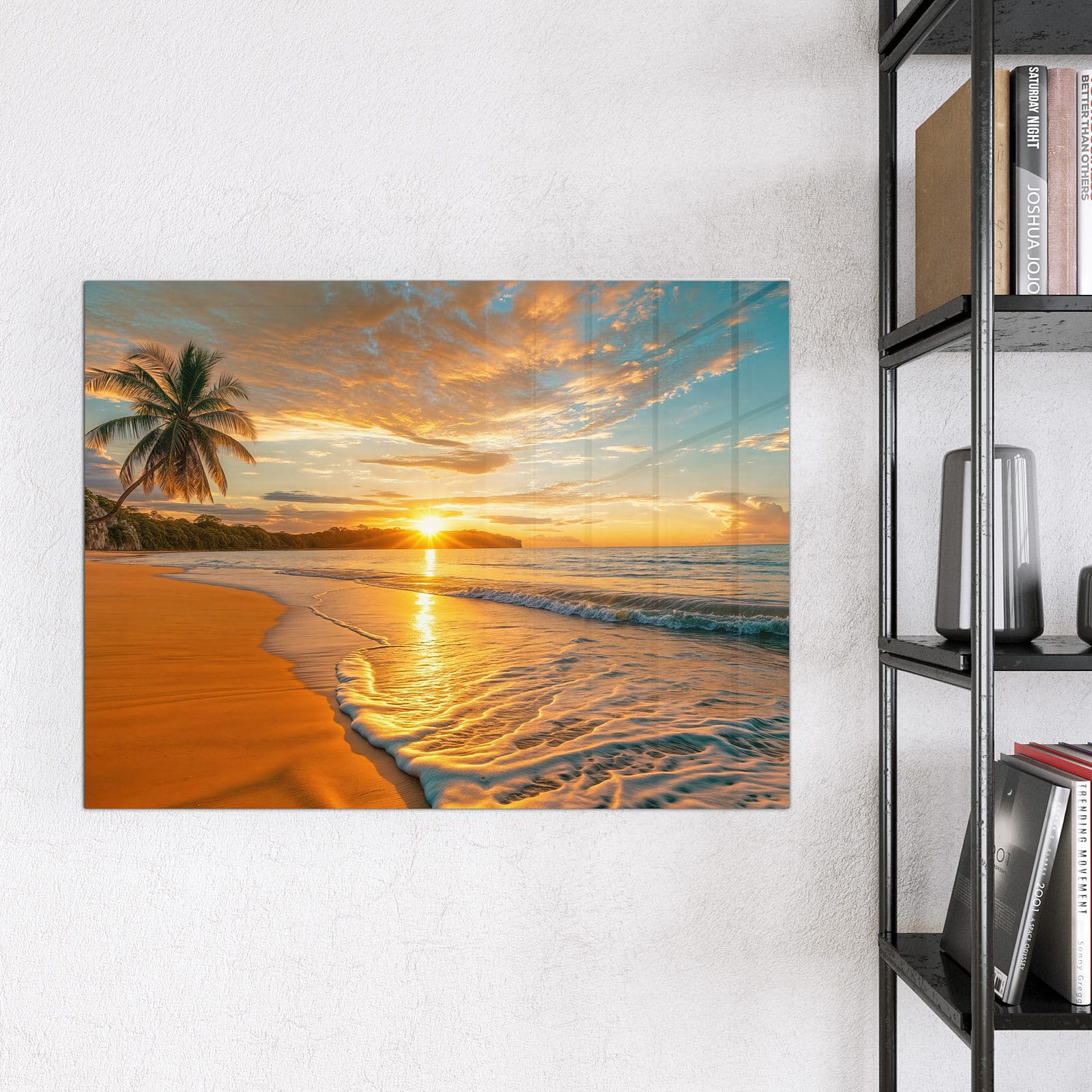 Stilvolle Glas-Magnettafel für Ihr Zuhause - Motiv Sonnenuntergang am Strand