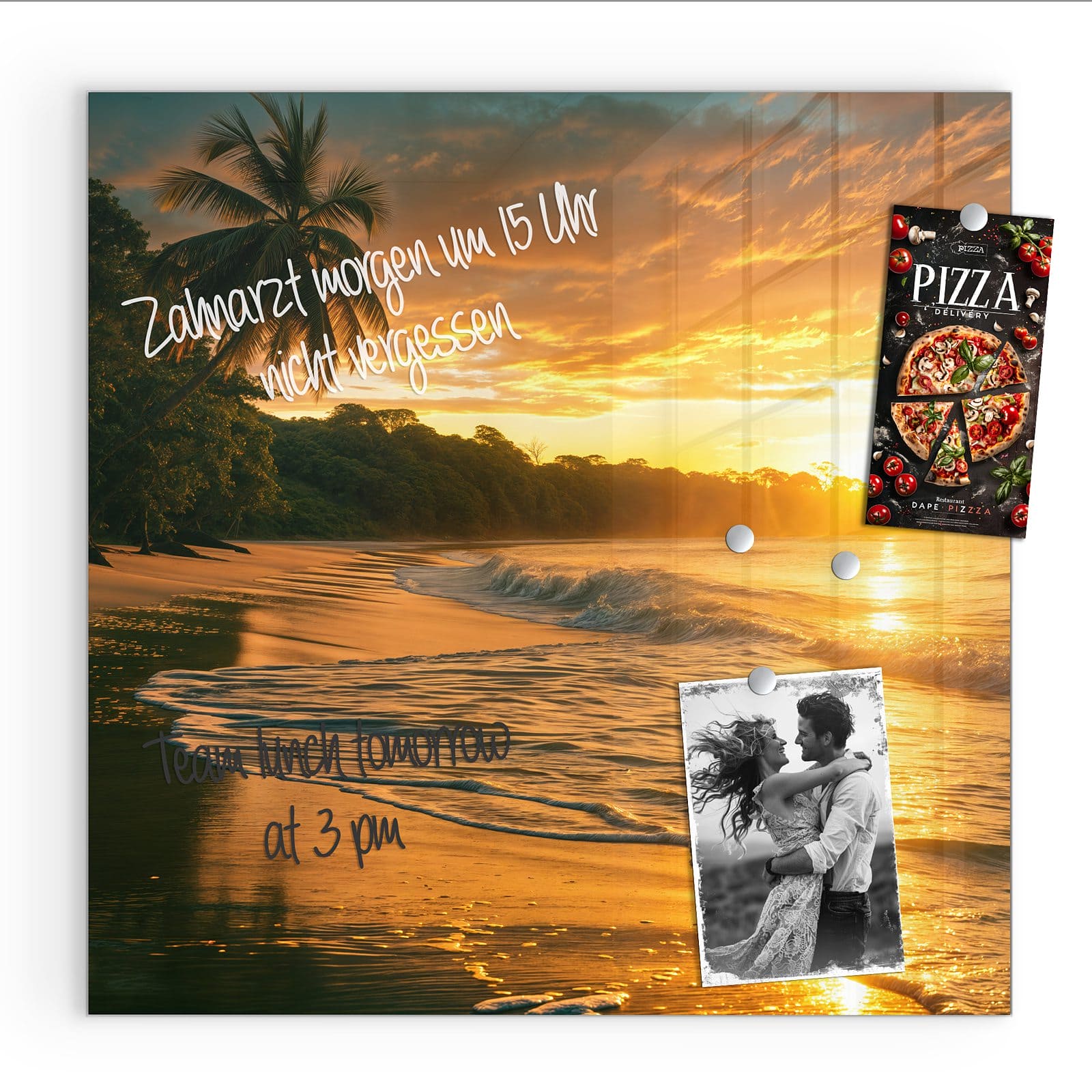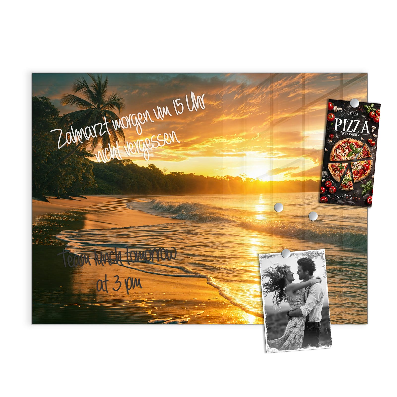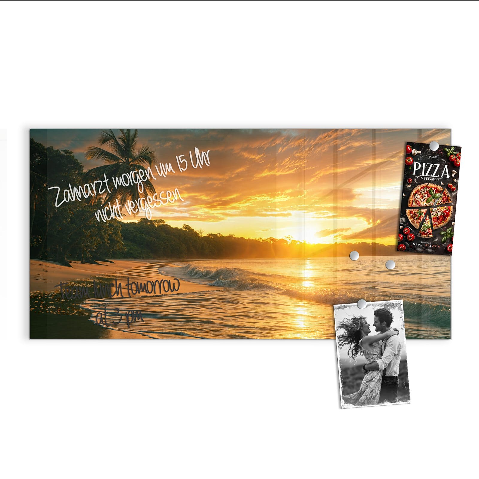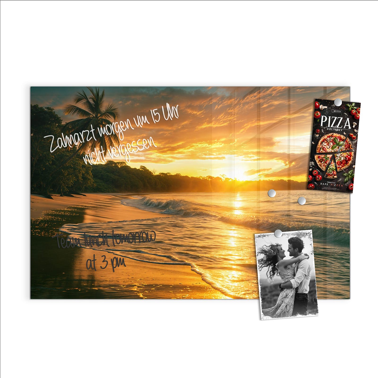 Stilvolle Glas-Magnettafel für Ihr Zuhause - Motiv Sonnenuntergang Strand