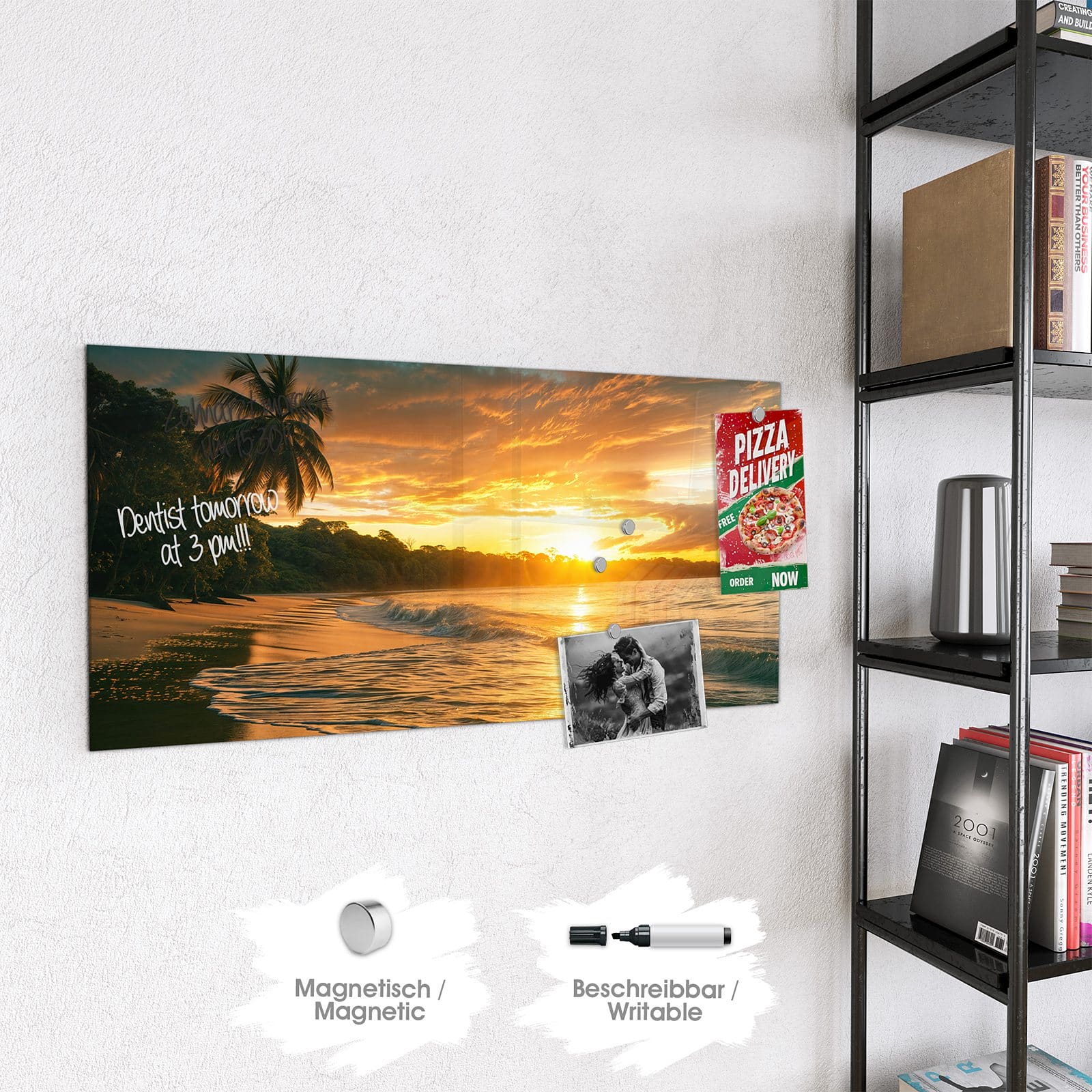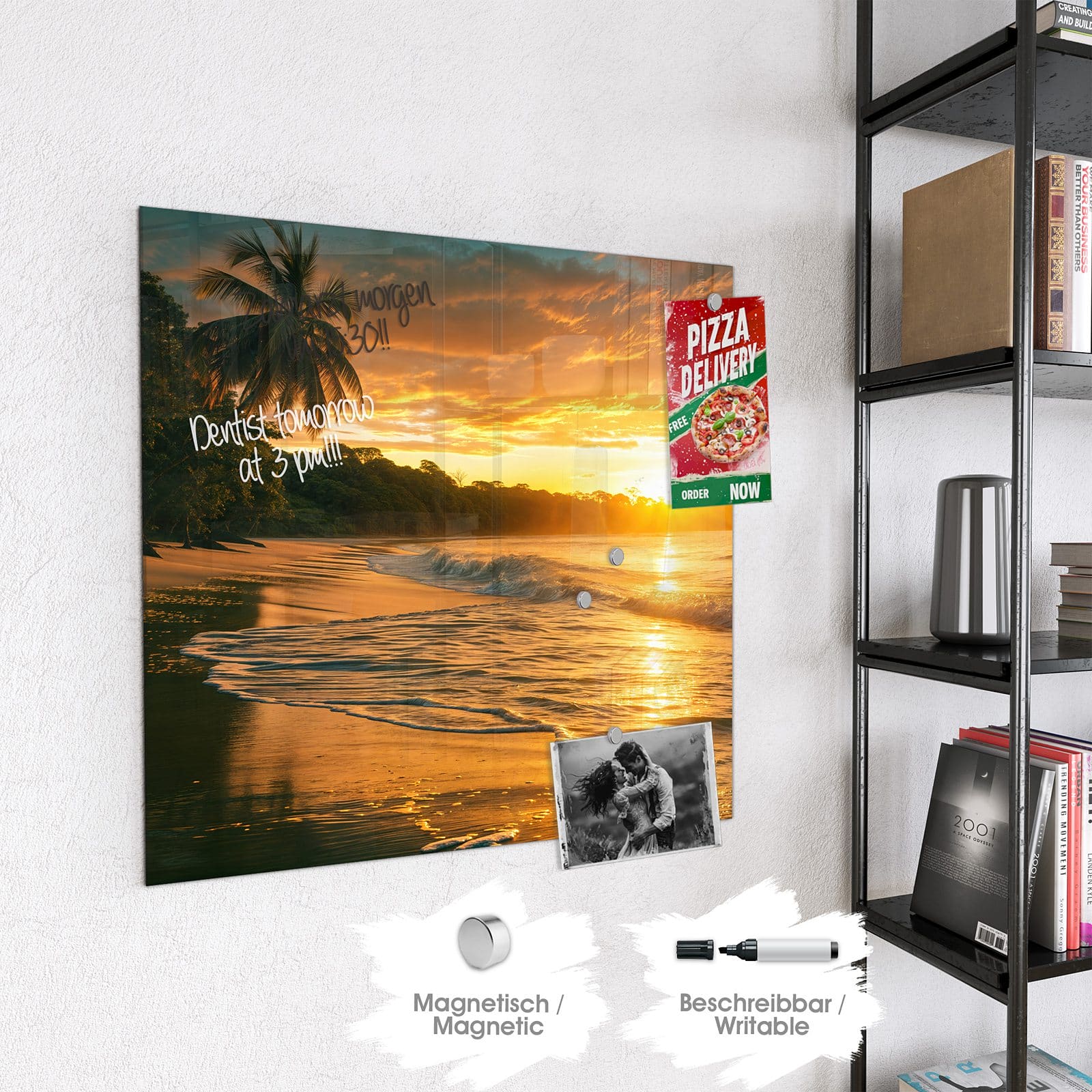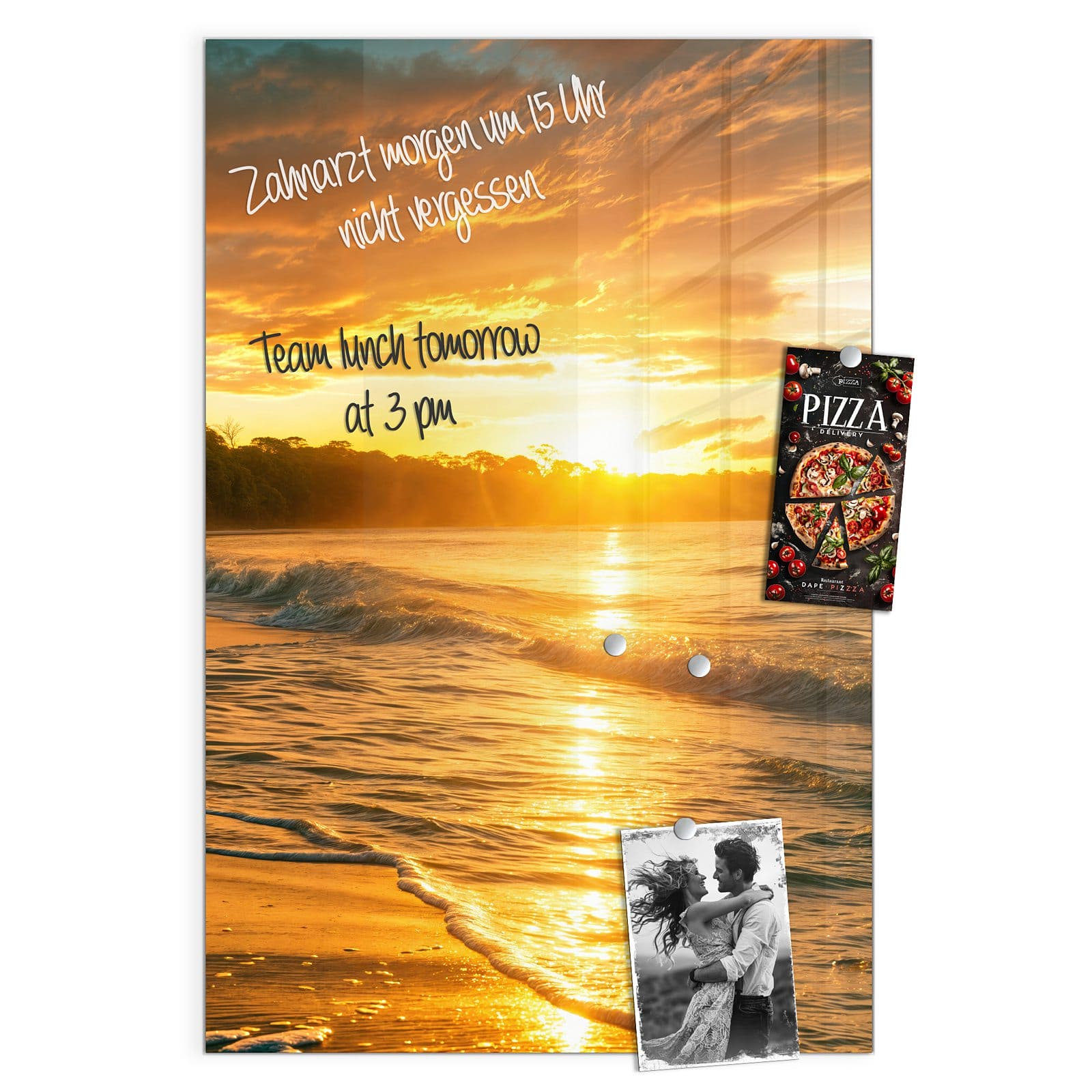 Stilvolle Glas-Magnettafel für Ihr Zuhause - Motiv Sonnenuntergang Strand