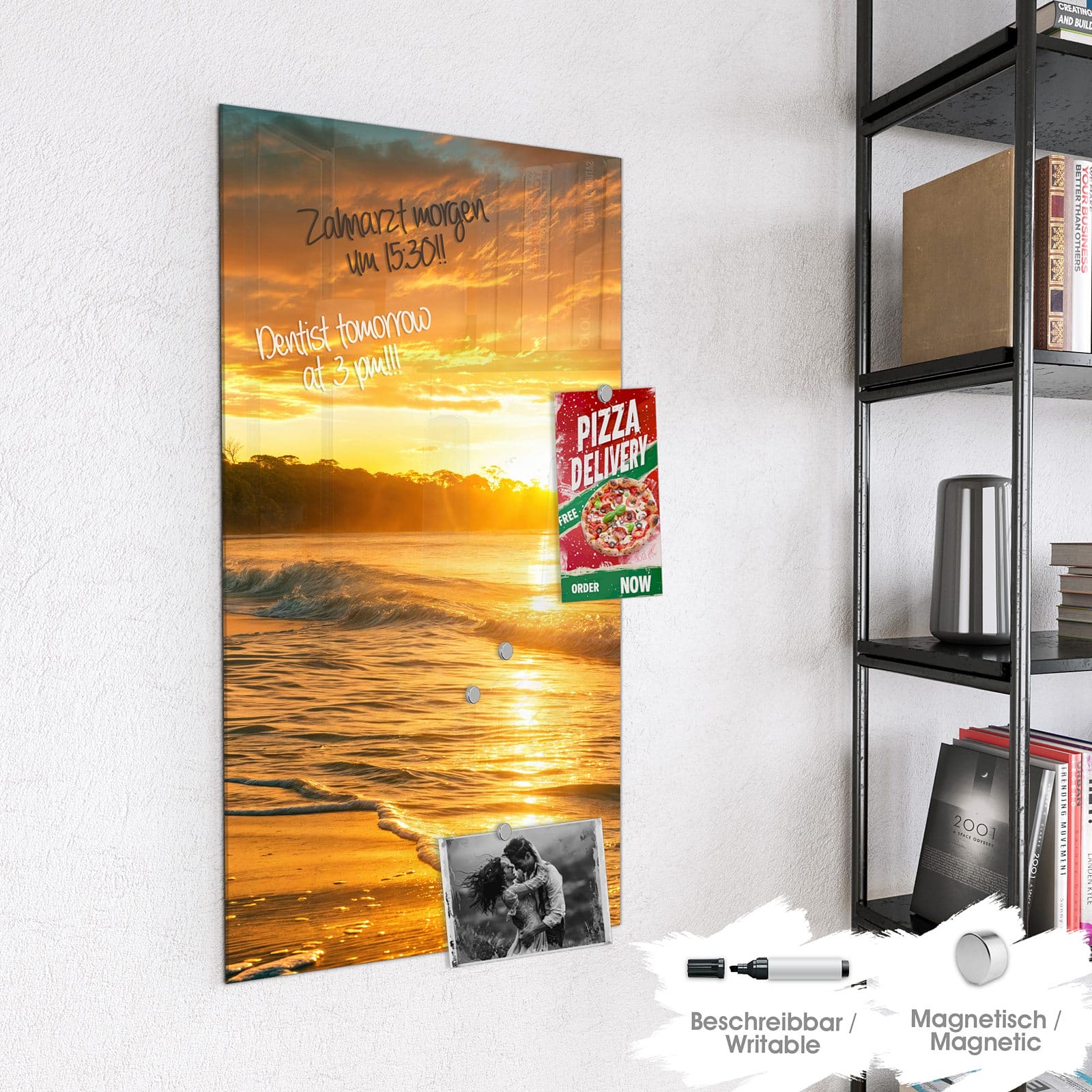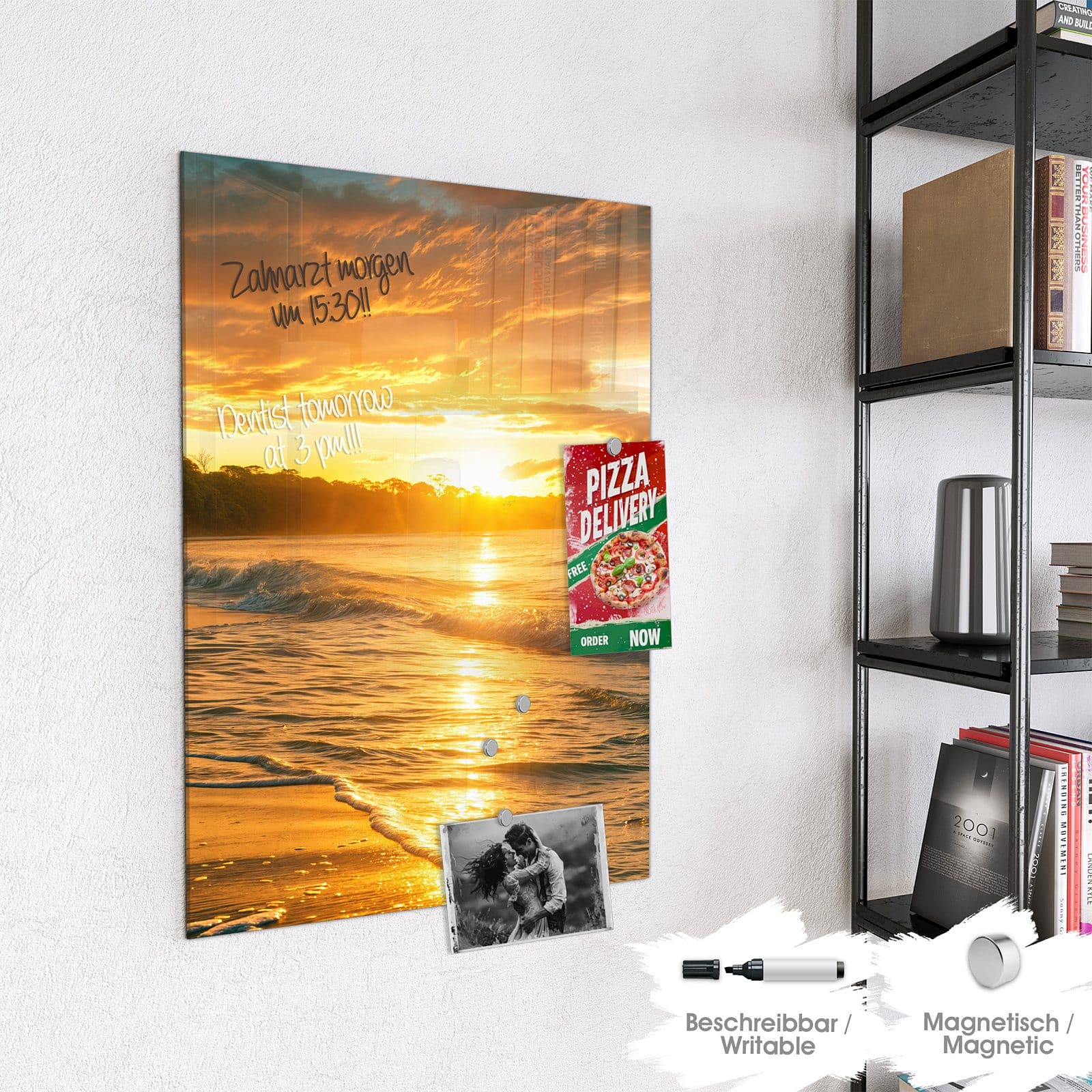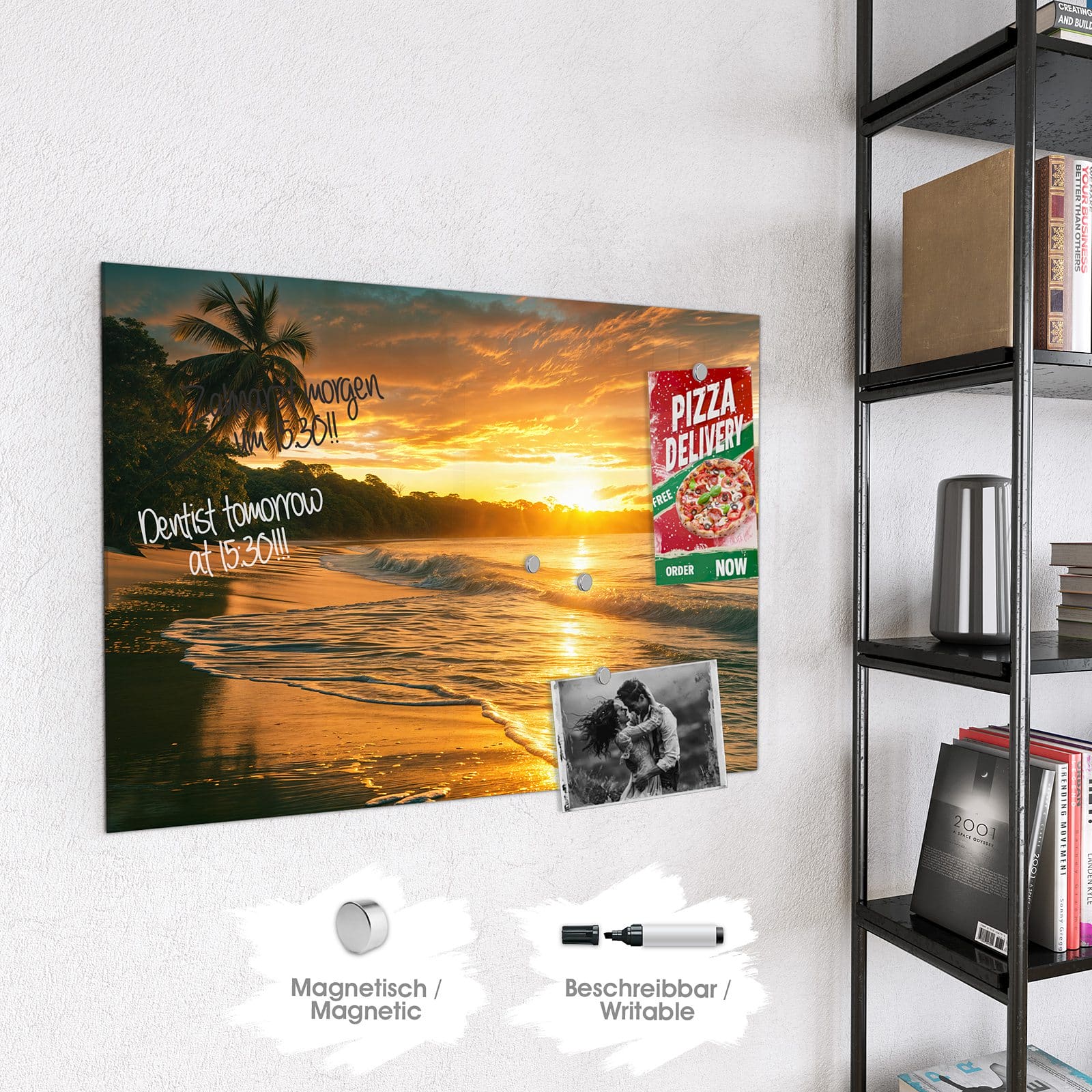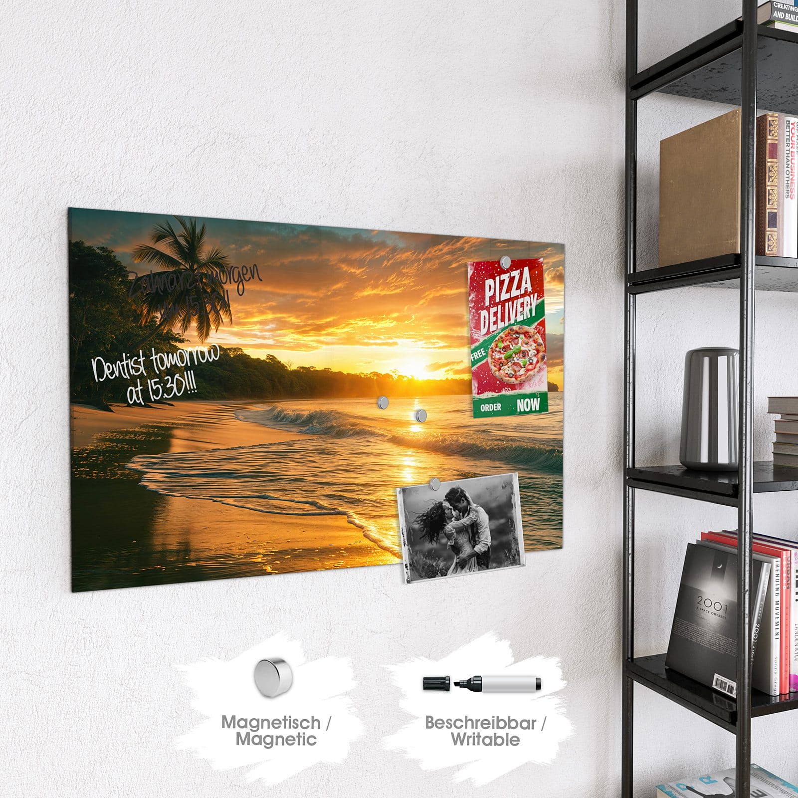 Stilvolle Glas-Magnettafel für Ihr Zuhause - Motiv Sonnenuntergang Strand