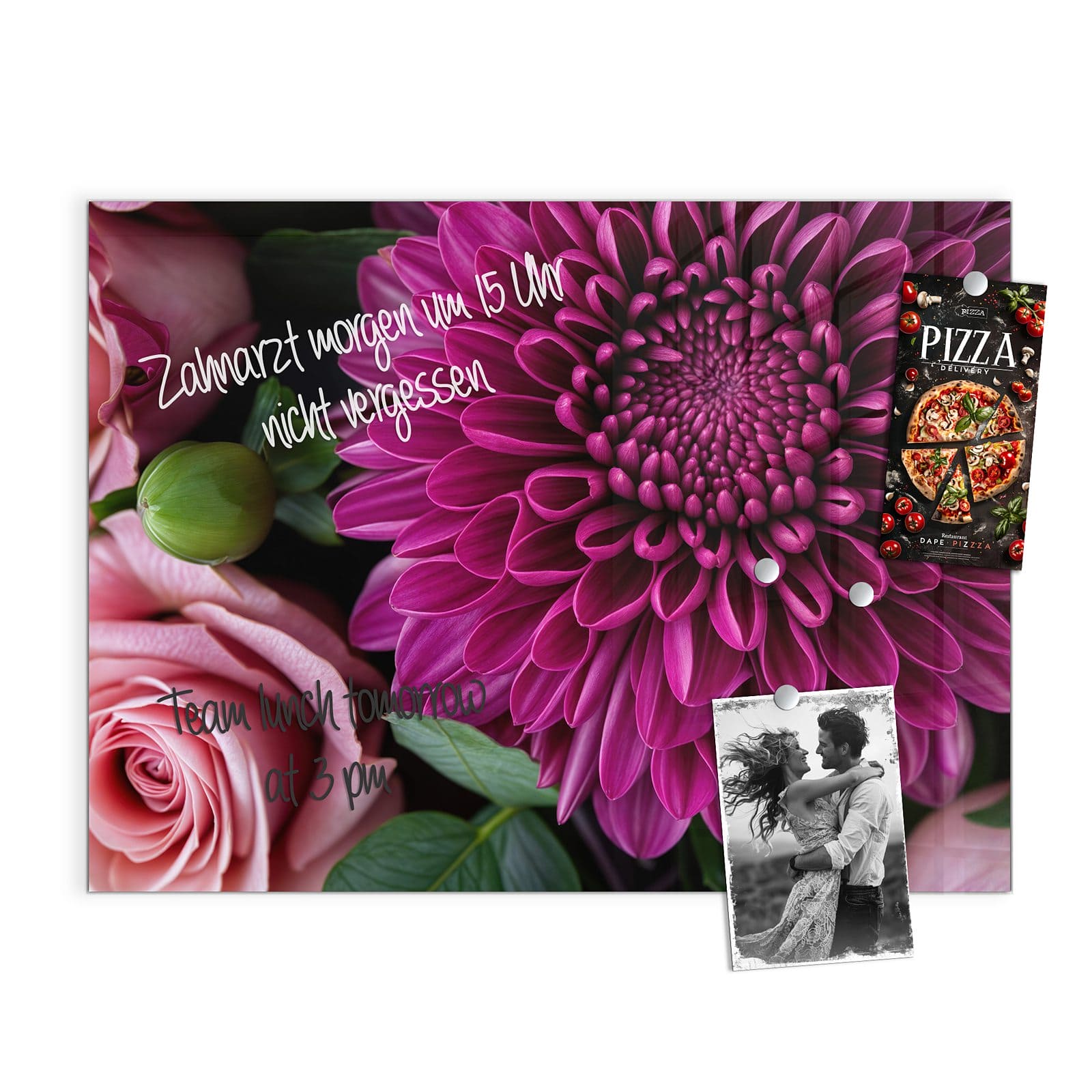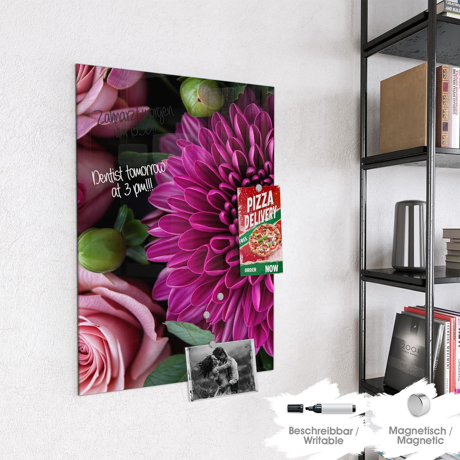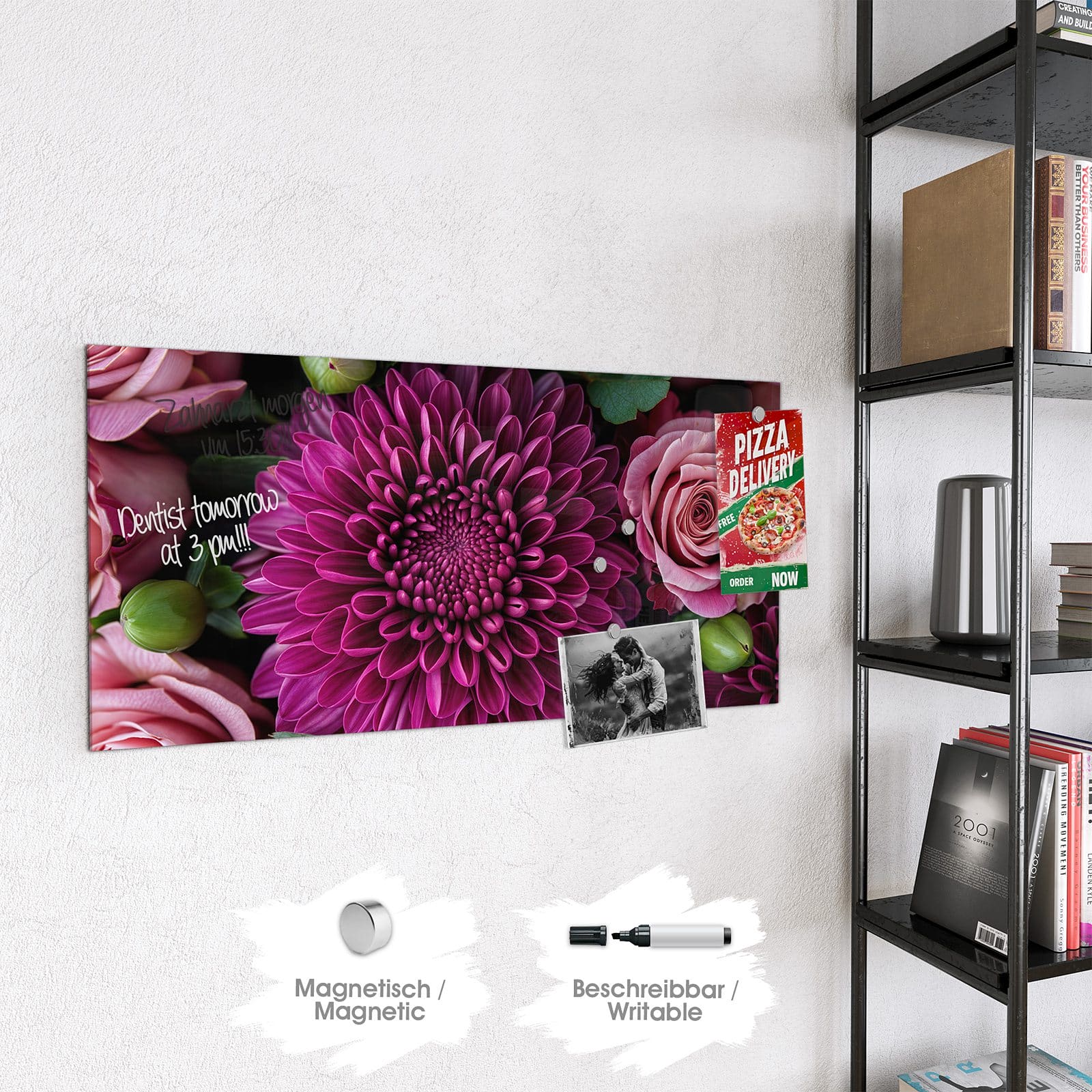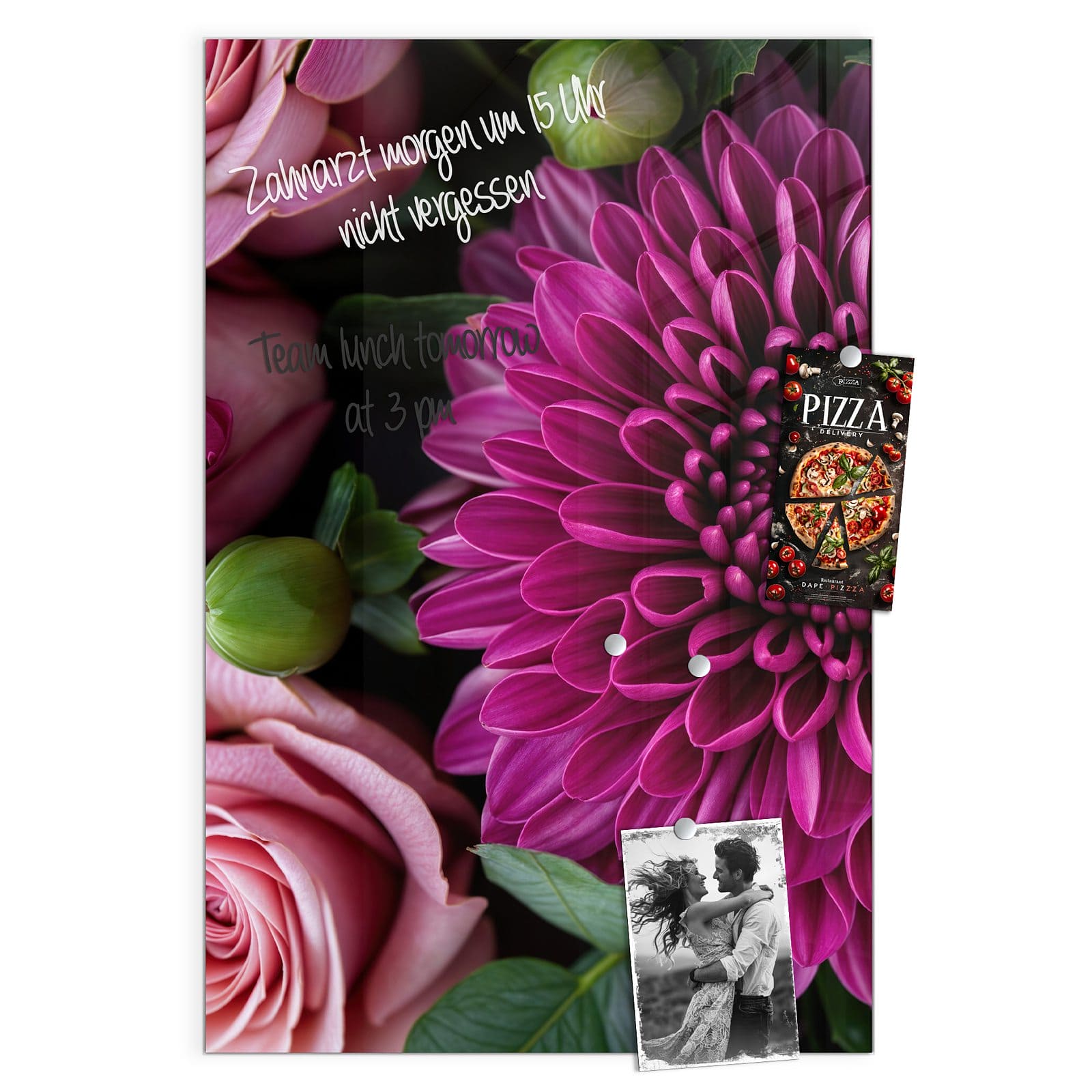 Stilvolle Glas-Magnettafel für Ihr Zuhause - Motiv Stille Blumenarrangement