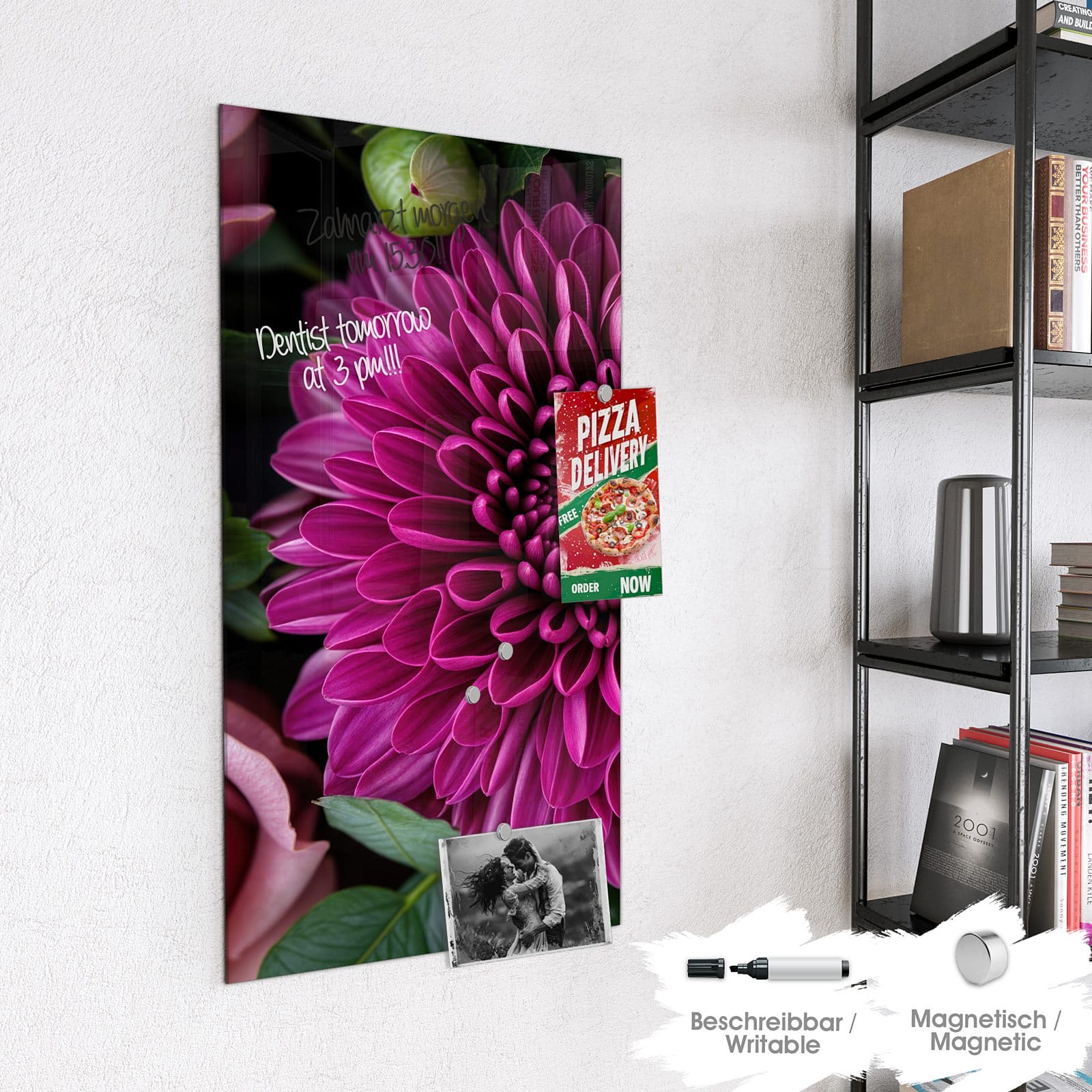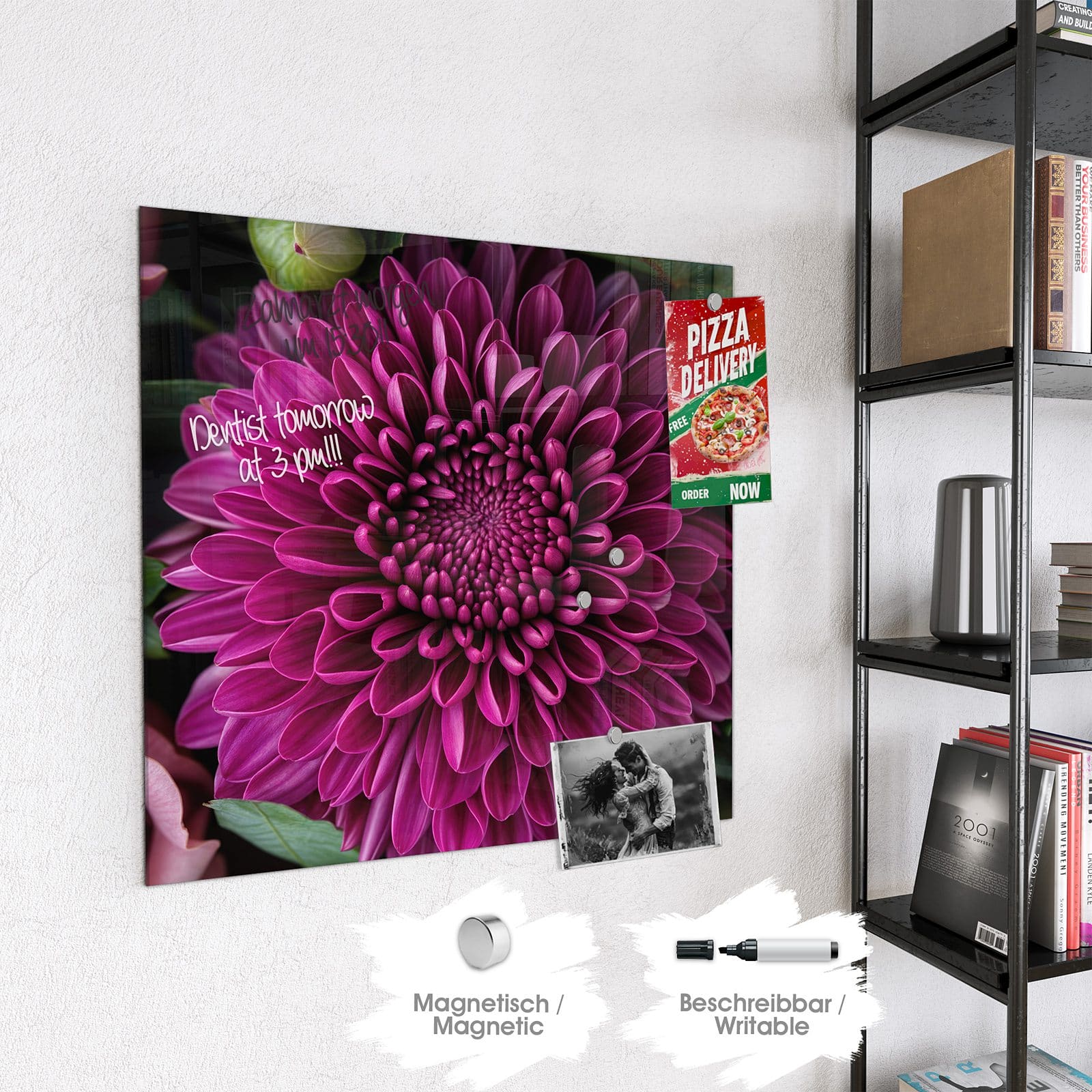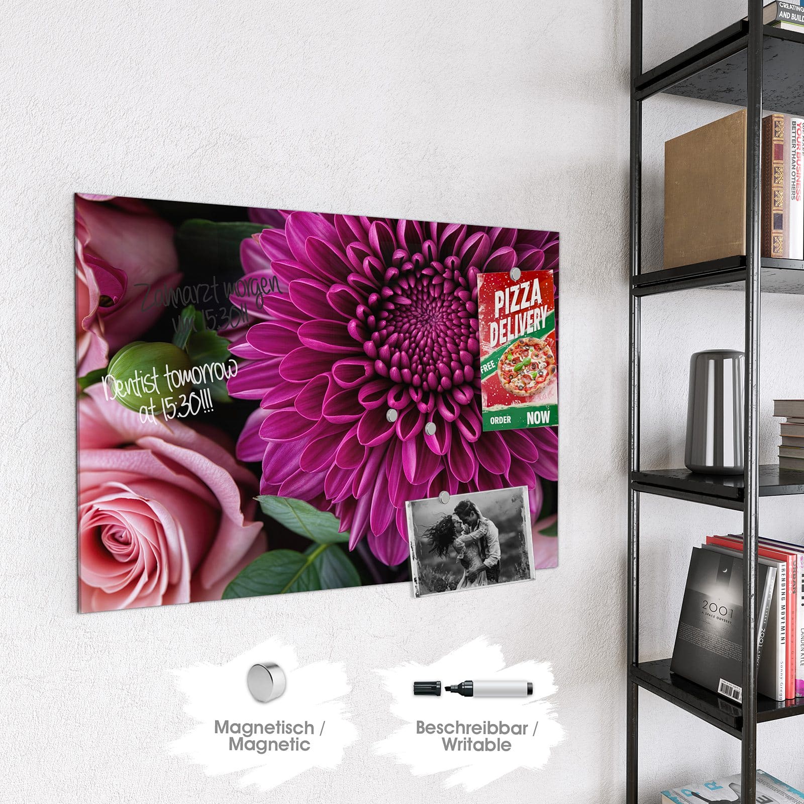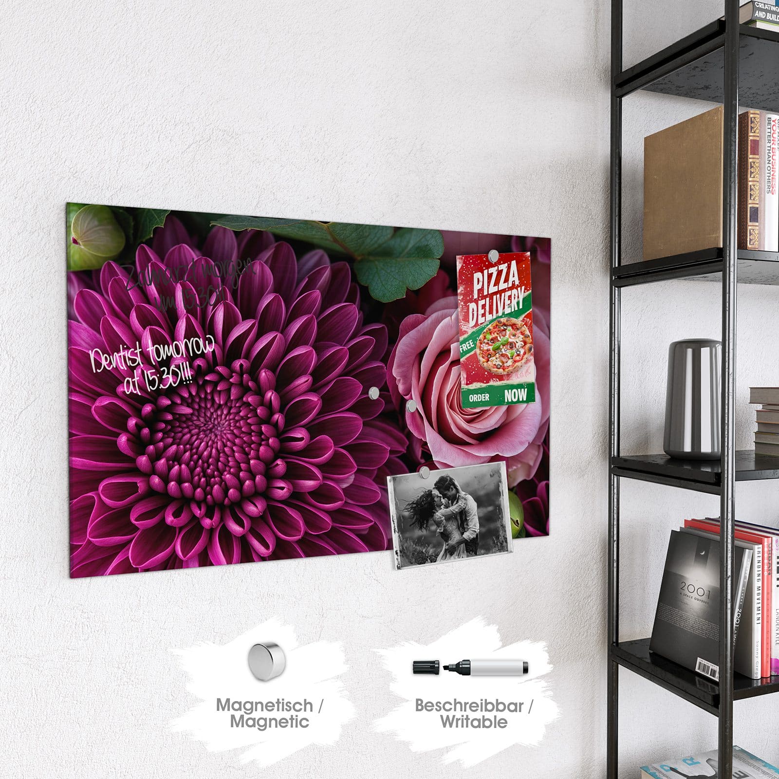 Stilvolle Glas-Magnettafel für Ihr Zuhause - Motiv Stille Blumenarrangement