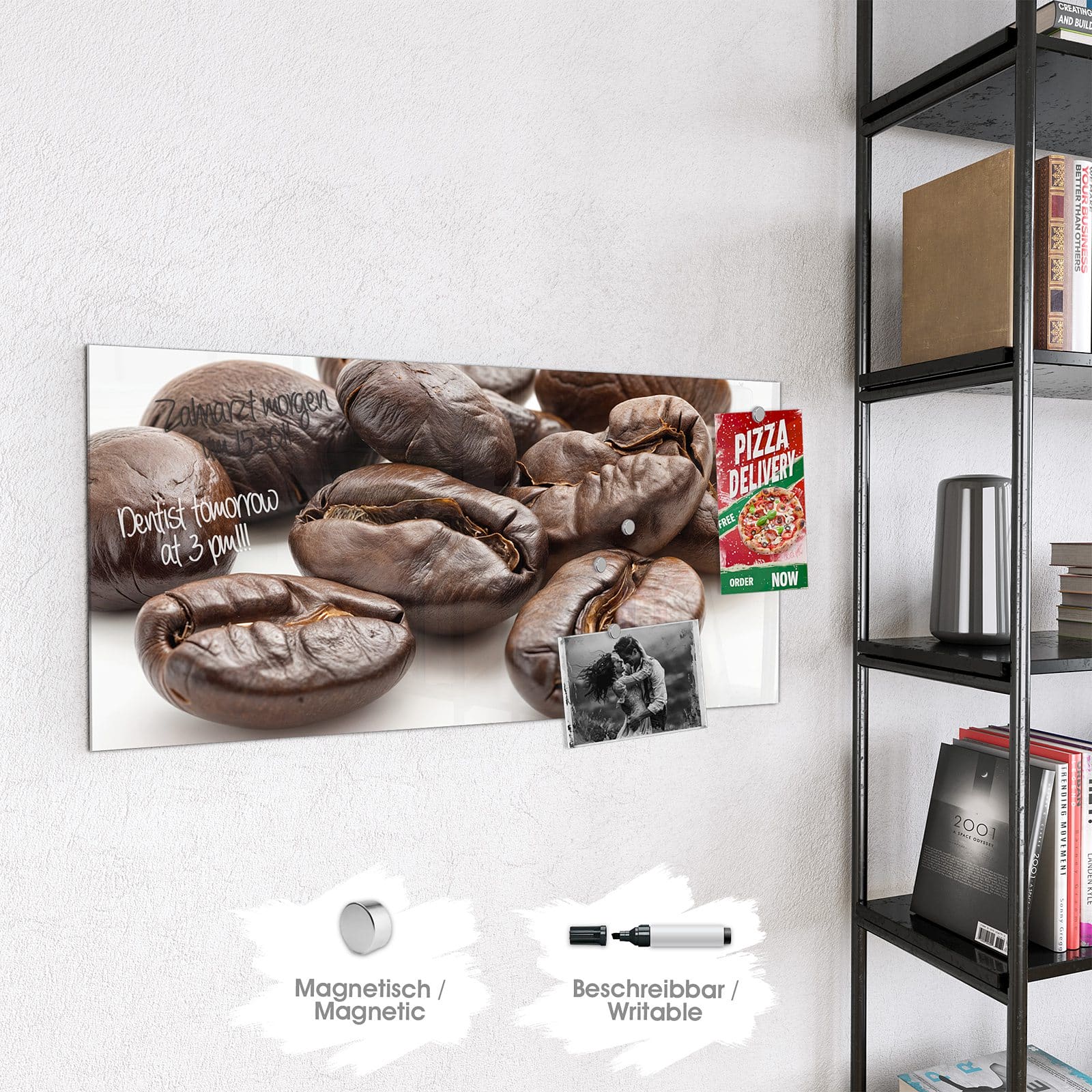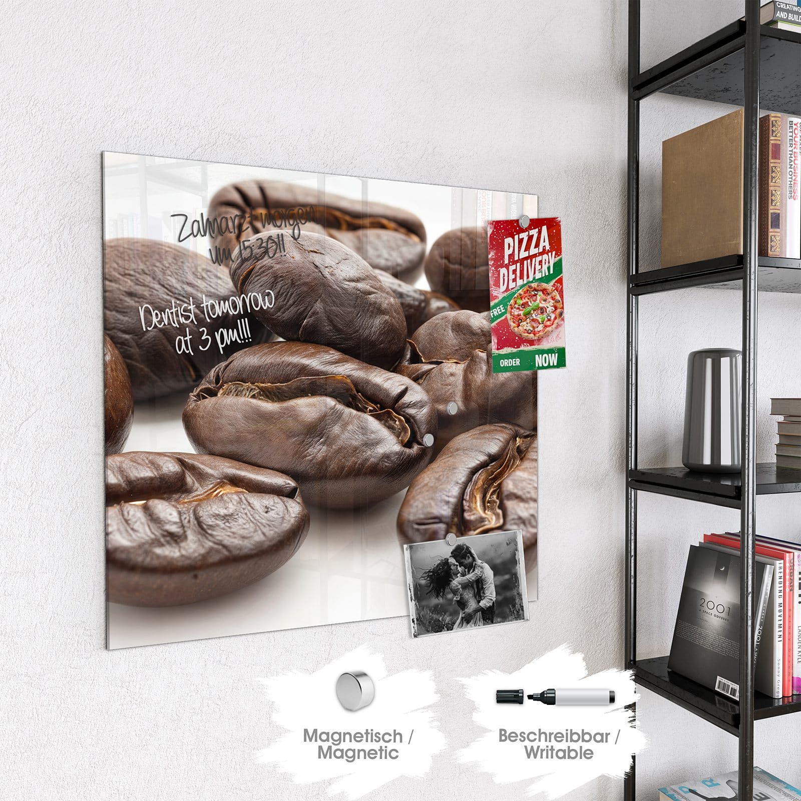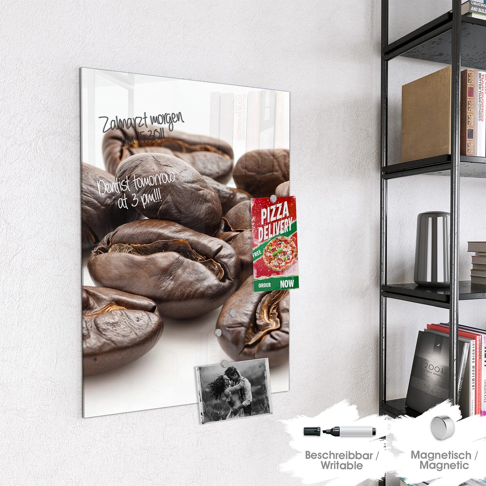 Stilvolle Glas-Magnettafel für Ihr Zuhause - Motiv Stille Kaffeebohnen