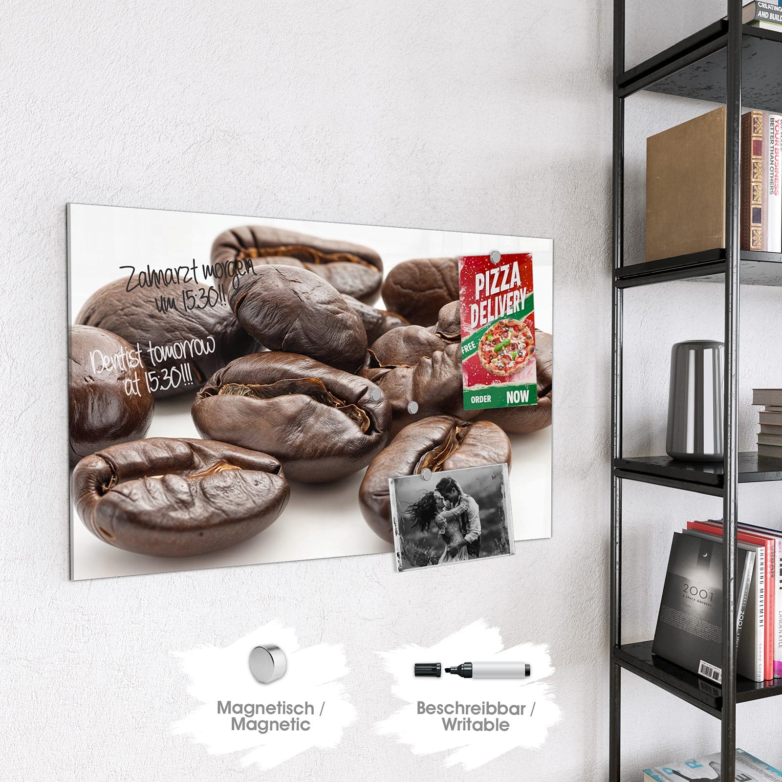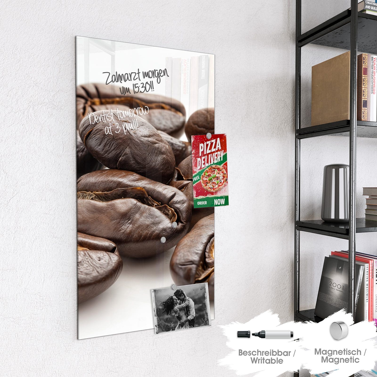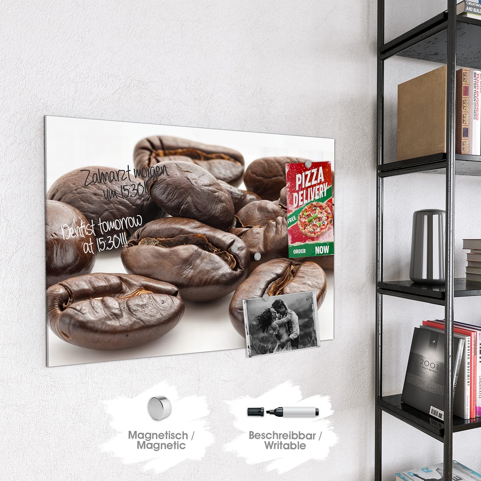 Stilvolle Glas-Magnettafel für Ihr Zuhause - Motiv Stille Kaffeebohnen