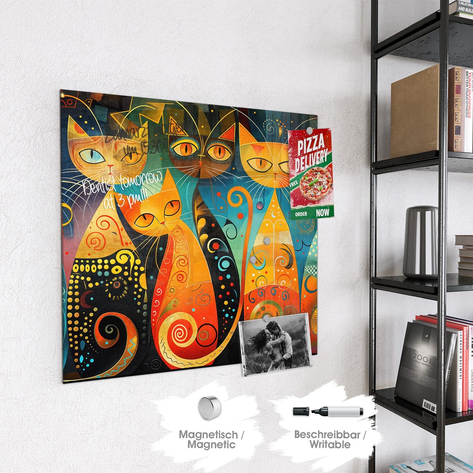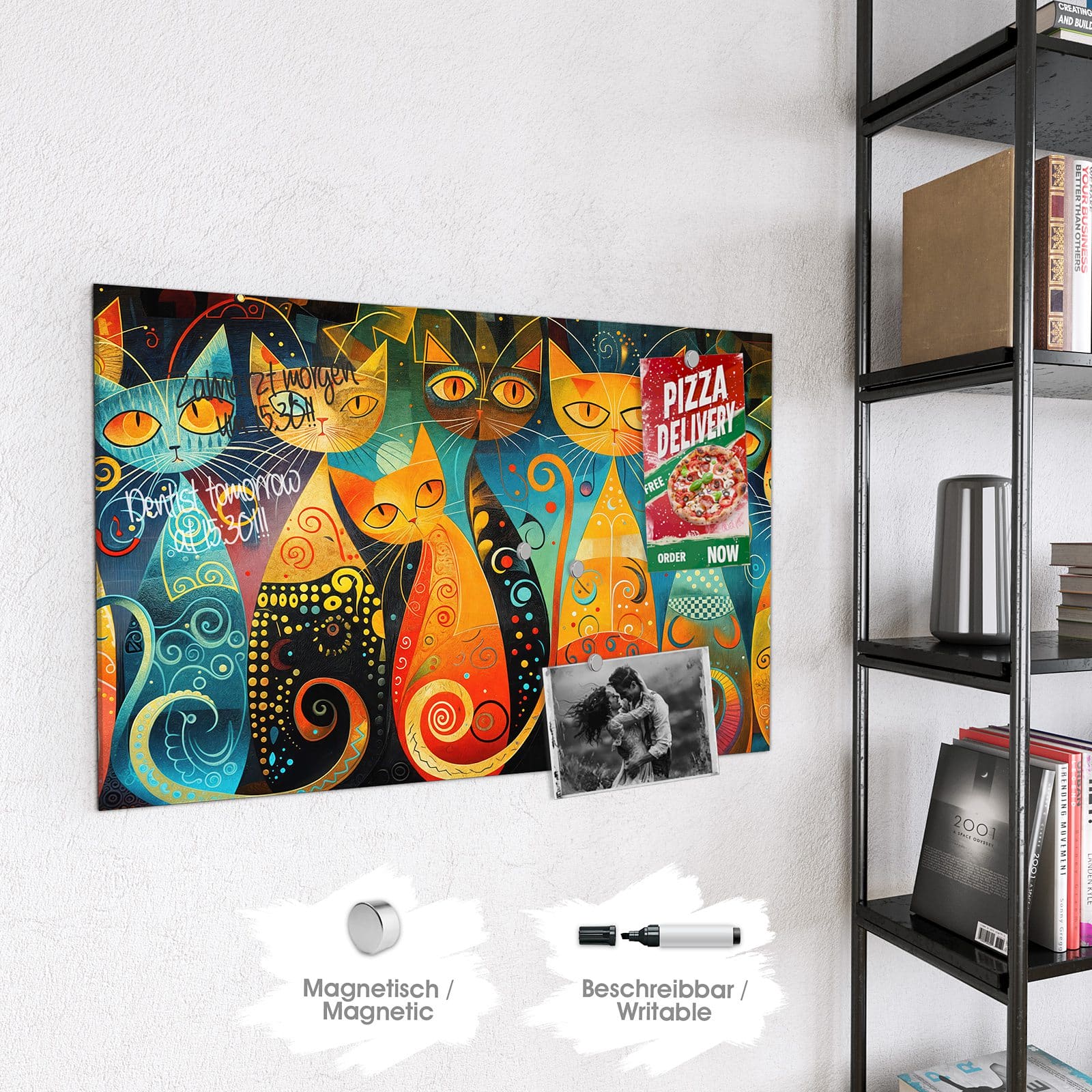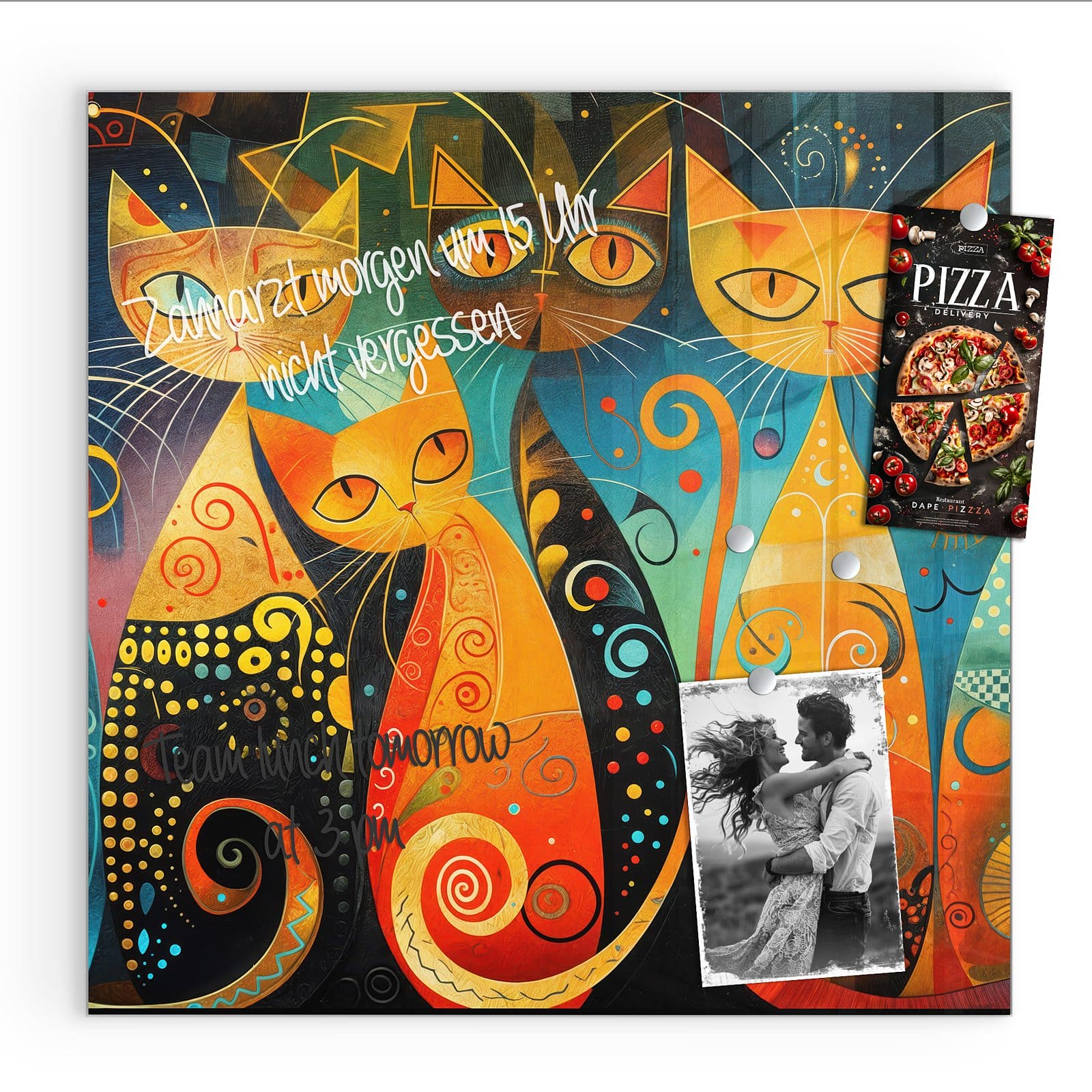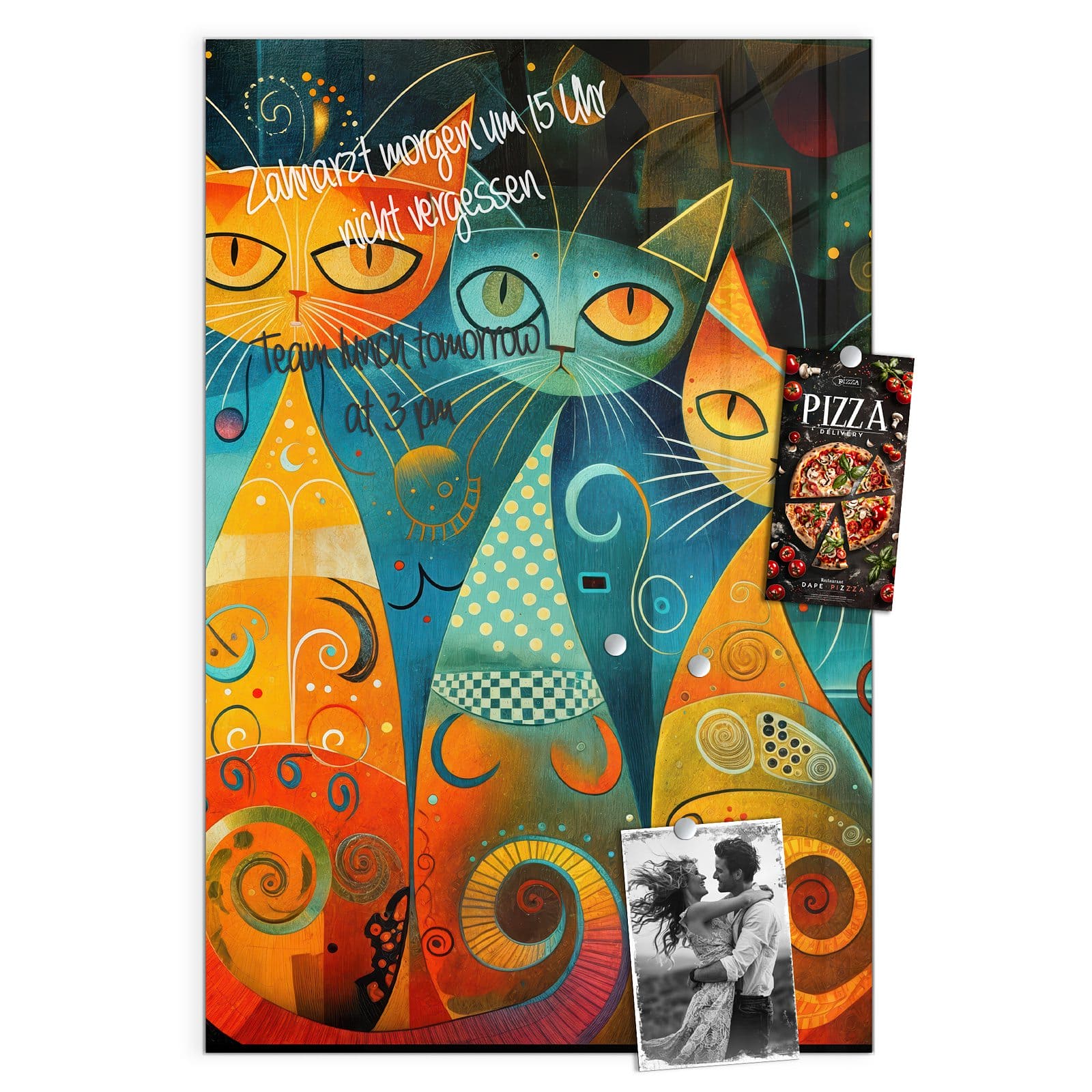Stilvolle Glas-Magnettafel für Ihr Zuhause - Motiv Verspielte Katzenkunst