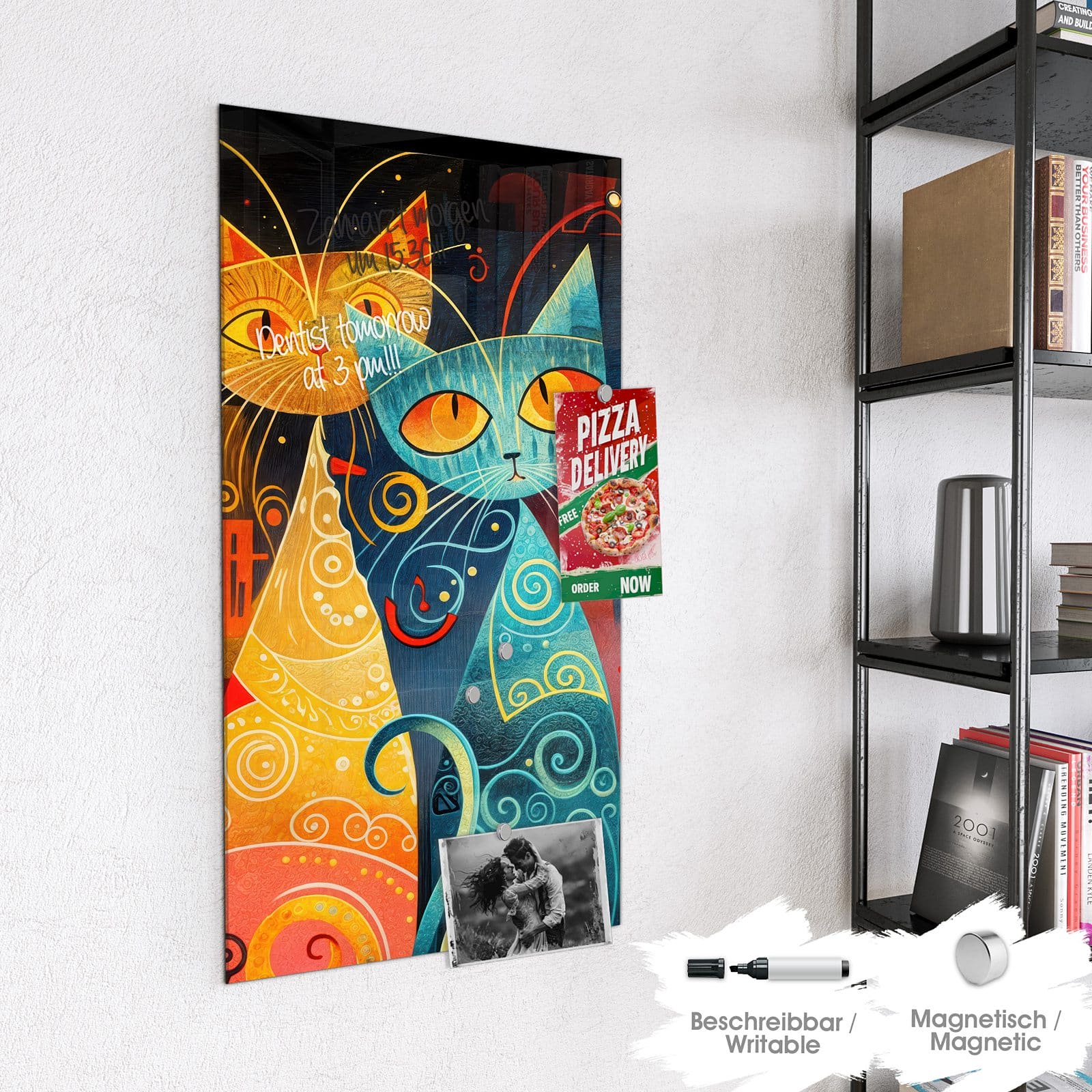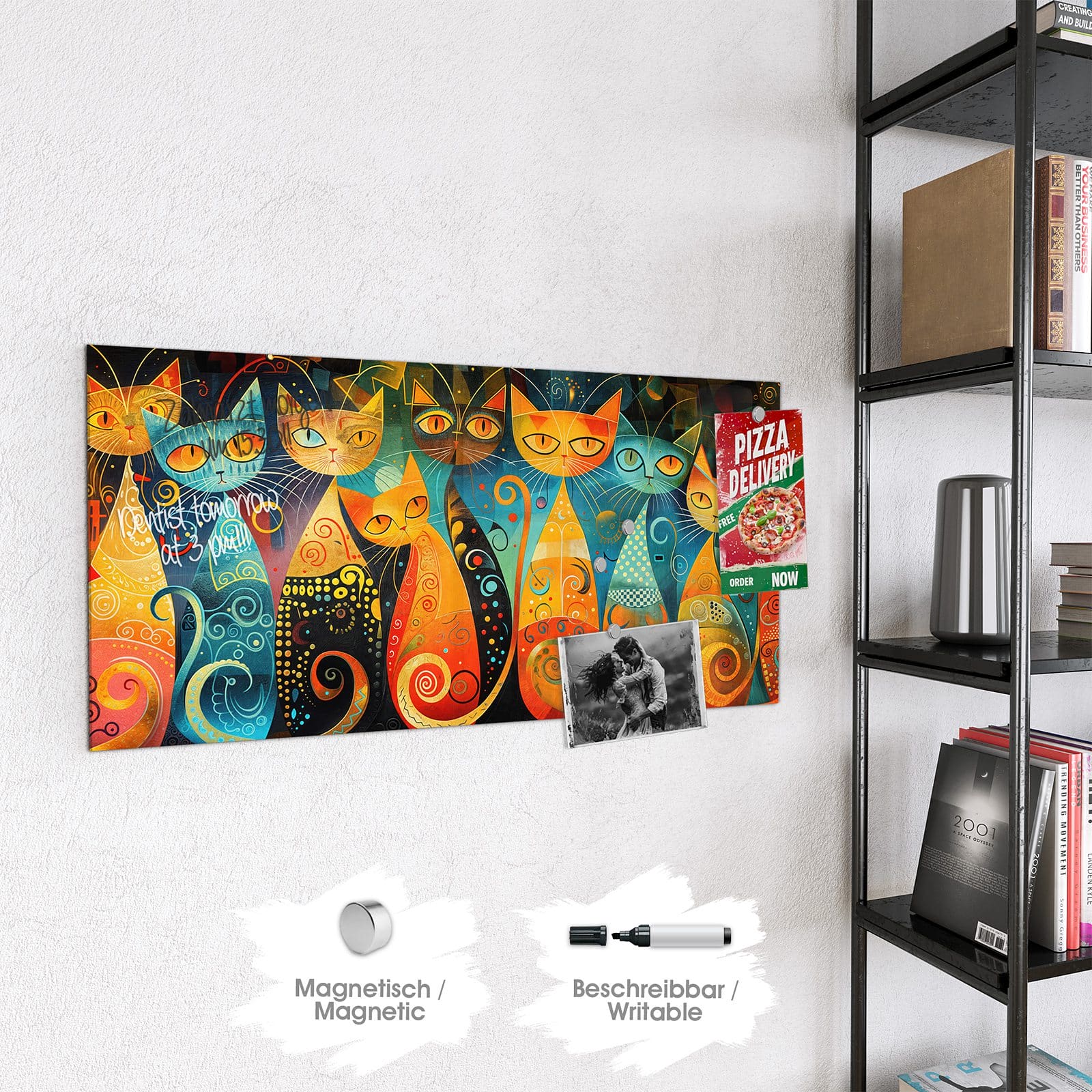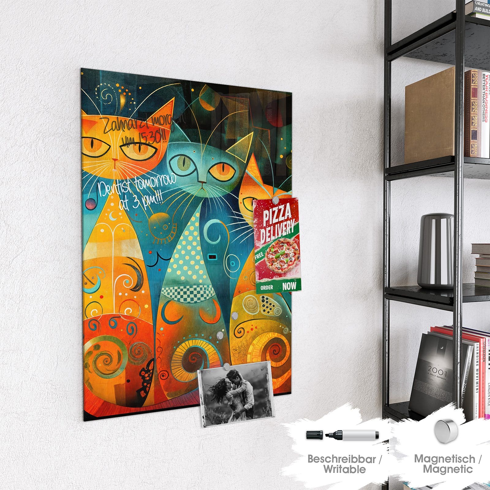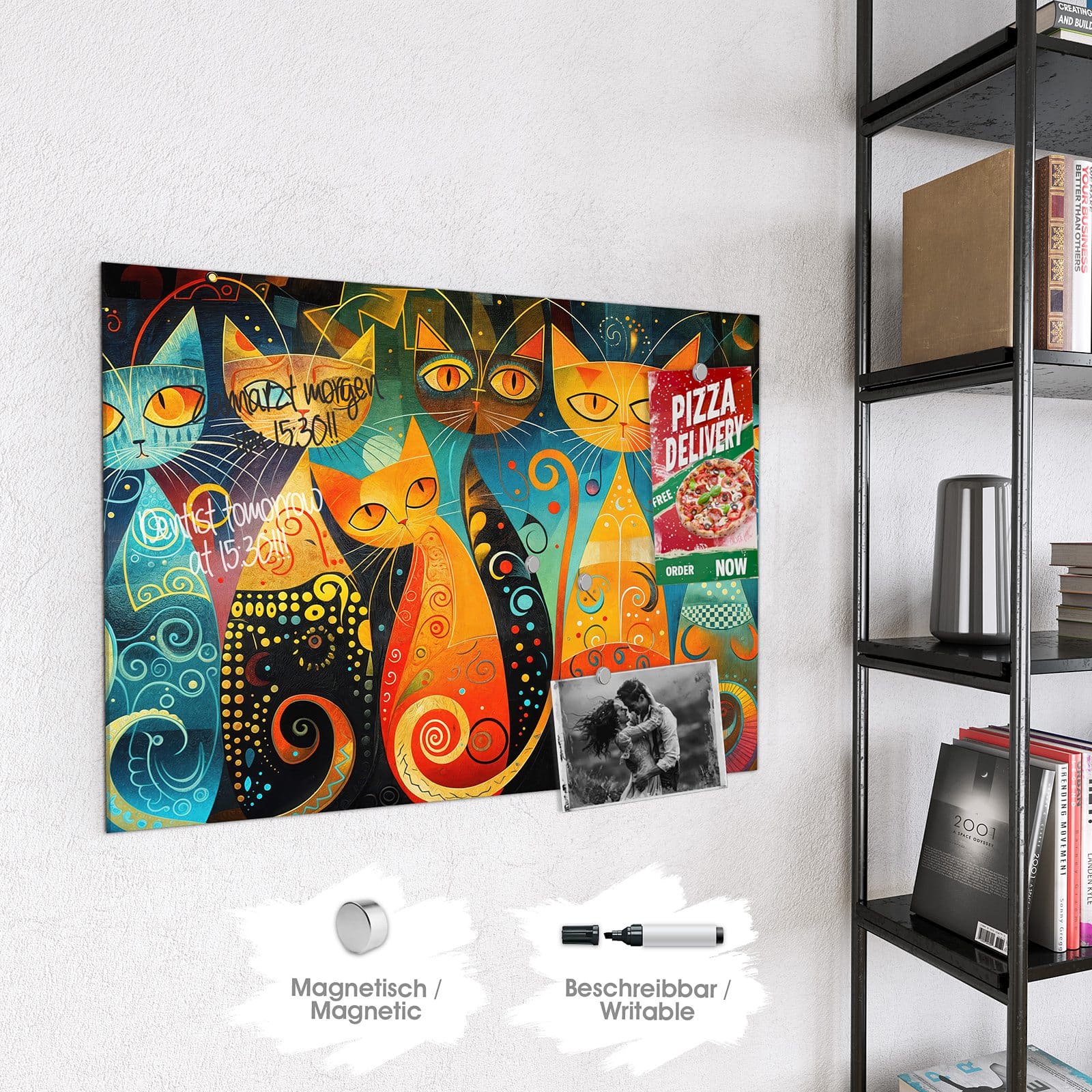 Stilvolle Glas-Magnettafel für Ihr Zuhause - Motiv Verspielte Katzenkunst