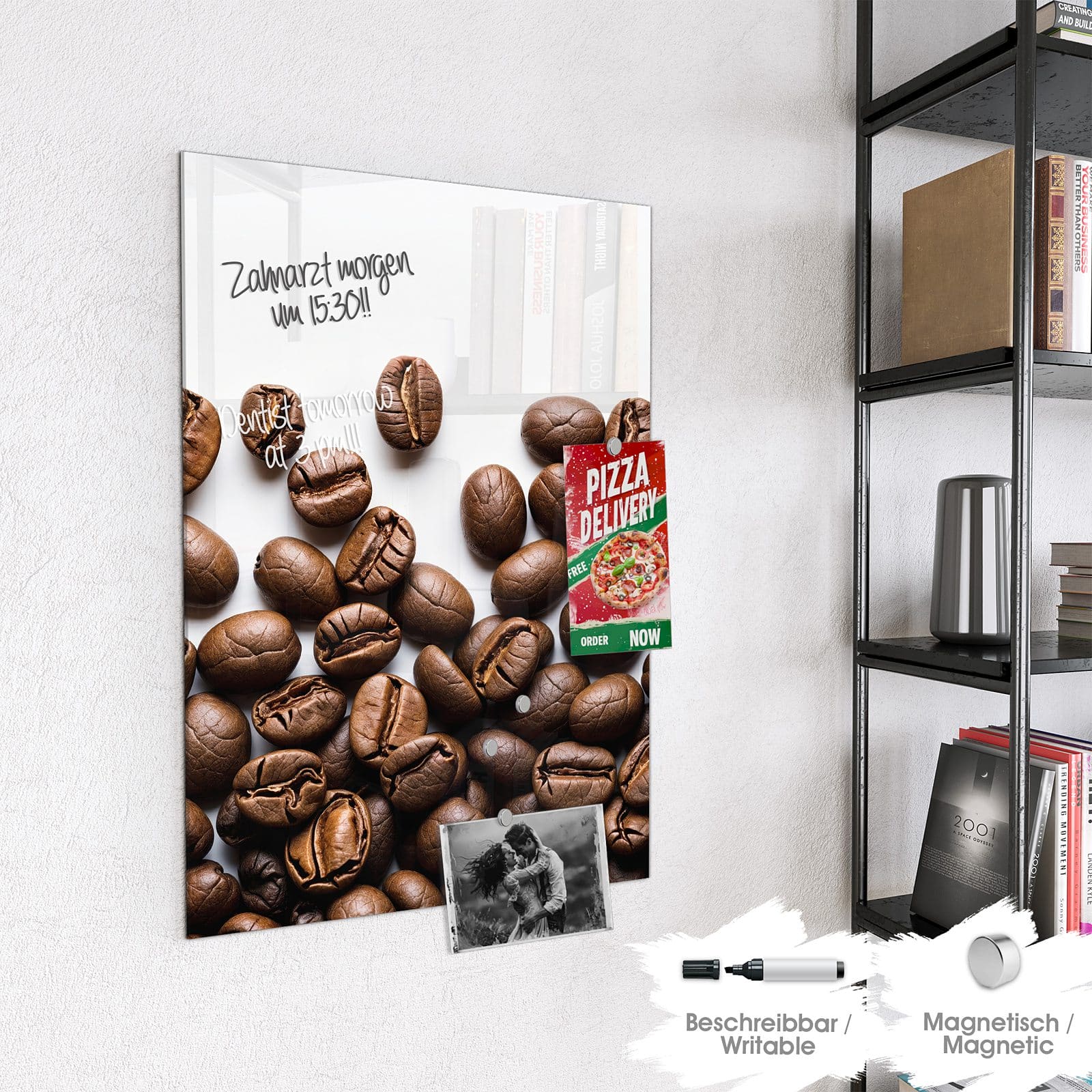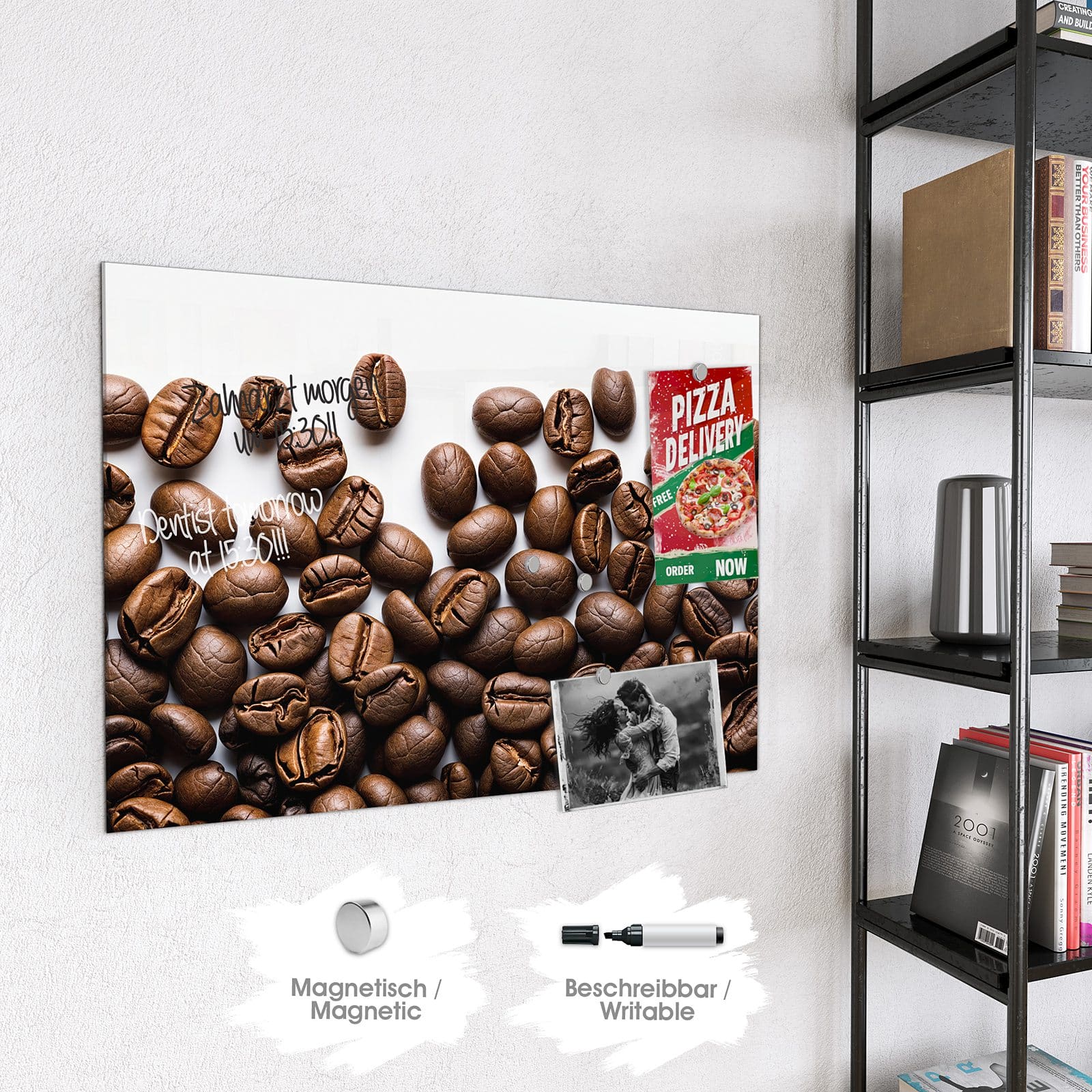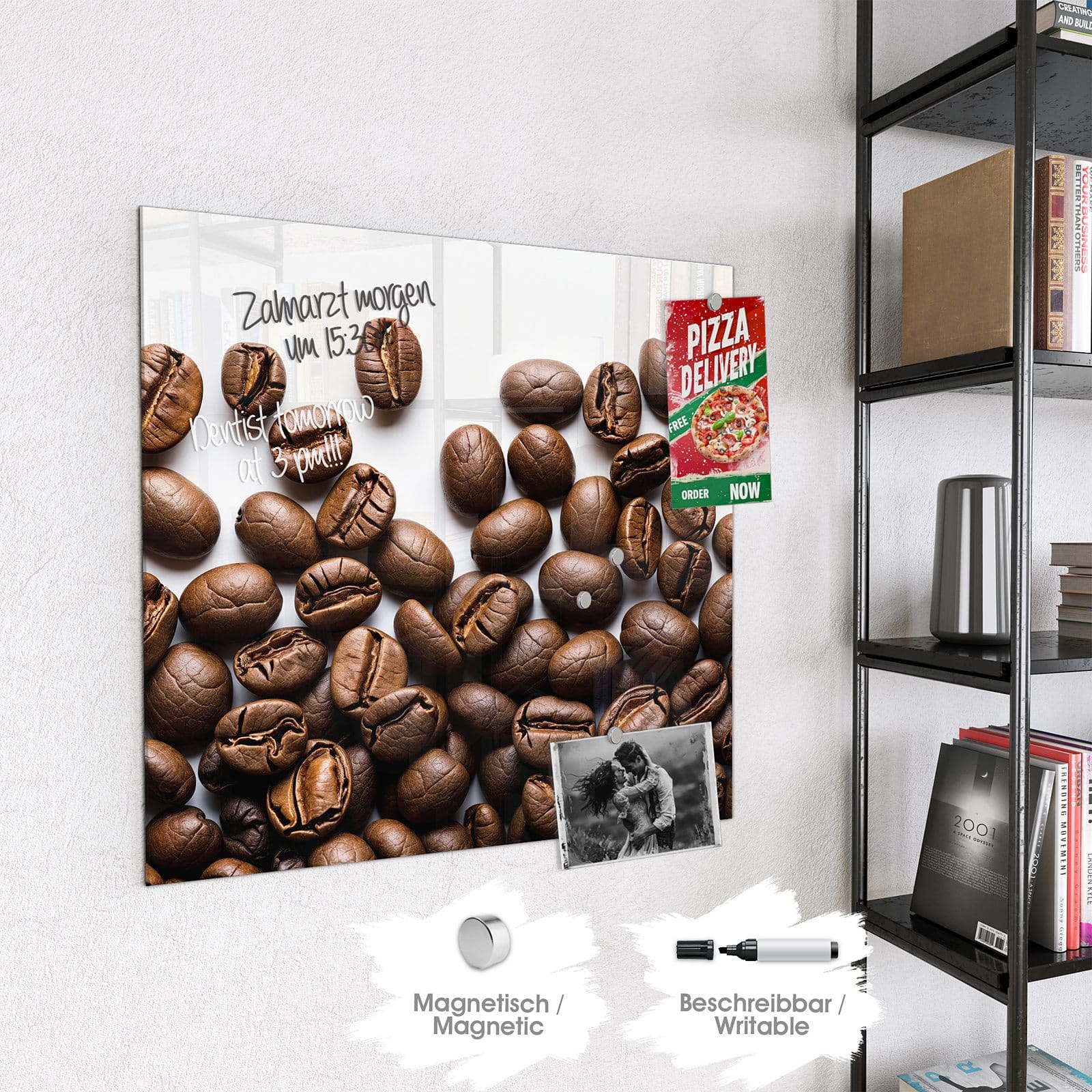Stilvolle Glas-Magnettafel für Ihr Zuhause - Motiv Warme Kaffeebohnen