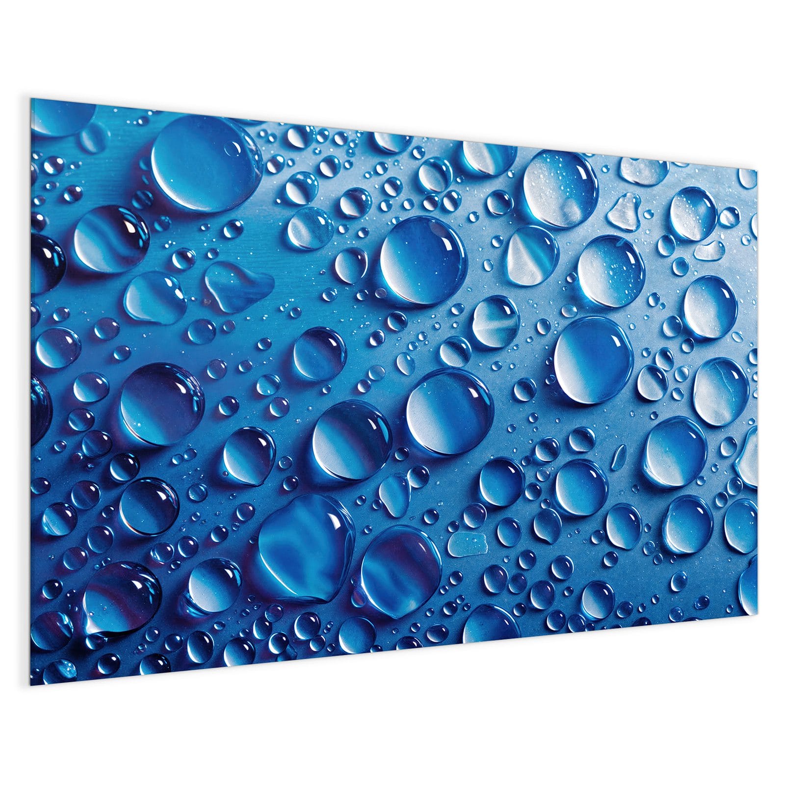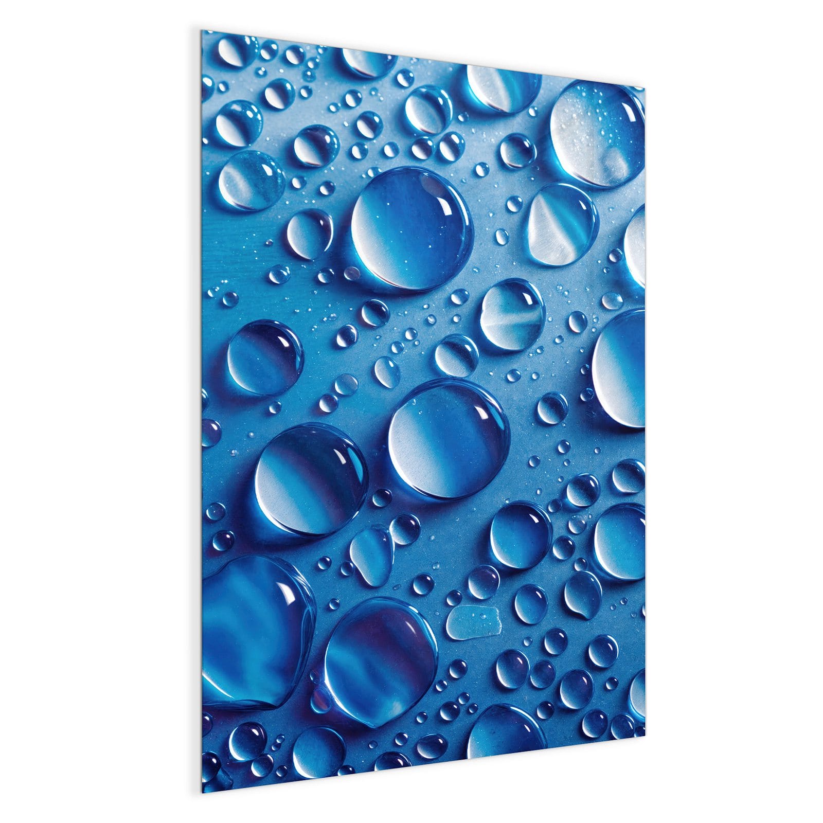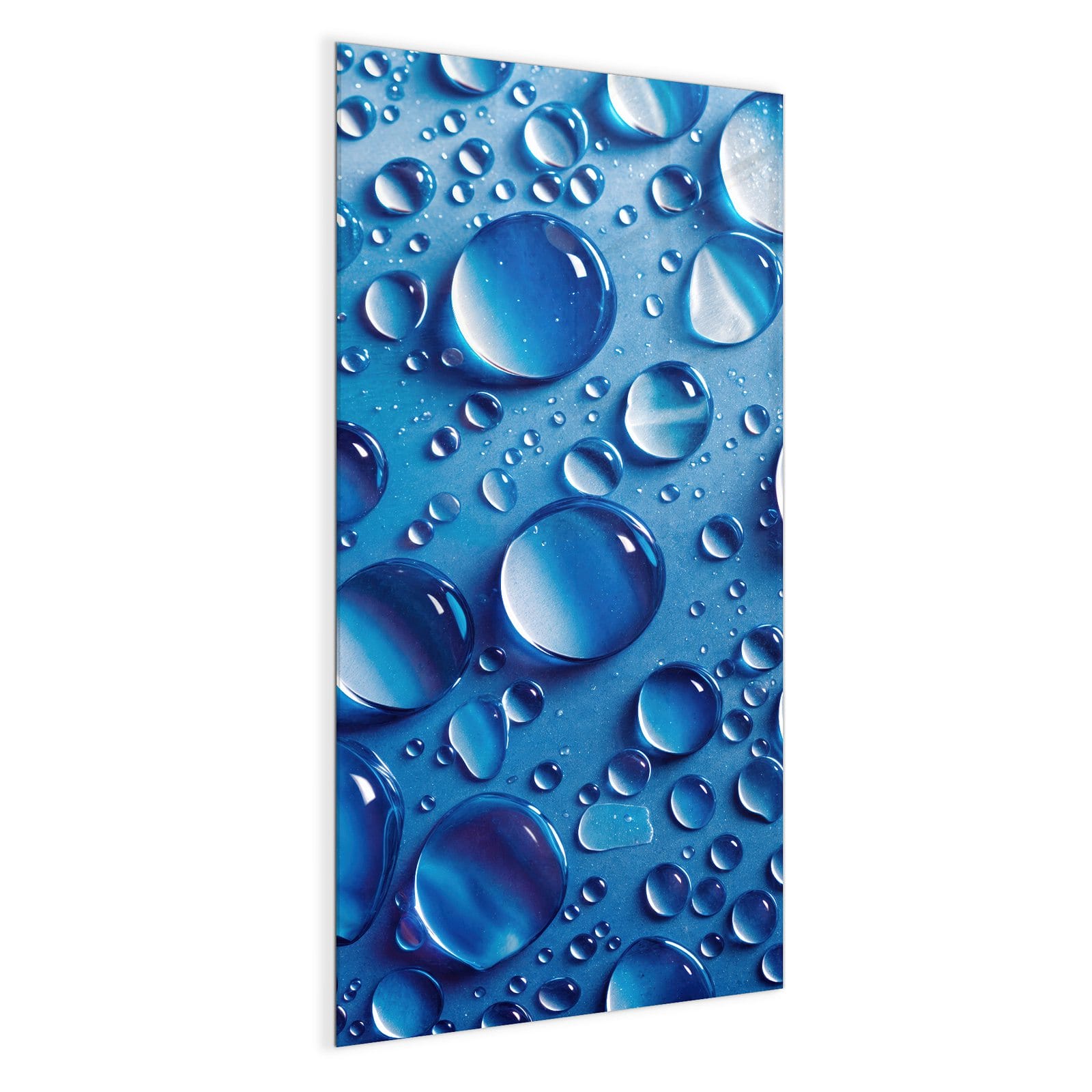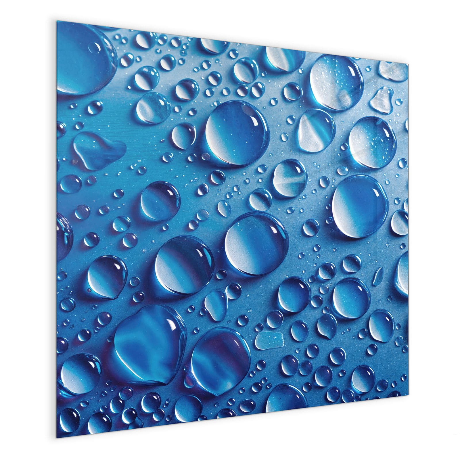 Mit einer Dicke von 4 mm besteht die Tafel aus gehärtetem Einscheibensicherheitsglas (ESG), das robust, kratzfest und UV-beständig ist. Das Motiv Wassertropfen wird in hoher Auflösung und mit präzisen Details auf das Glas gedruckt, was eine lebendige und dauerhafte Farbbrillanz garantiert. Die polierten Kanten sorgen für ein hochwertiges Erscheinungsbild und minimieren das Verletzungsrisiko.