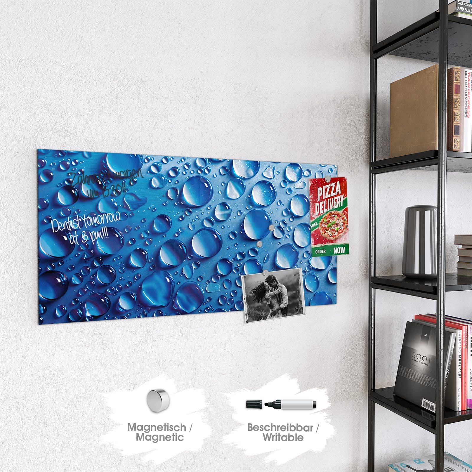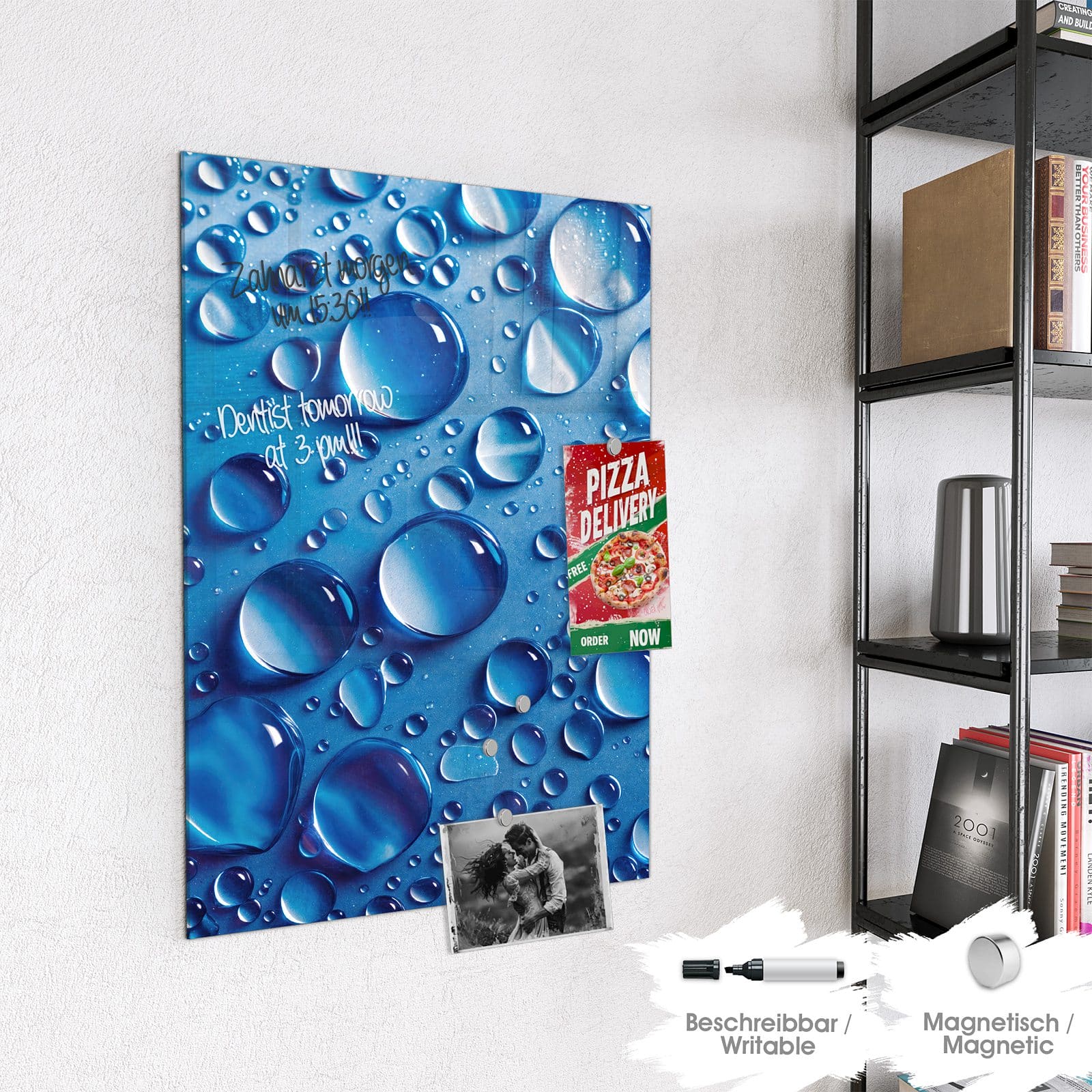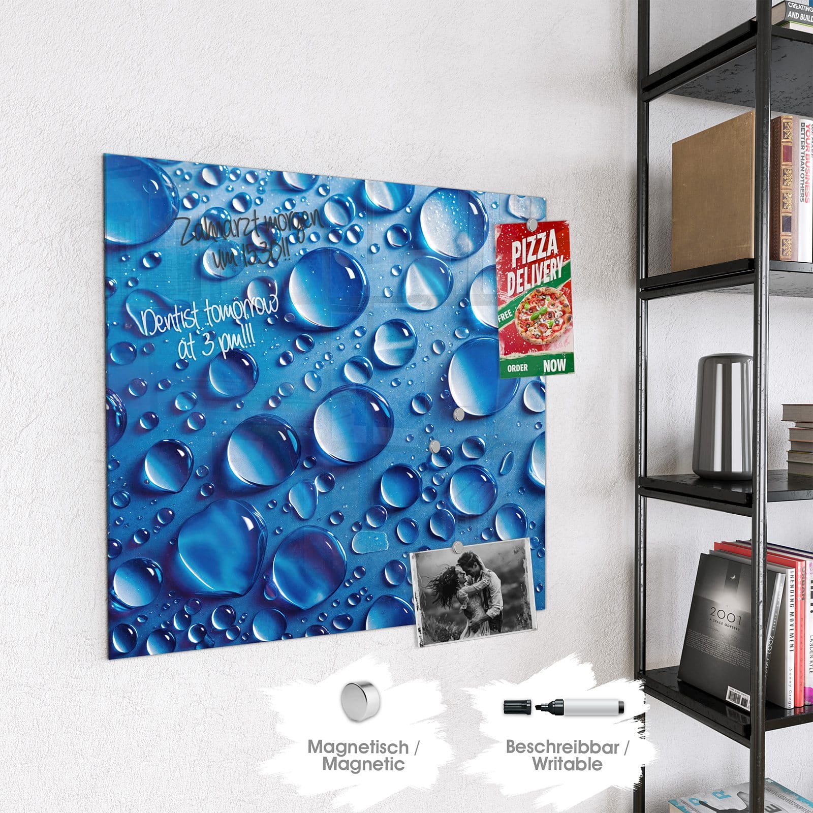 Stilvolle Glas-Magnettafel für Ihr Zuhause - Motiv Wassertropfen