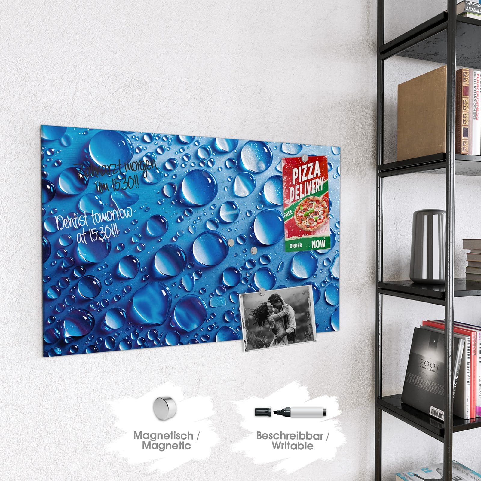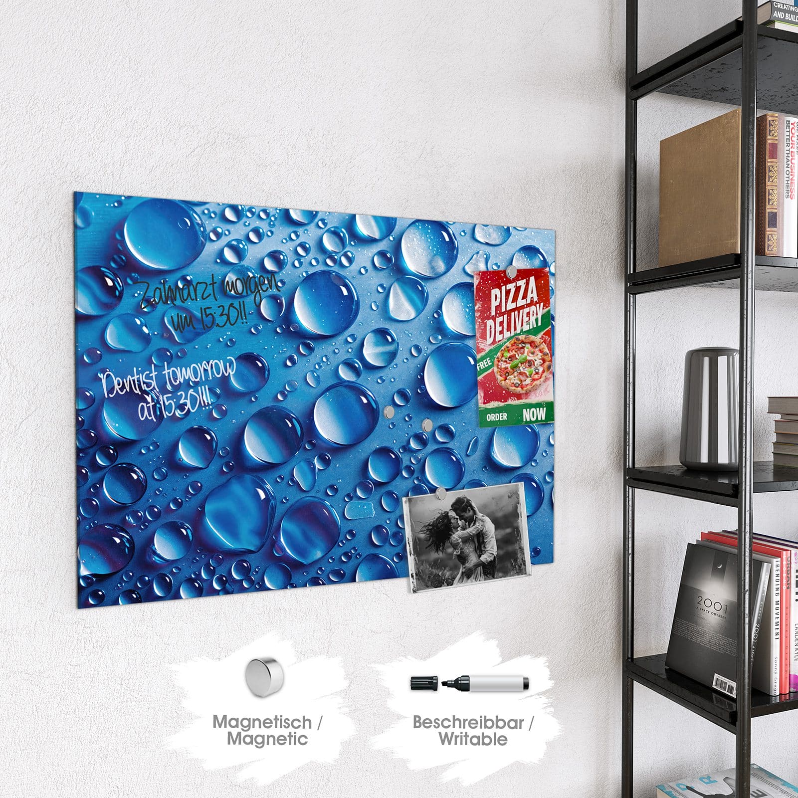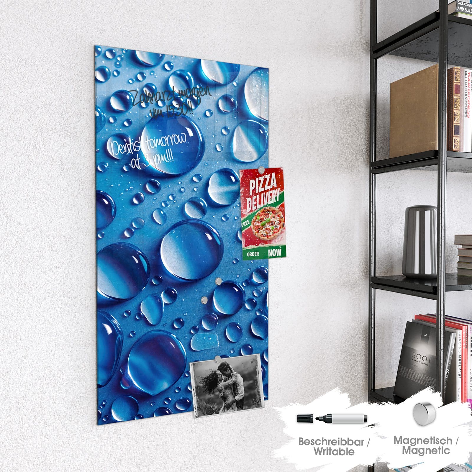 Stilvolle Glas-Magnettafel für Ihr Zuhause - Motiv Wassertropfen