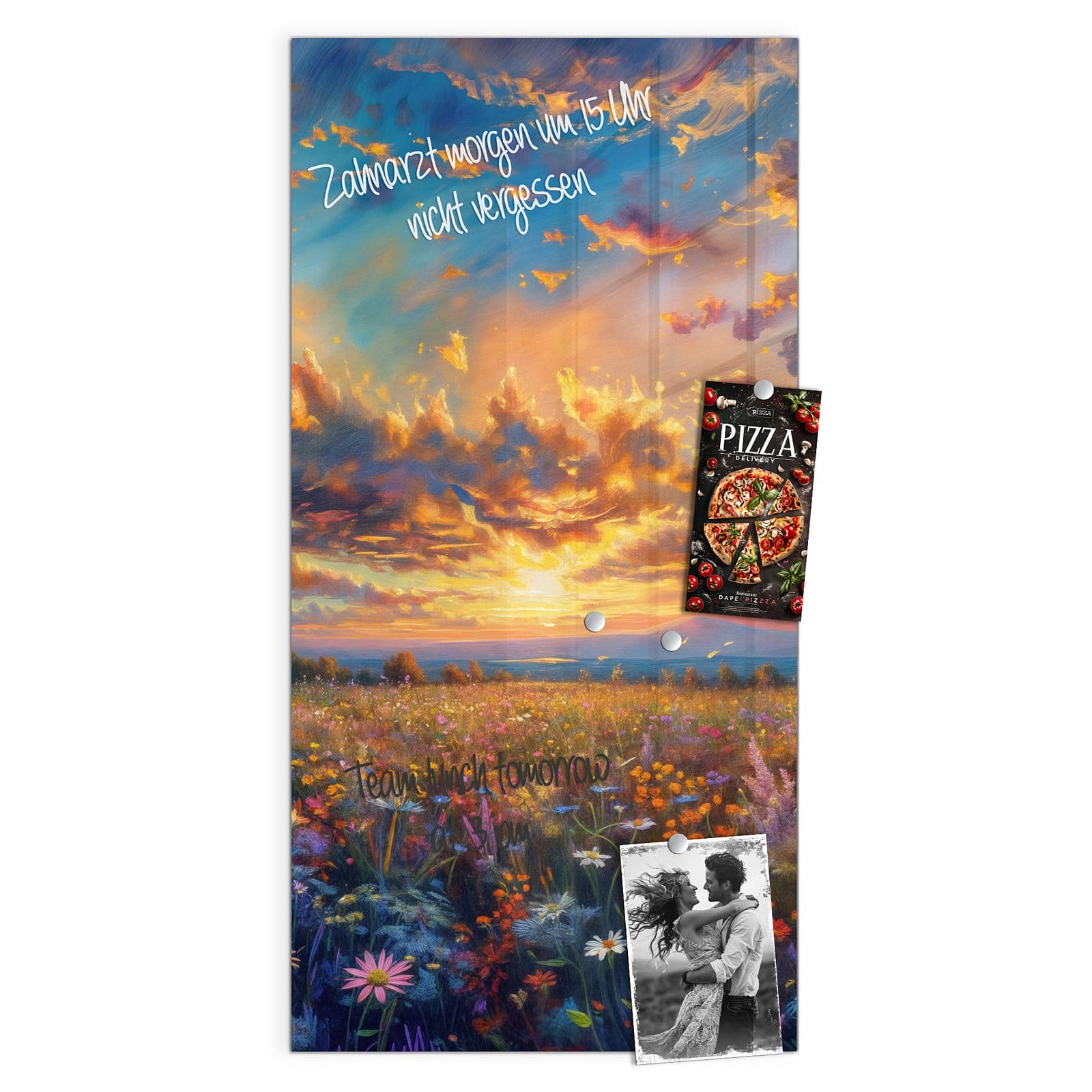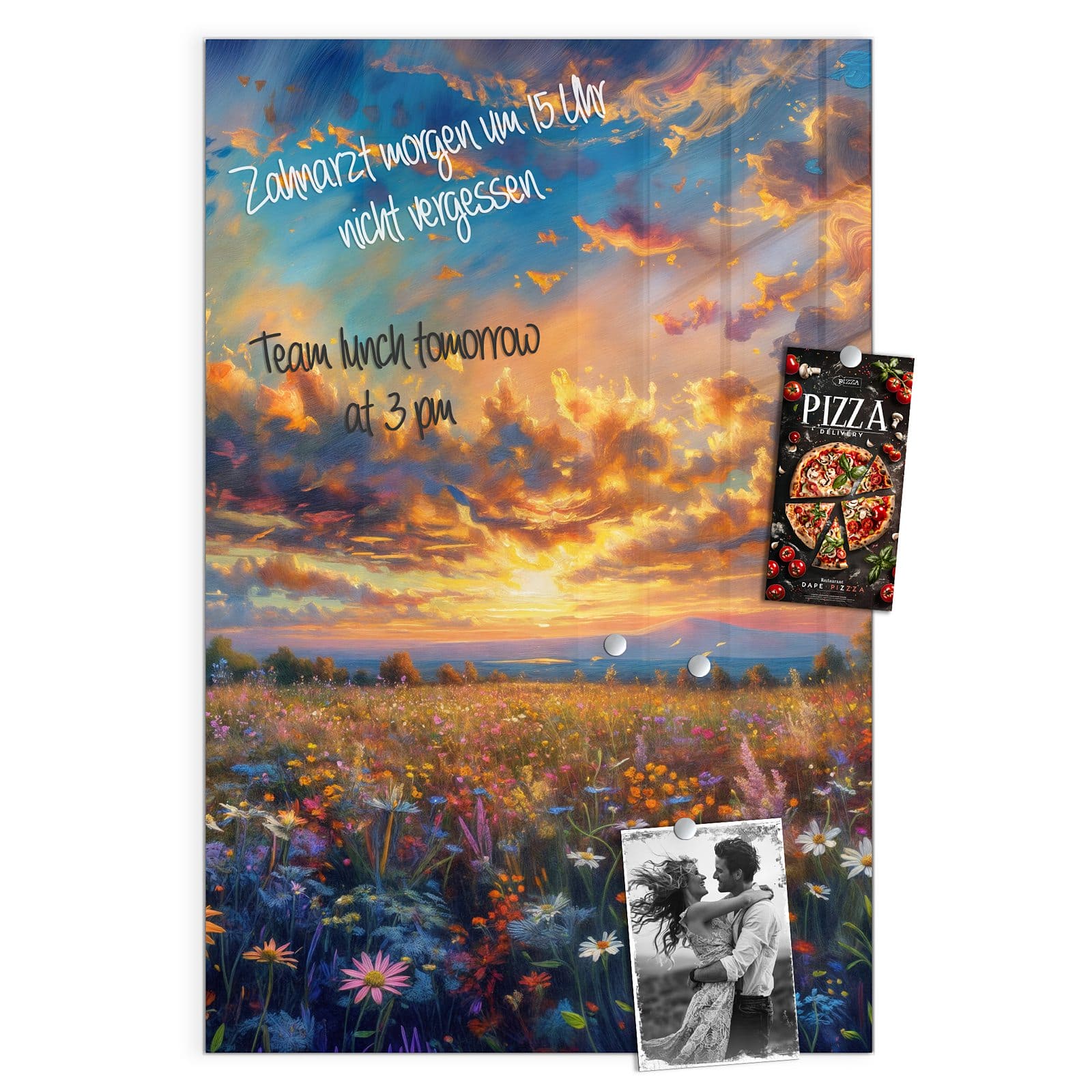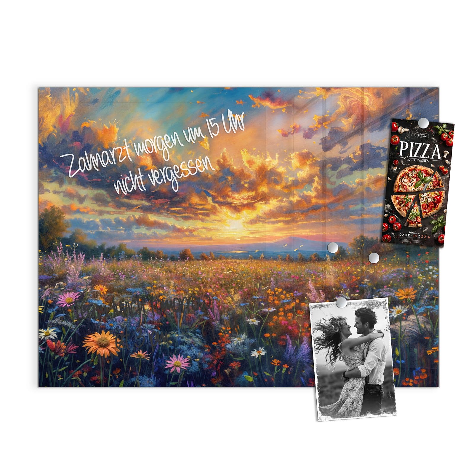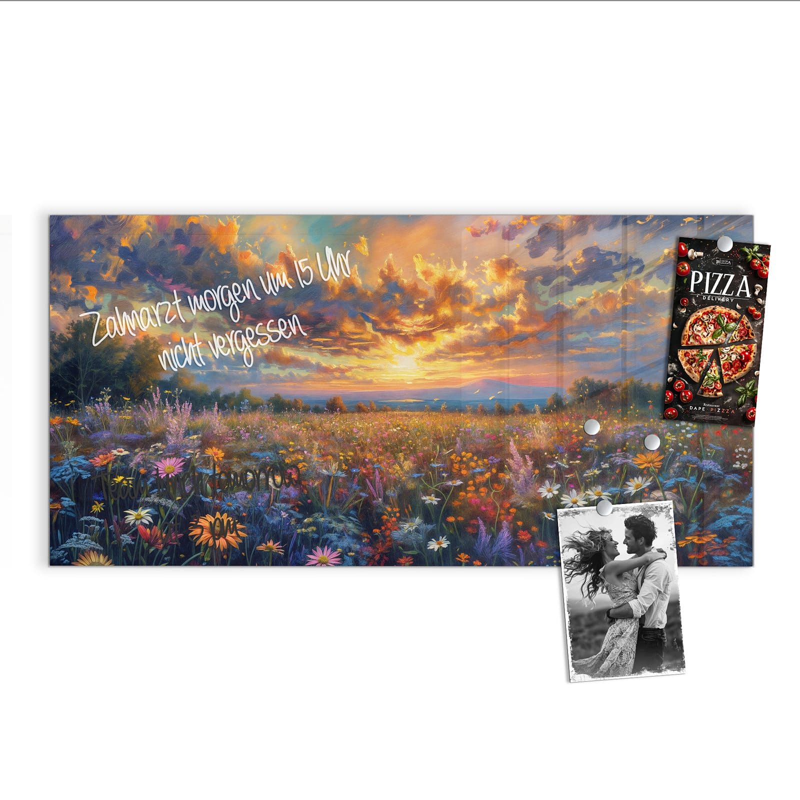 Stilvolle Glas-Magnettafel für Ihr Zuhause - Motiv Wildblumenwiese Abendrot