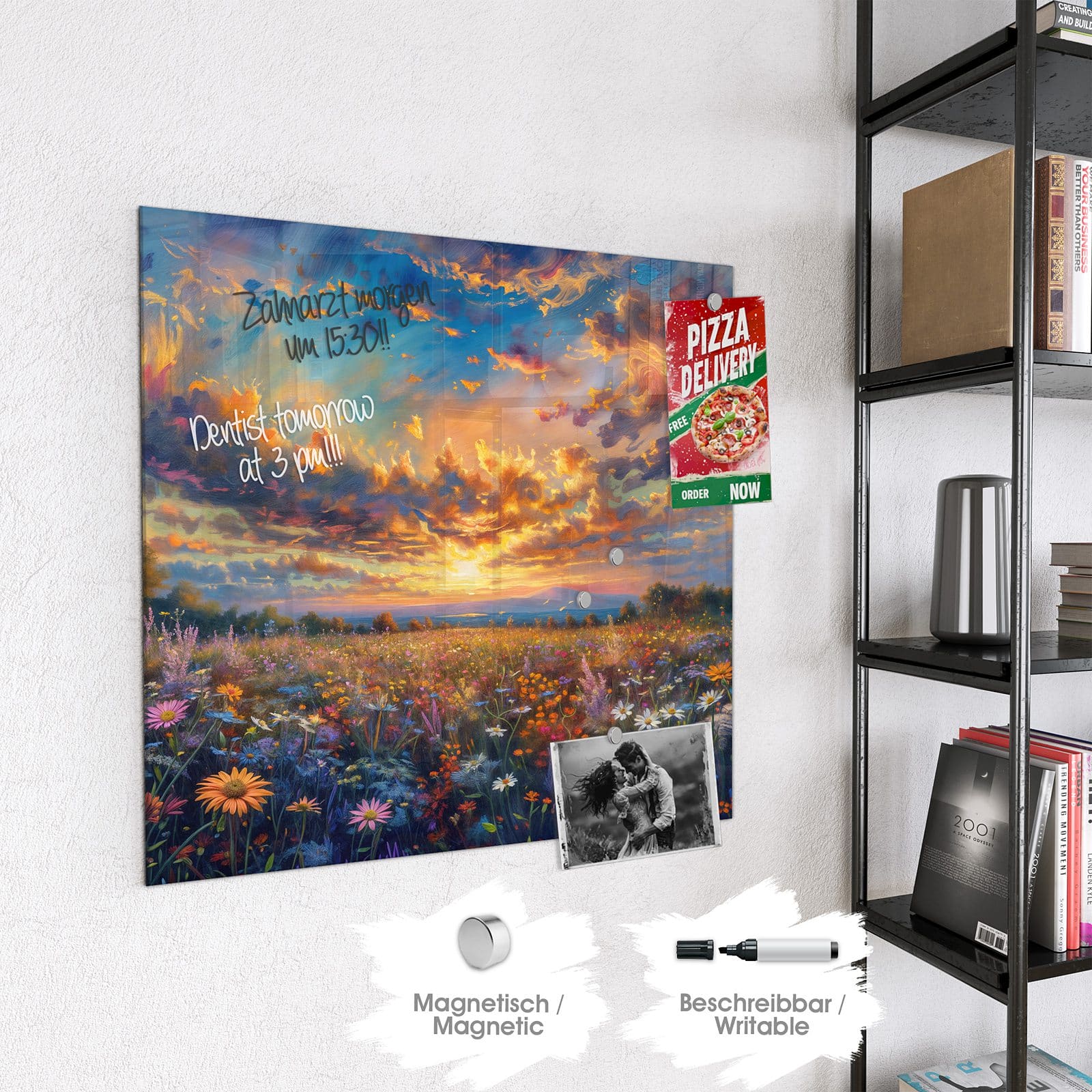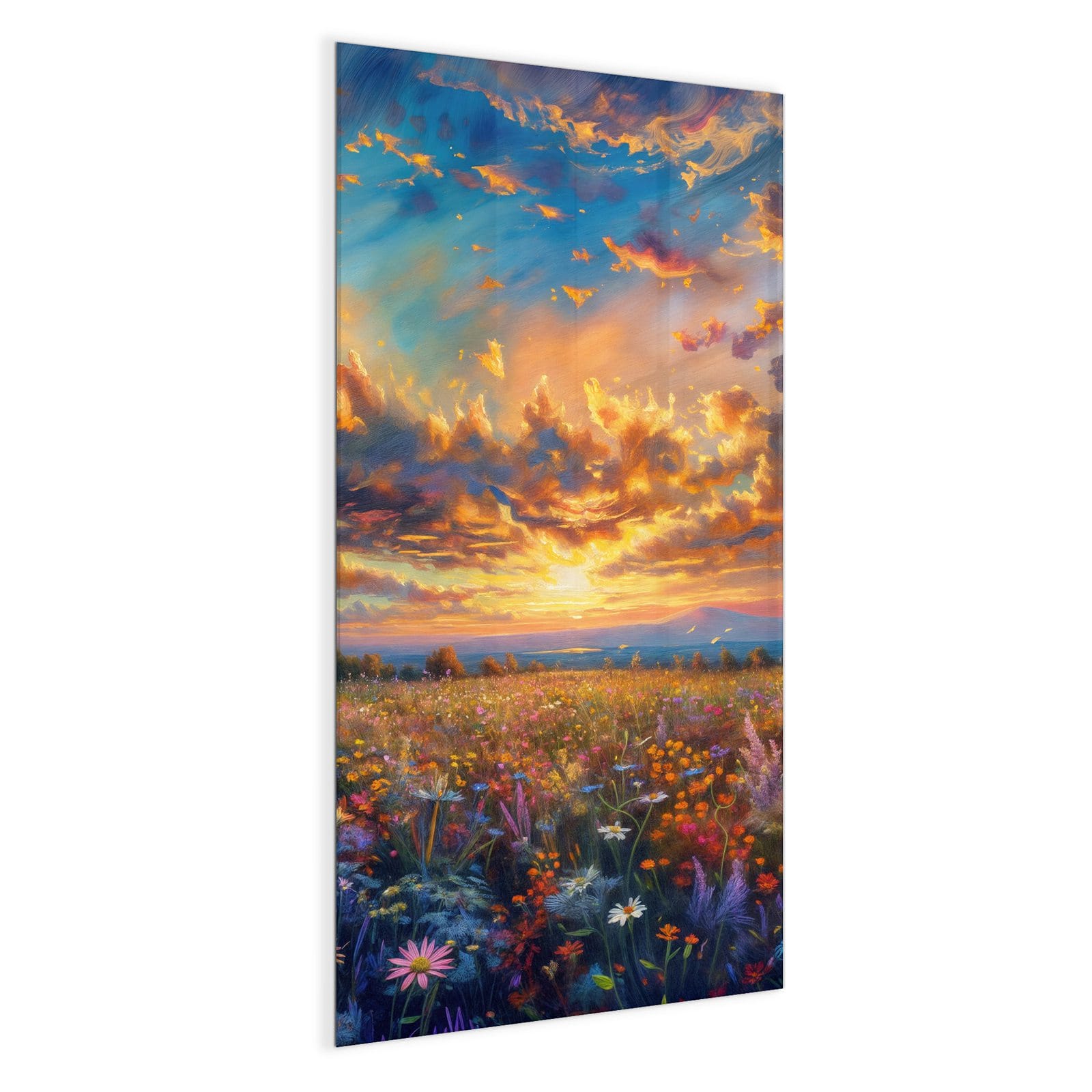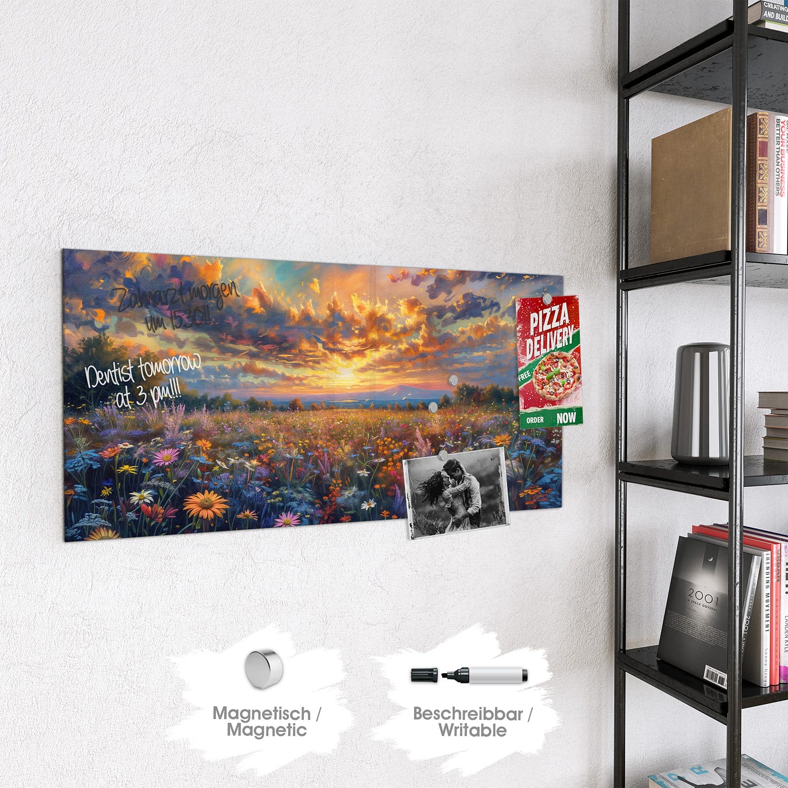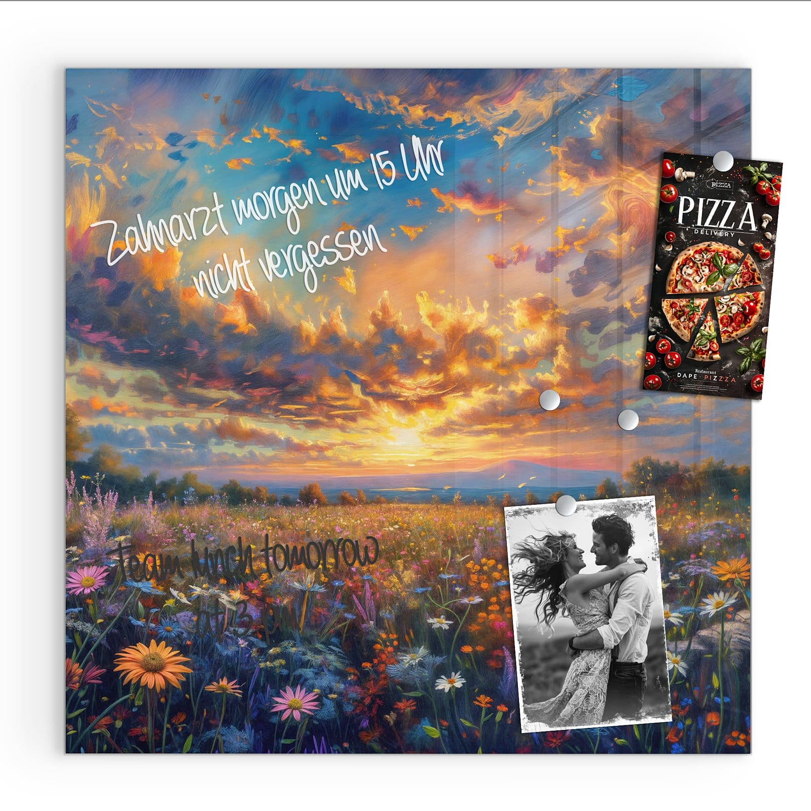 Stilvolle Glas-Magnettafel für Ihr Zuhause - Motiv Wildblumenwiese Abendrot