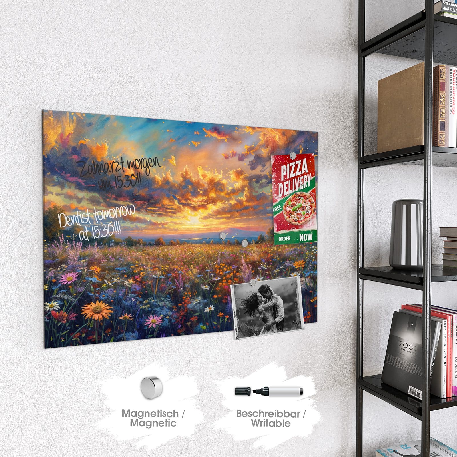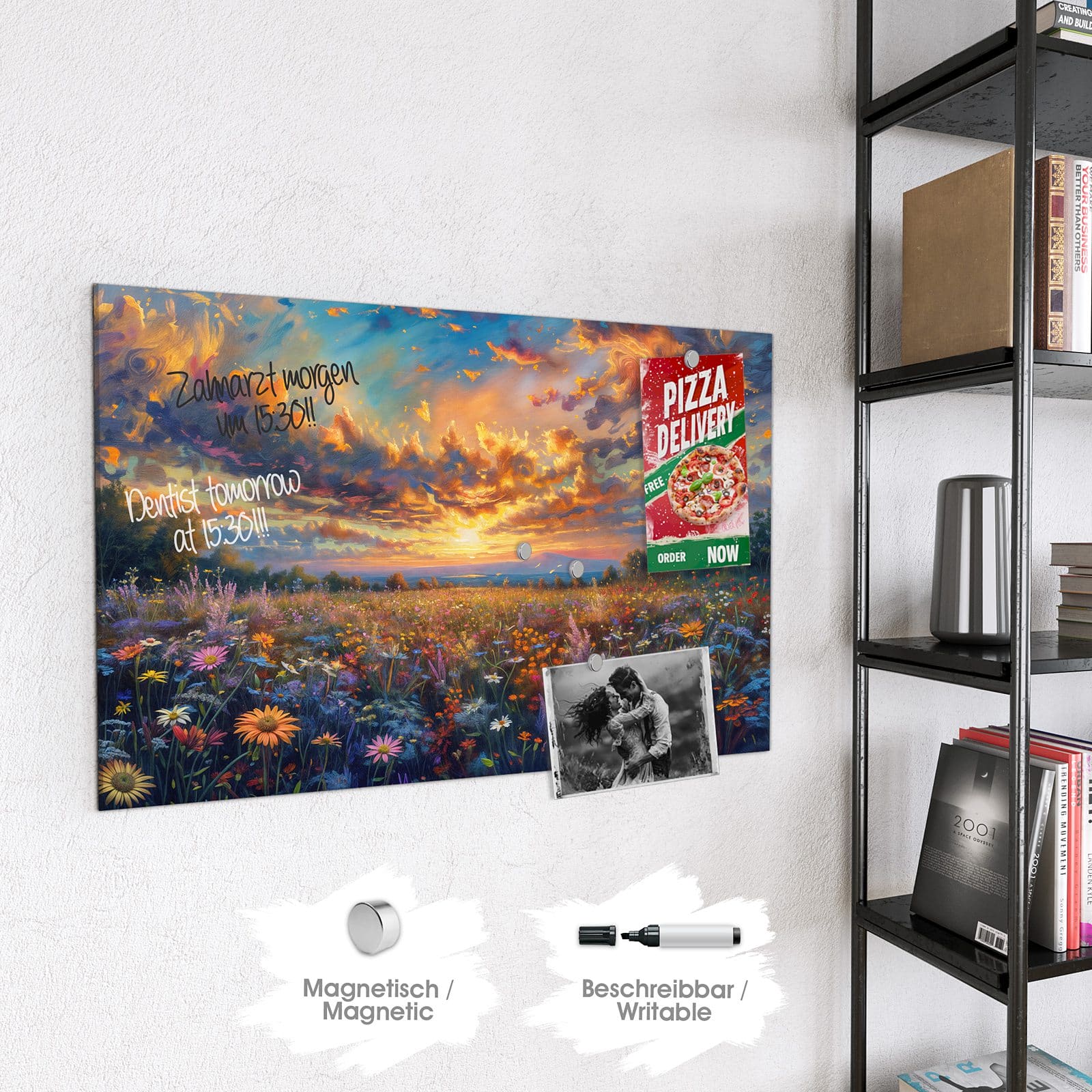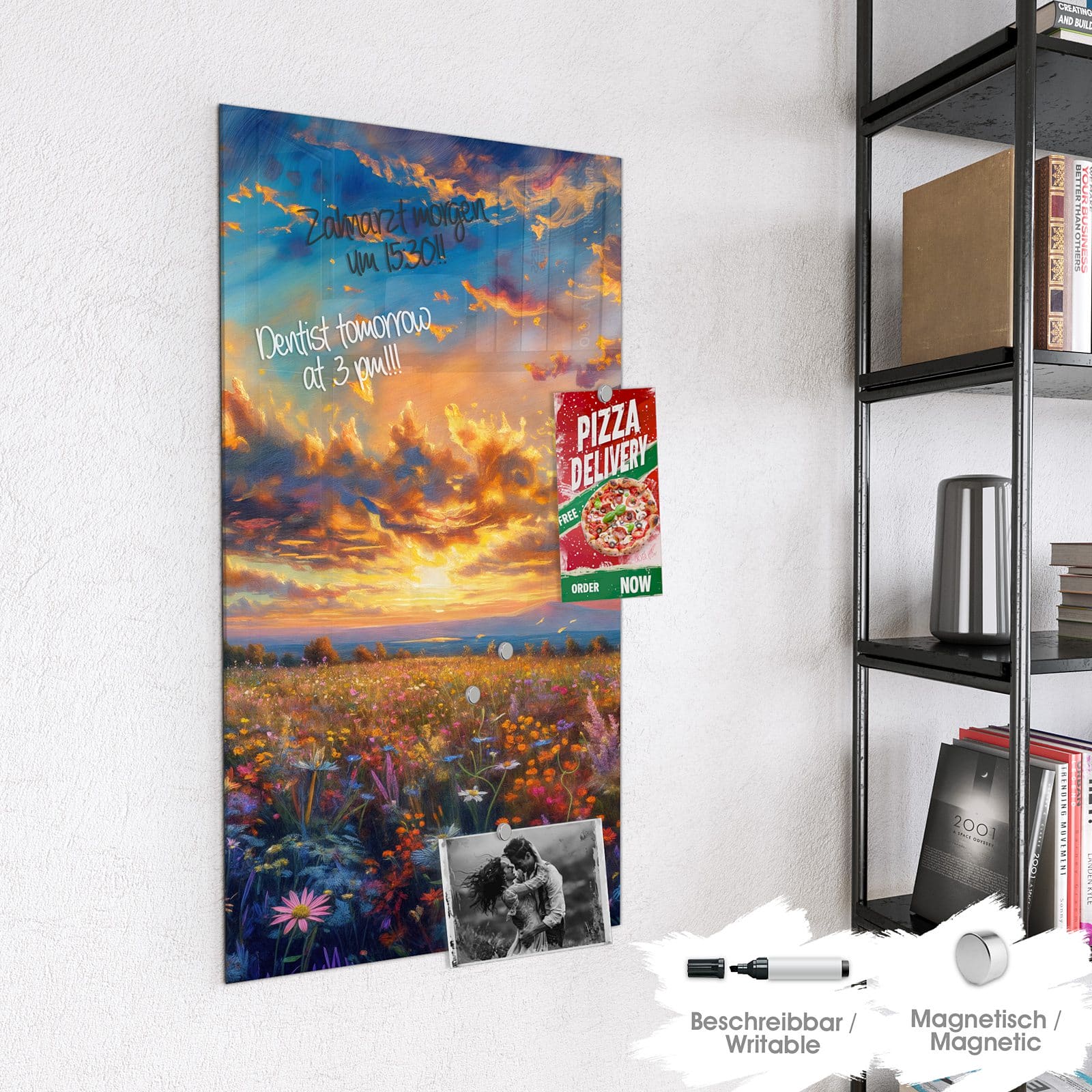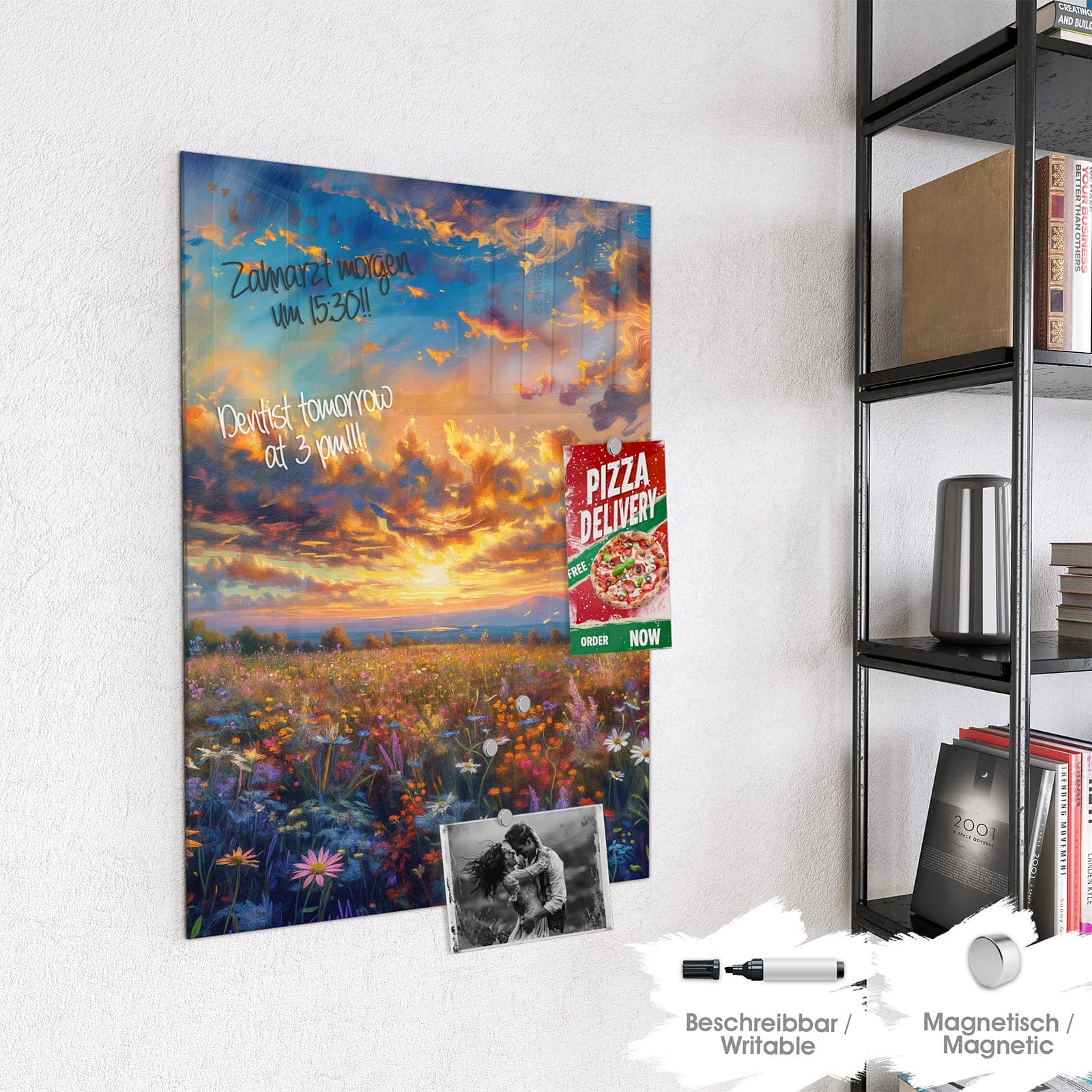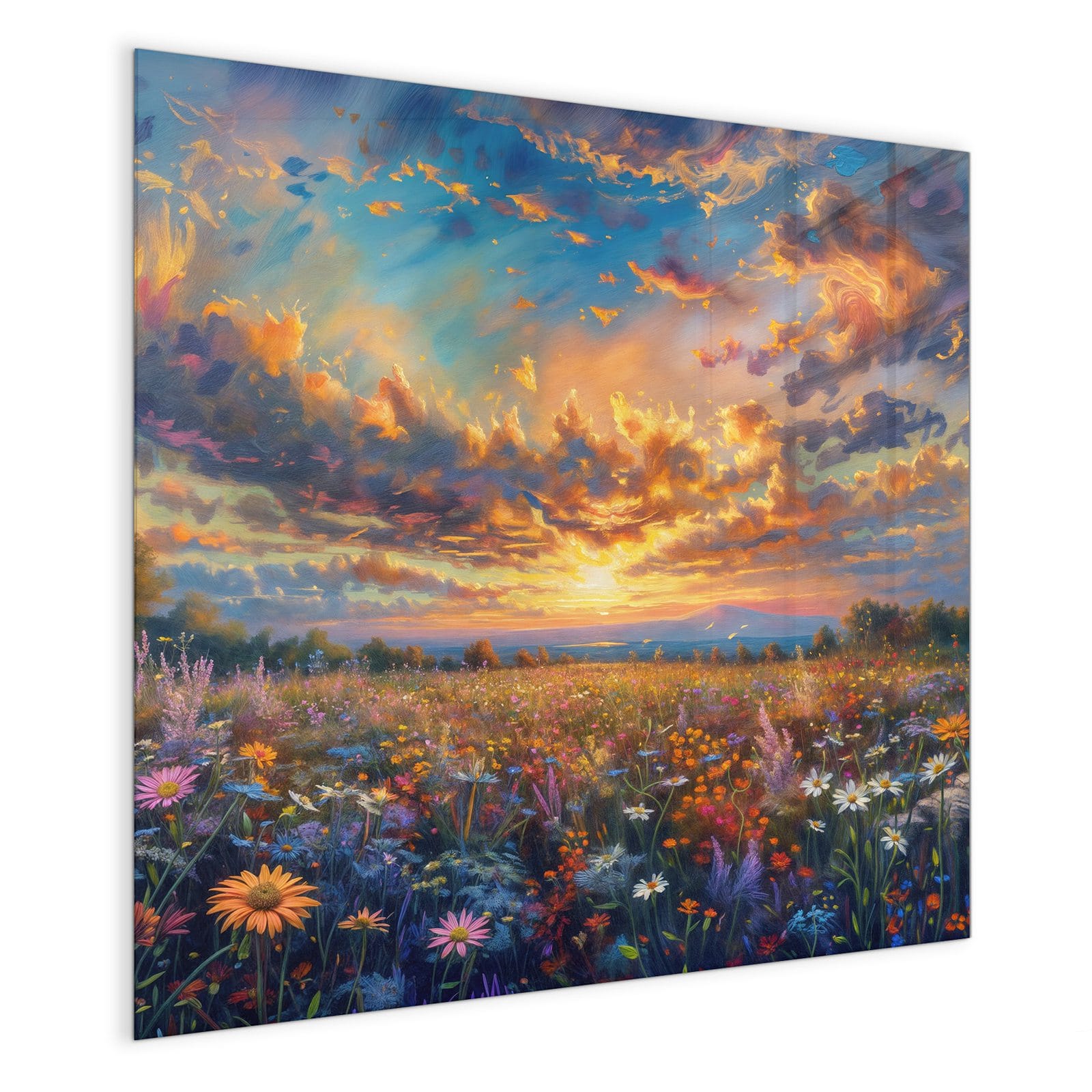 Stilvolle Glas-Magnettafel für Ihr Zuhause - Motiv Wildblumenwiese Abendrot