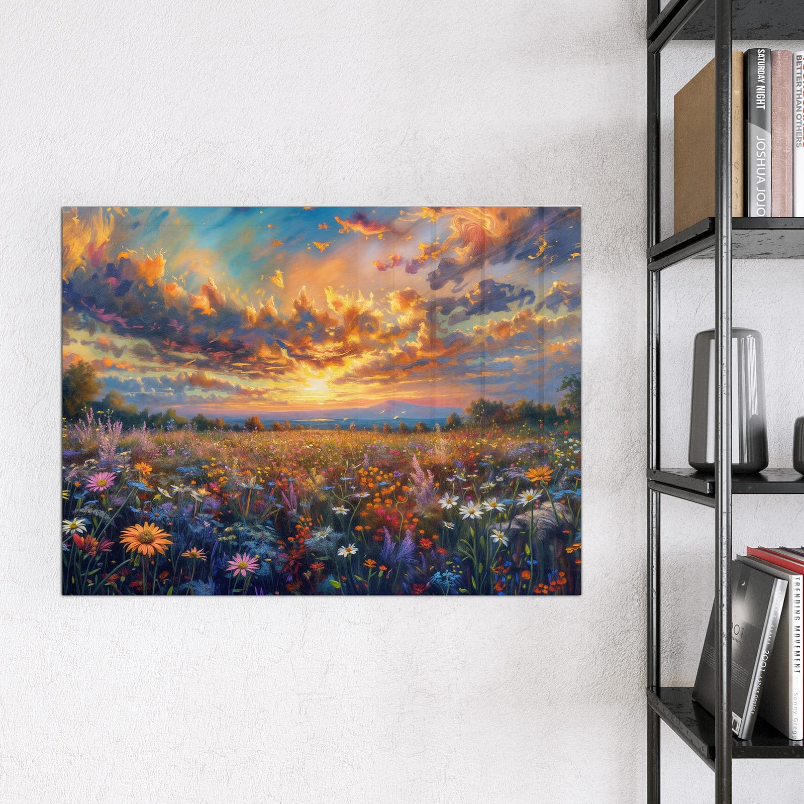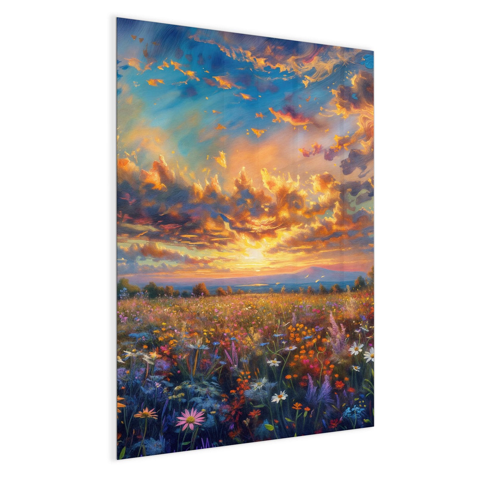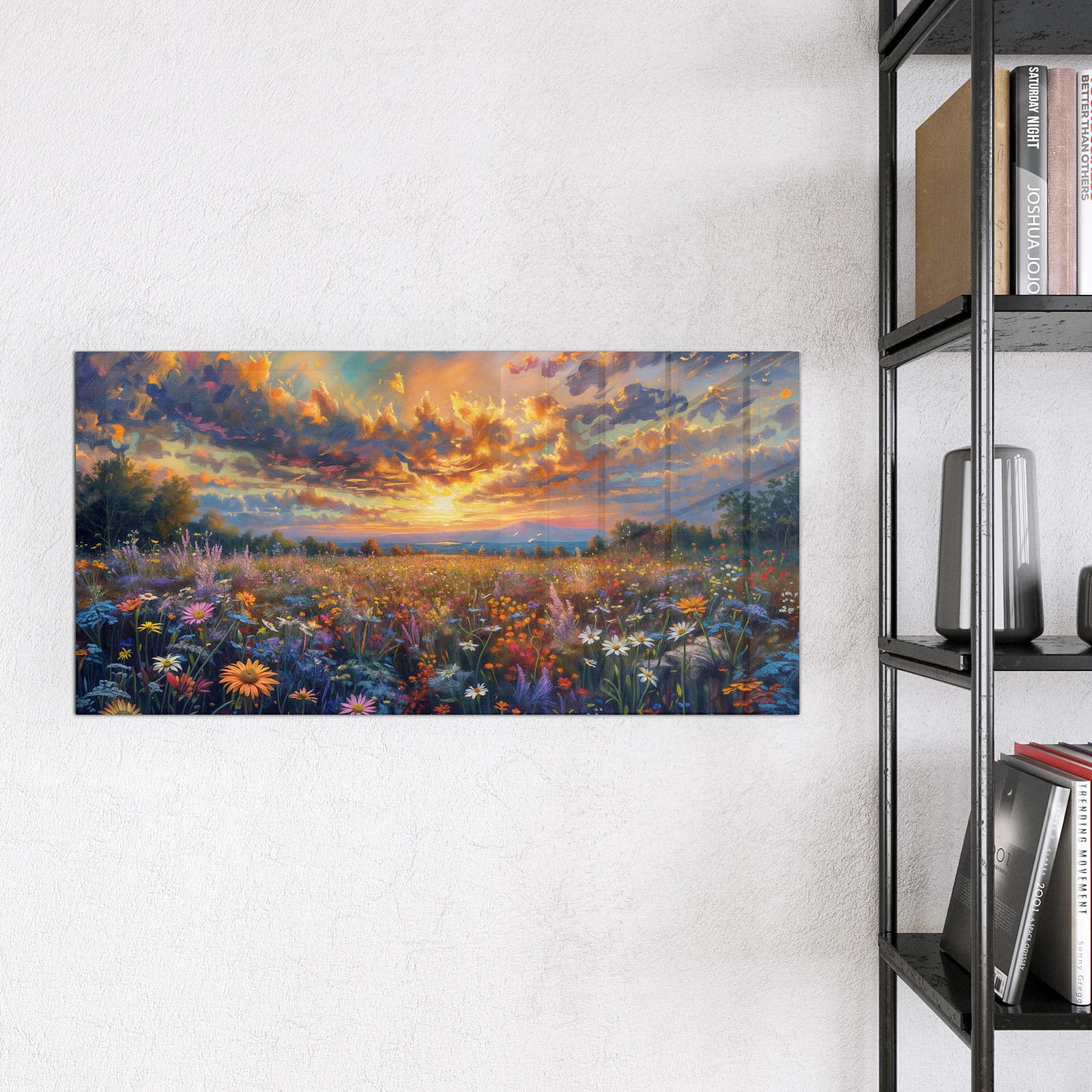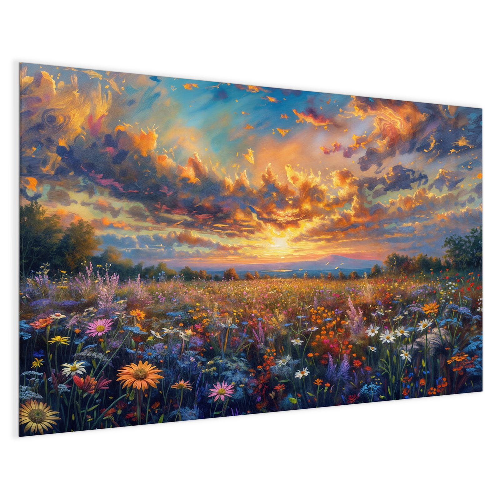 Stilvolle Glas-Magnettafel für Ihr Zuhause - Motiv Wildblumenwiese Abendrot
