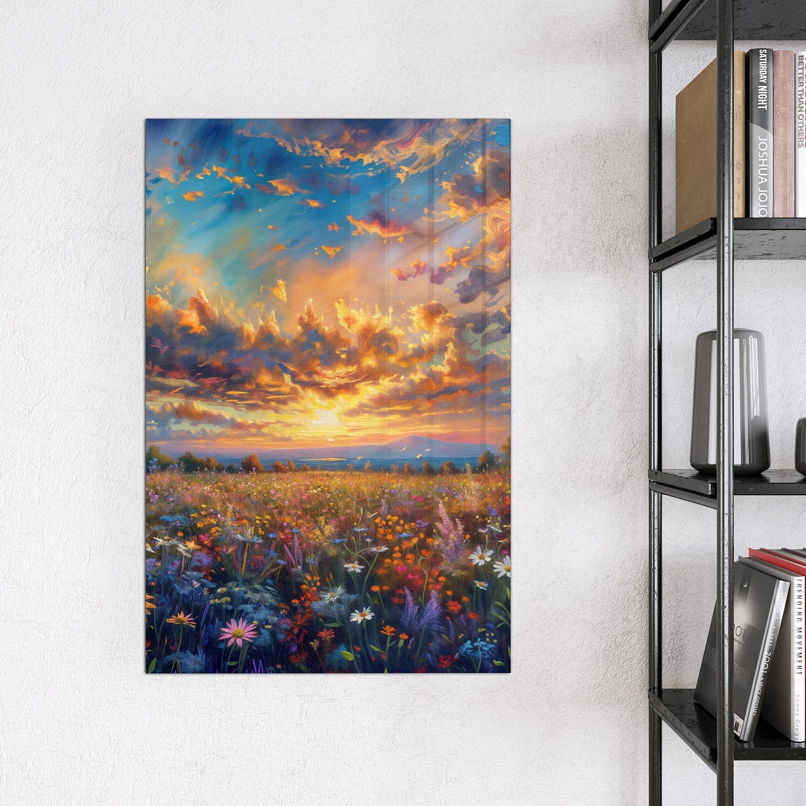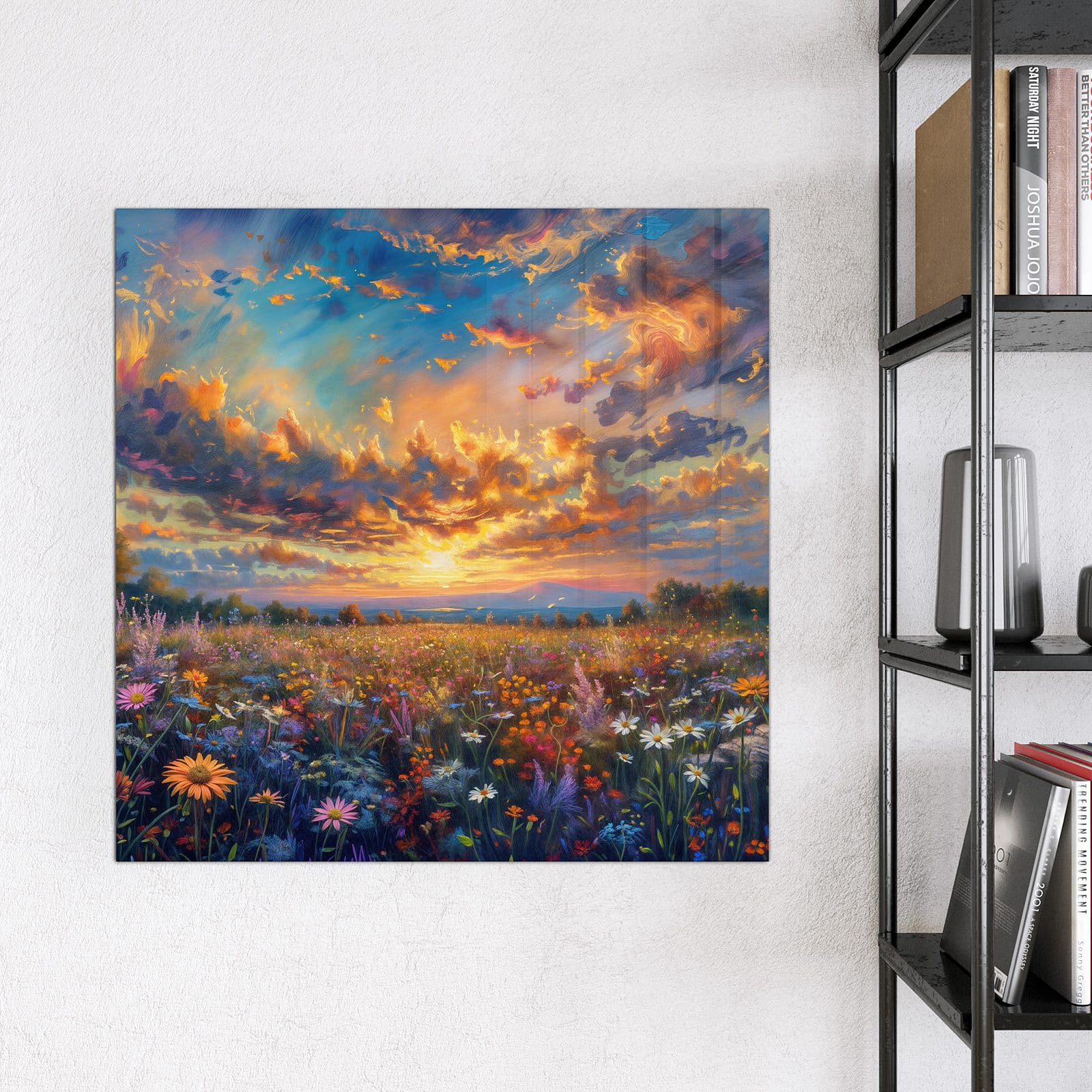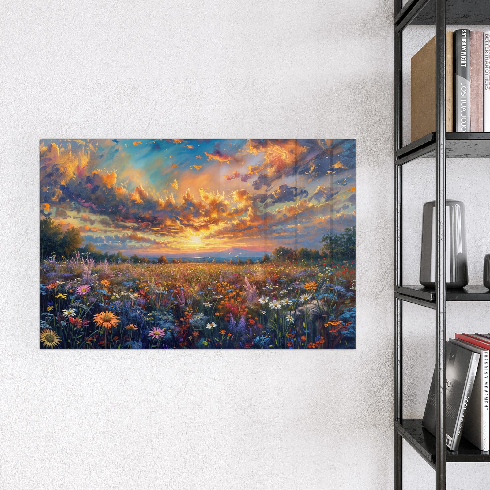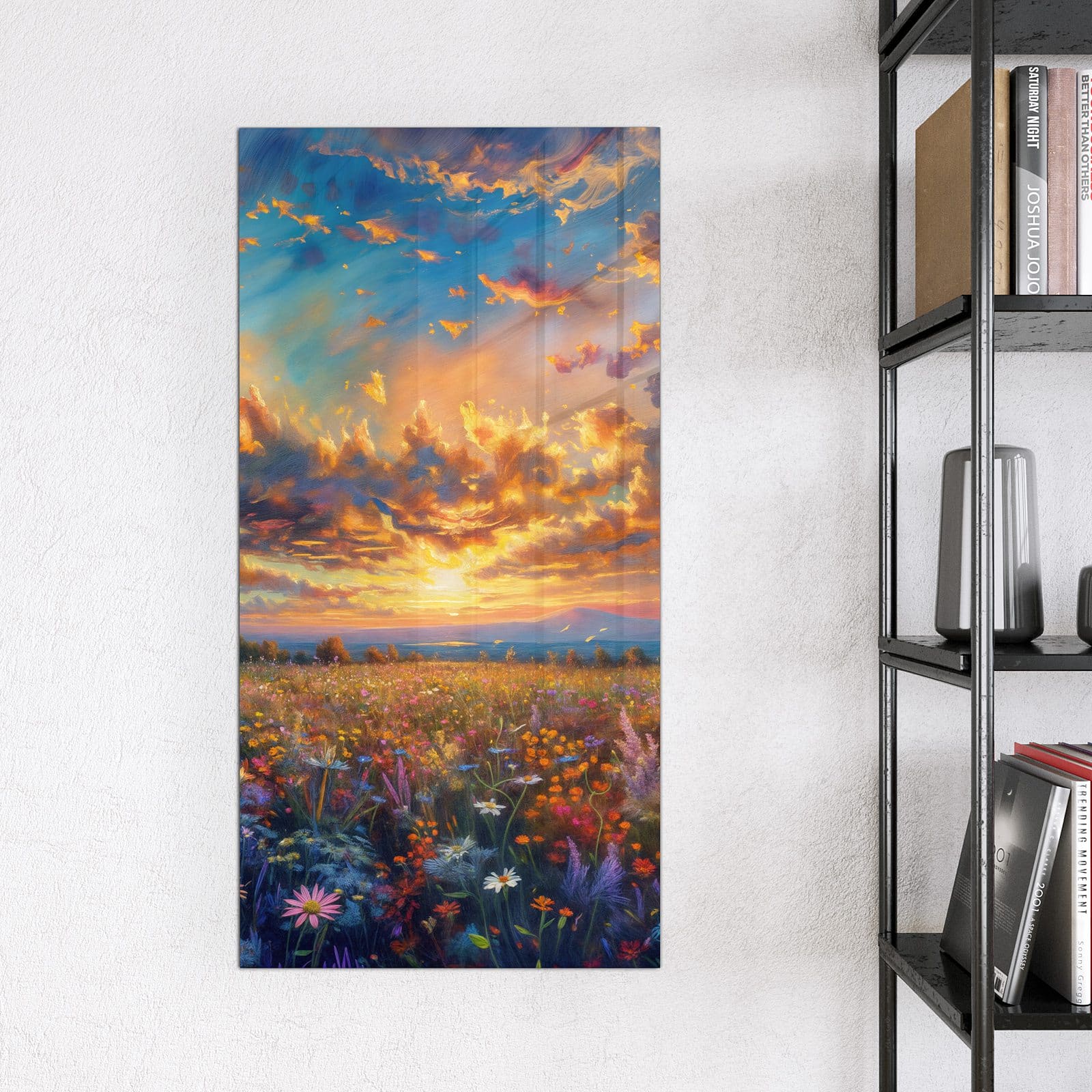 Stilvolle Glas-Magnettafel für Ihr Zuhause - Motiv Wildblumenwiese Abendrot