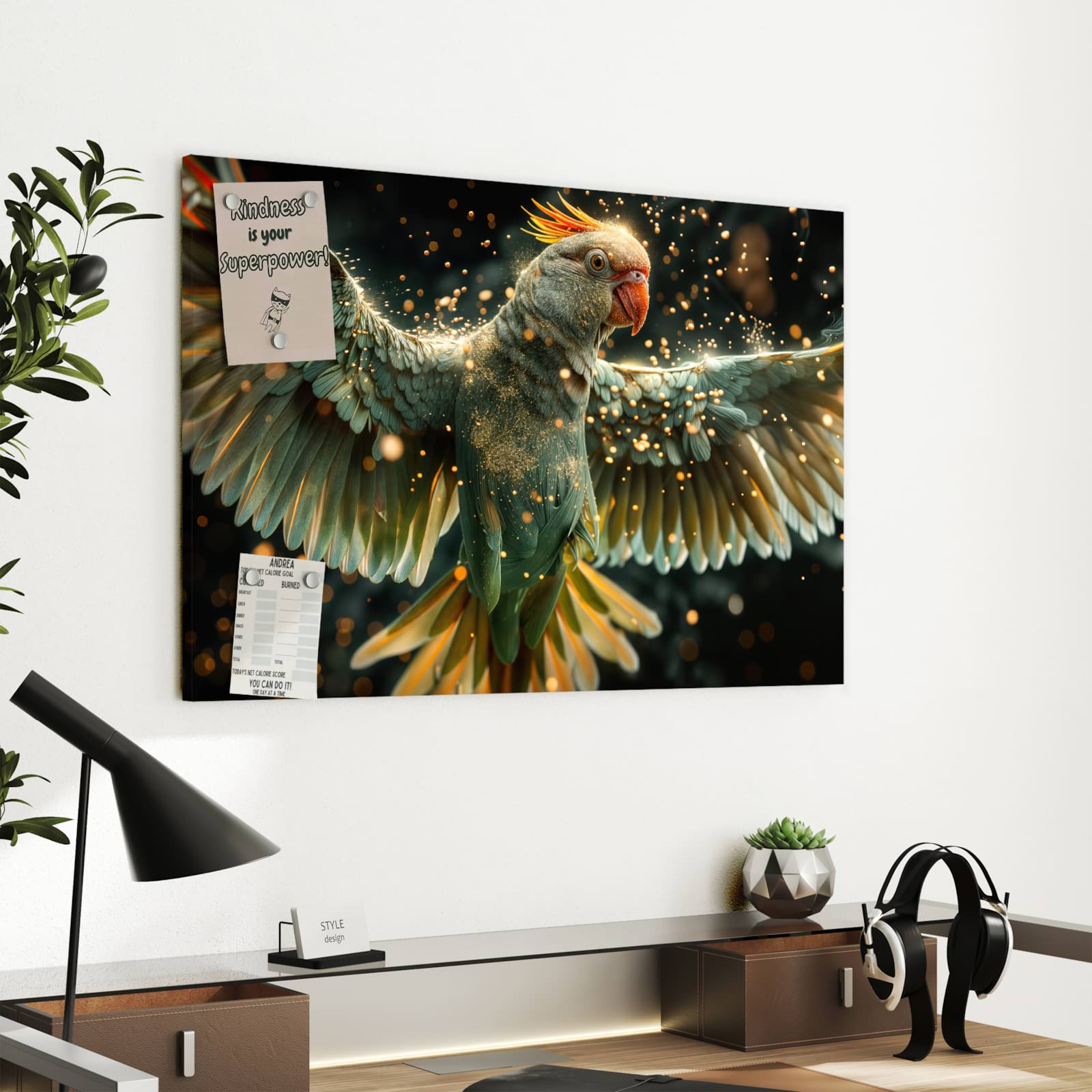 Vielseitige Metall-Magnettafel für Ihr Zuhause - Fliegender Papagei