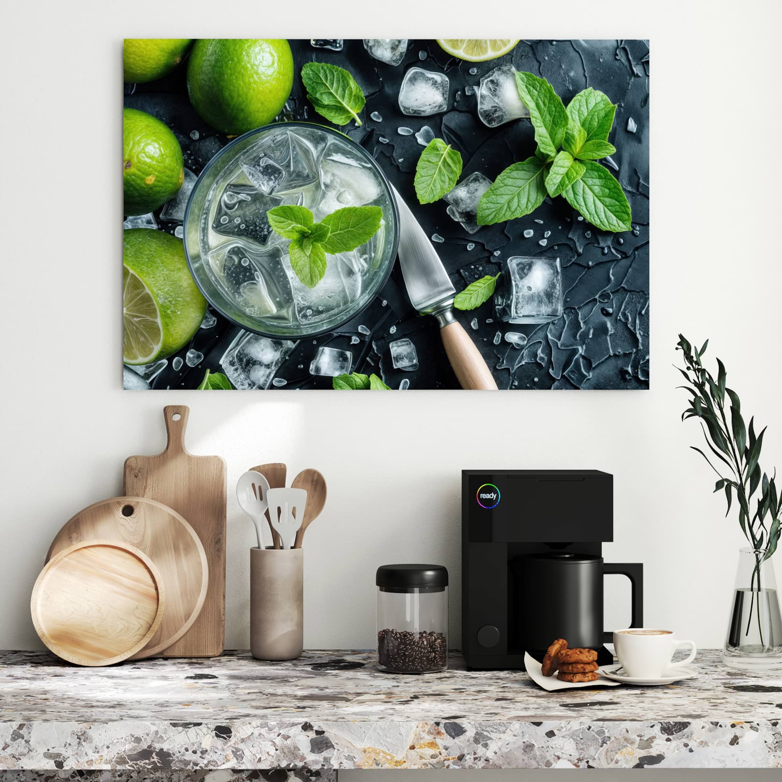 Die Magnettafel besteht aus hochwertigem, pulverbeschichtetem Stahlblech, das für seine robuste und langlebige Natur bekannt ist. Diese Beschaffenheit macht es beständig gegen UV-Strahlen und Feuchtigkeit. Die glatte Metalloberfläche bietet eine beeindruckende Farbbrillanz und Tiefe. Das Motiv Frische Limetten wird in hoher Auflösung und mit präzisen Details auf das Metall gedruckt, was eine lebendige und dauerhafte Darstellung sicherstellt.