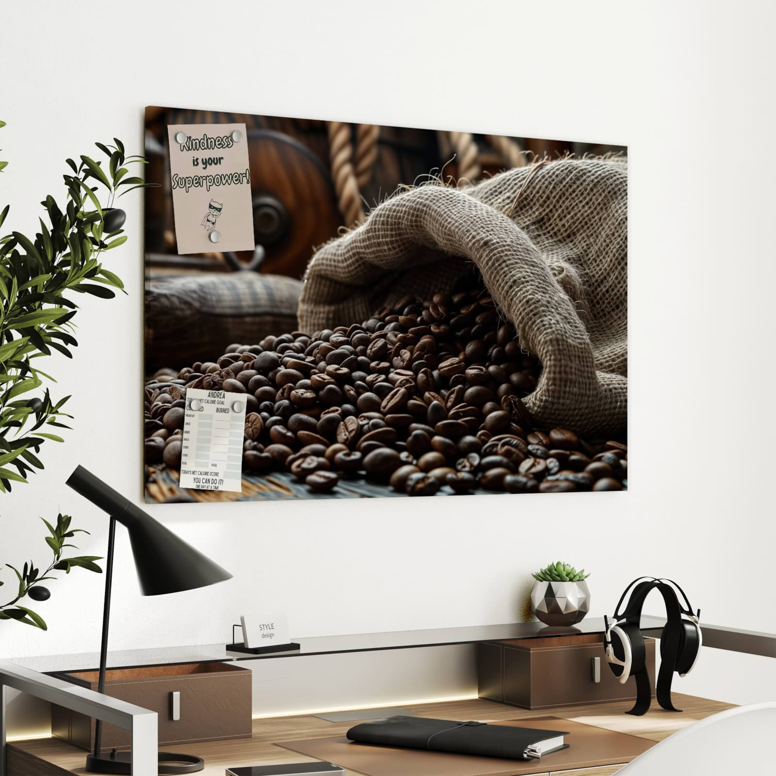 Vielseitige Metall-Magnettafel für Ihr Zuhause - Kaffeebohnen Sack