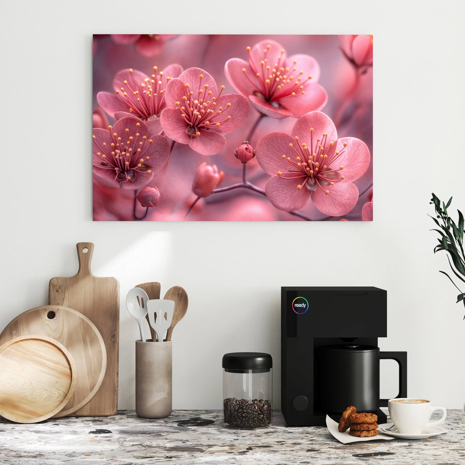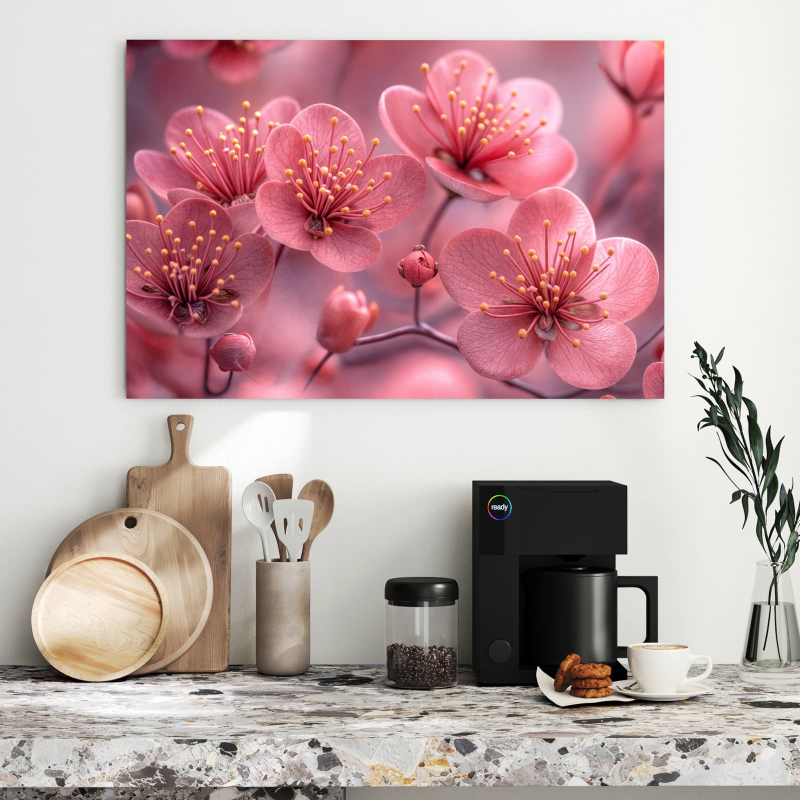 Die Magnettafel besteht aus hochwertigem, pulverbeschichtetem Stahlblech, das für seine robuste und langlebige Natur bekannt ist. Diese Beschaffenheit macht es beständig gegen UV-Strahlen und Feuchtigkeit. Die glatte Metalloberfläche bietet eine beeindruckende Farbbrillanz und Tiefe. Das Motiv Kirschbaumblüten wird in hoher Auflösung und mit präzisen Details auf das Metall gedruckt, was eine lebendige und dauerhafte Darstellung sicherstellt.