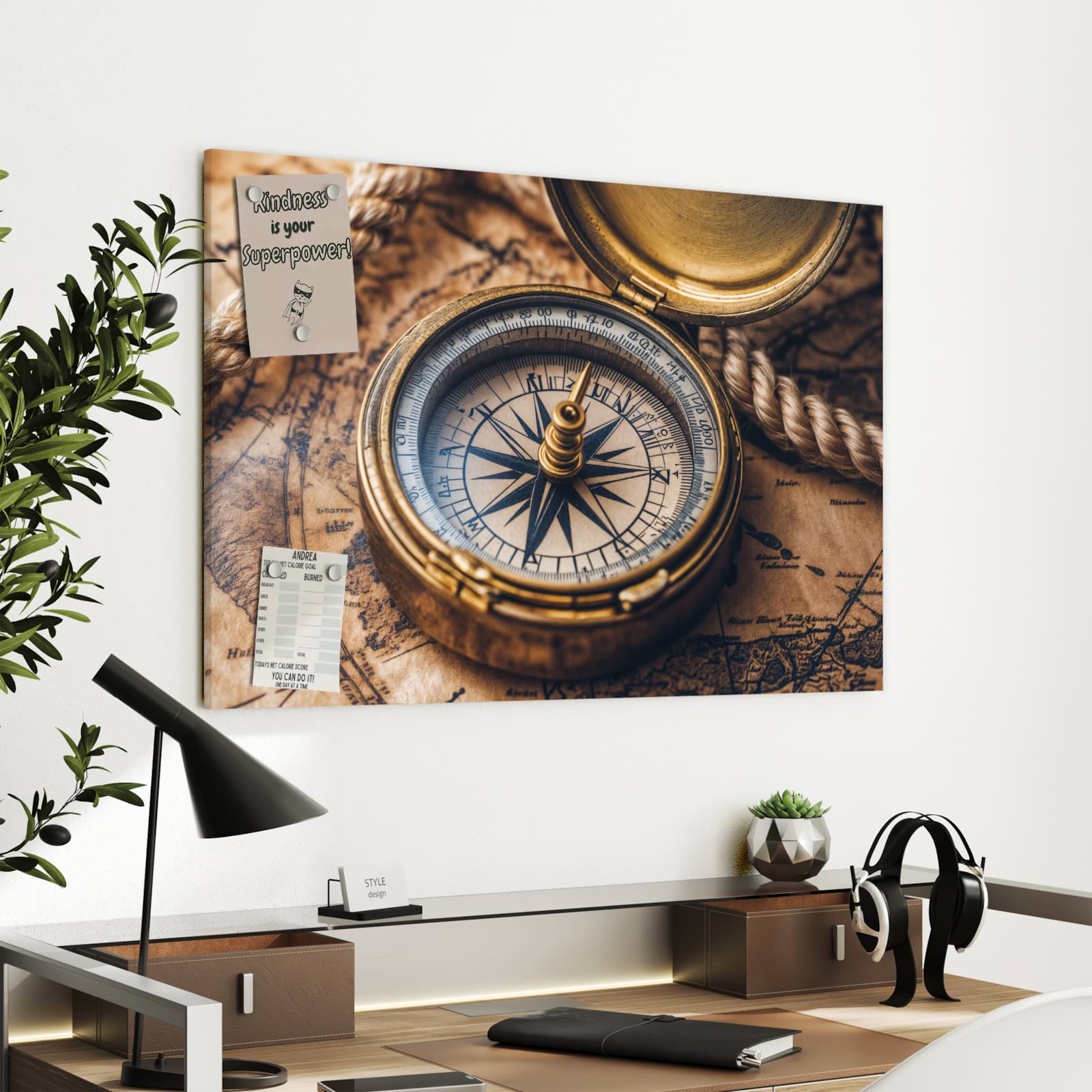 Vielseitige Metall-Magnettafel für Ihr Zuhause - Kompass auf Karte